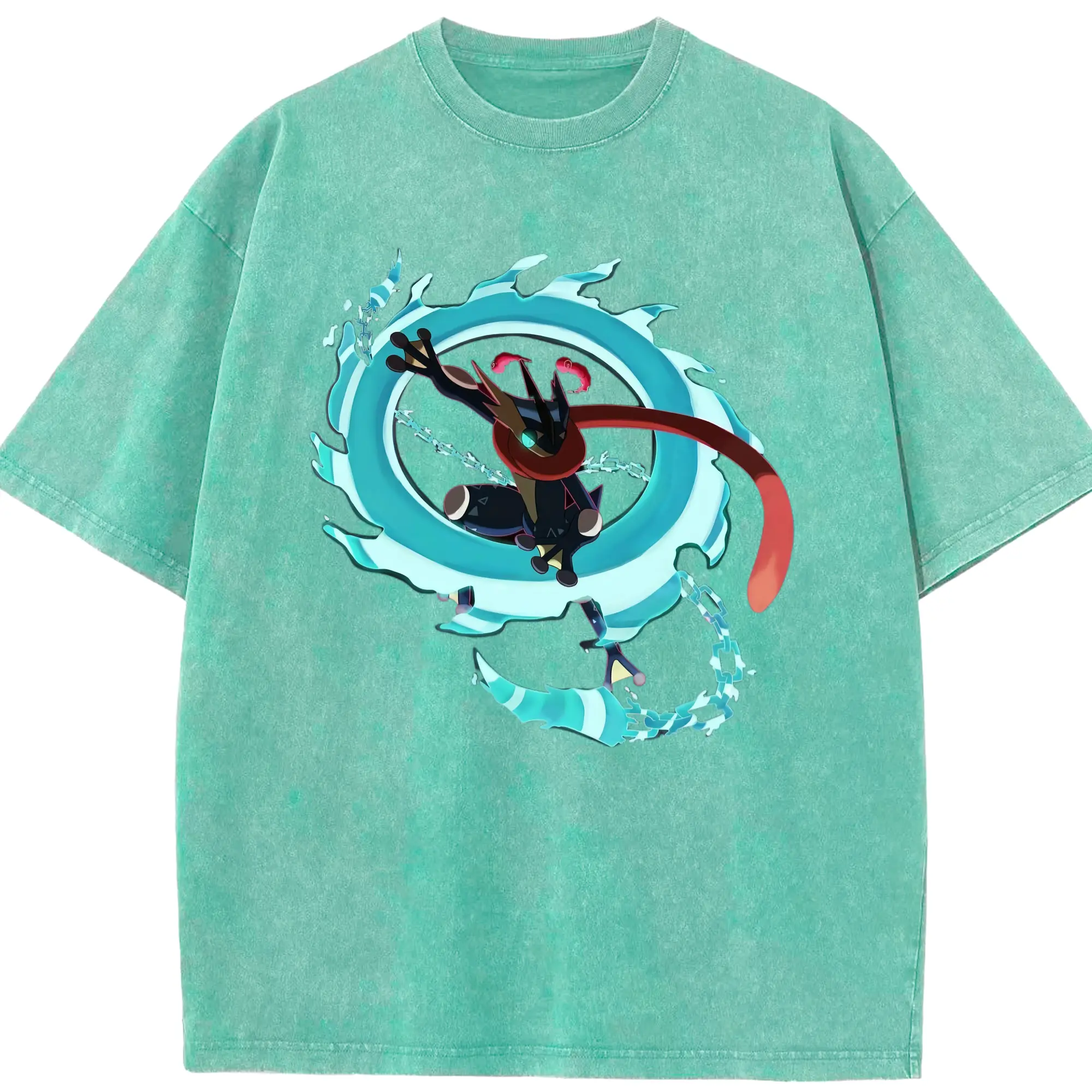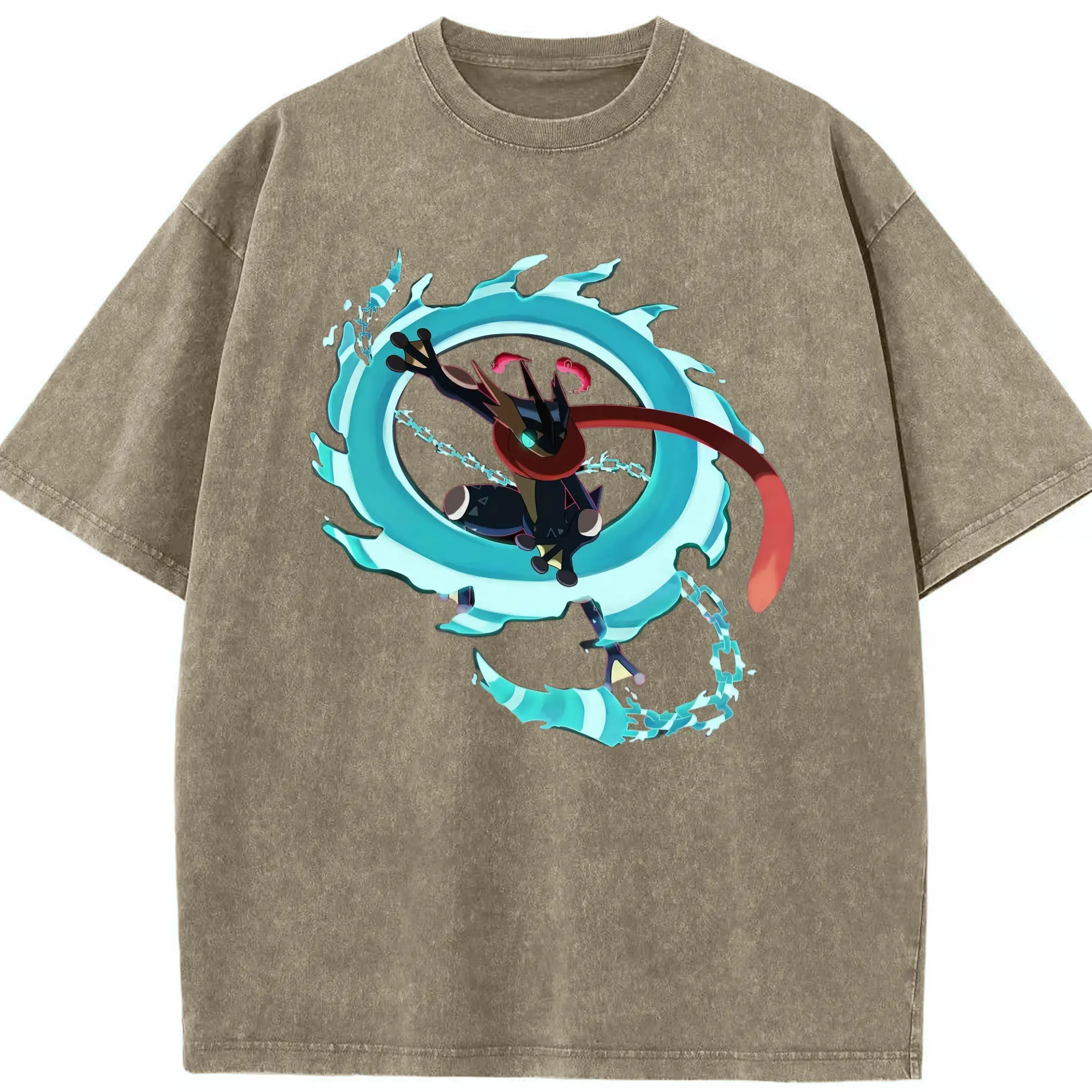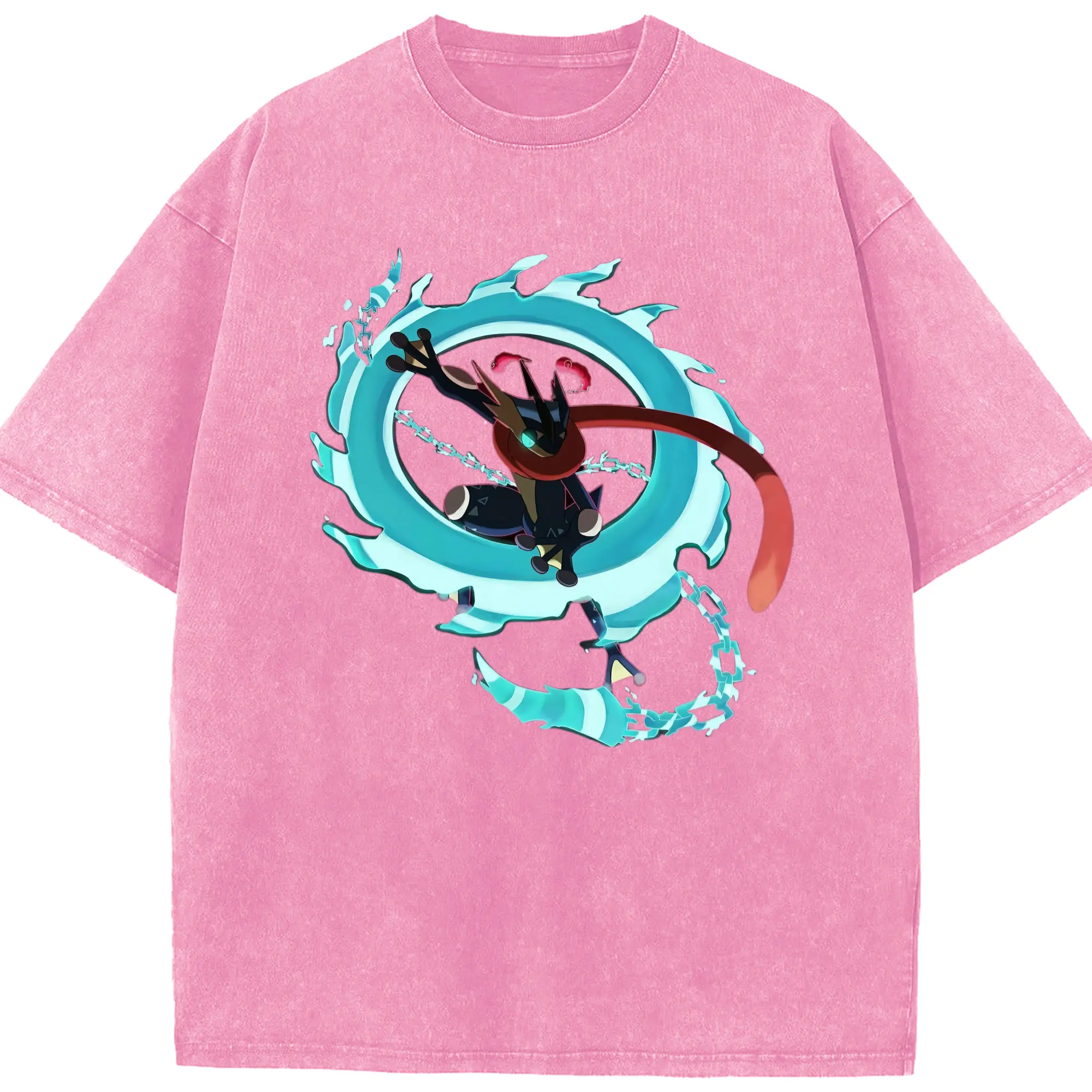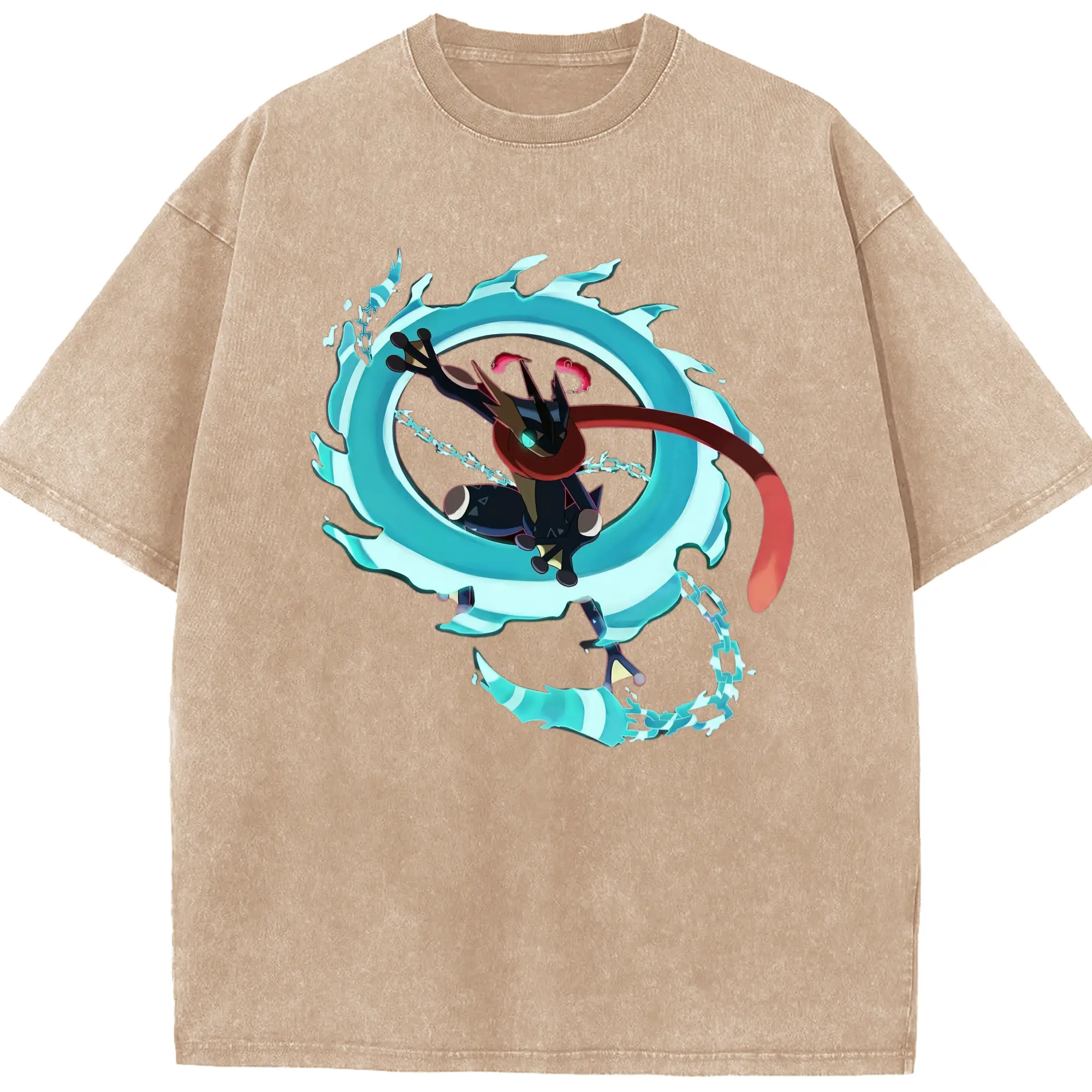 Greninja t shirt - Washed Vintage Look 230g Cotton Oversized T-Shirt With Front Heat Transfer Print – Soft, Lightweight, Stylish Fit – Comfortable Casual Wear For Sports & Everyday Use