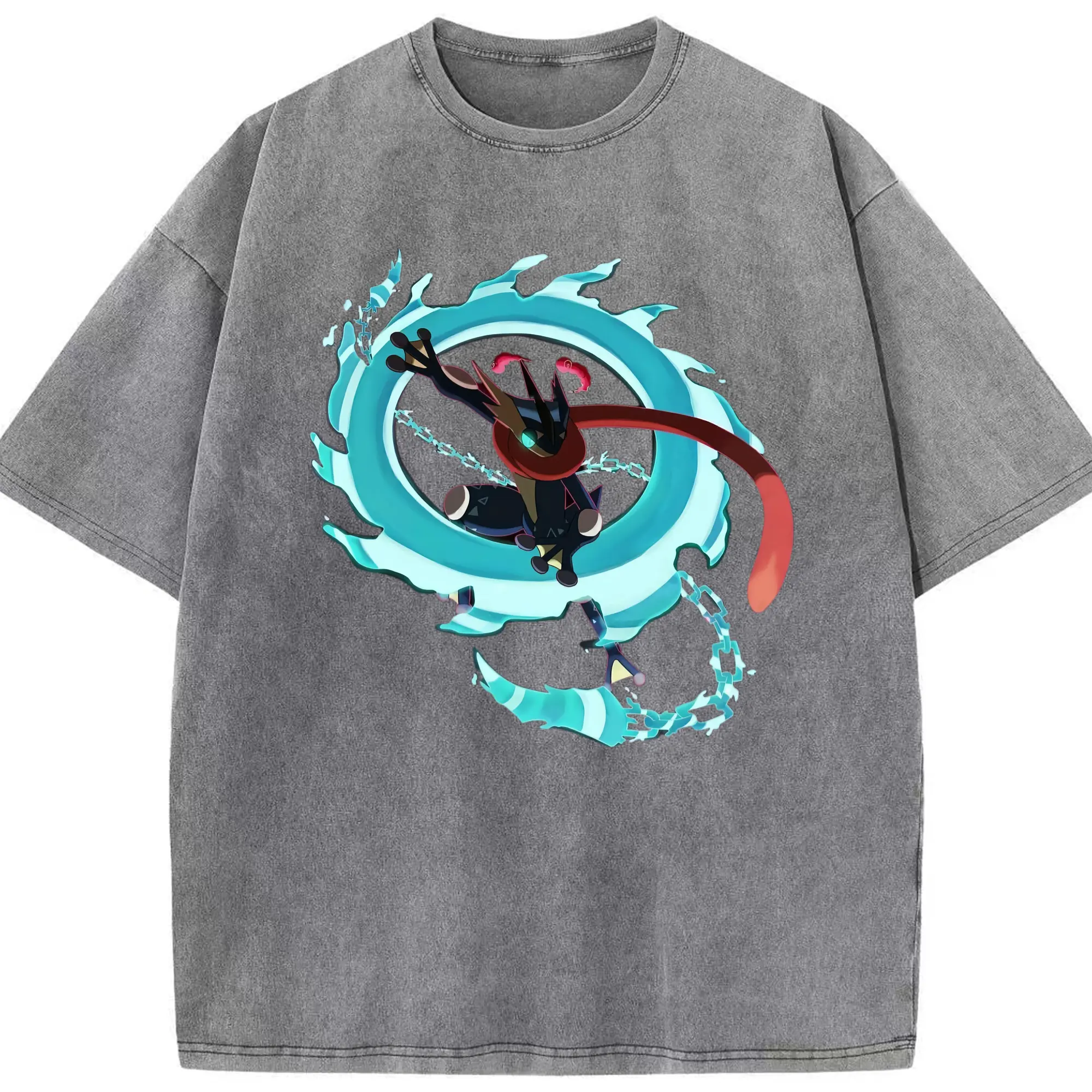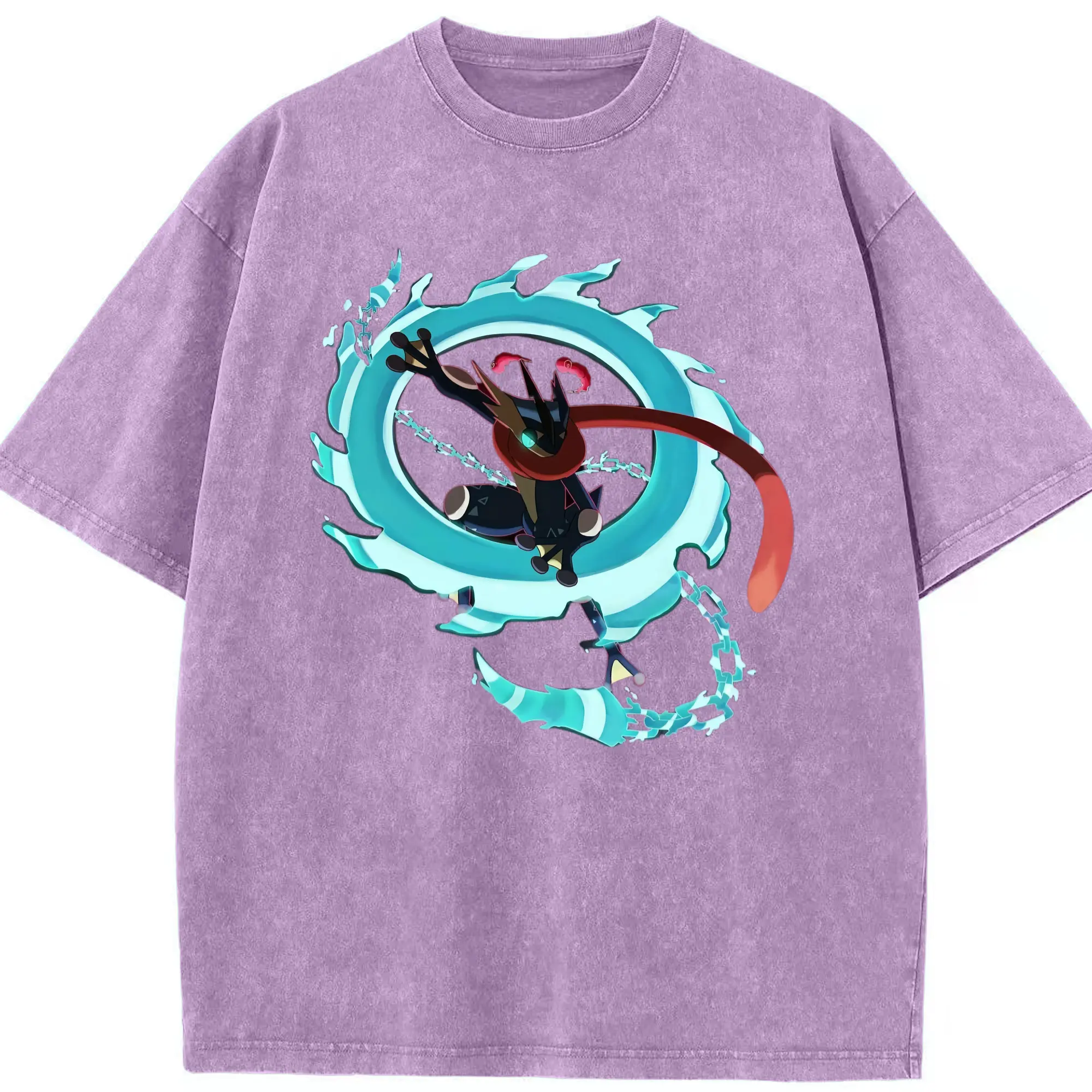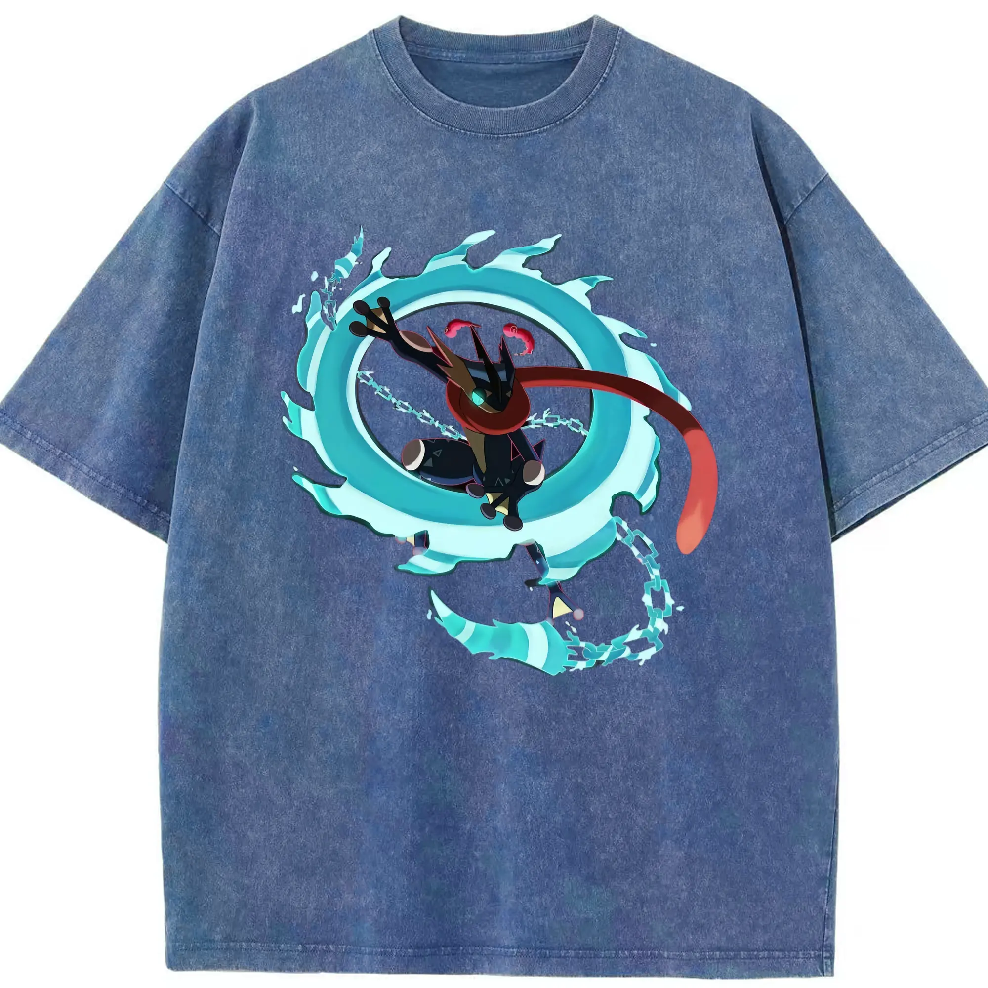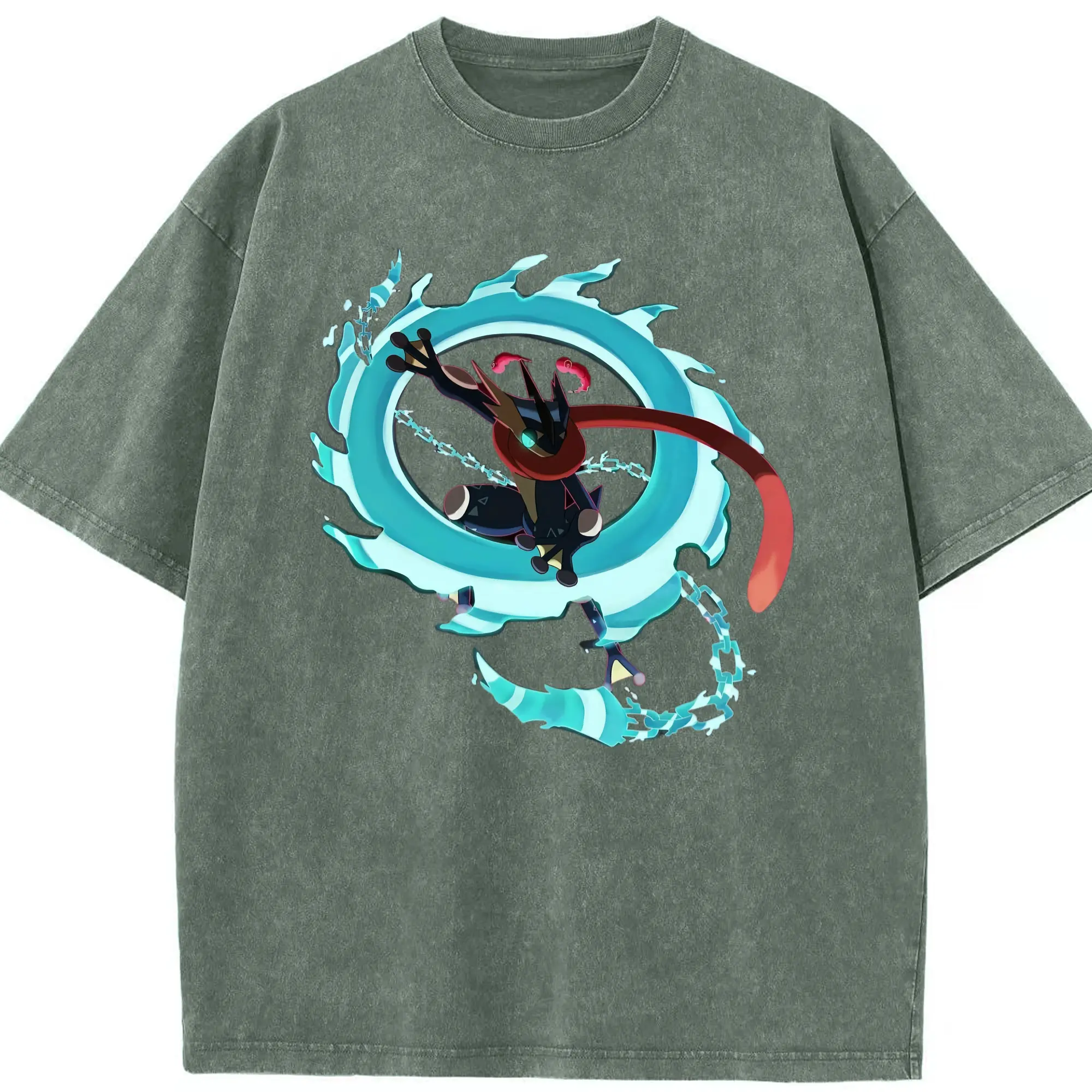 Greninja t shirt - Washed Vintage Look 230g Cotton Oversized T-Shirt With Front Heat Transfer Print – Soft, Lightweight, Stylish Fit – Comfortable Casual Wear For Sports & Everyday Use