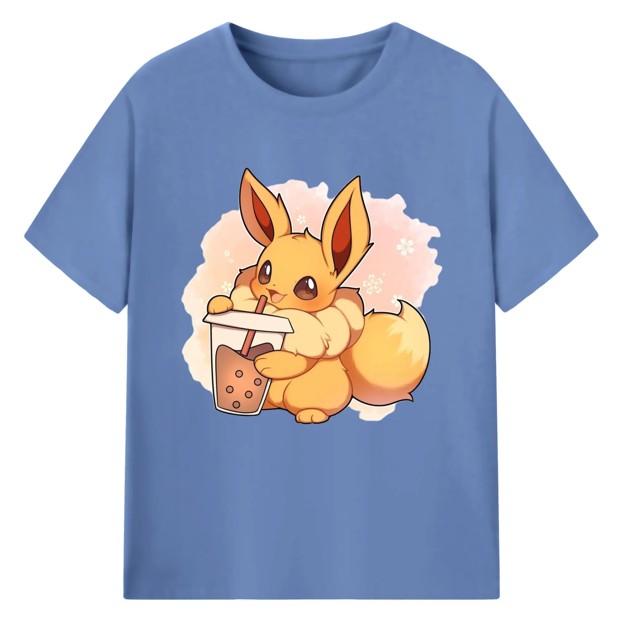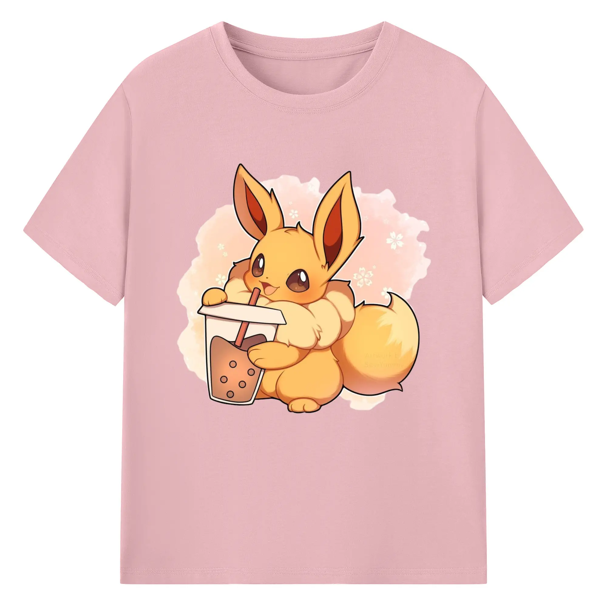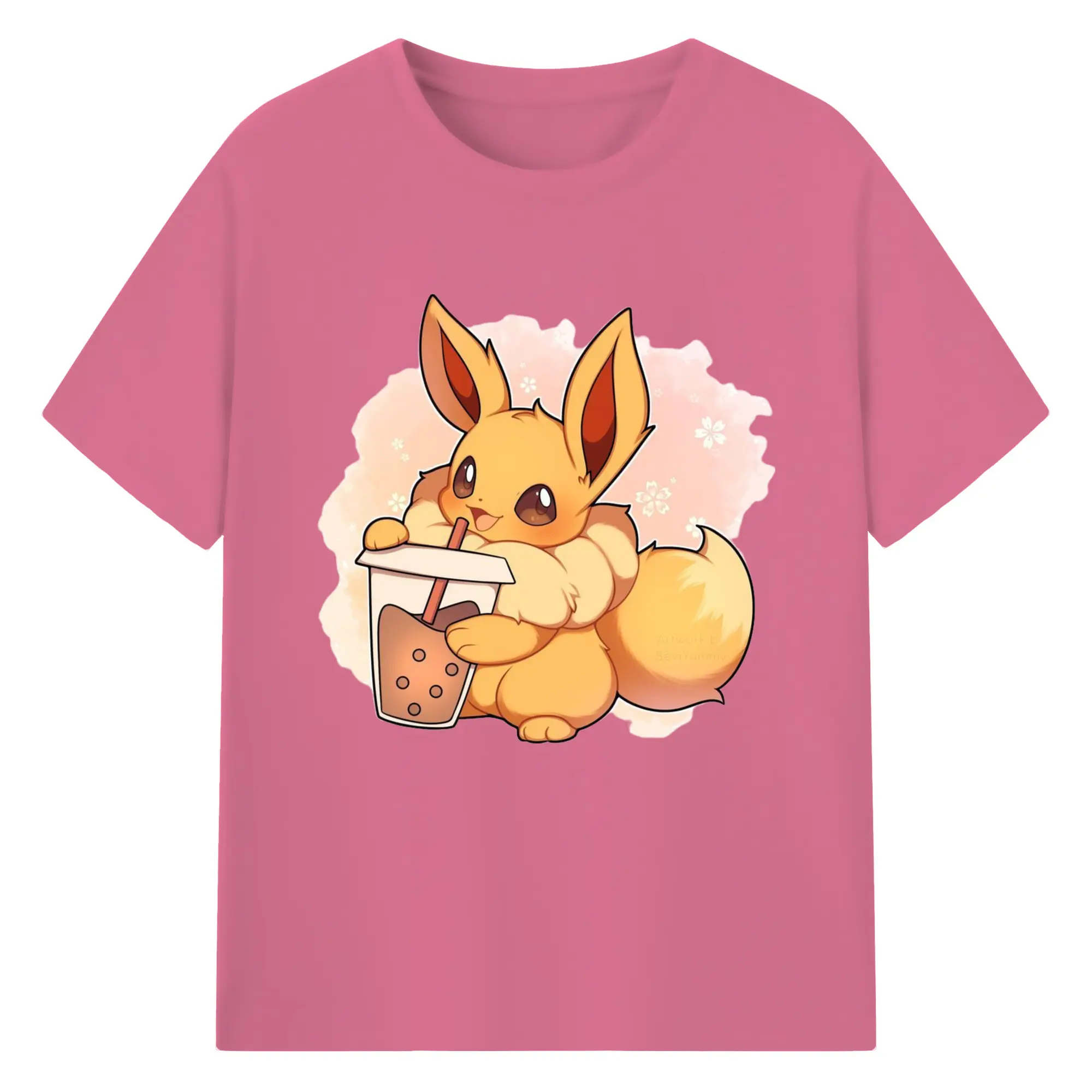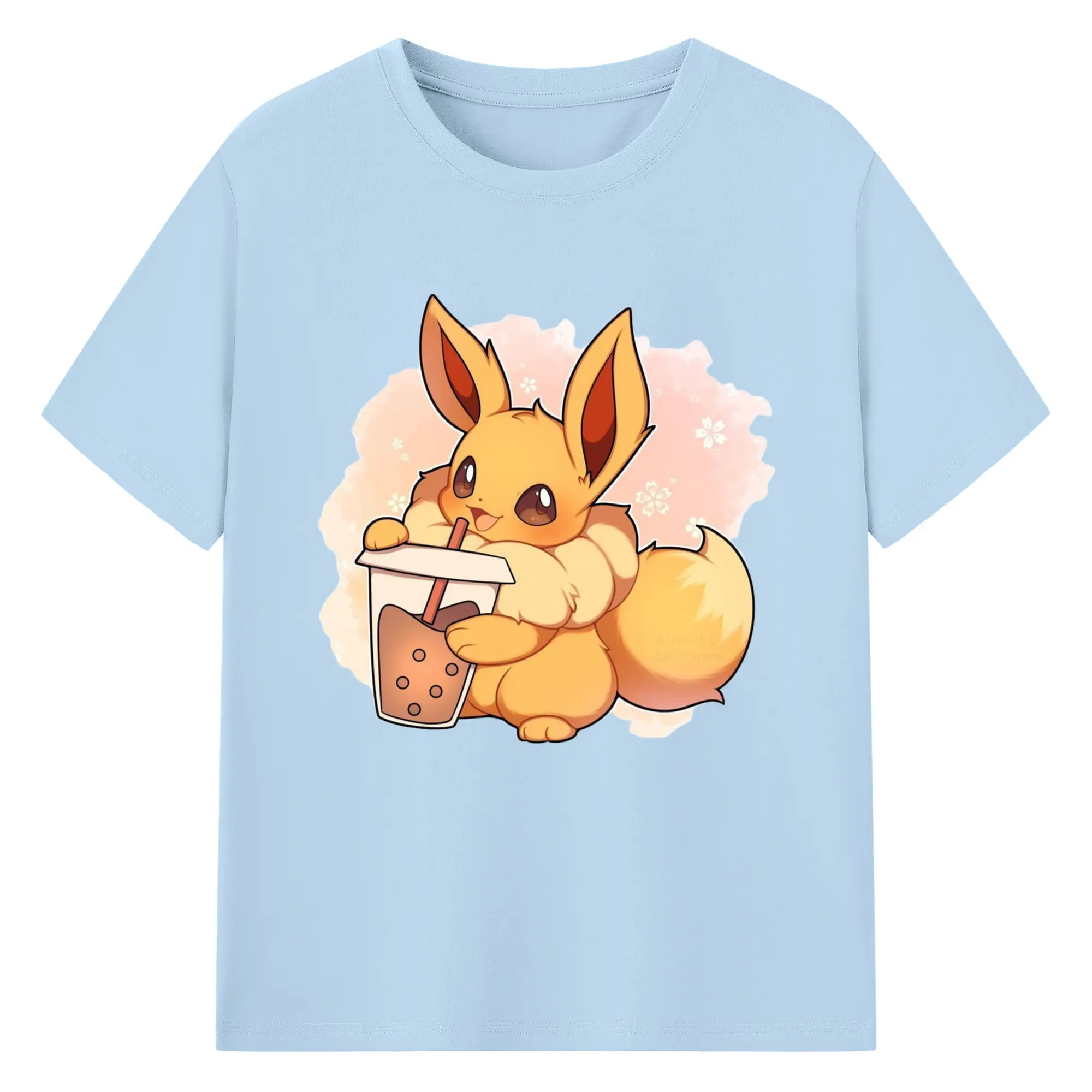 Gril pokemon eevee t-shirt - 180g Cotton T-Shirt With Front Heat Transfer Print – Soft, Lightweight, Fitted Design – Comfortable Casual Wear For Sports & Everyday Use
