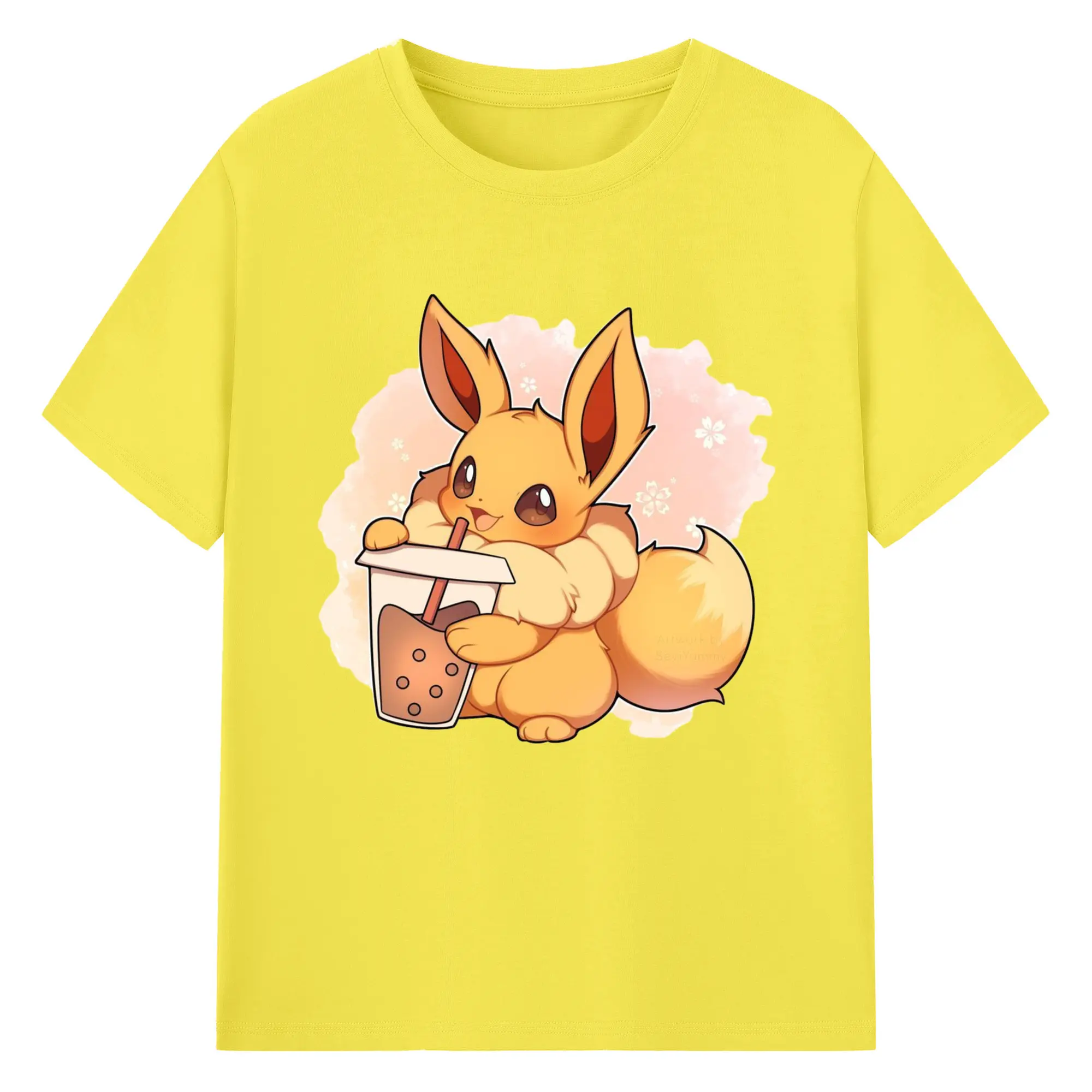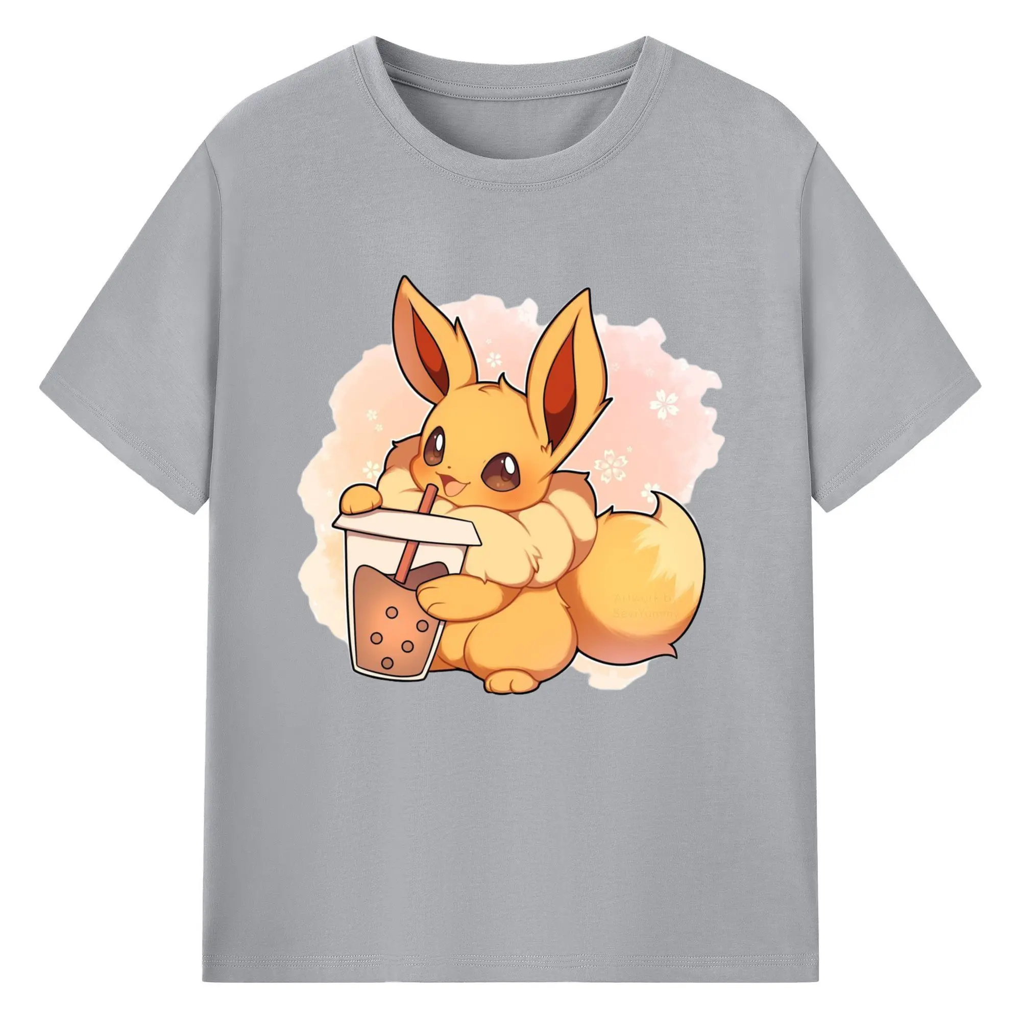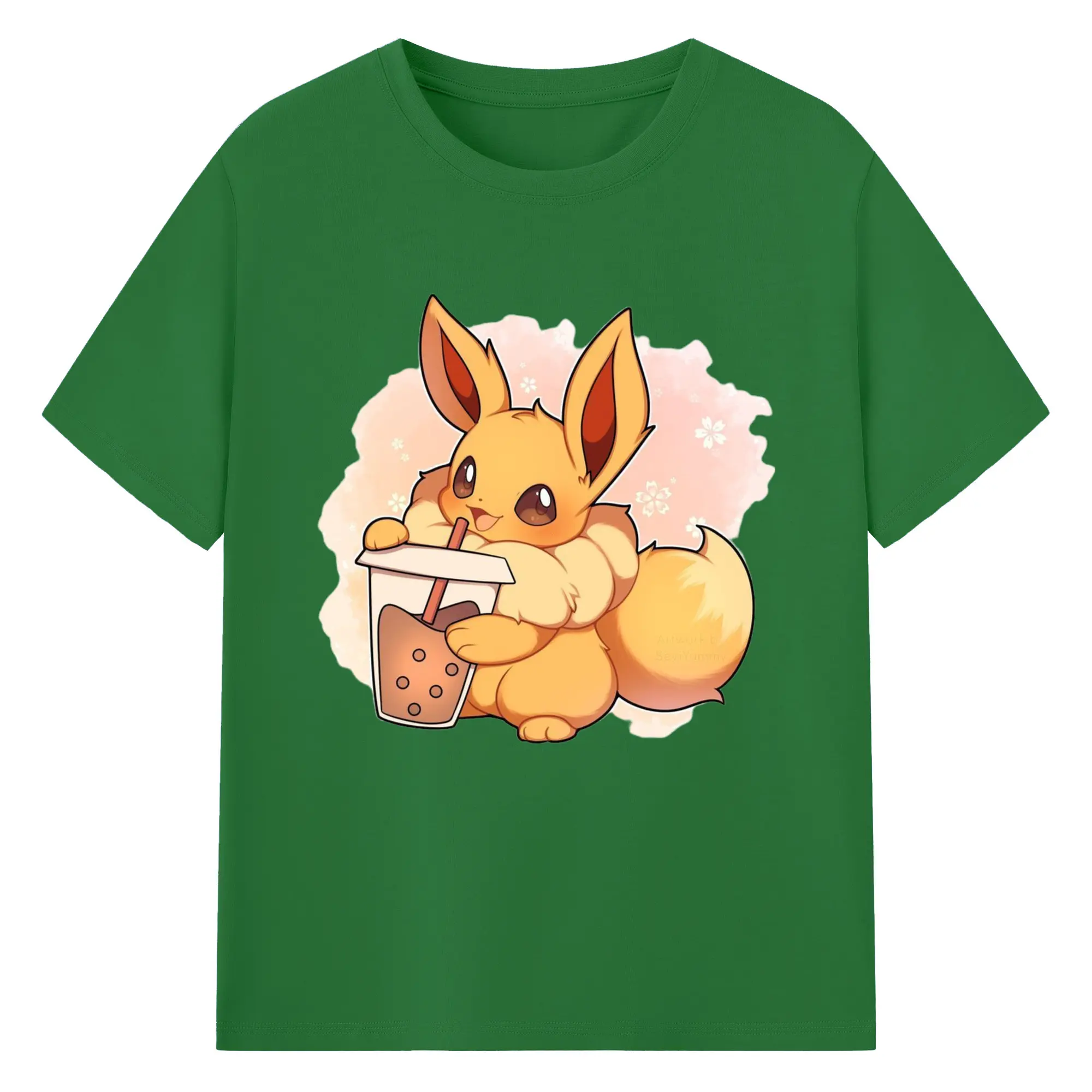 Gril pokemon eevee t-shirt - 180g Cotton T-Shirt With Front Heat Transfer Print – Soft, Lightweight, Fitted Design – Comfortable Casual Wear For Sports & Everyday Use