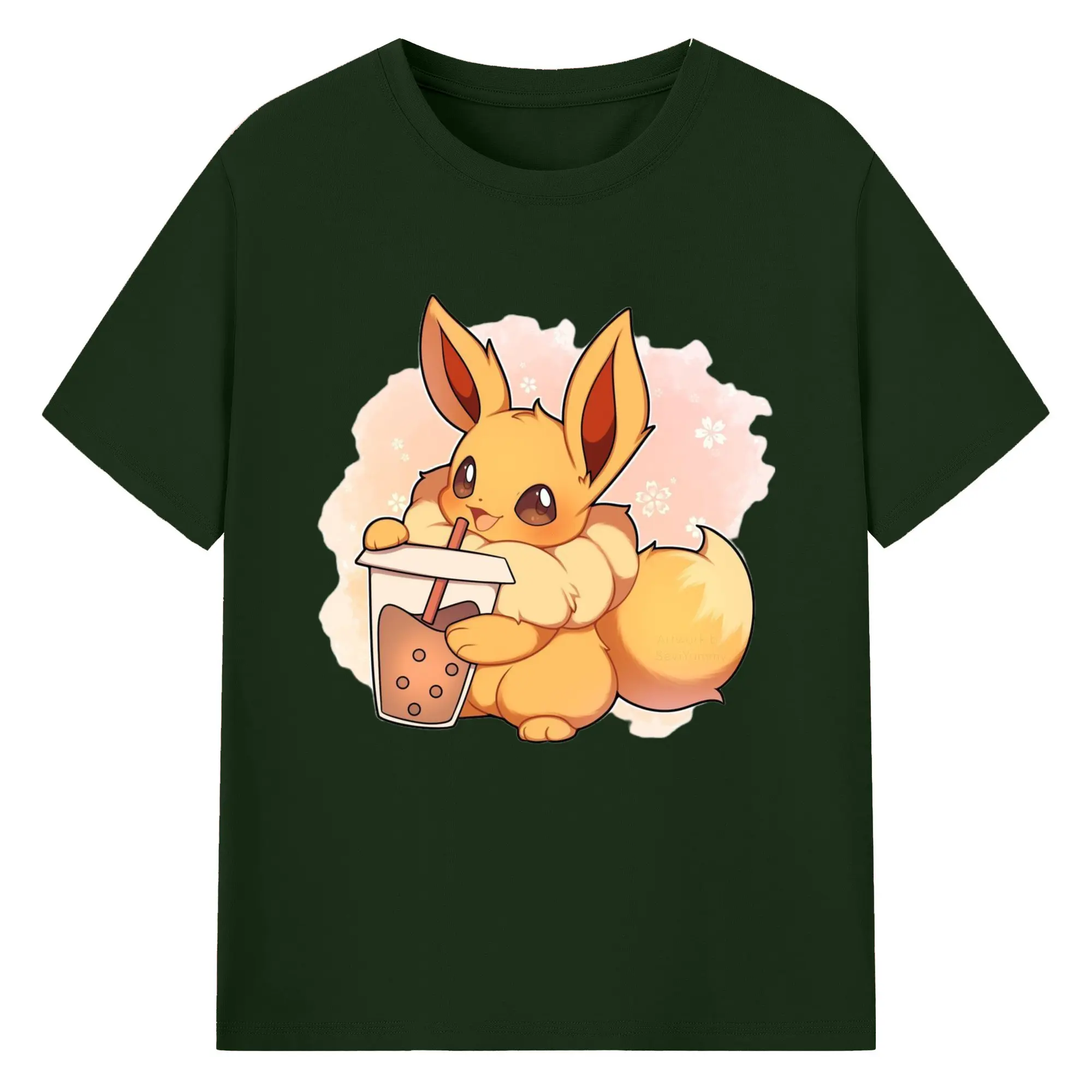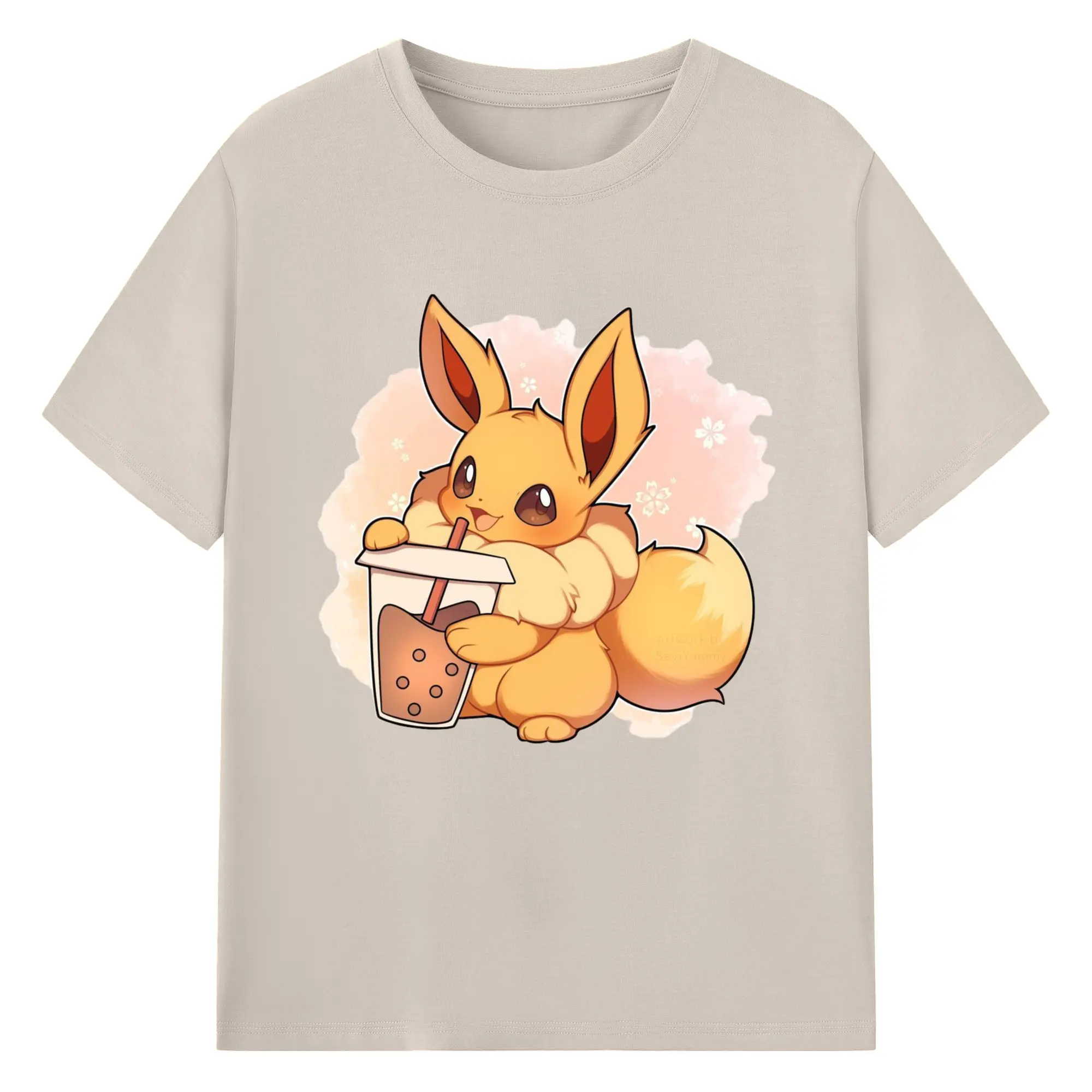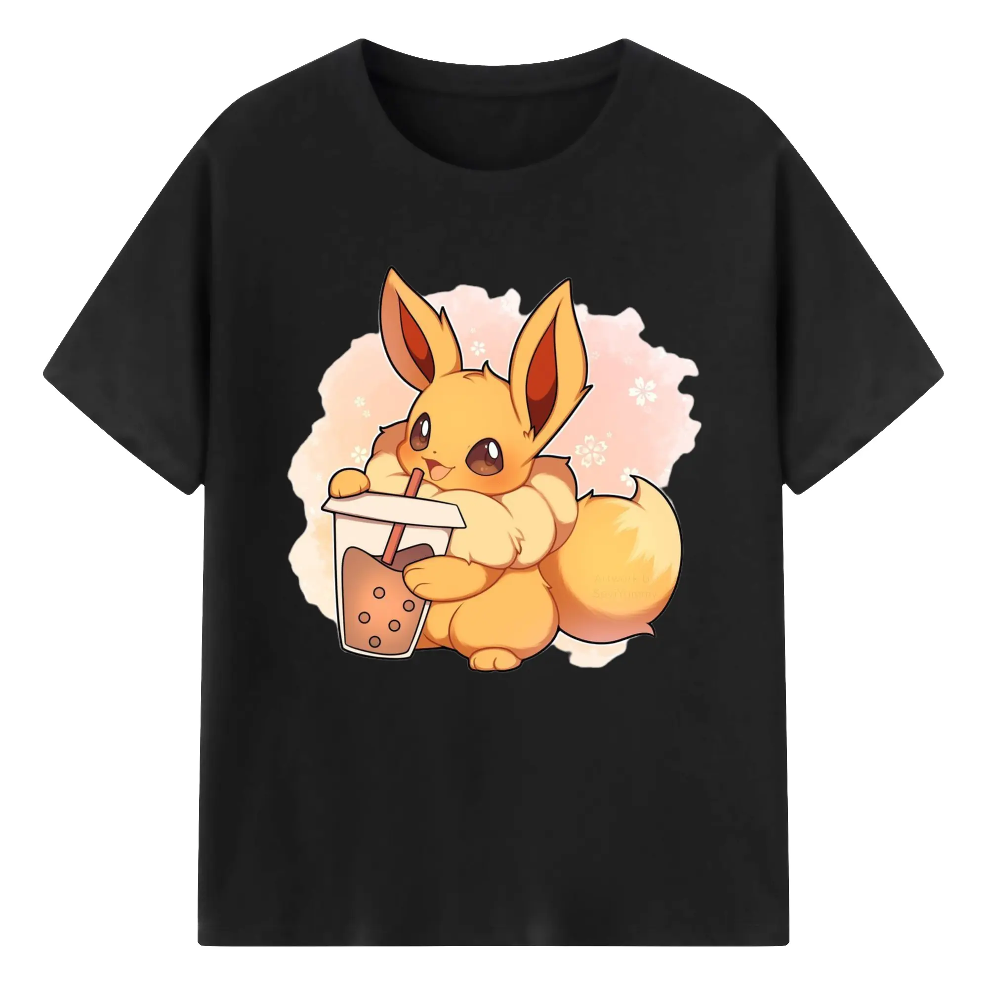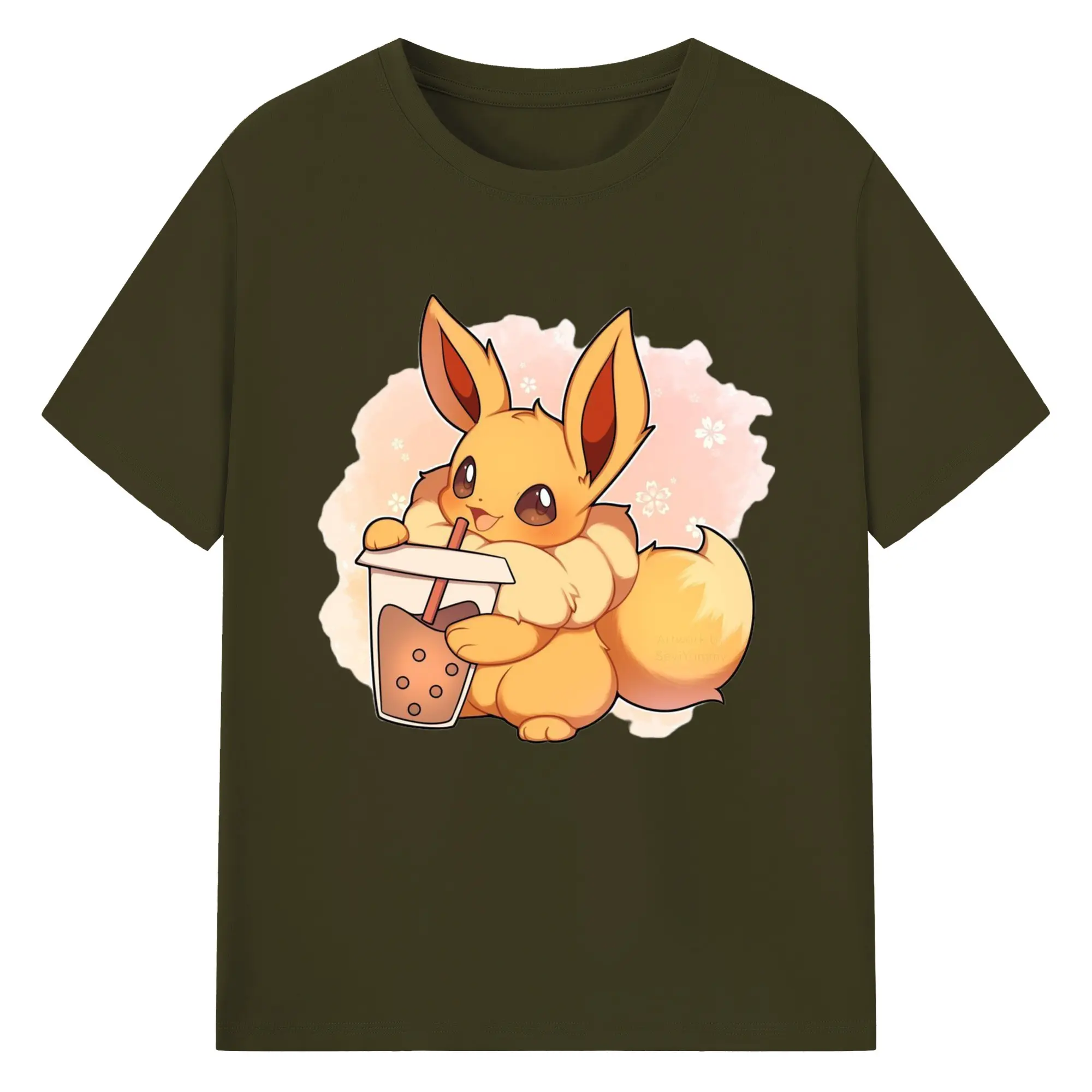 Gril pokemon eevee t-shirt - 180g Cotton T-Shirt With Front Heat Transfer Print – Soft, Lightweight, Fitted Design – Comfortable Casual Wear For Sports & Everyday Use