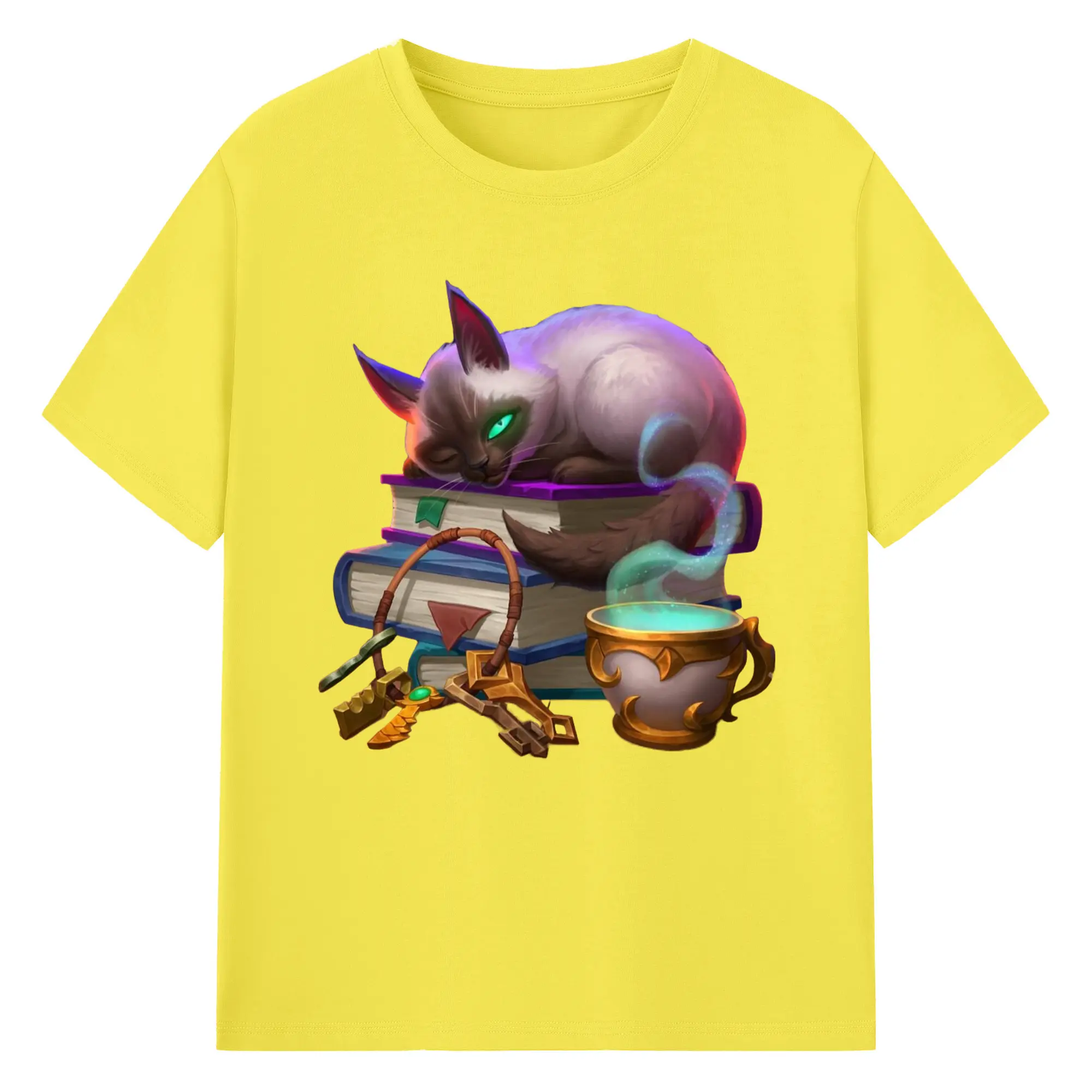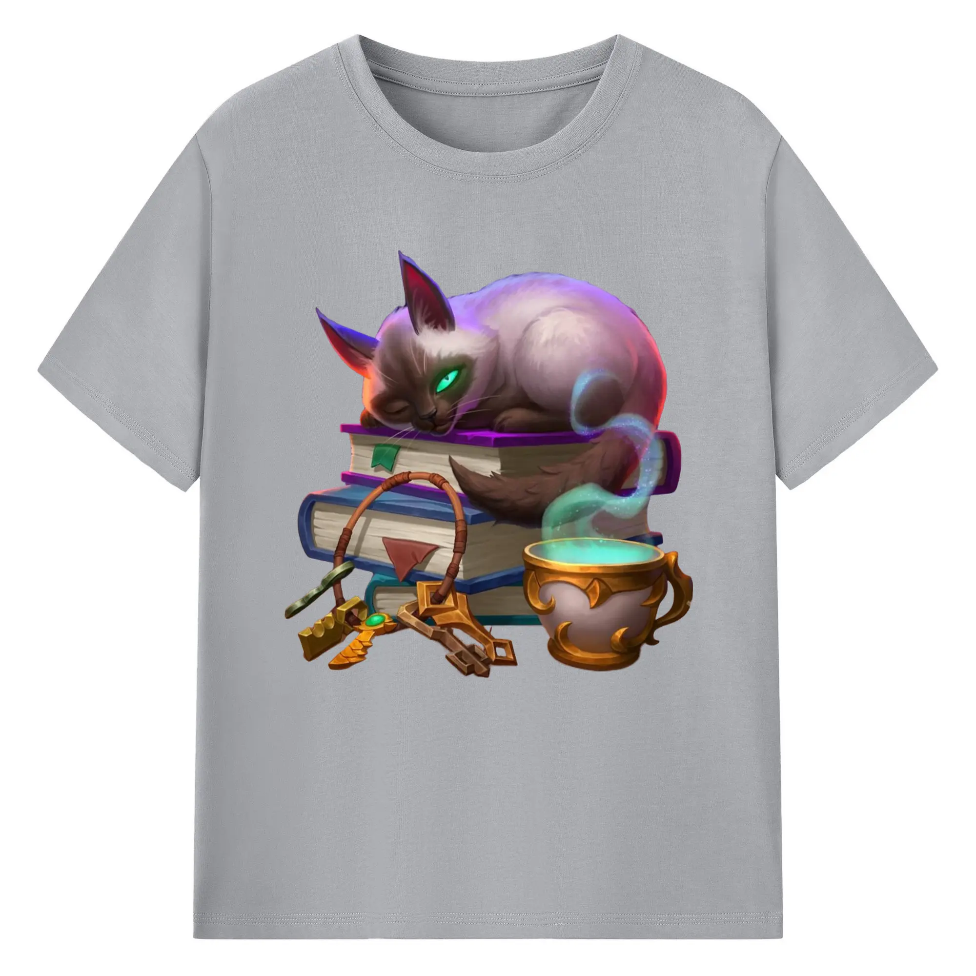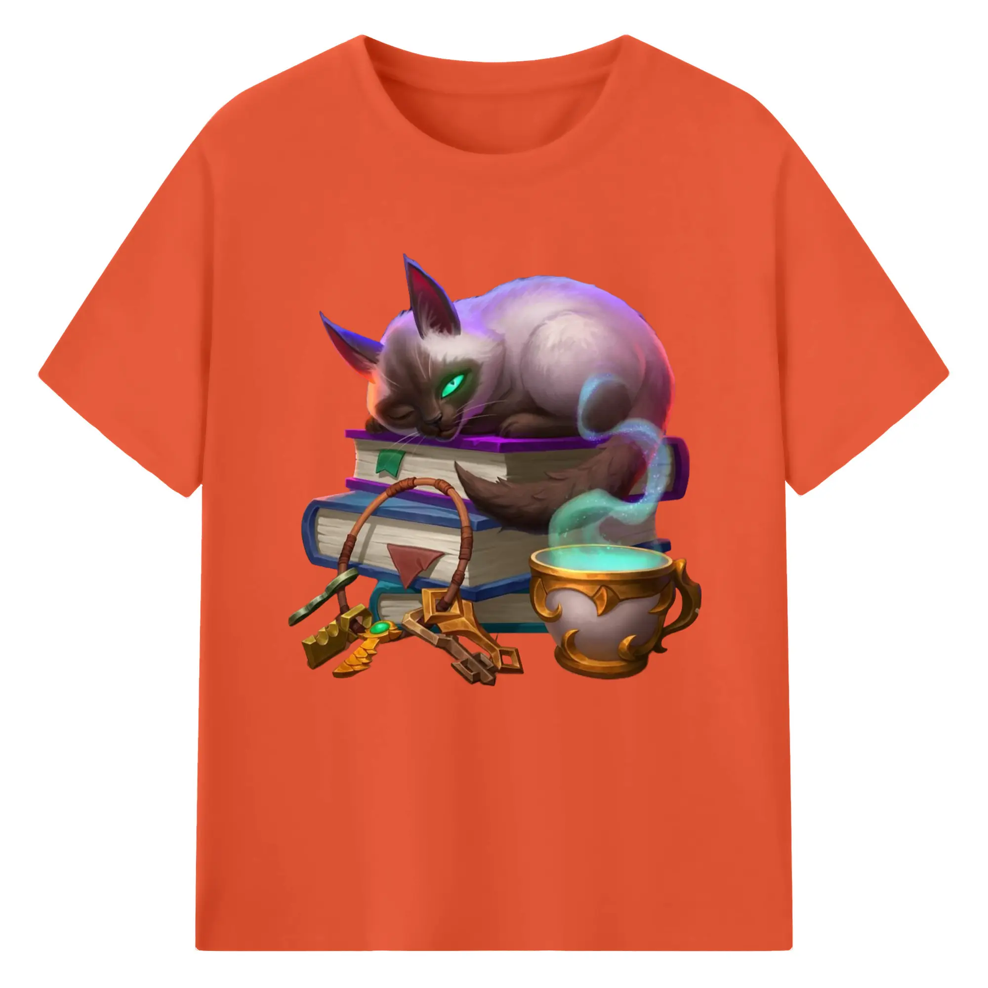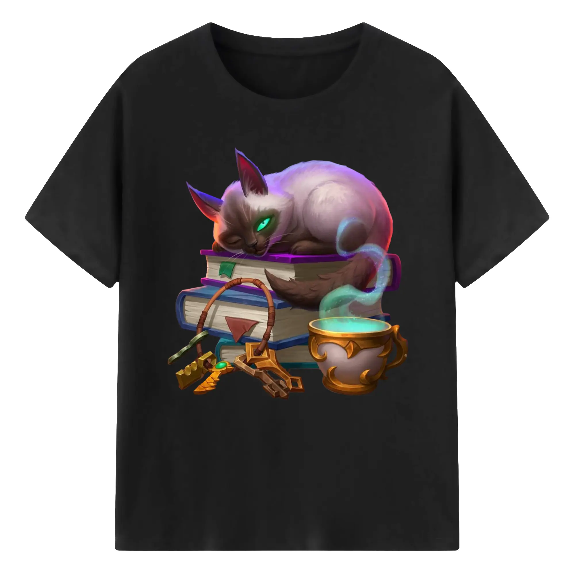 Hearthstone cat tee - 180g Cotton T-Shirt With Front Heat Transfer Print – Soft, Lightweight, Fitted Design – Comfortable Casual Wear For Sports & Everyday Use