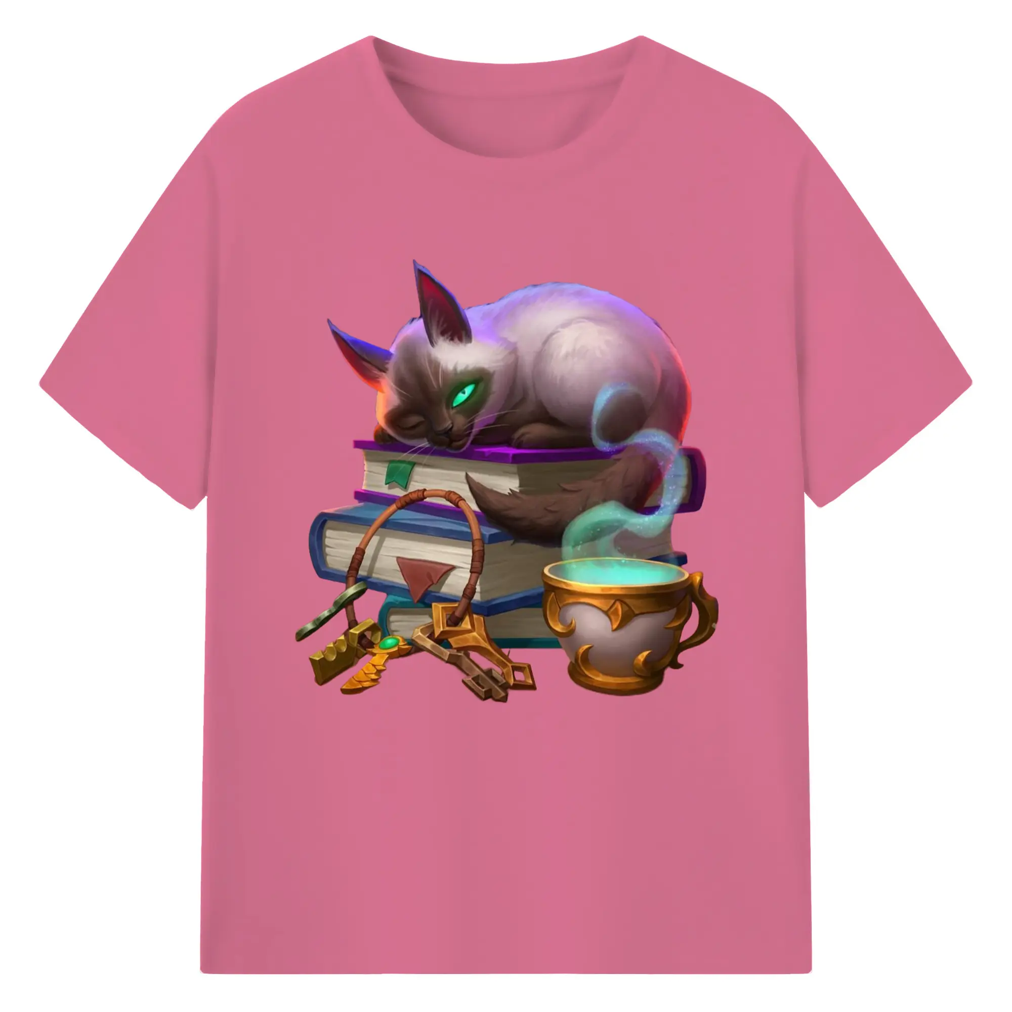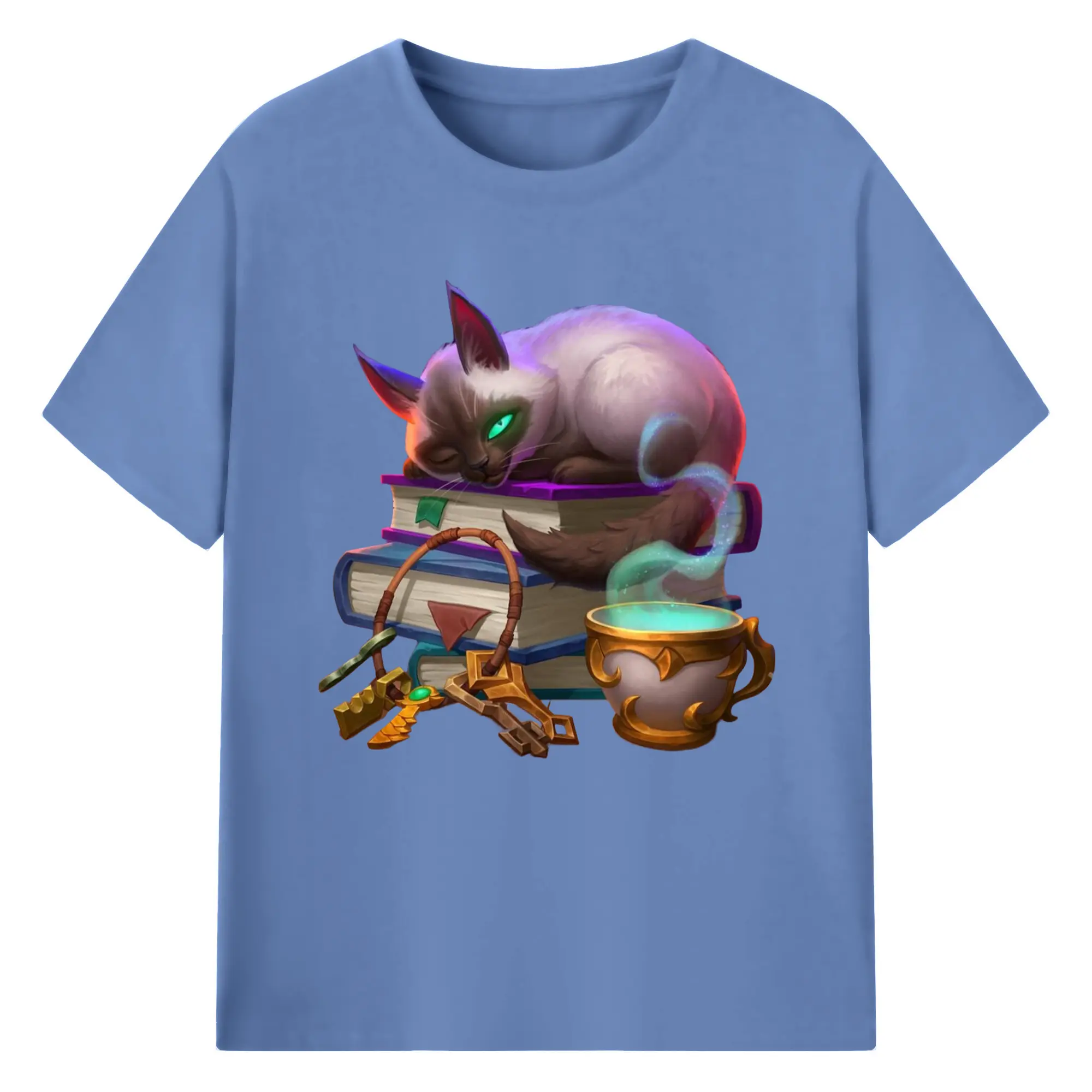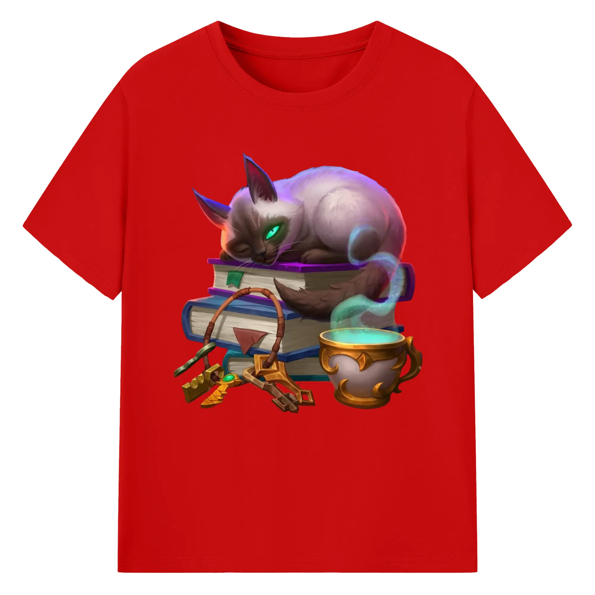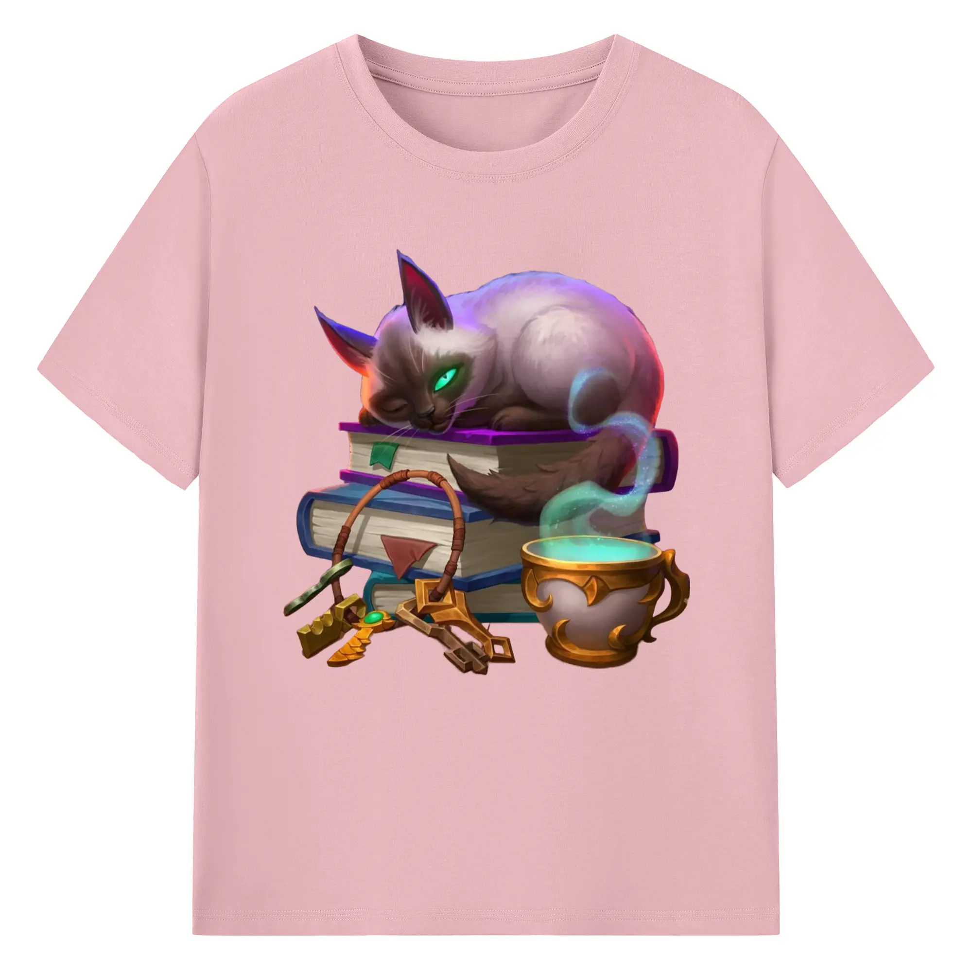 Hearthstone cat tee - 180g Cotton T-Shirt With Front Heat Transfer Print – Soft, Lightweight, Fitted Design – Comfortable Casual Wear For Sports & Everyday Use