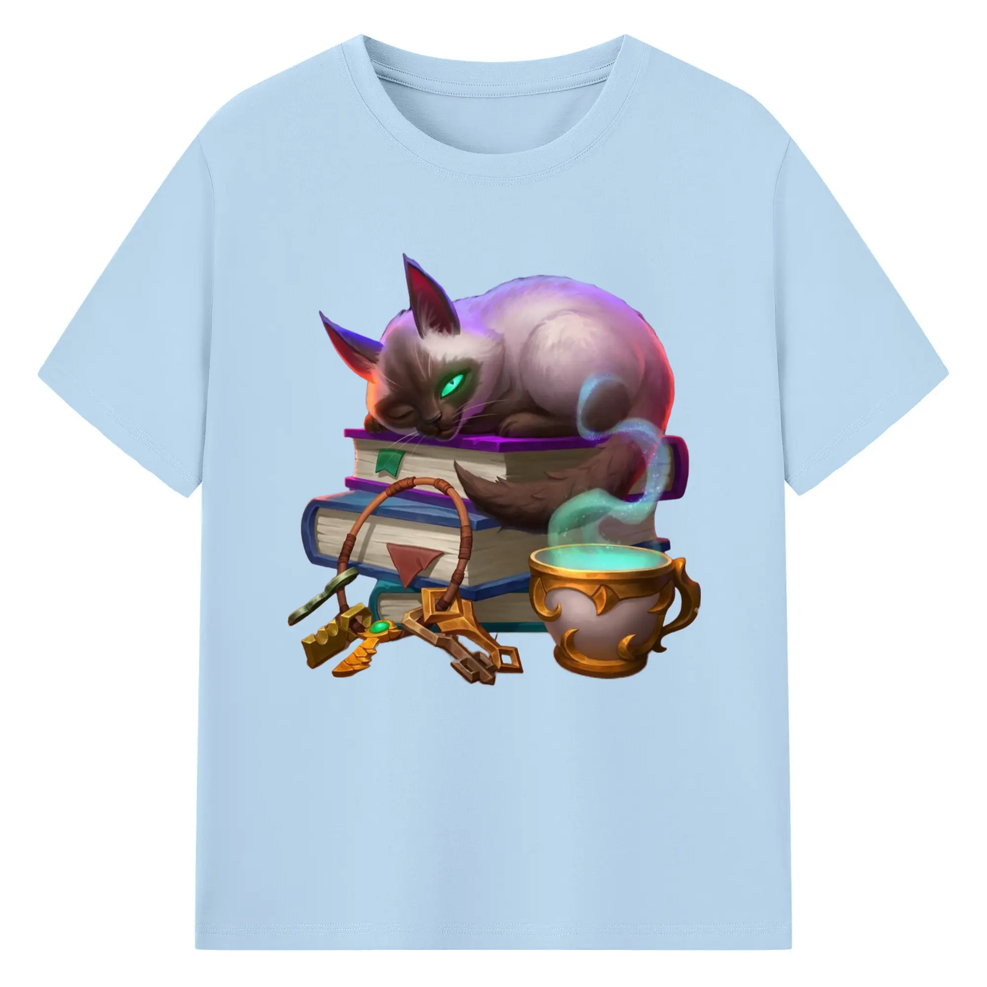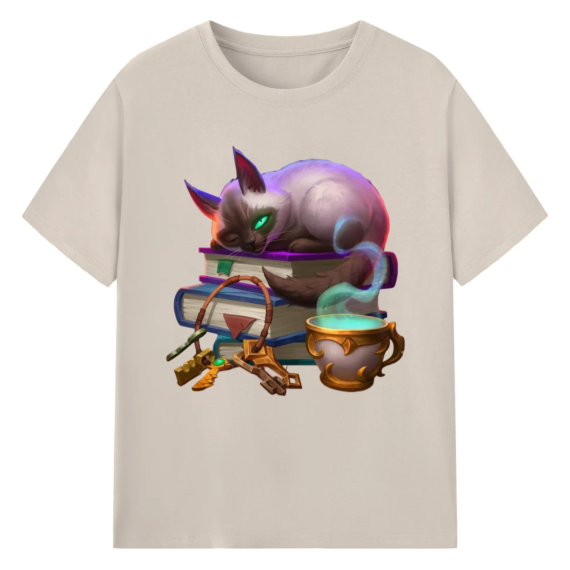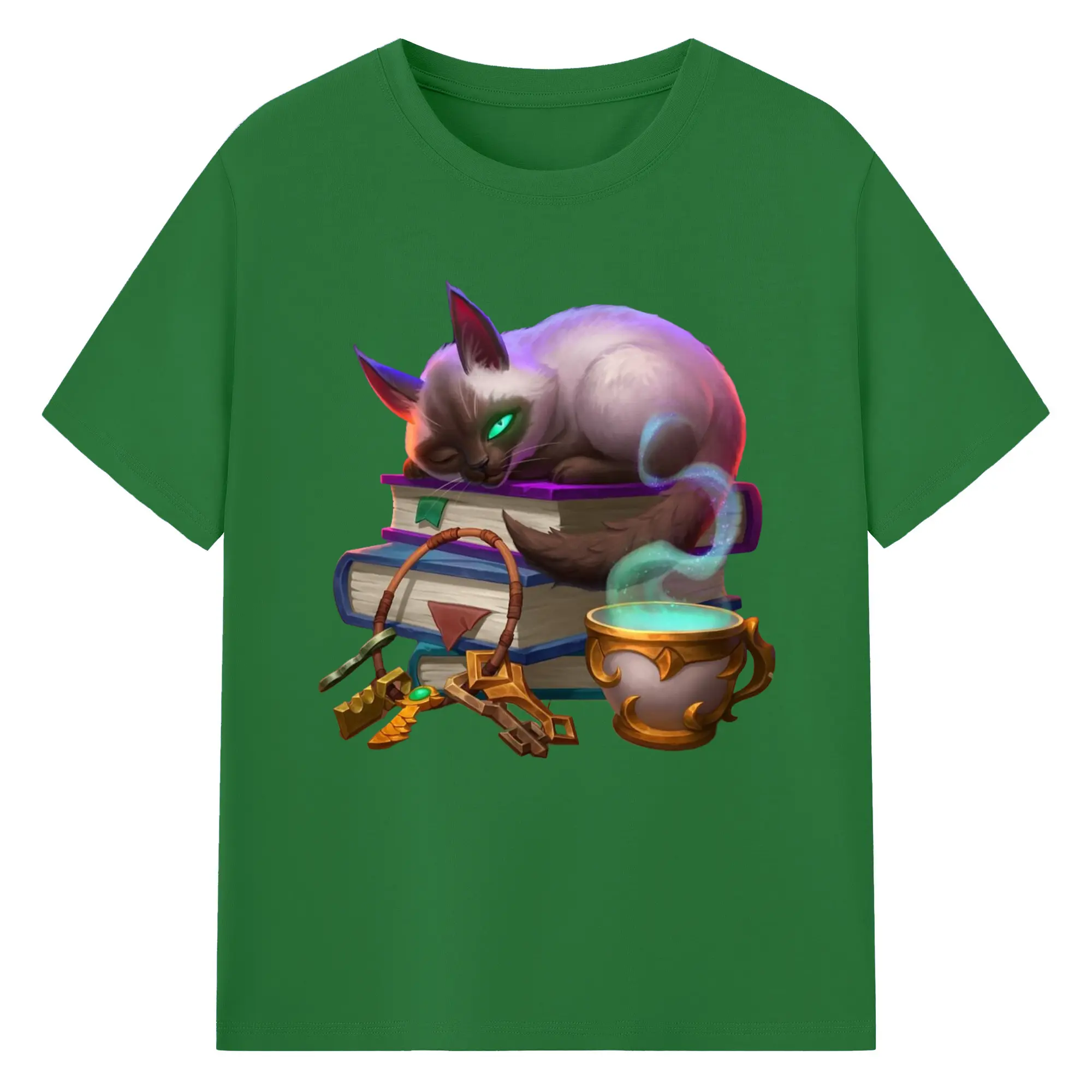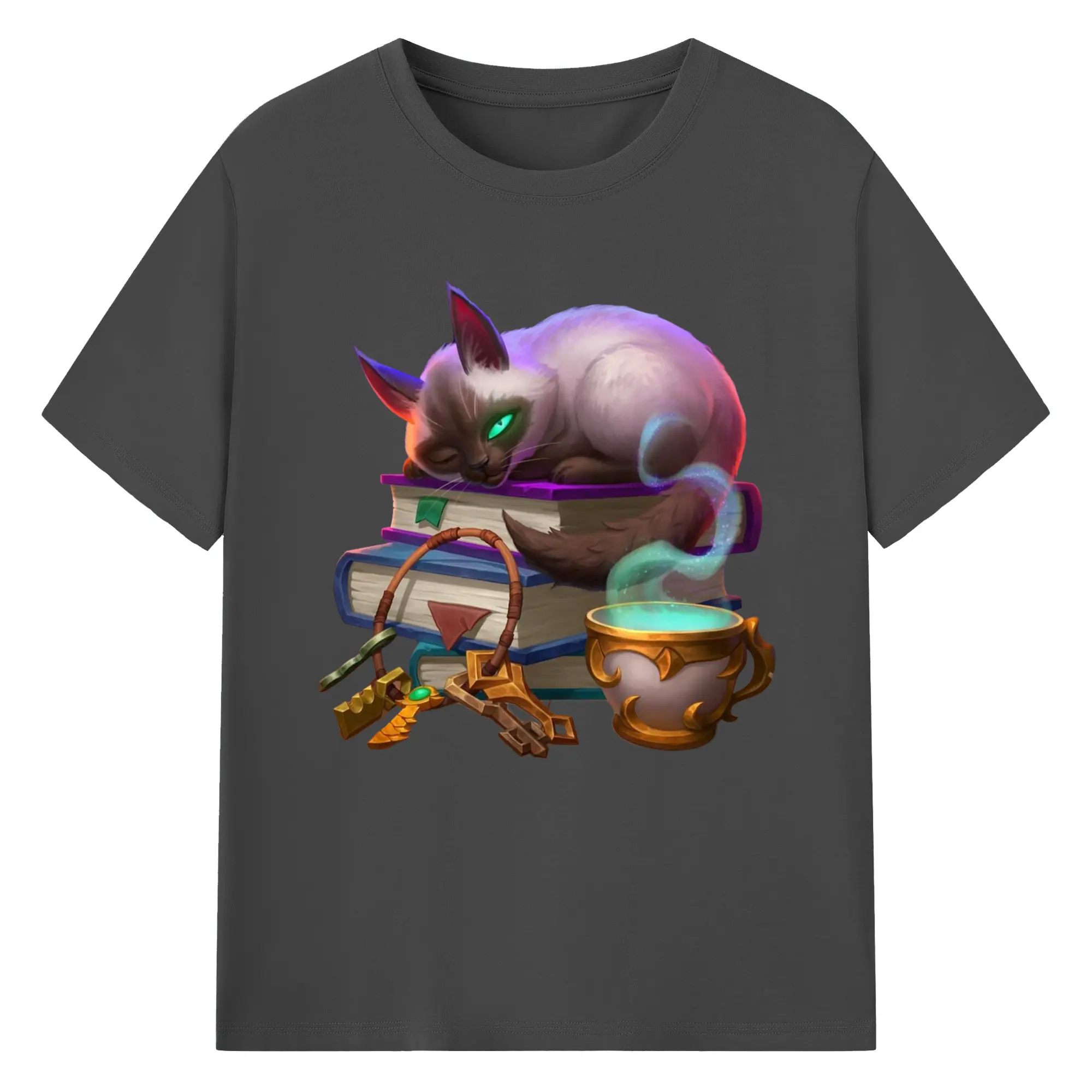 Hearthstone cat tee - 180g Cotton T-Shirt With Front Heat Transfer Print – Soft, Lightweight, Fitted Design – Comfortable Casual Wear For Sports & Everyday Use