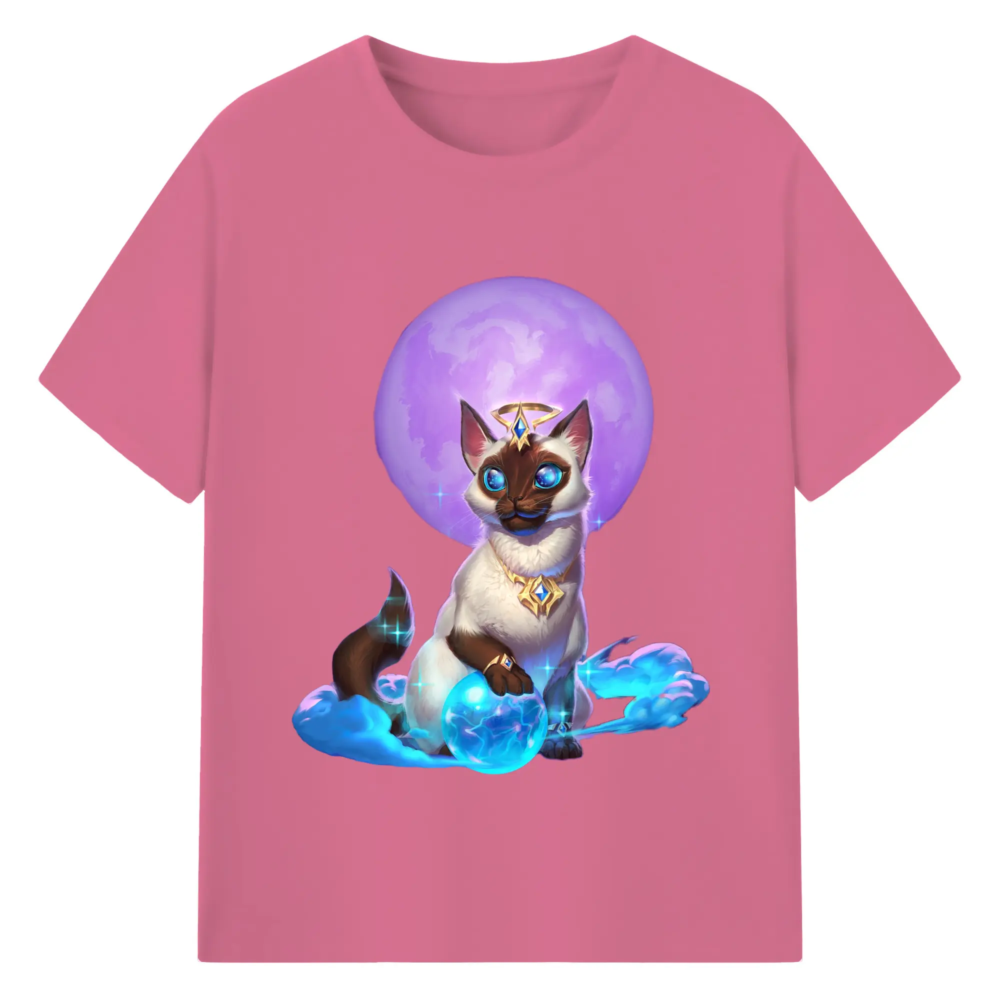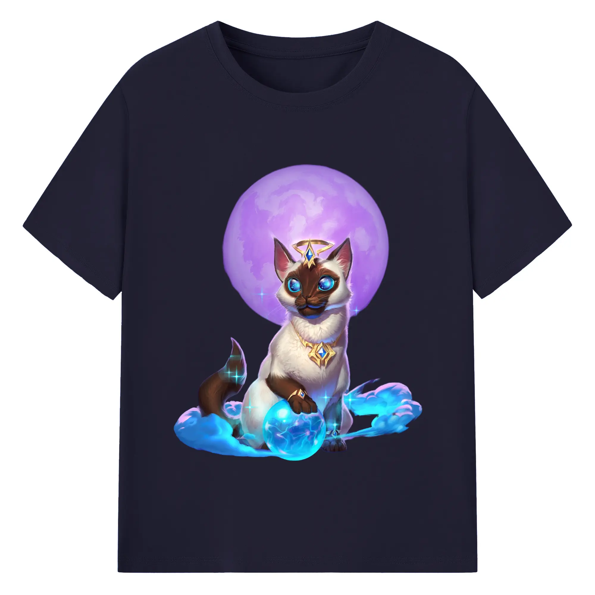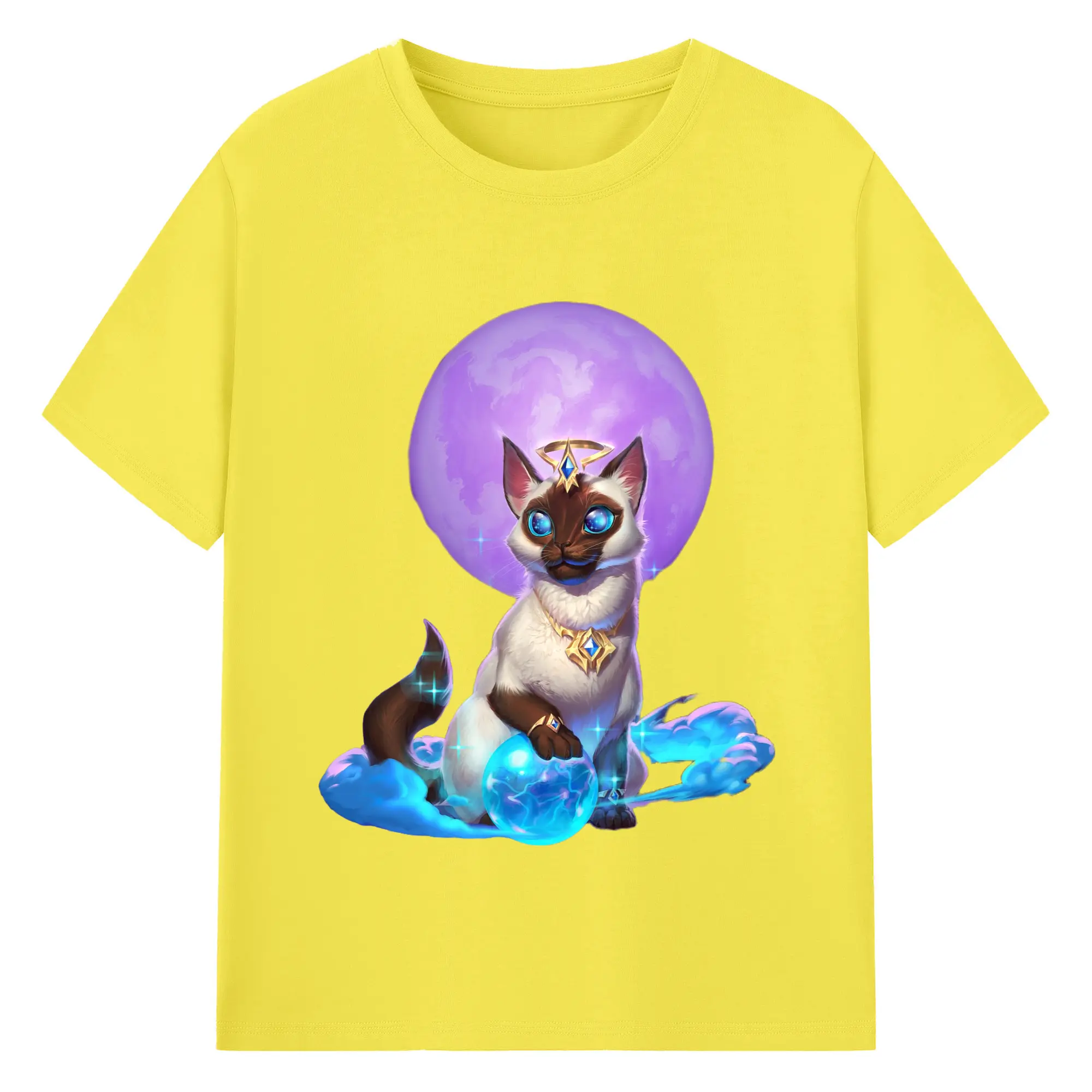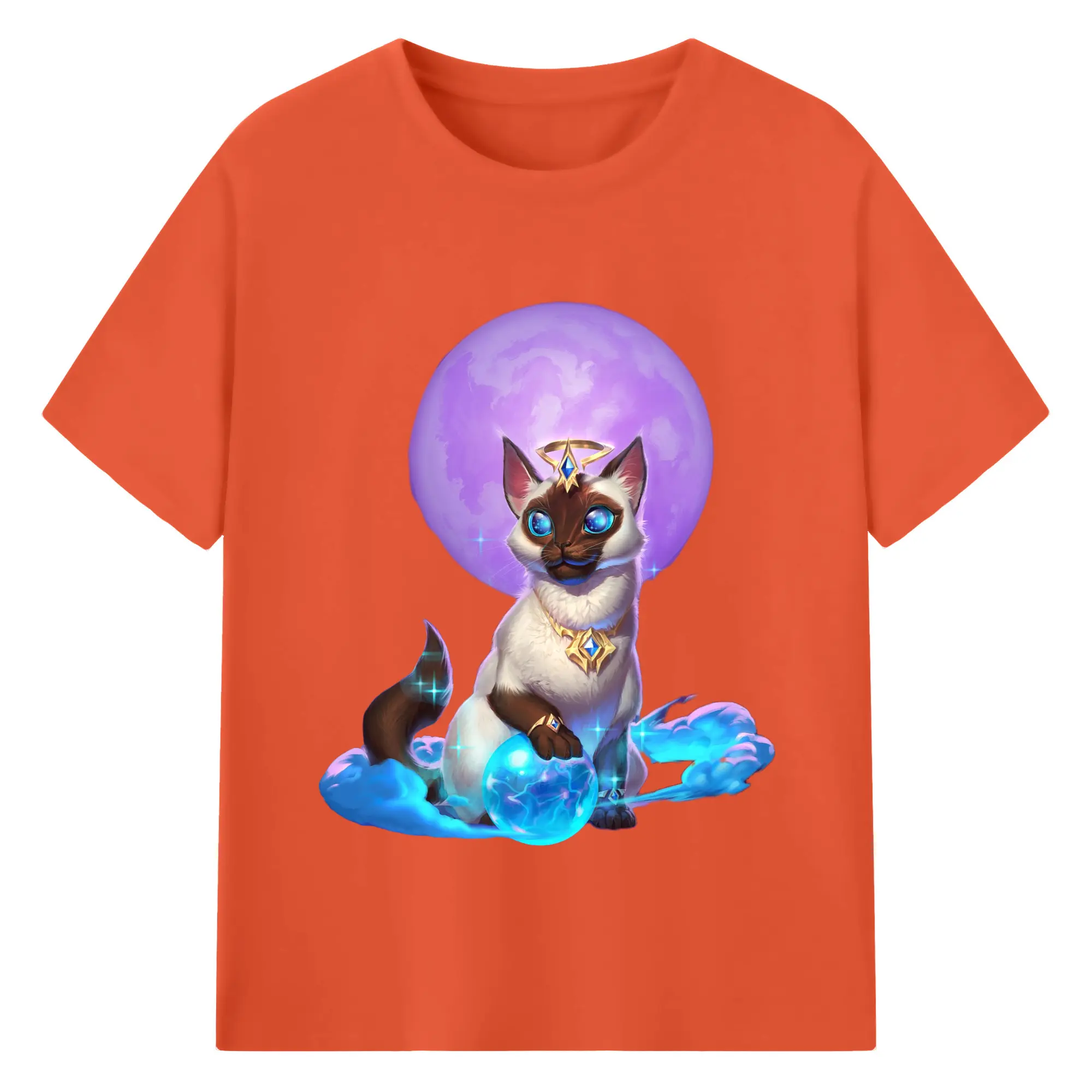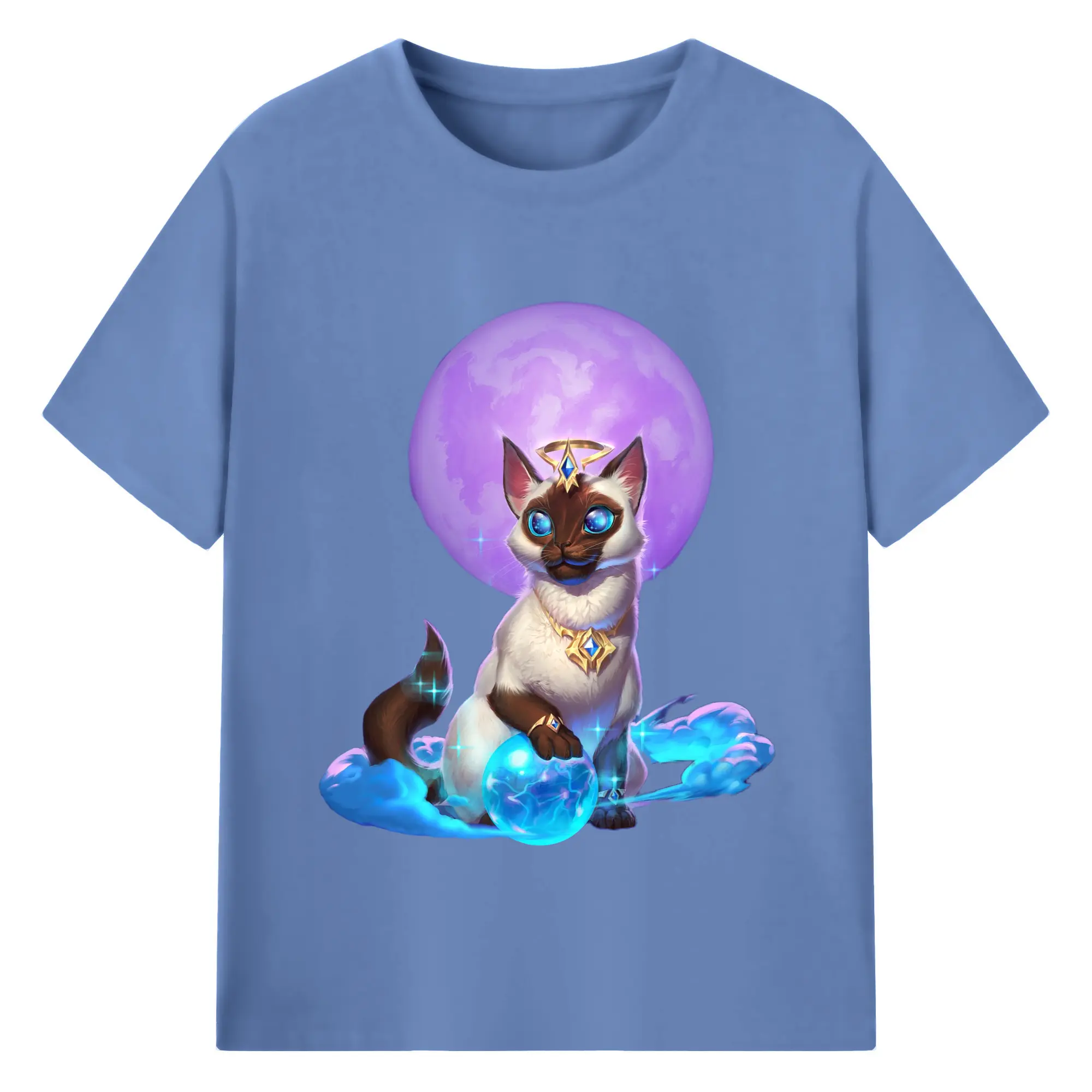 Hearthstone cat t-shirt - 180g Cotton T-Shirt With Front Heat Transfer Print – Soft, Lightweight, Fitted Design – Comfortable Casual Wear For Sports & Everyday Use