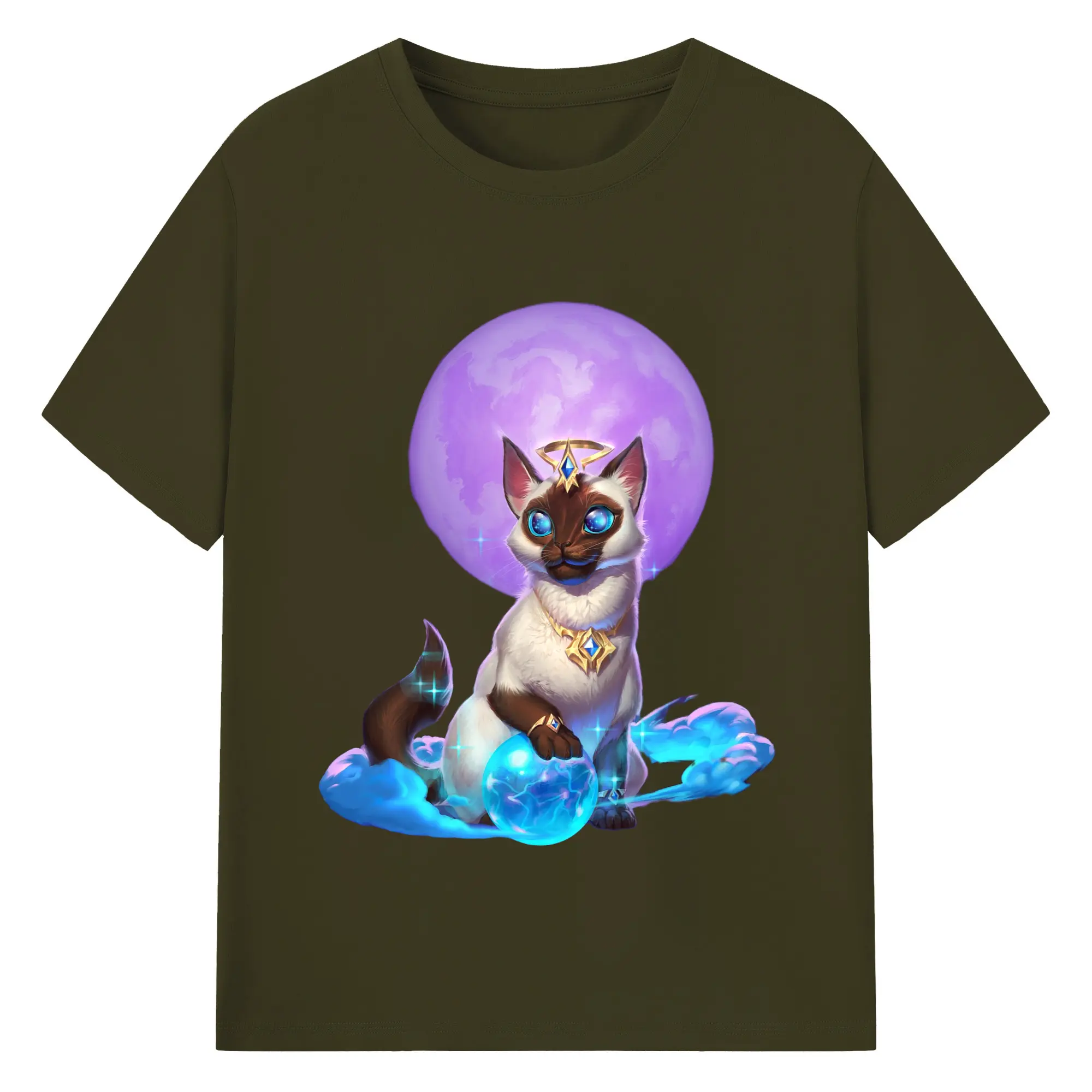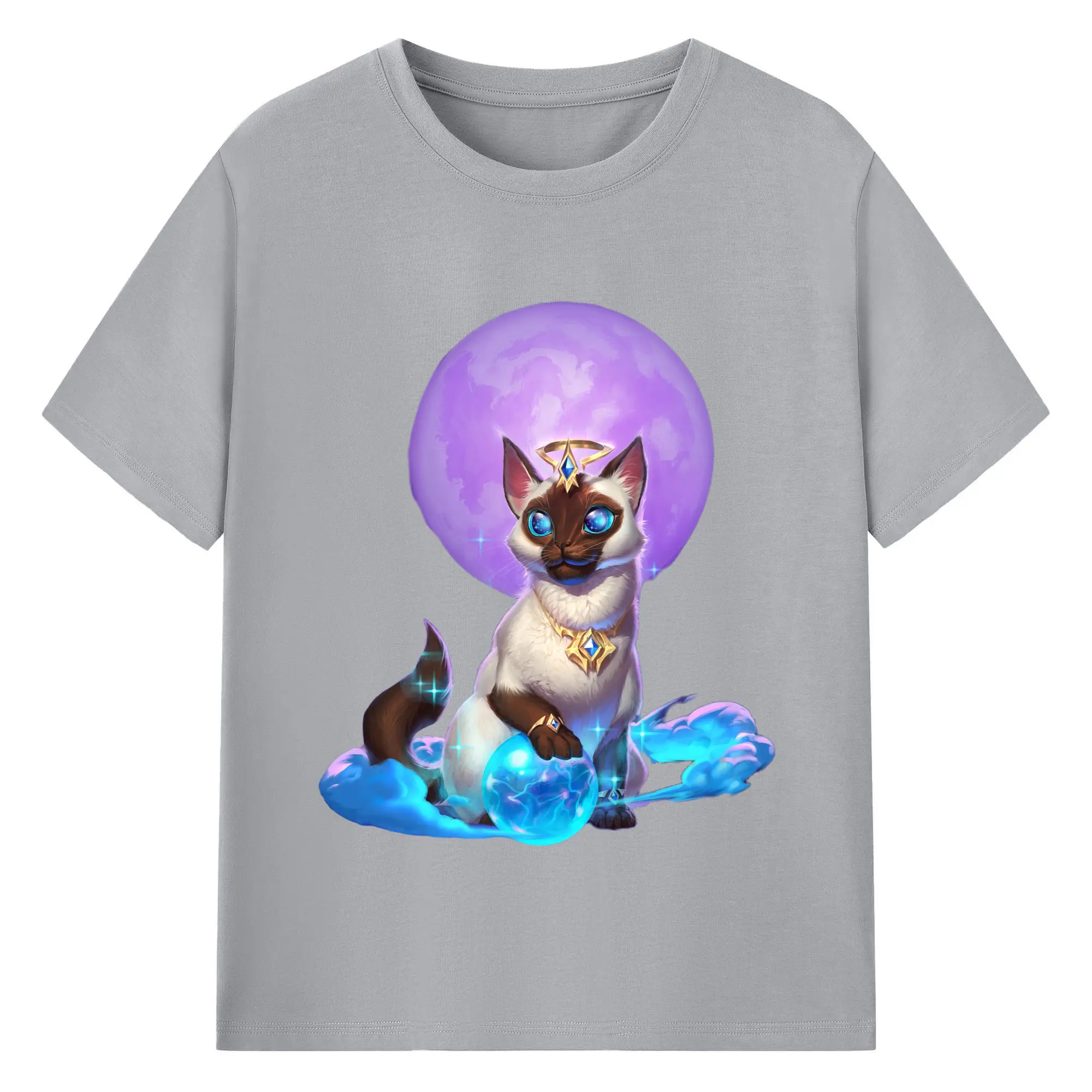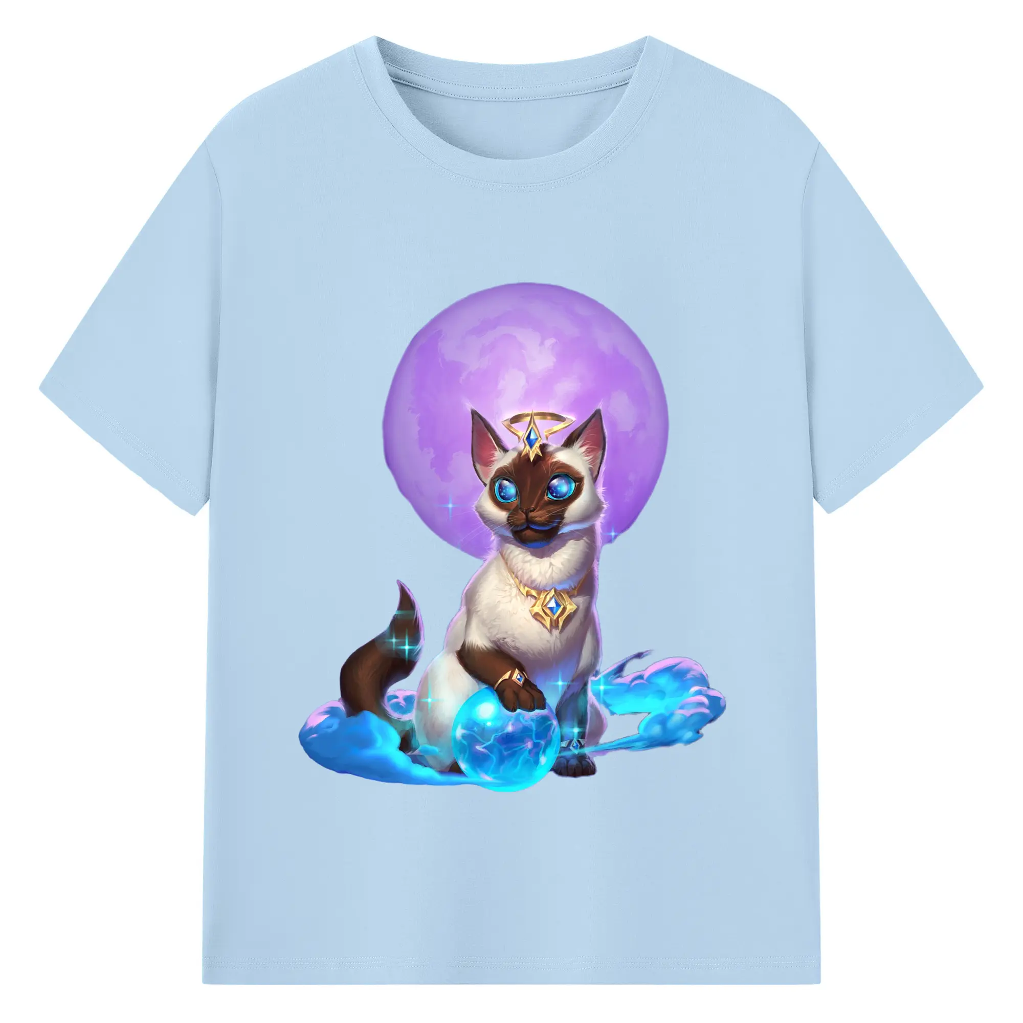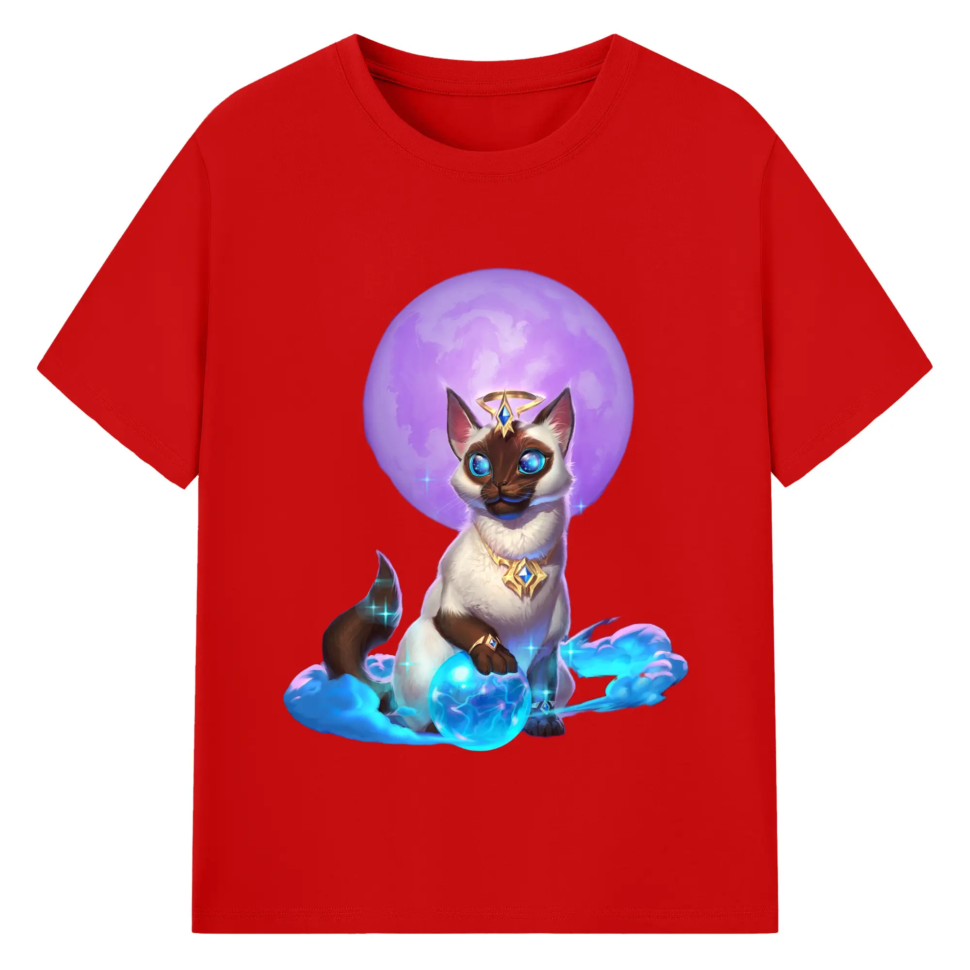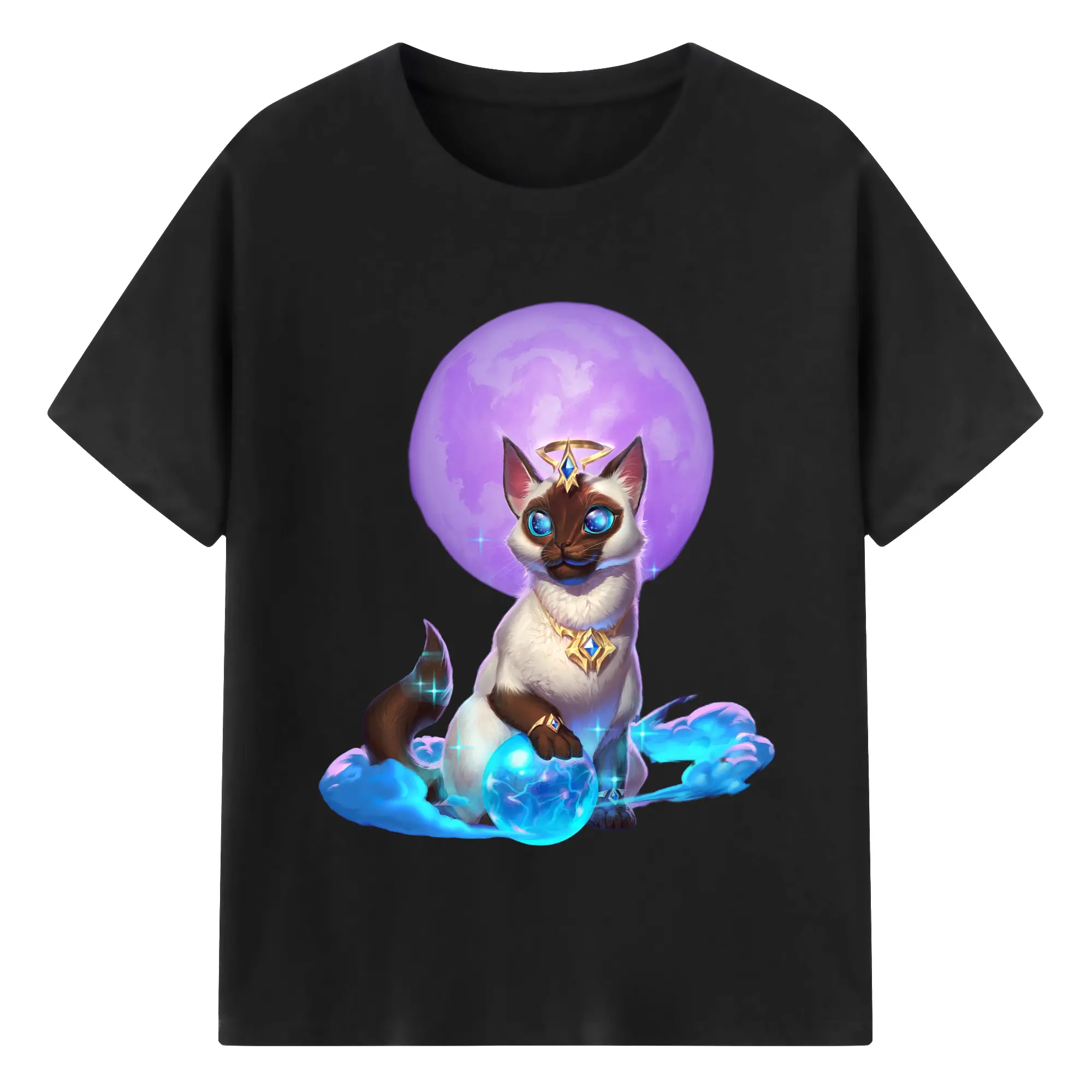 Hearthstone cat t-shirt - 180g Cotton T-Shirt With Front Heat Transfer Print – Soft, Lightweight, Fitted Design – Comfortable Casual Wear For Sports & Everyday Use
