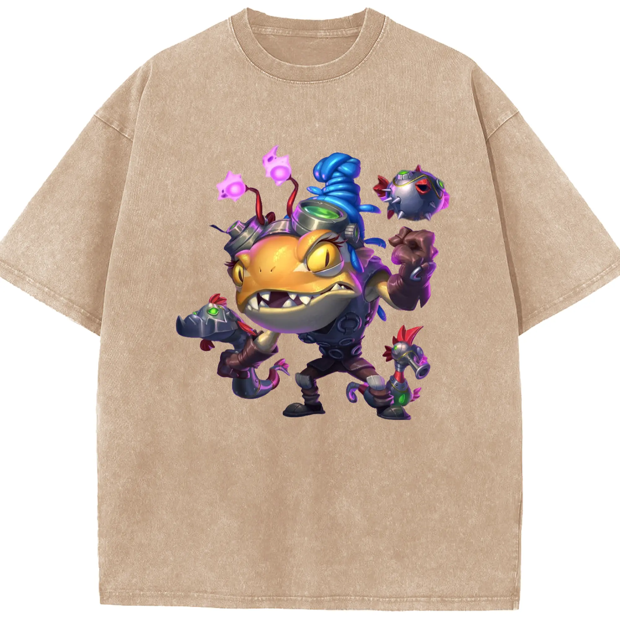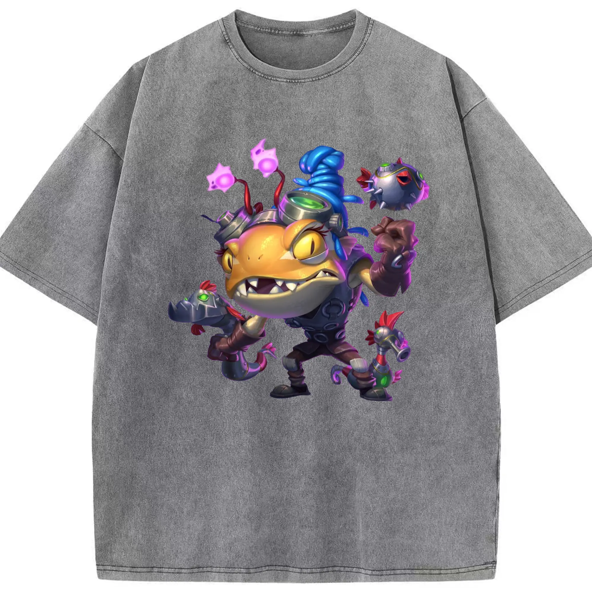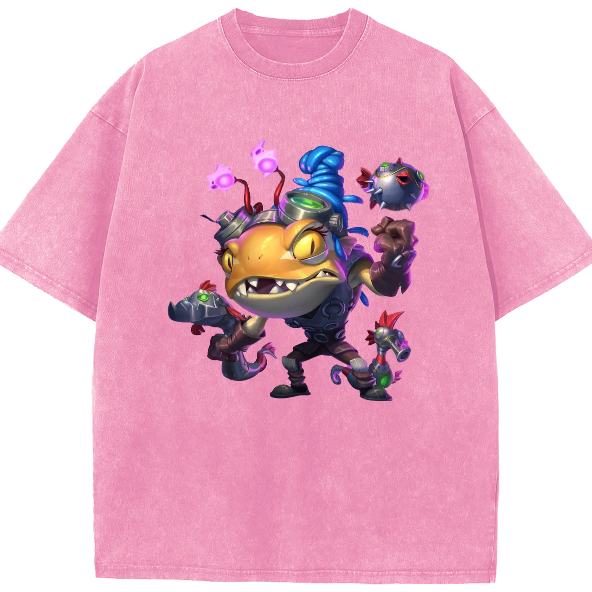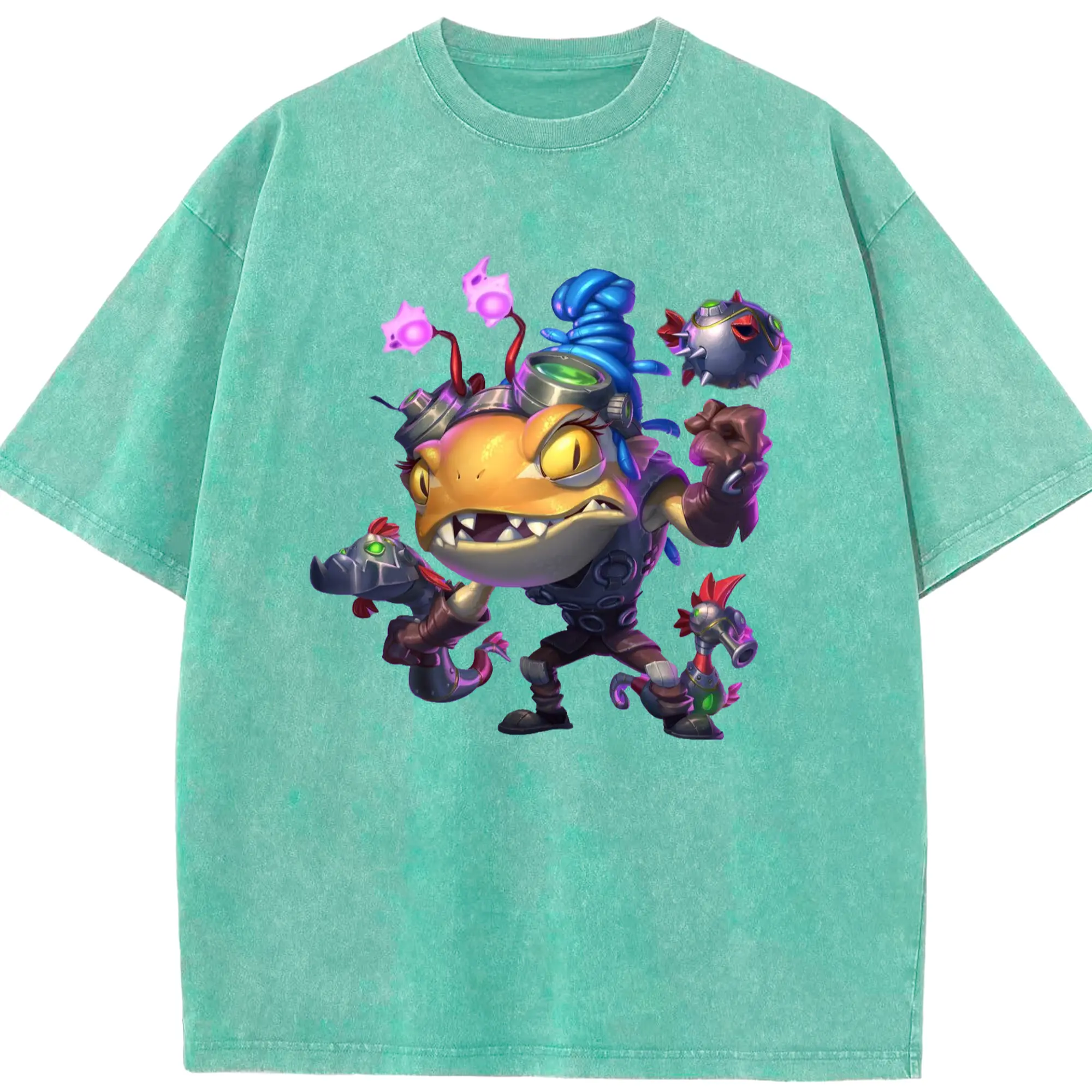 Hearthstone Gnome Murloc t shirts​ - Washed Vintage Look 230g Cotton Oversized T-Shirt With Front Heat Transfer Print – Soft, Lightweight, Stylish Fit – Comfortable Casual Wear For Sports & Everyday Use