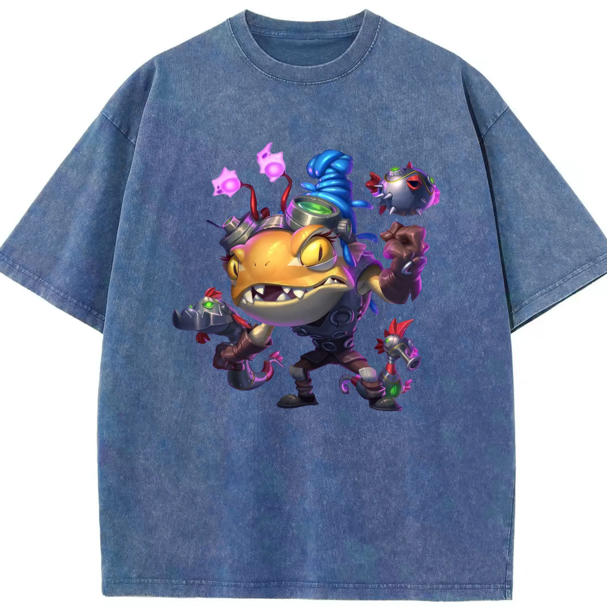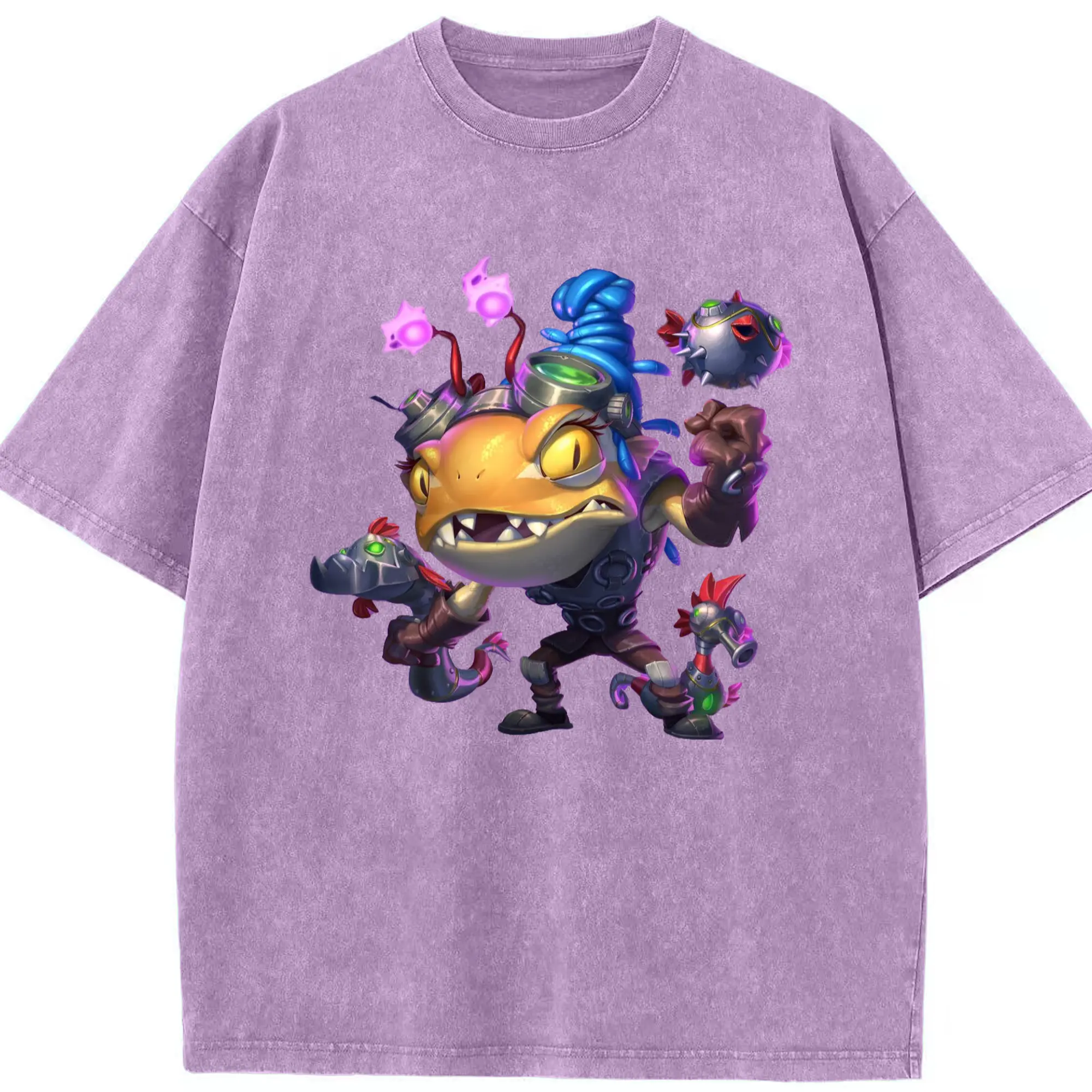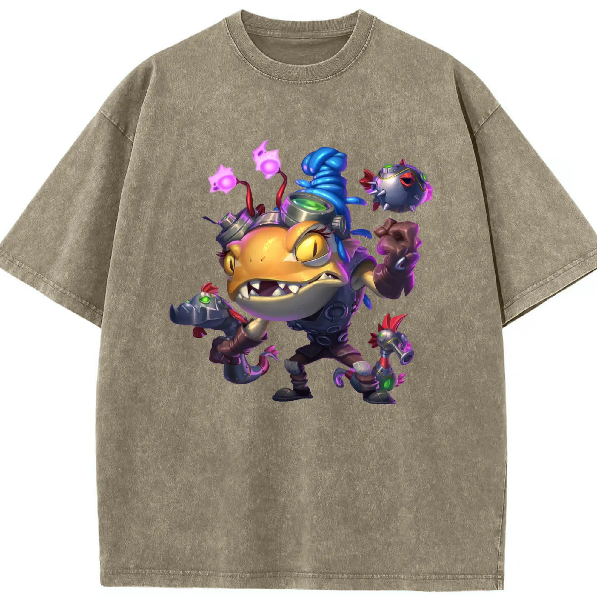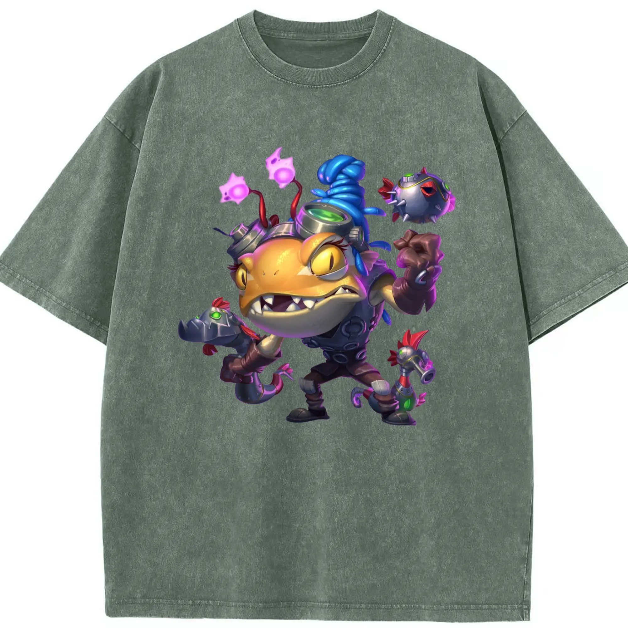 Hearthstone Gnome Murloc t shirts​ - Washed Vintage Look 230g Cotton Oversized T-Shirt With Front Heat Transfer Print – Soft, Lightweight, Stylish Fit – Comfortable Casual Wear For Sports & Everyday Use