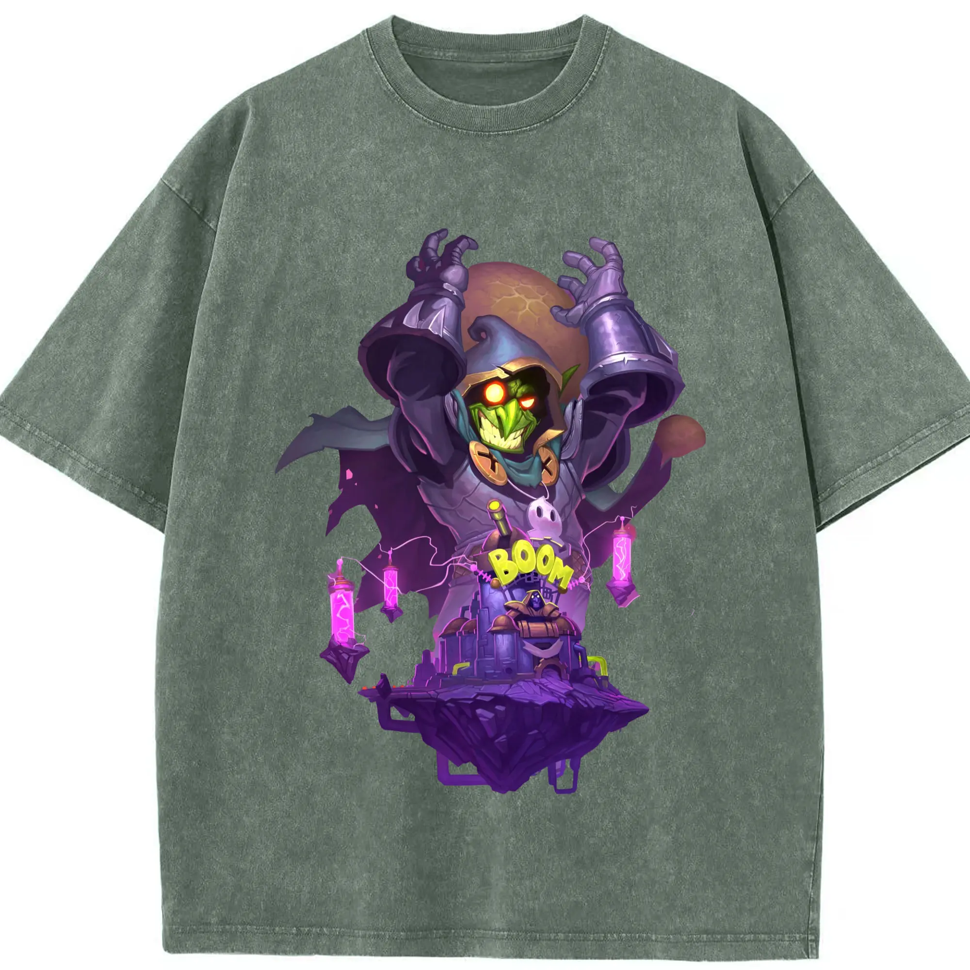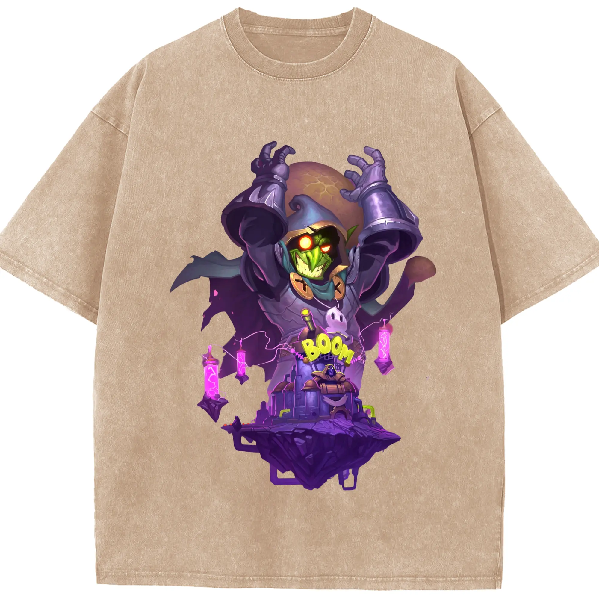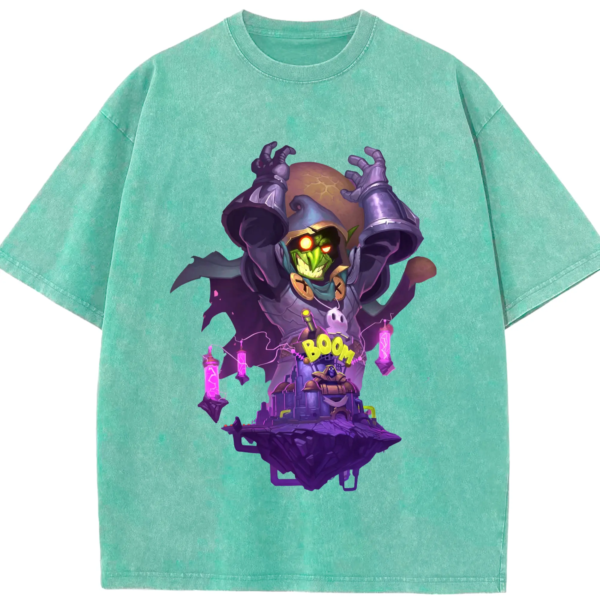 Hearthstone Goblin t shirts​ - Washed Vintage Look 230g Cotton Oversized T-Shirt With Front Heat Transfer Print – Soft, Lightweight, Stylish Fit – Comfortable Casual Wear For Sports & Everyday Use