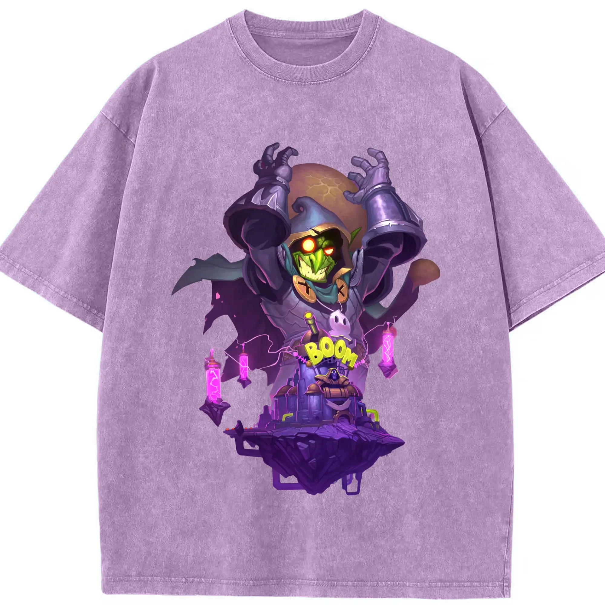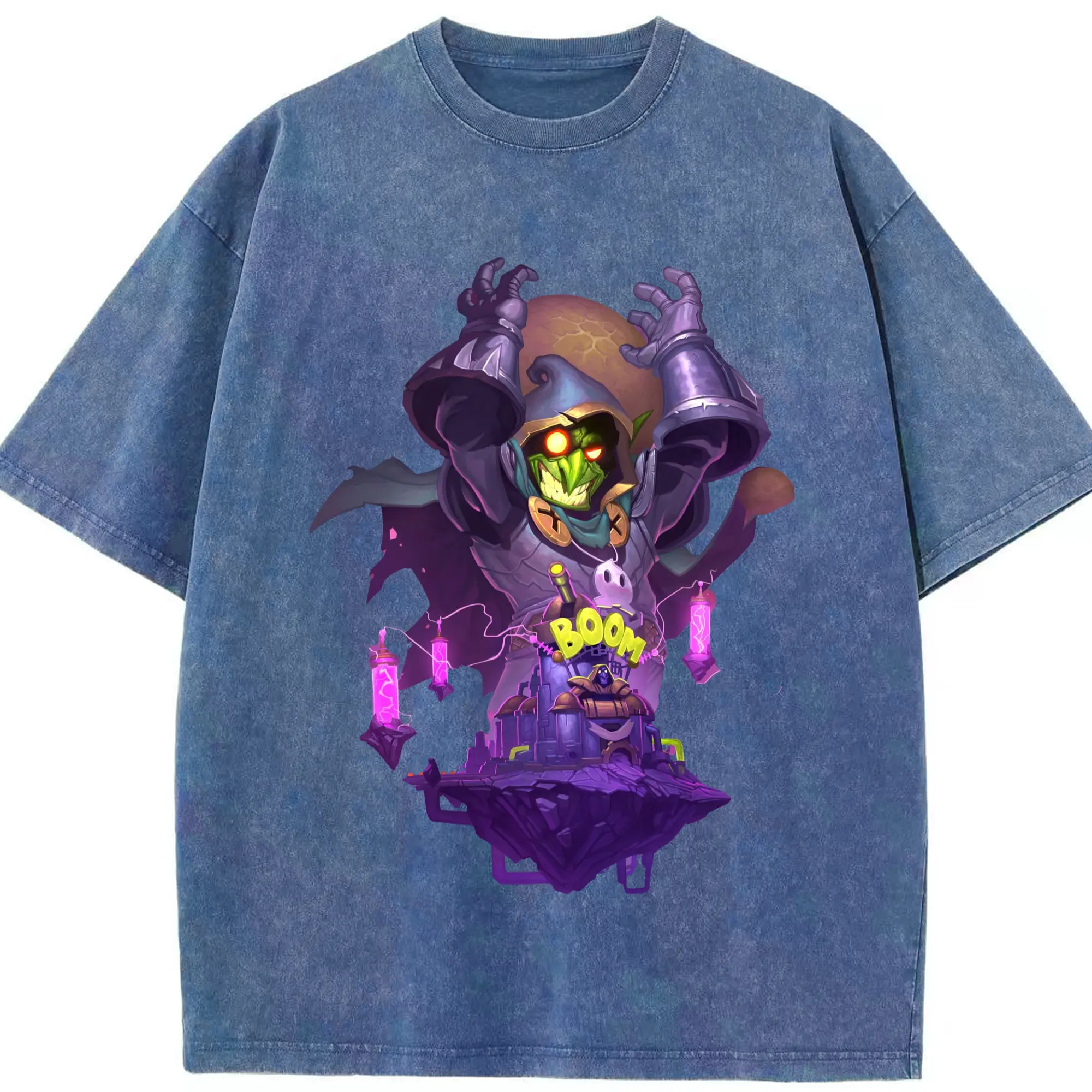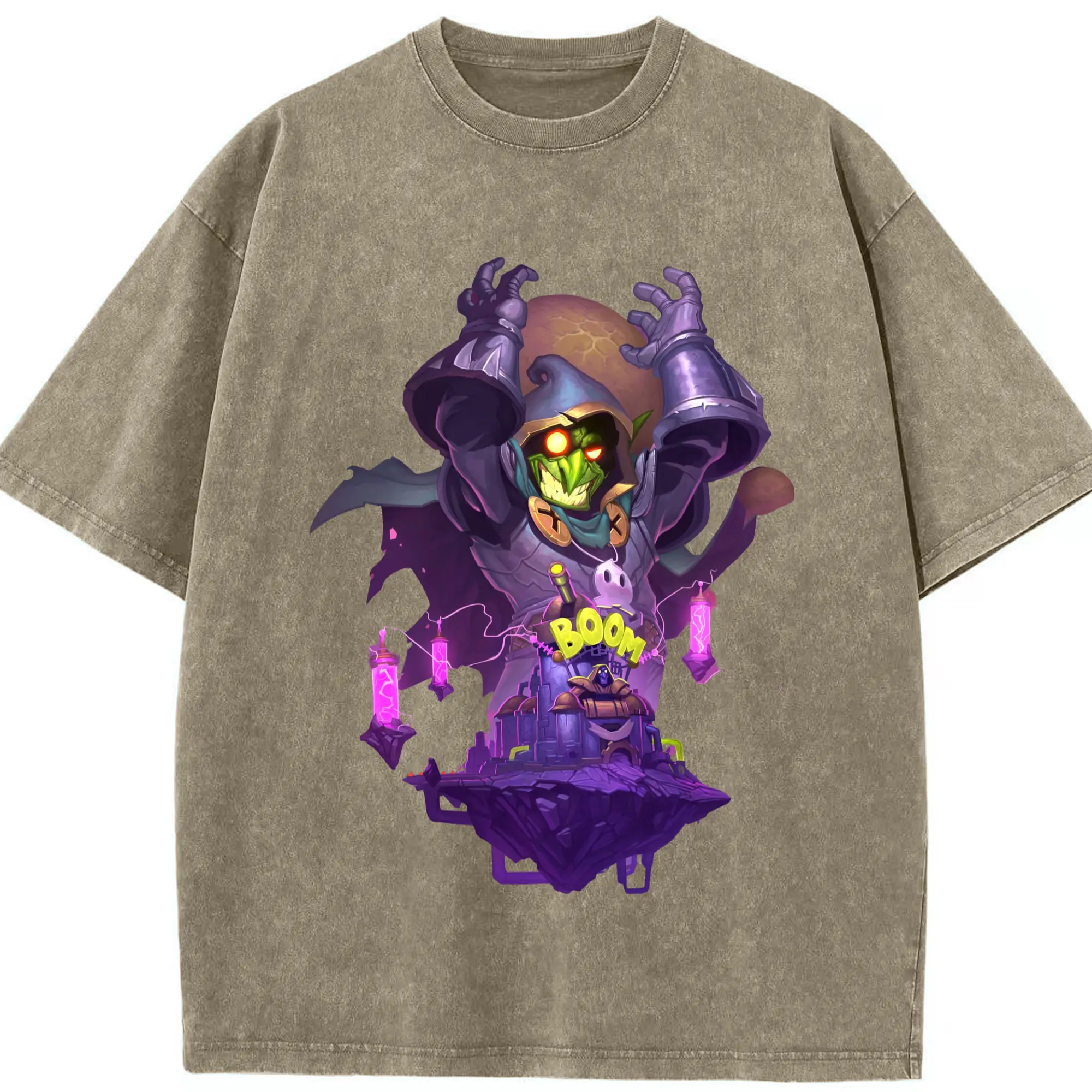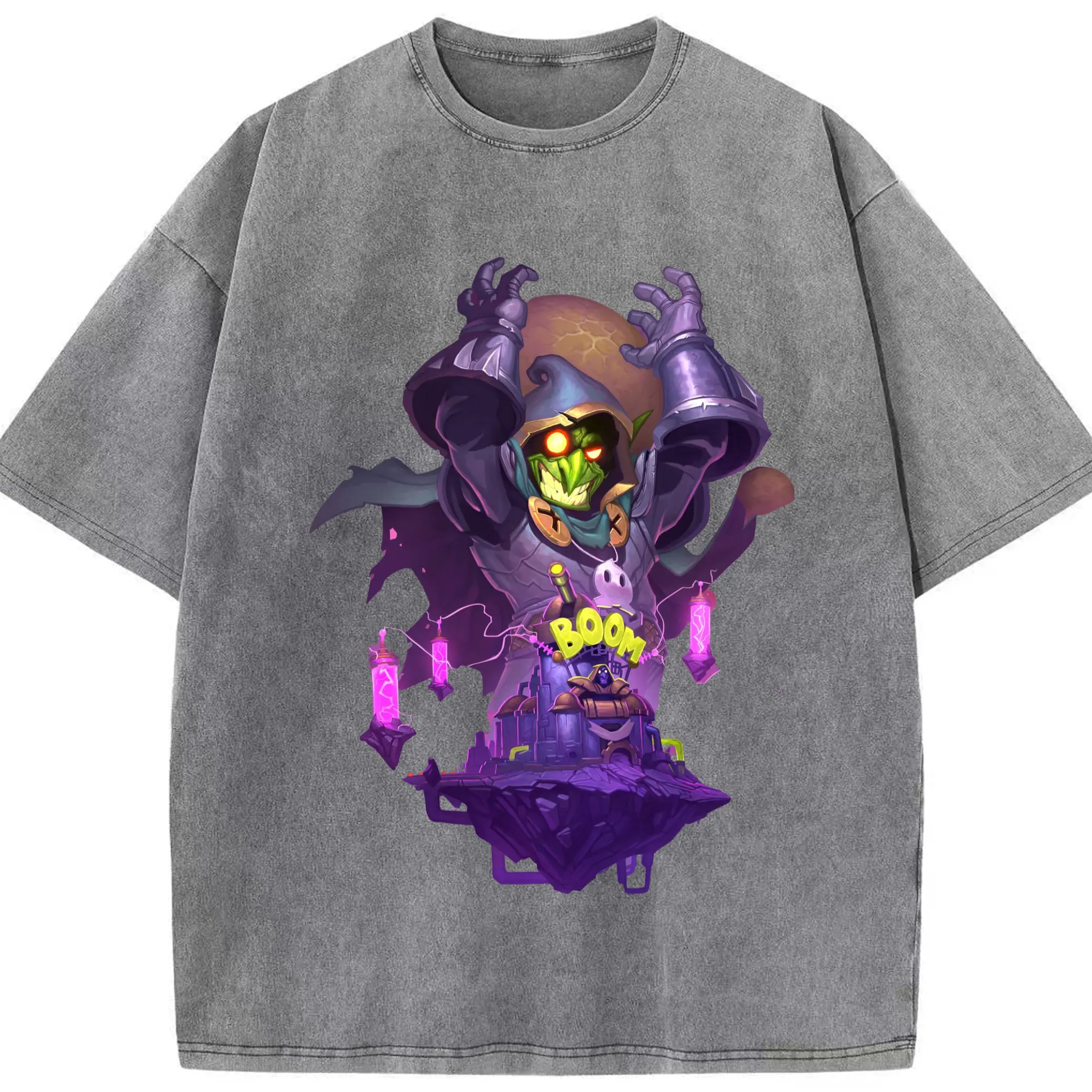 Hearthstone Goblin t shirts​ - Washed Vintage Look 230g Cotton Oversized T-Shirt With Front Heat Transfer Print – Soft, Lightweight, Stylish Fit – Comfortable Casual Wear For Sports & Everyday Use