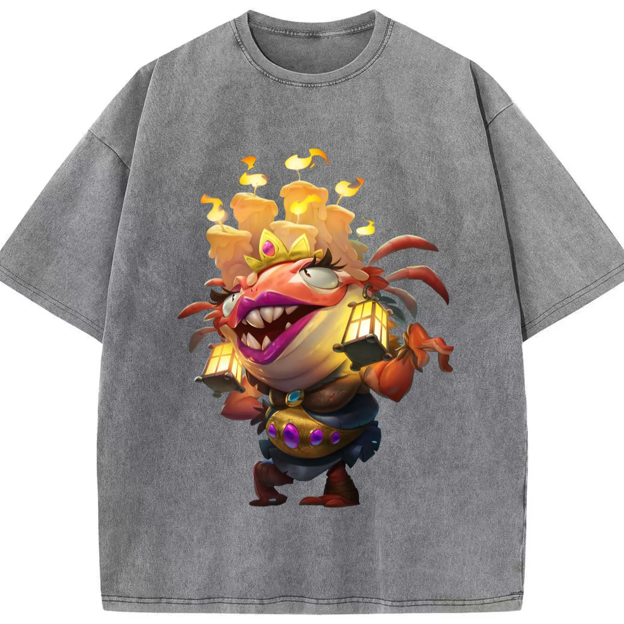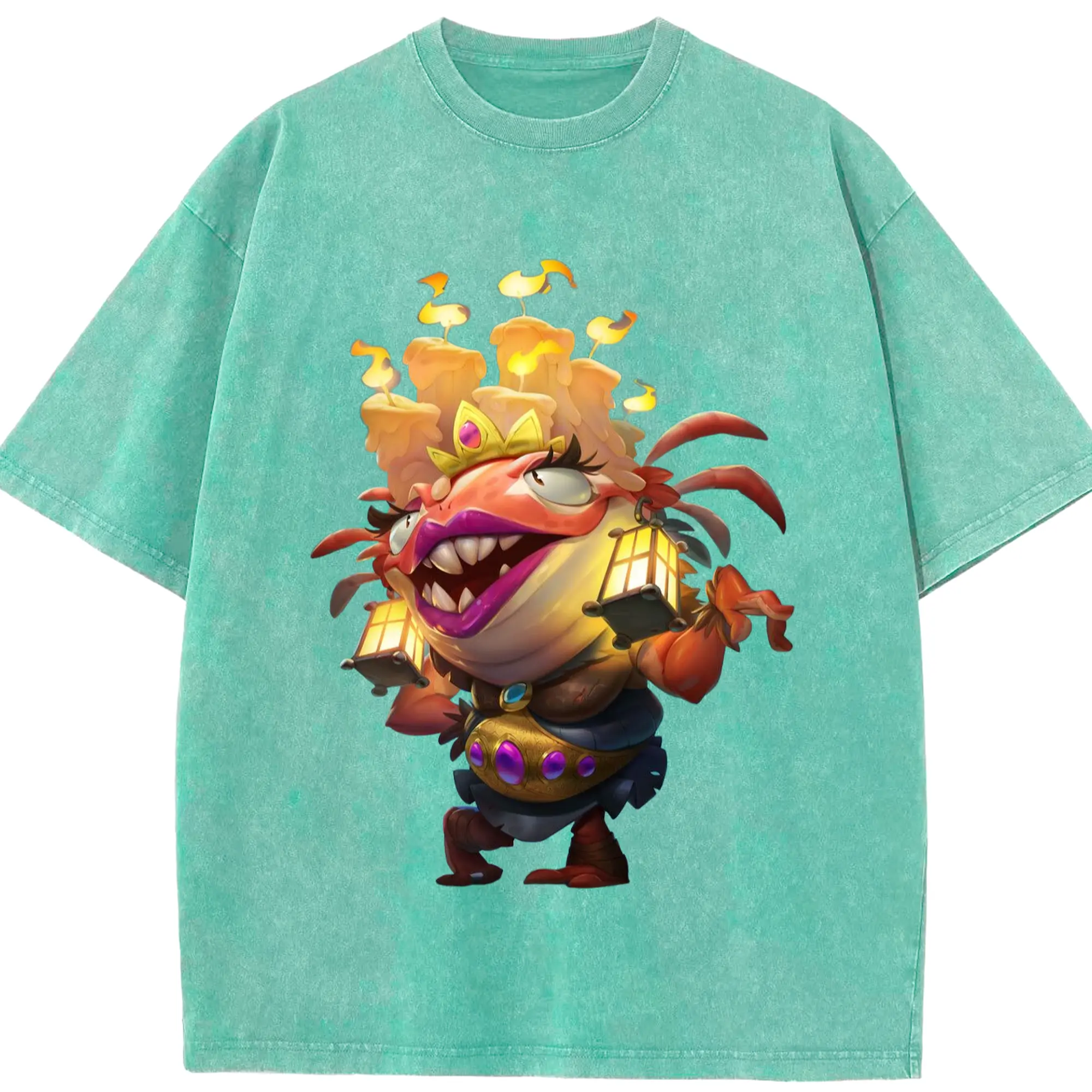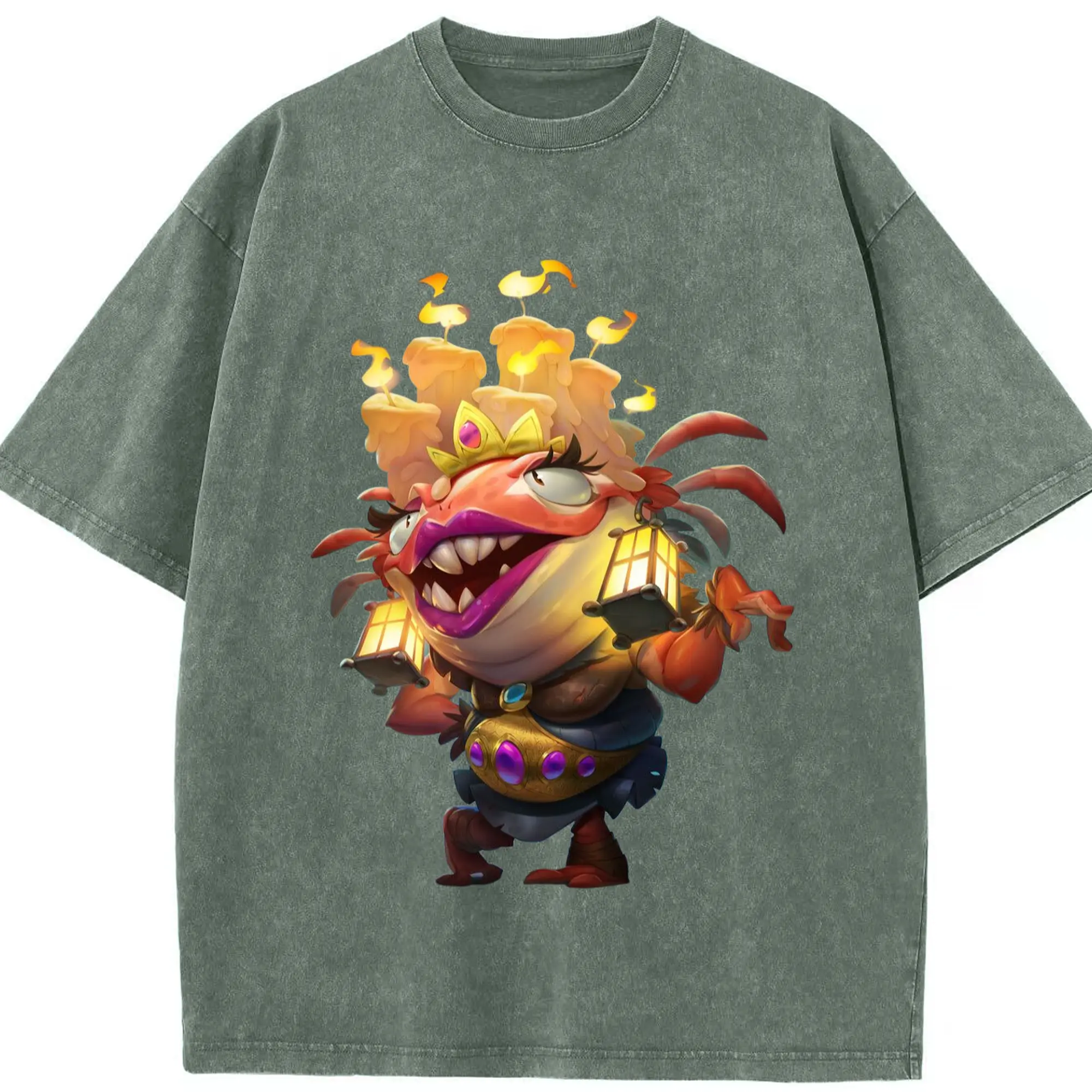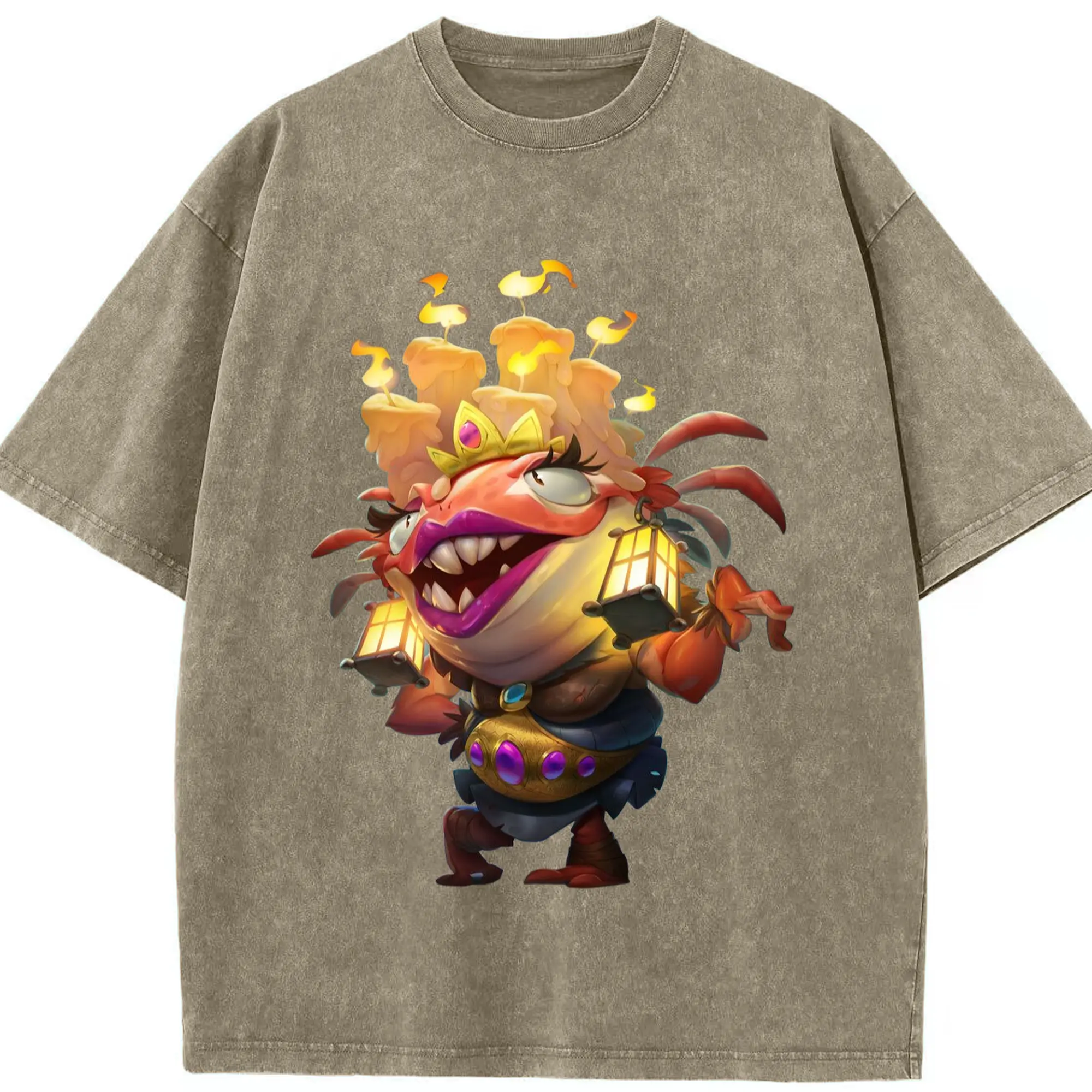 Hearthstone Murloc t shirts - Washed Vintage Look 230g Cotton Oversized T-Shirt With Front Heat Transfer Print – Soft, Lightweight, Stylish Fit – Comfortable Casual Wear For Sports & Everyday Use