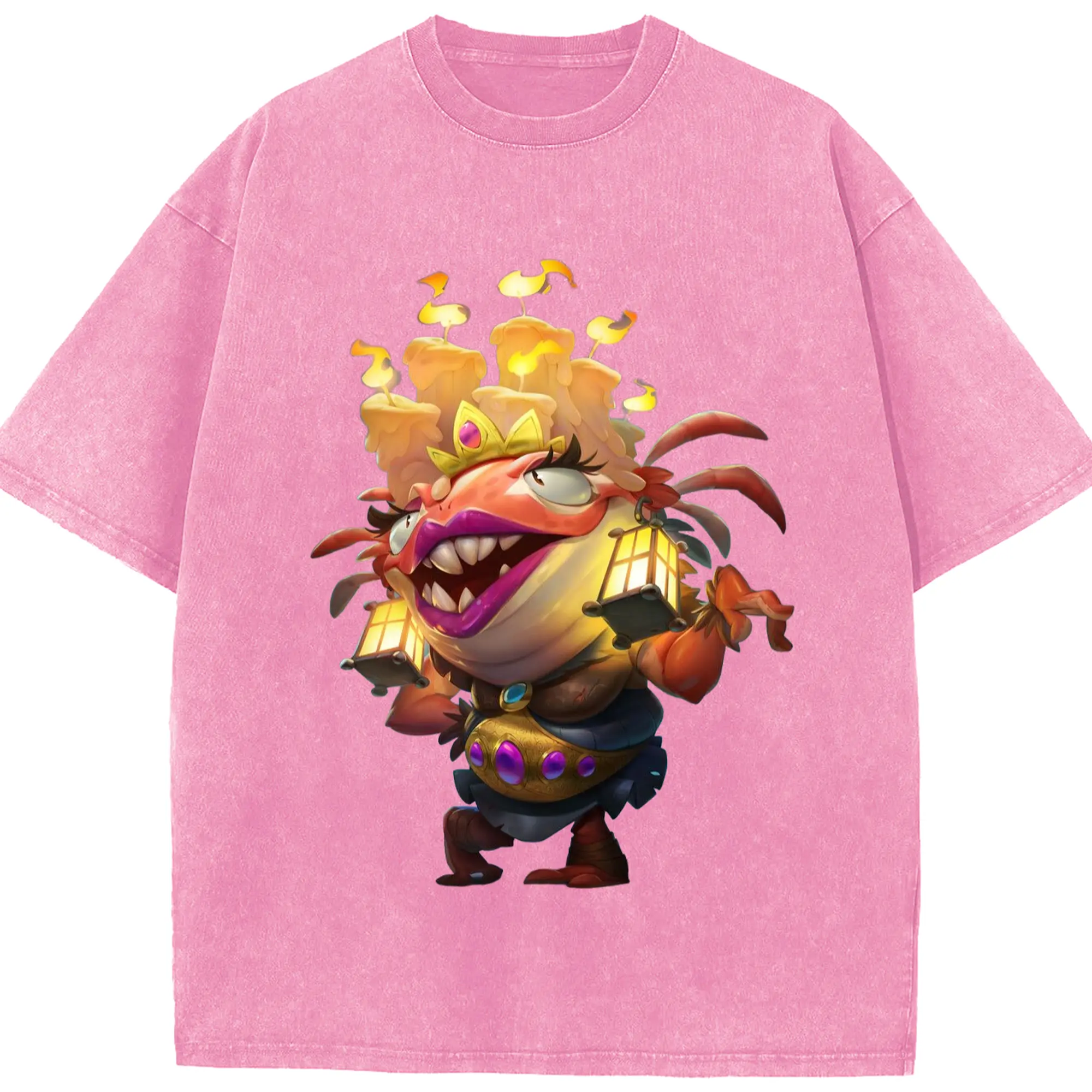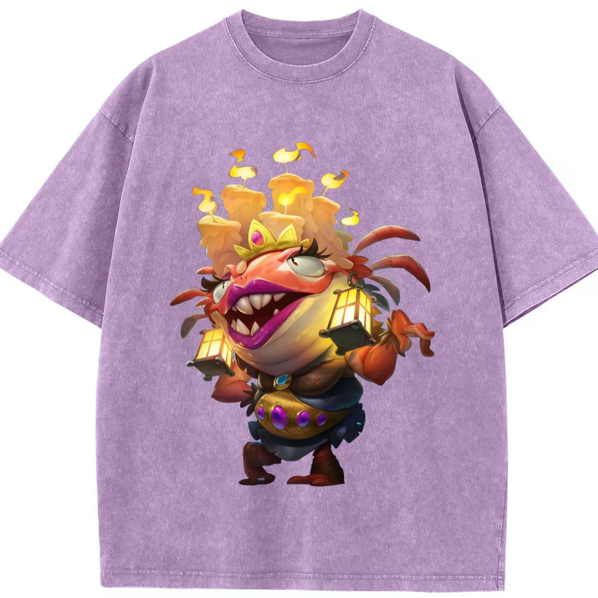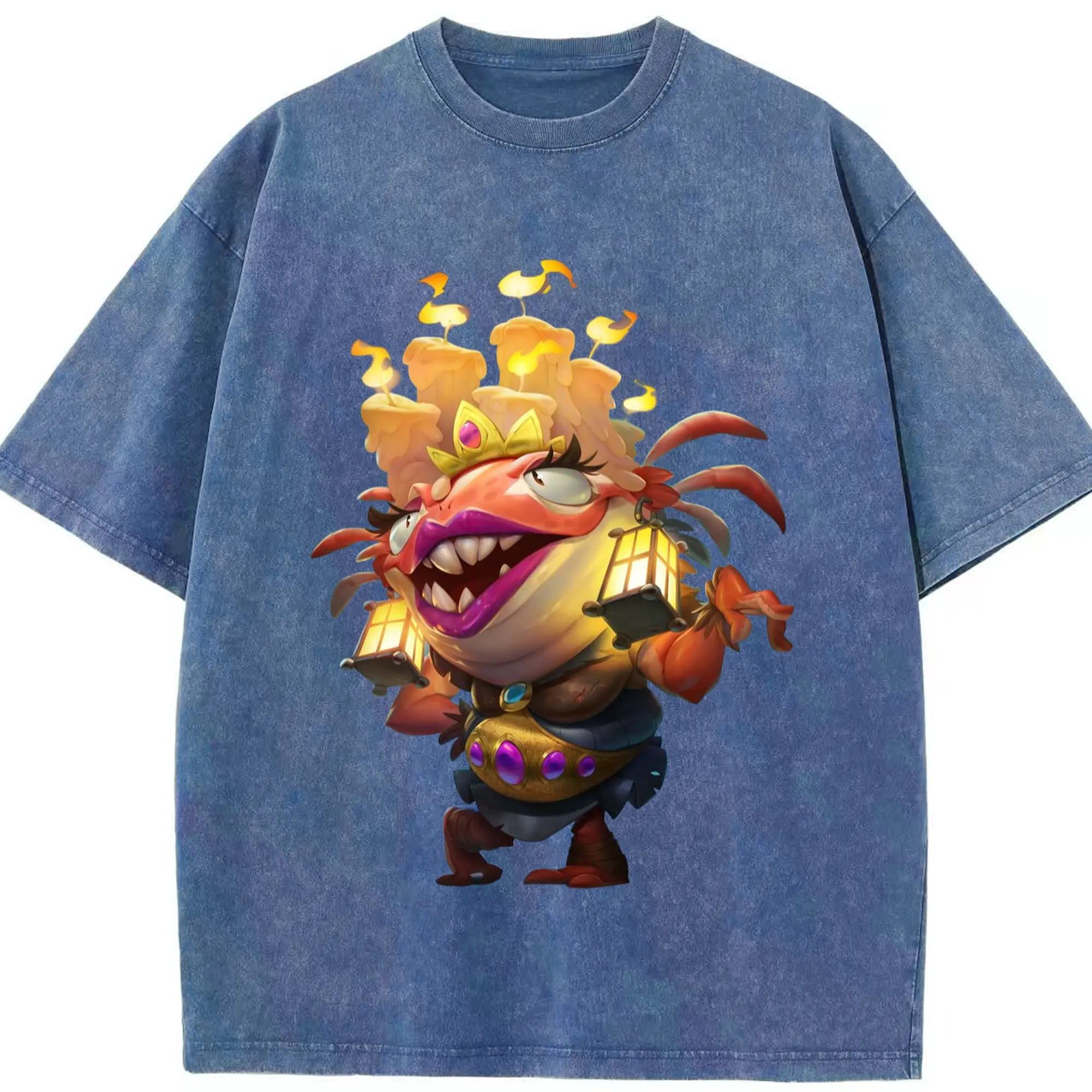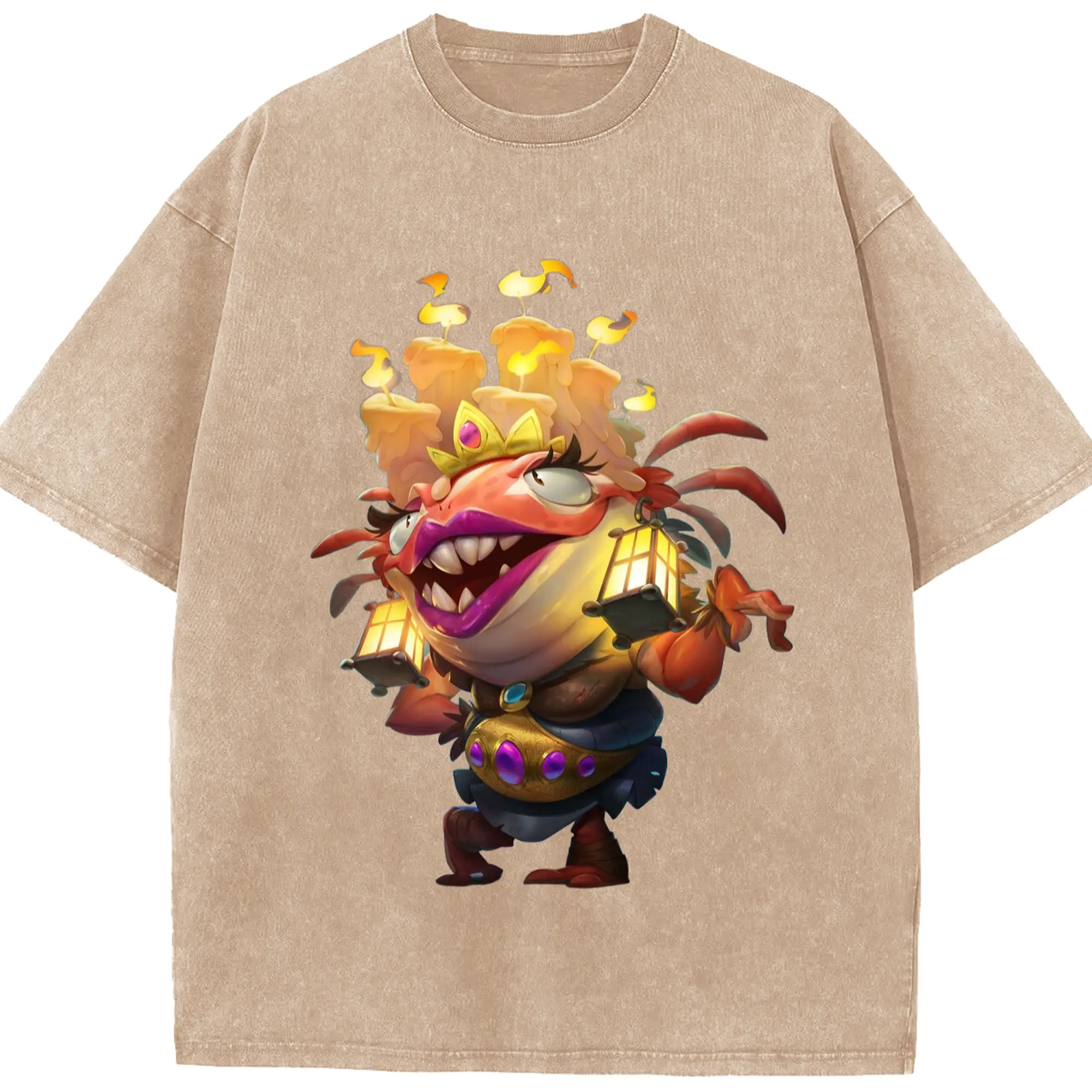 Hearthstone Murloc t shirts - Washed Vintage Look 230g Cotton Oversized T-Shirt With Front Heat Transfer Print – Soft, Lightweight, Stylish Fit – Comfortable Casual Wear For Sports & Everyday Use