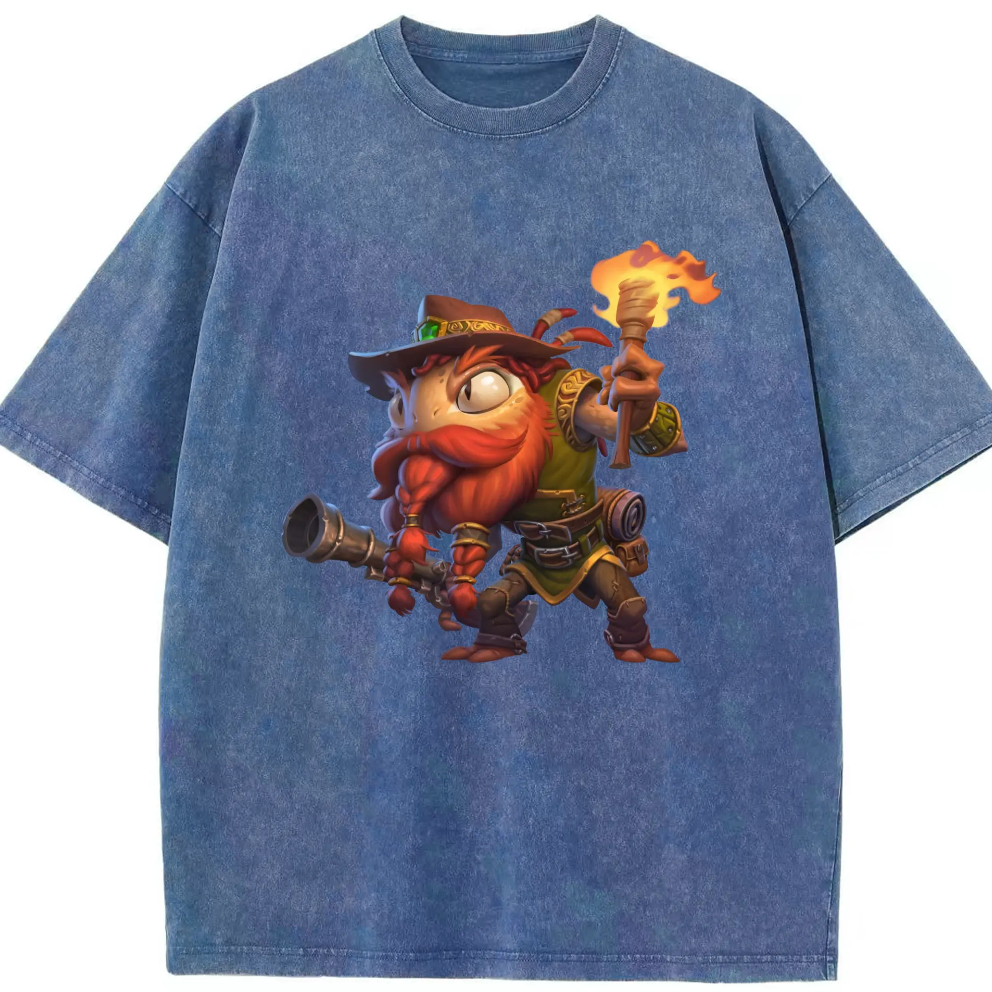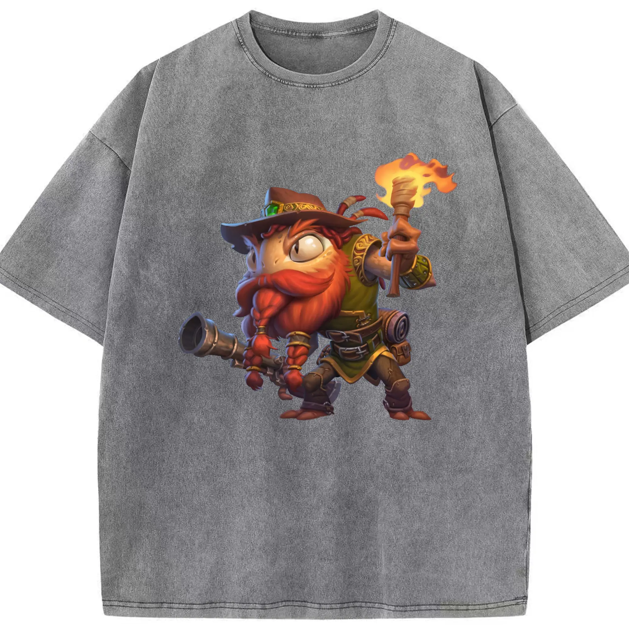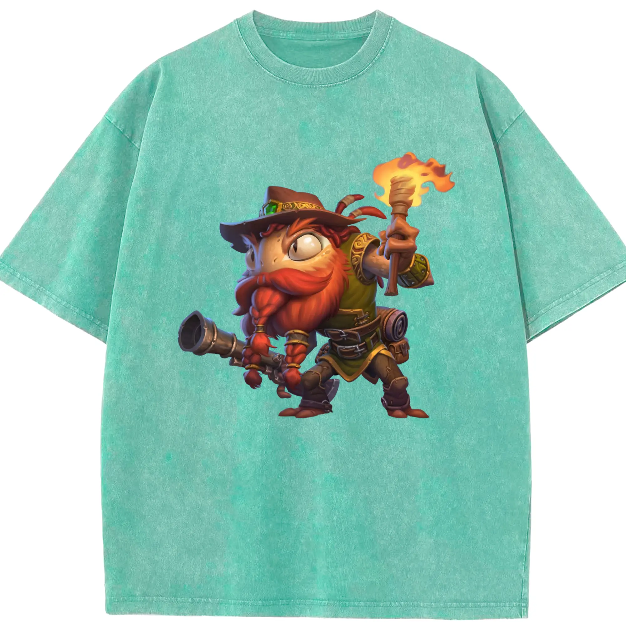 Hearthstone Murloc tee - Washed Vintage Look 230g Cotton Oversized T-Shirt With Front Heat Transfer Print – Soft, Lightweight, Stylish Fit – Comfortable Casual Wear For Sports & Everyday Use
