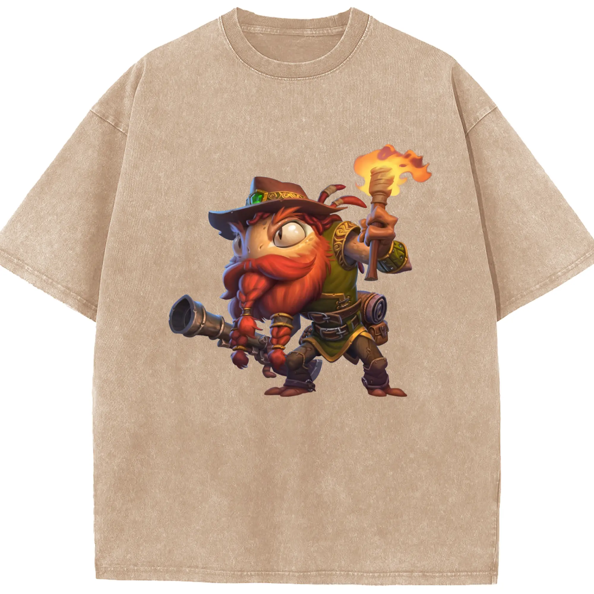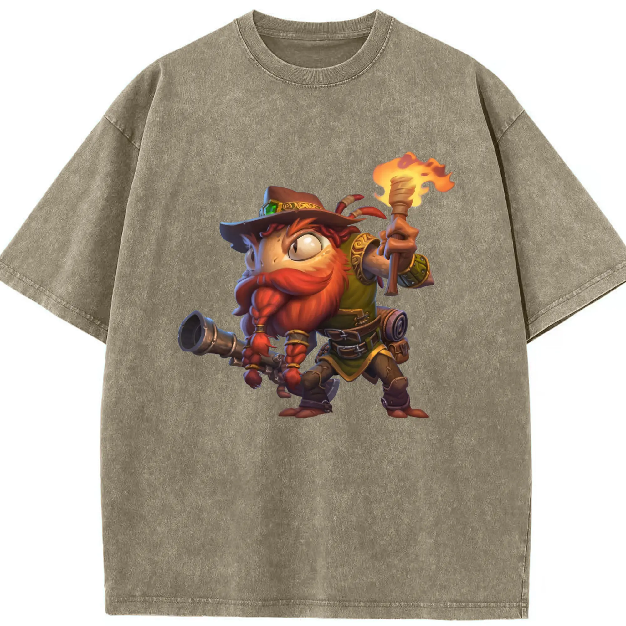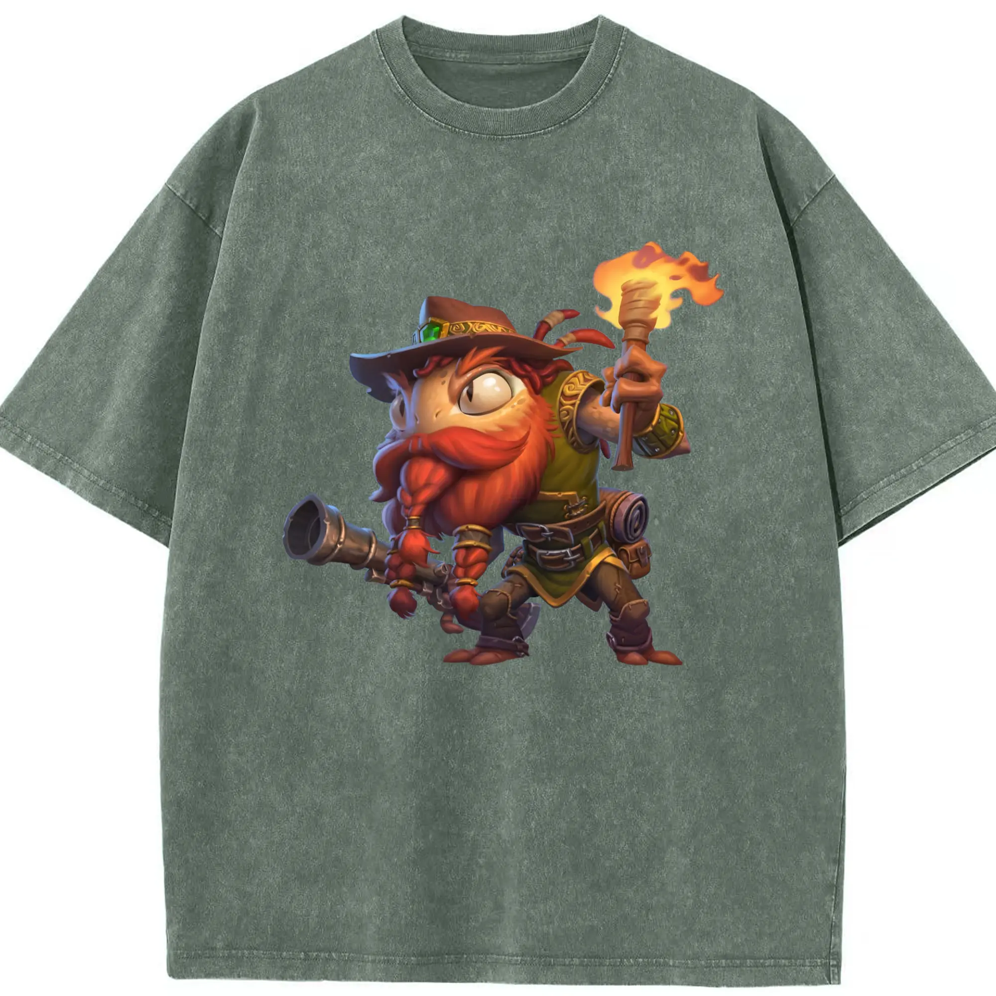 Hearthstone Murloc tee - Washed Vintage Look 230g Cotton Oversized T-Shirt With Front Heat Transfer Print – Soft, Lightweight, Stylish Fit – Comfortable Casual Wear For Sports & Everyday Use