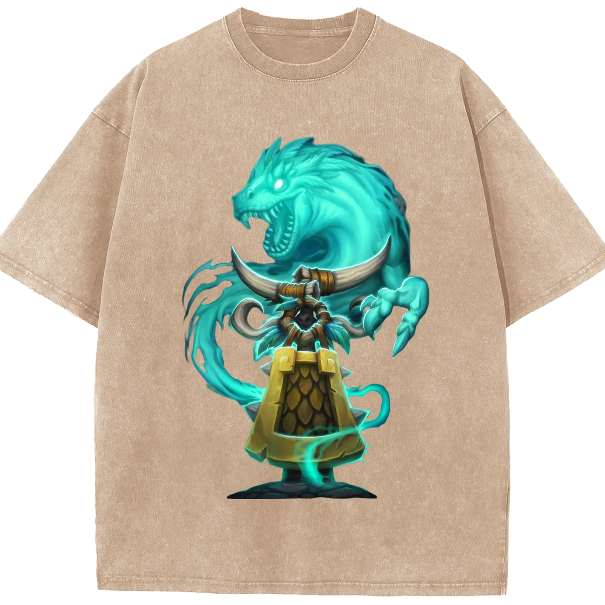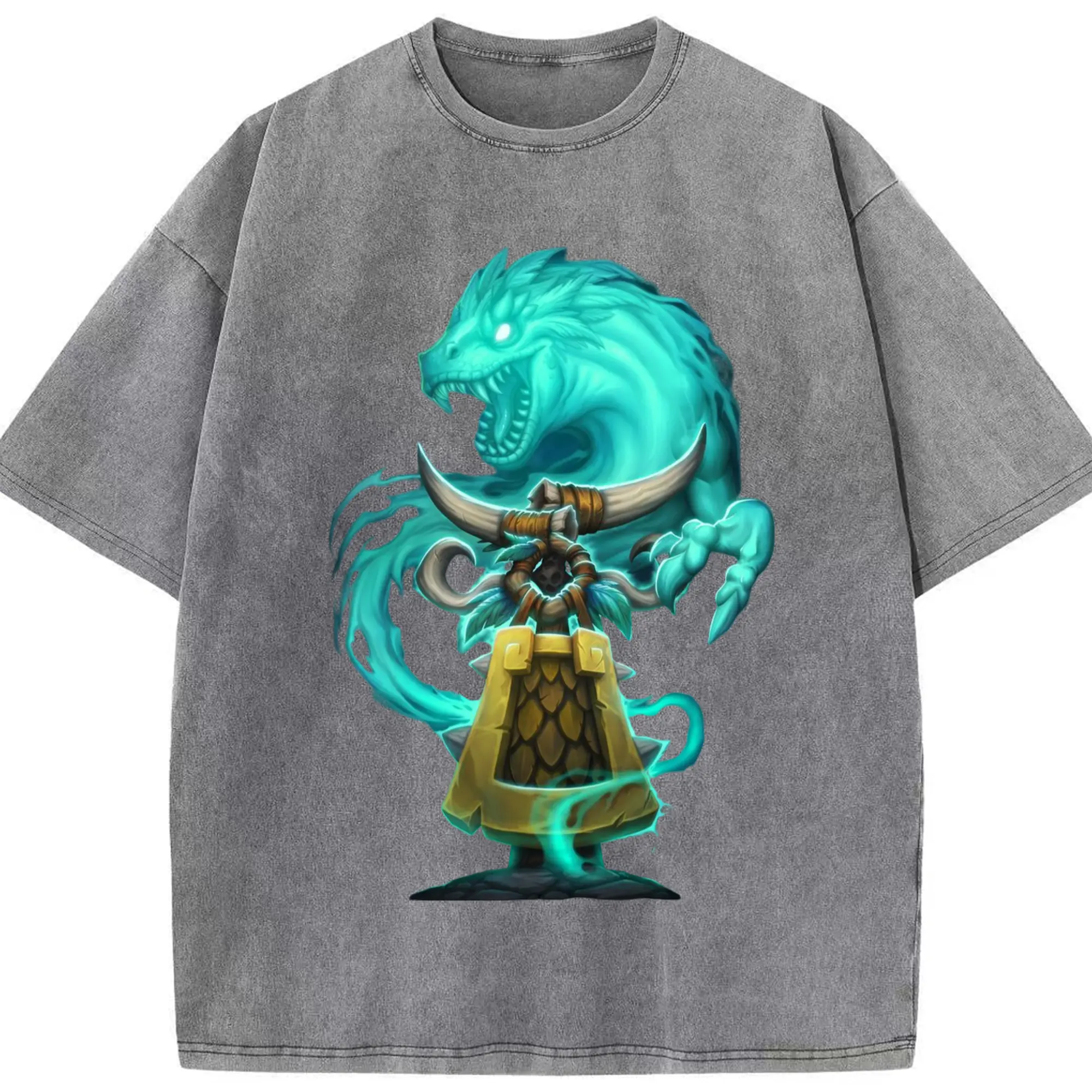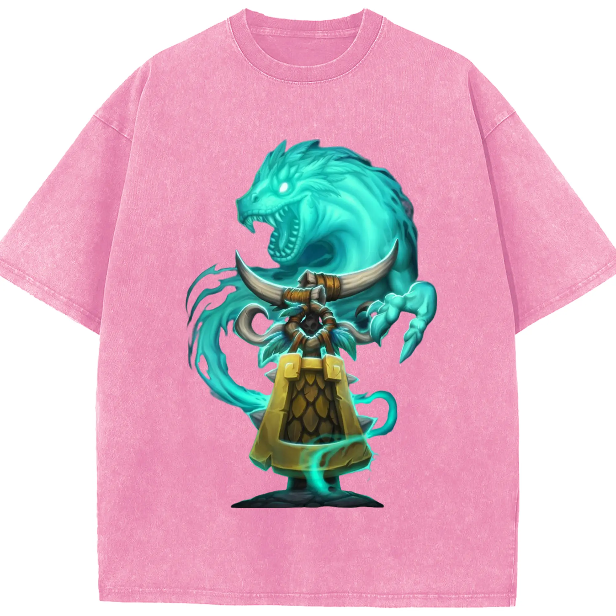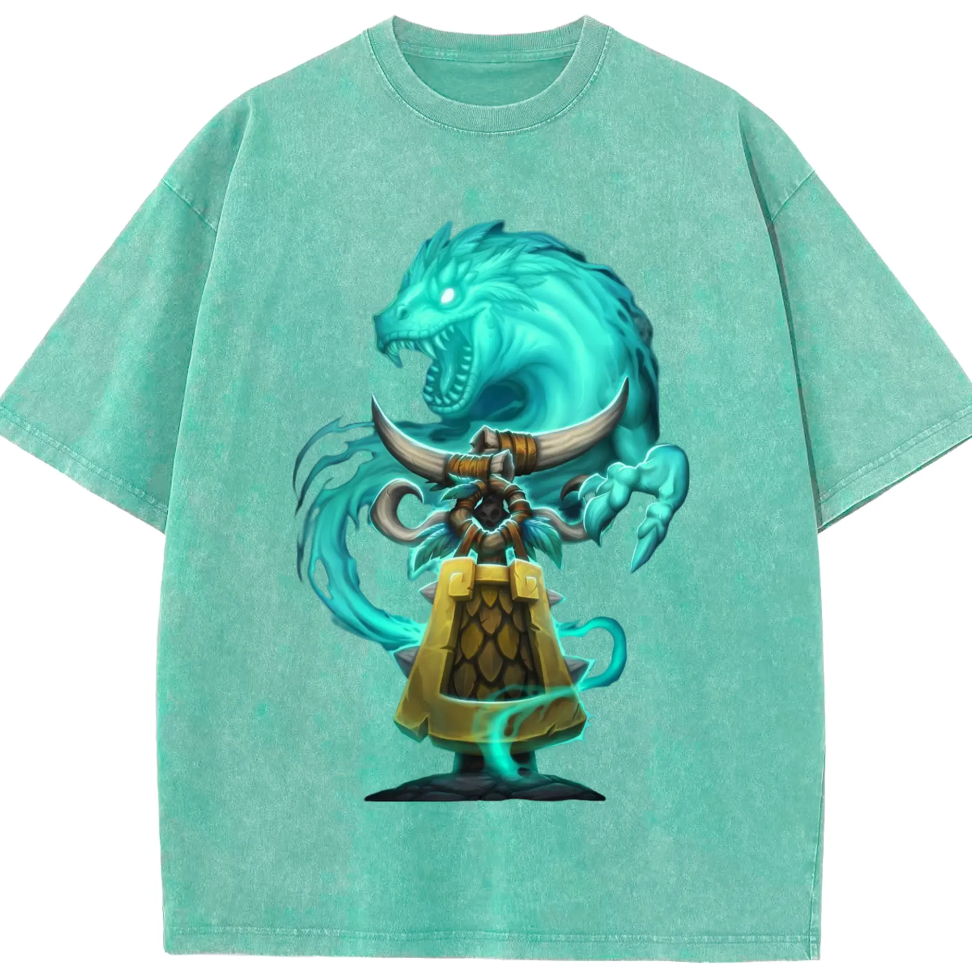 Hearthstone shaman icon t shirts - Washed Vintage Look 230g Cotton Oversized T-Shirt With Front Heat Transfer Print – Soft, Lightweight, Stylish Fit – Comfortable Casual Wear For Sports & Everyday Use