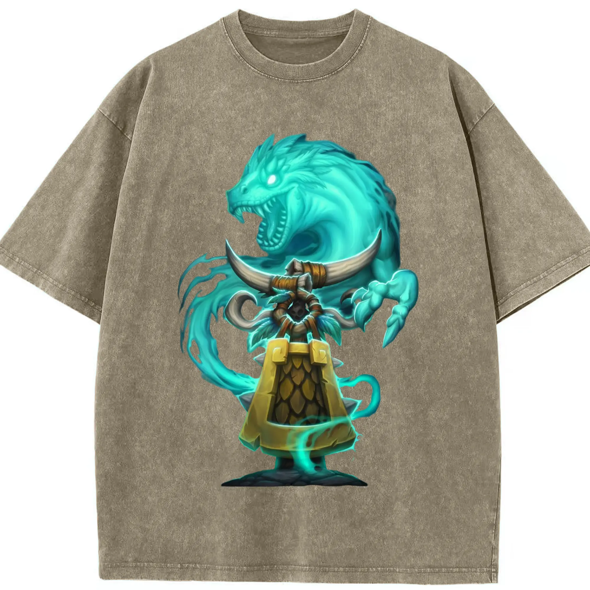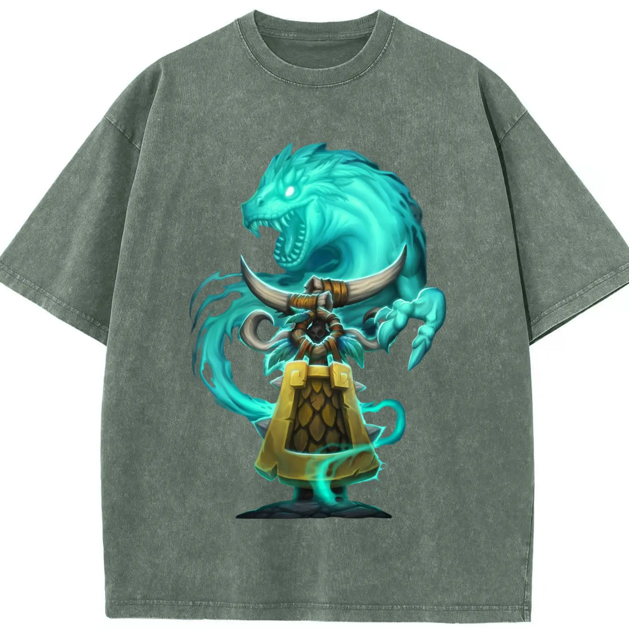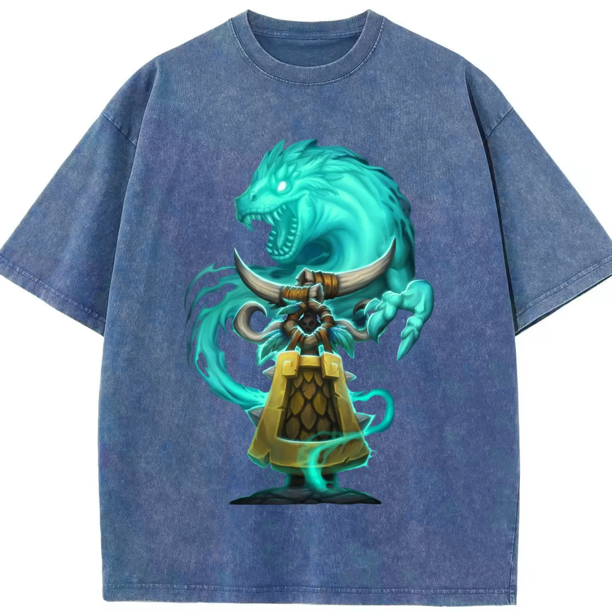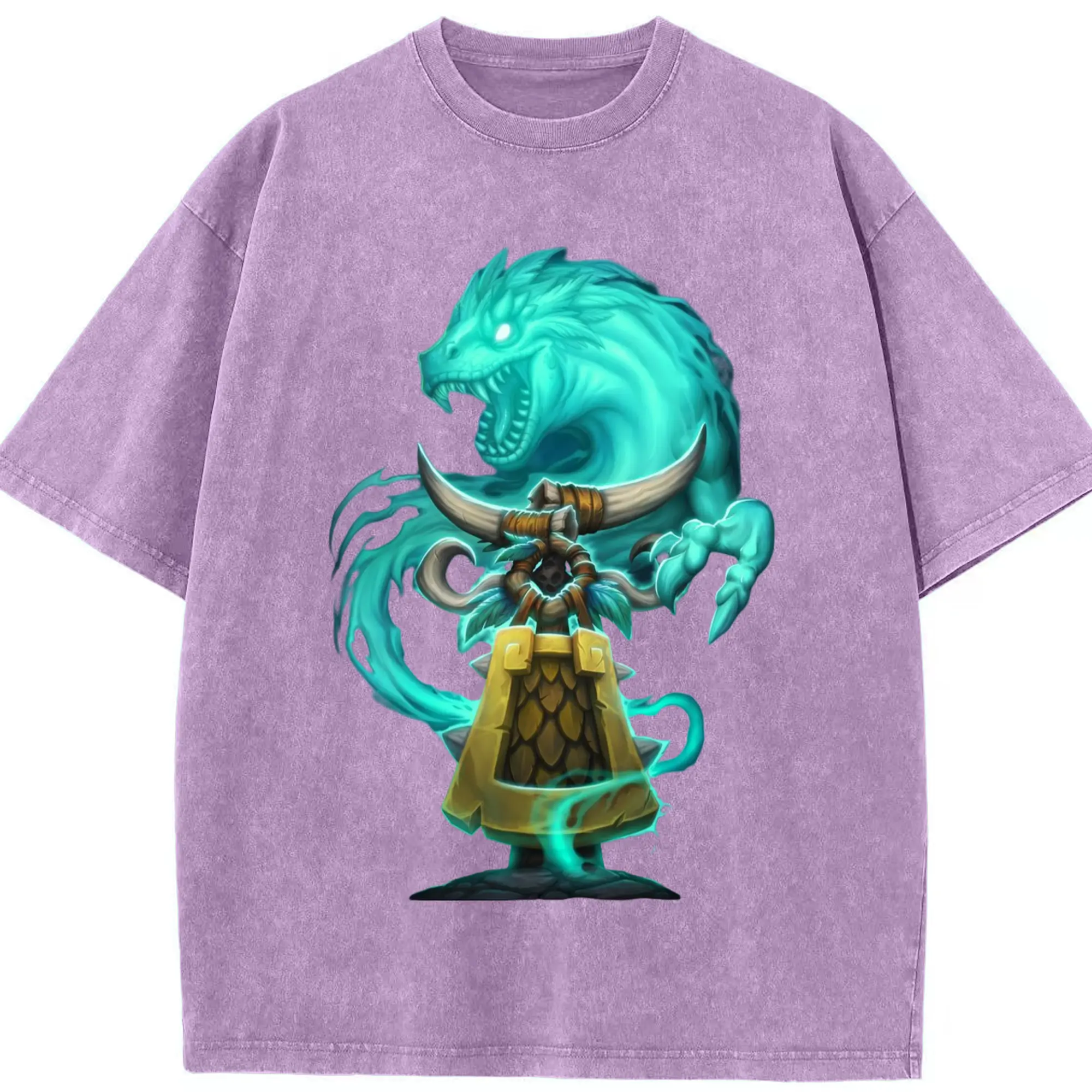 Hearthstone shaman icon t shirts - Washed Vintage Look 230g Cotton Oversized T-Shirt With Front Heat Transfer Print – Soft, Lightweight, Stylish Fit – Comfortable Casual Wear For Sports & Everyday Use
