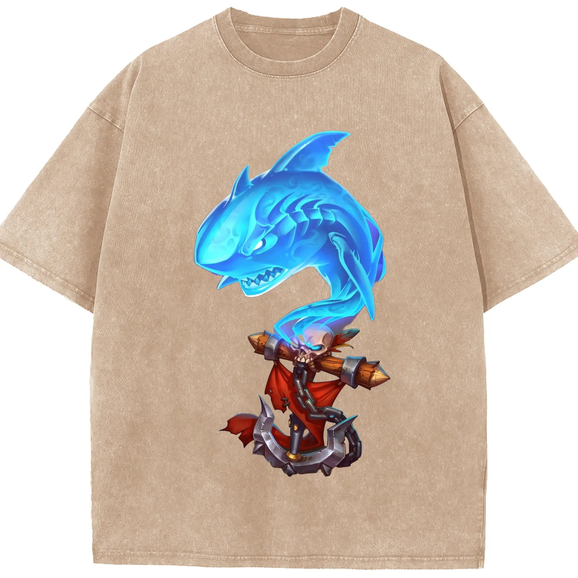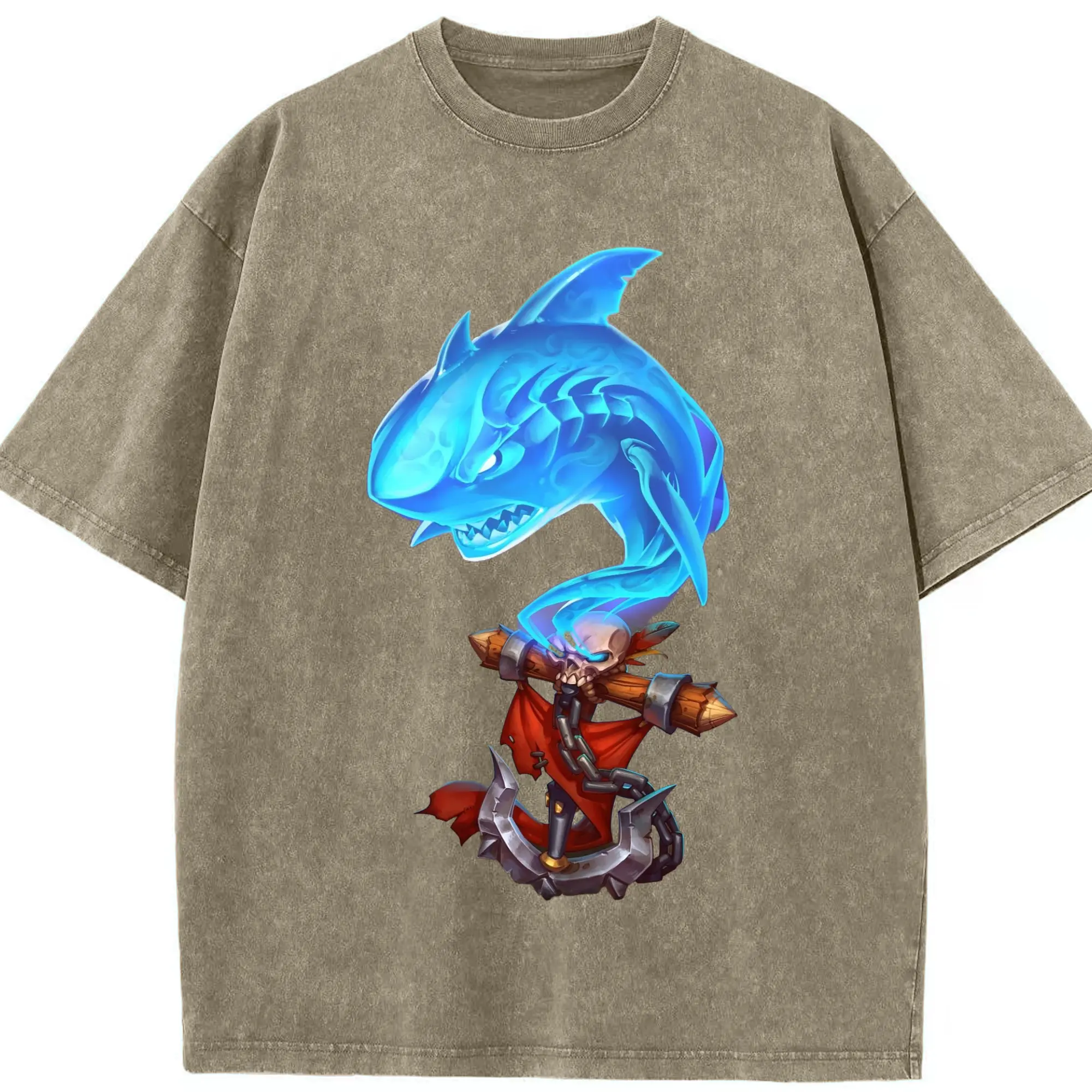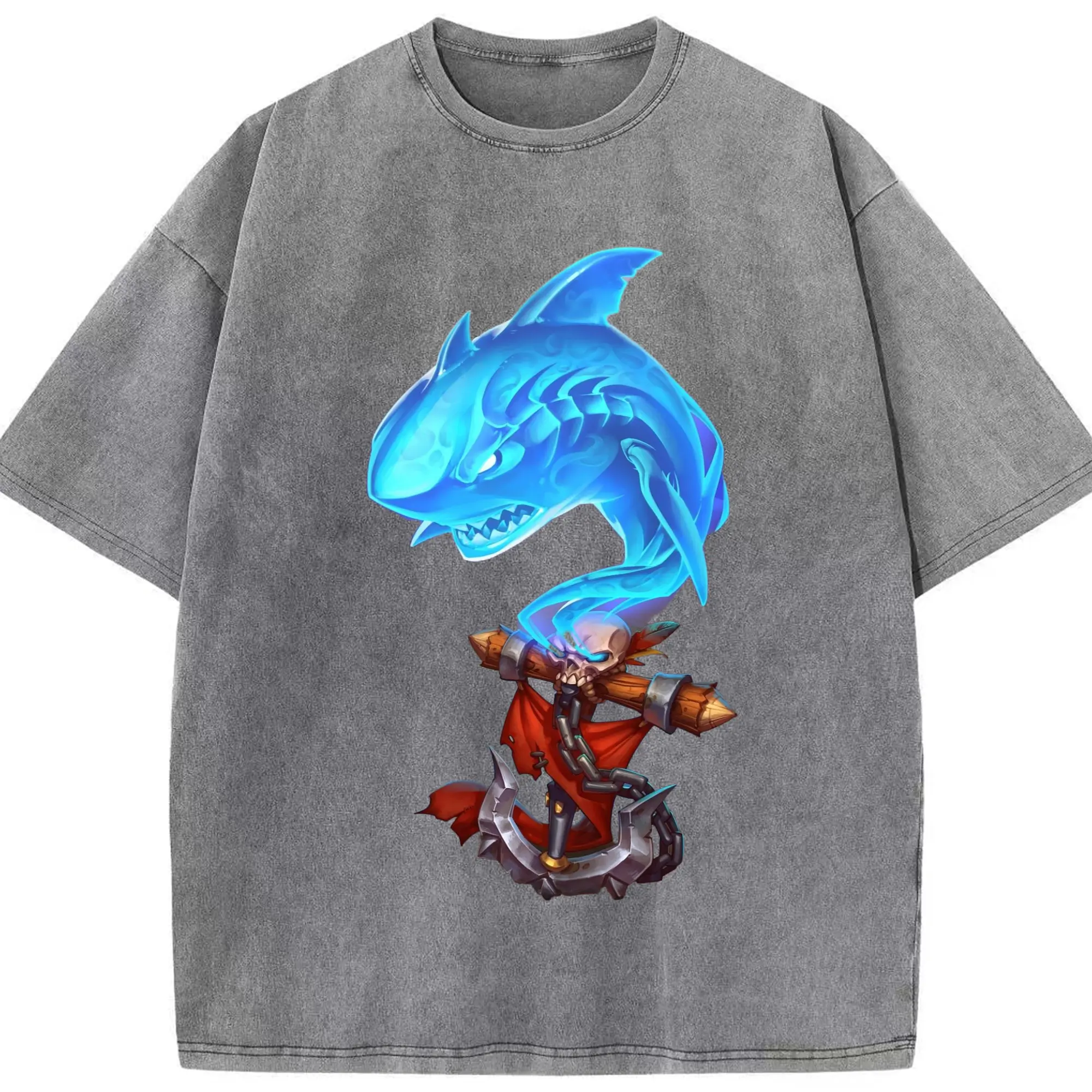 Hearthstone shaman shark icon t shirts - Washed Vintage Look 230g Cotton Oversized T-Shirt With Front Heat Transfer Print – Soft, Lightweight, Stylish Fit – Comfortable Casual Wear For Sports & Everyday Use
