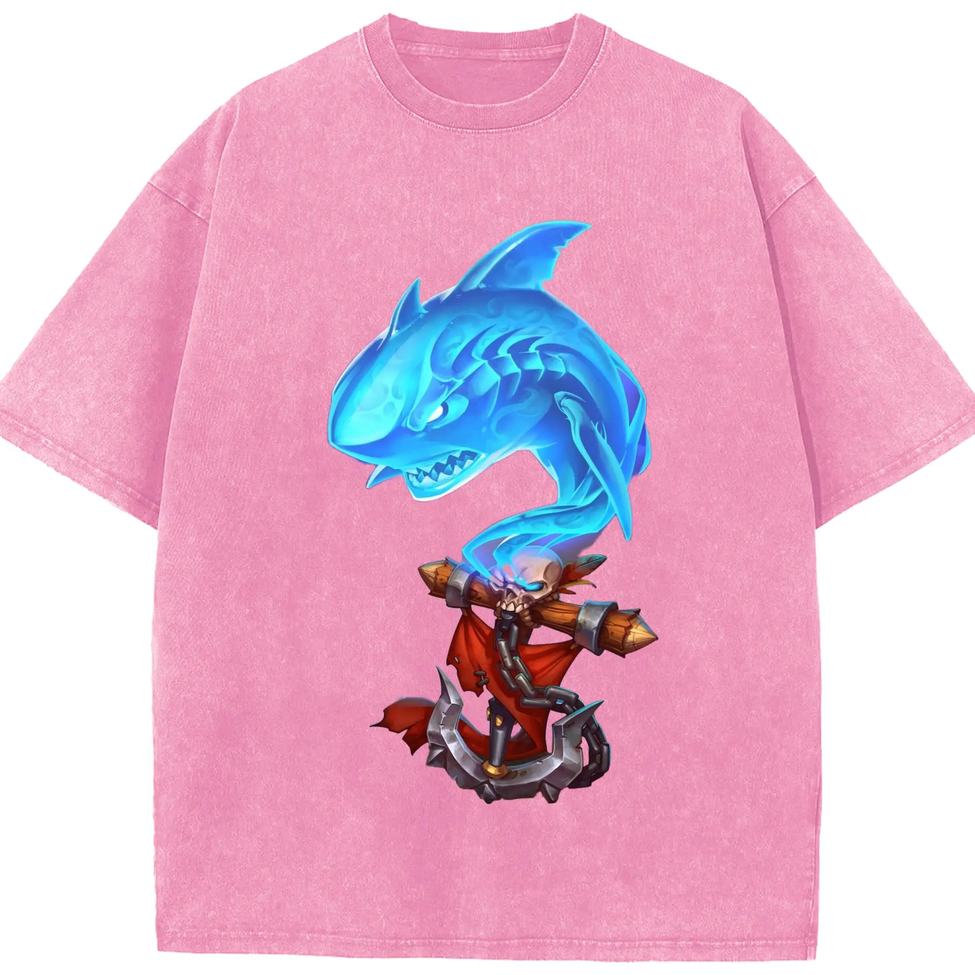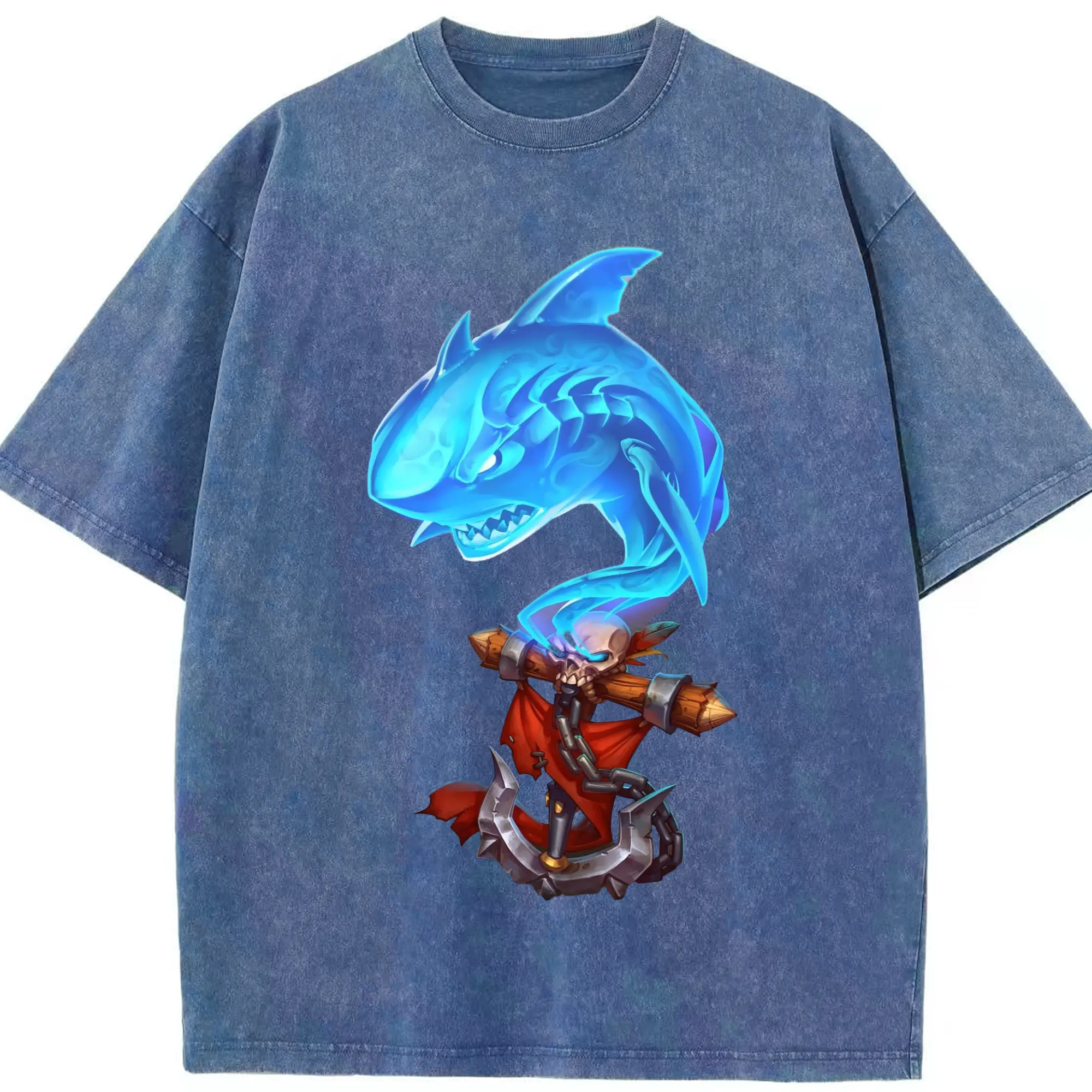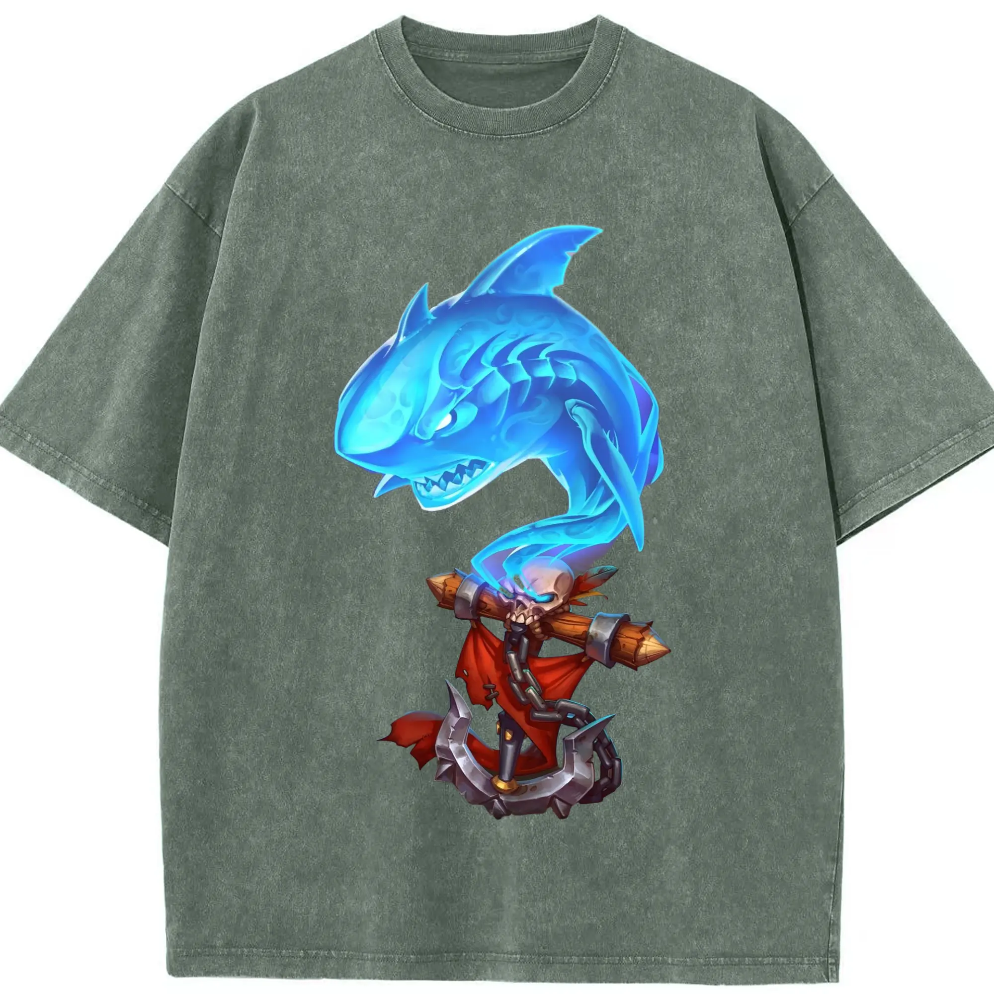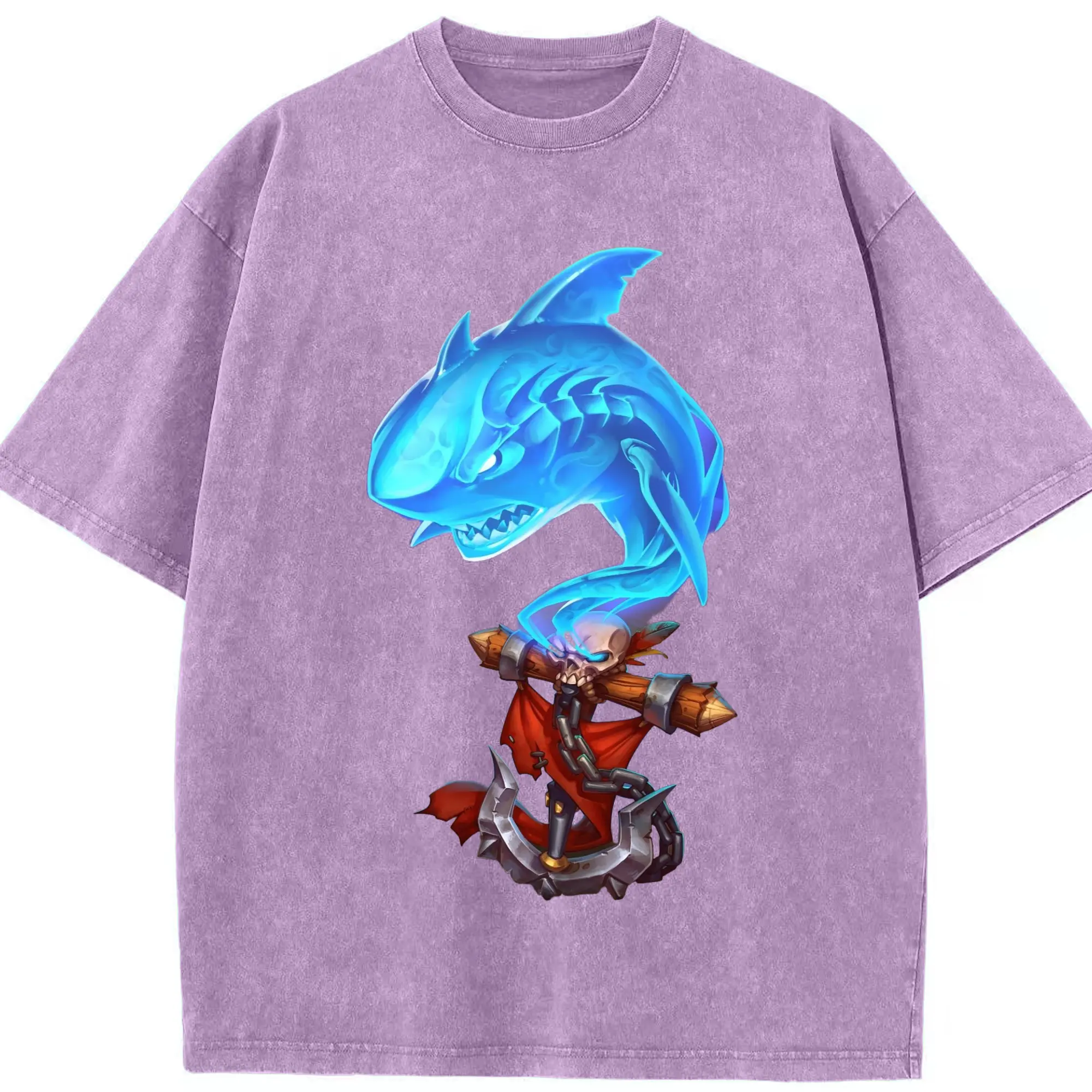 Hearthstone shaman shark icon t shirts - Washed Vintage Look 230g Cotton Oversized T-Shirt With Front Heat Transfer Print – Soft, Lightweight, Stylish Fit – Comfortable Casual Wear For Sports & Everyday Use