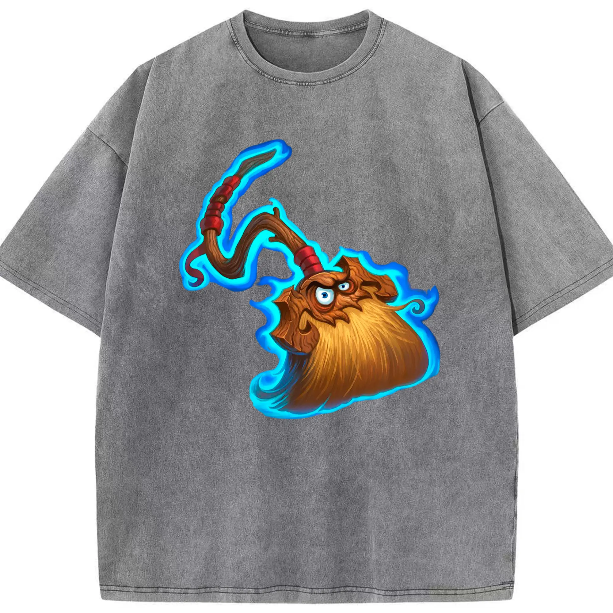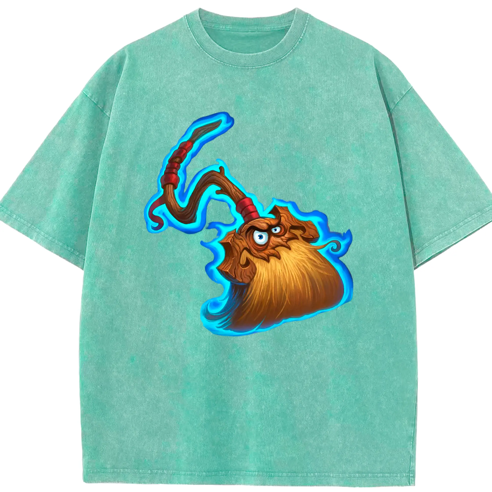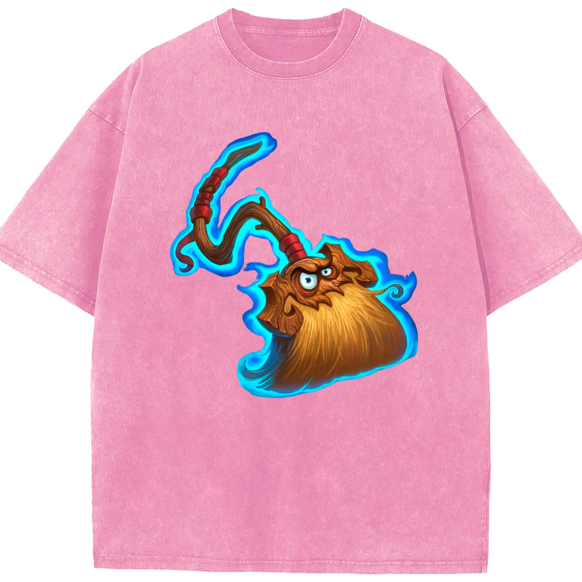 Hearthstone tee shirts​ - Washed Vintage Look 230g Cotton Oversized T-Shirt With Front Heat Transfer Print – Soft, Lightweight, Stylish Fit – Comfortable Casual Wear For Sports & Everyday Use