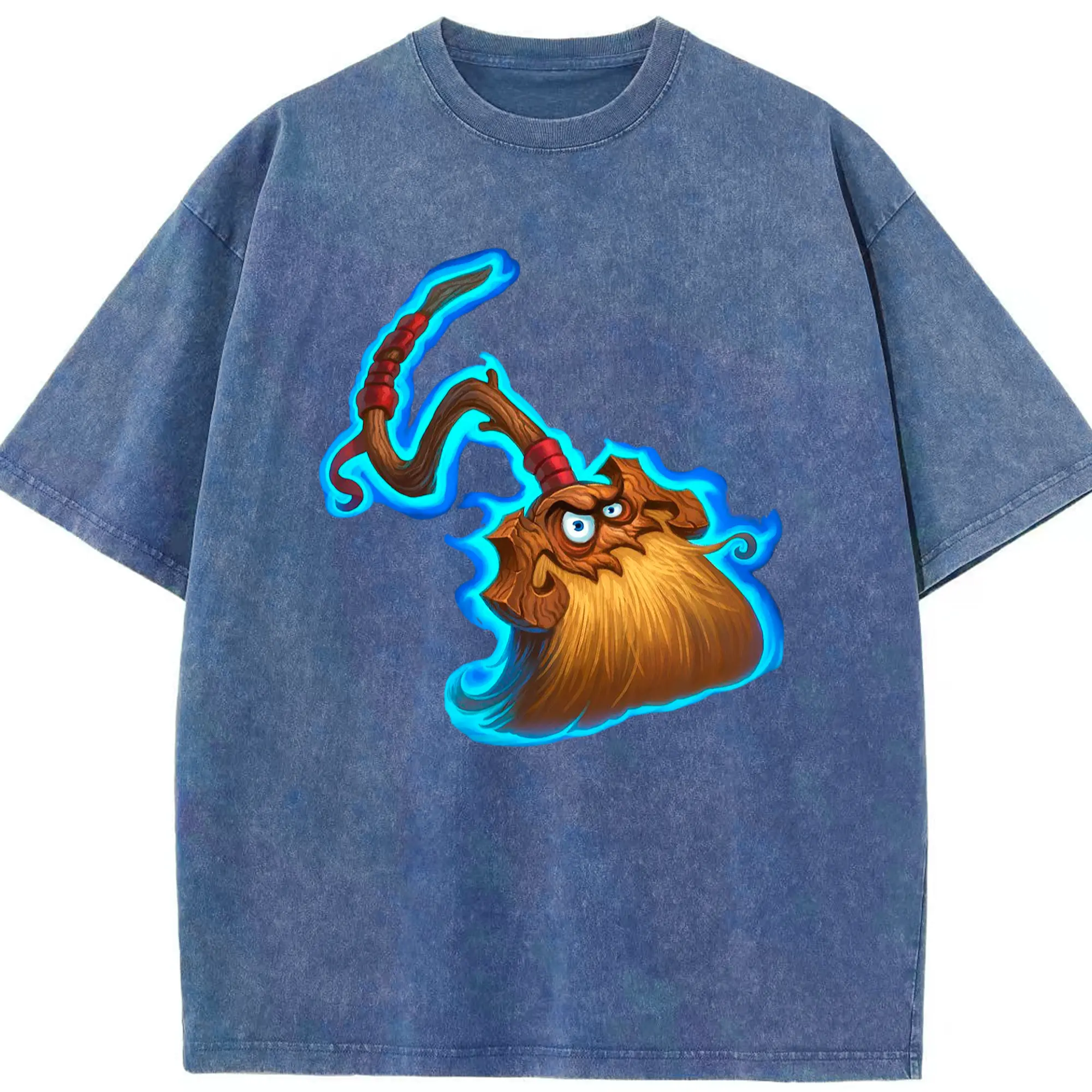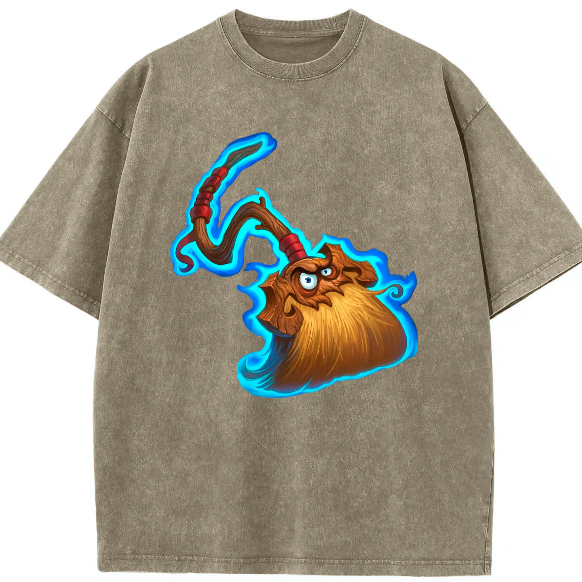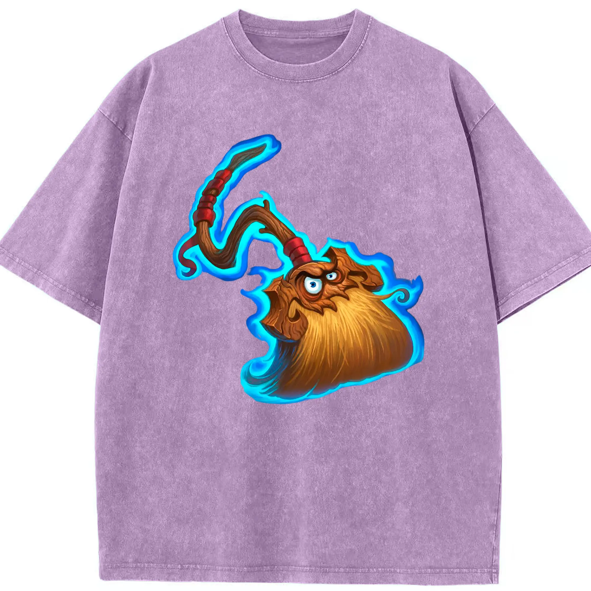 Hearthstone tee shirts​ - Washed Vintage Look 230g Cotton Oversized T-Shirt With Front Heat Transfer Print – Soft, Lightweight, Stylish Fit – Comfortable Casual Wear For Sports & Everyday Use