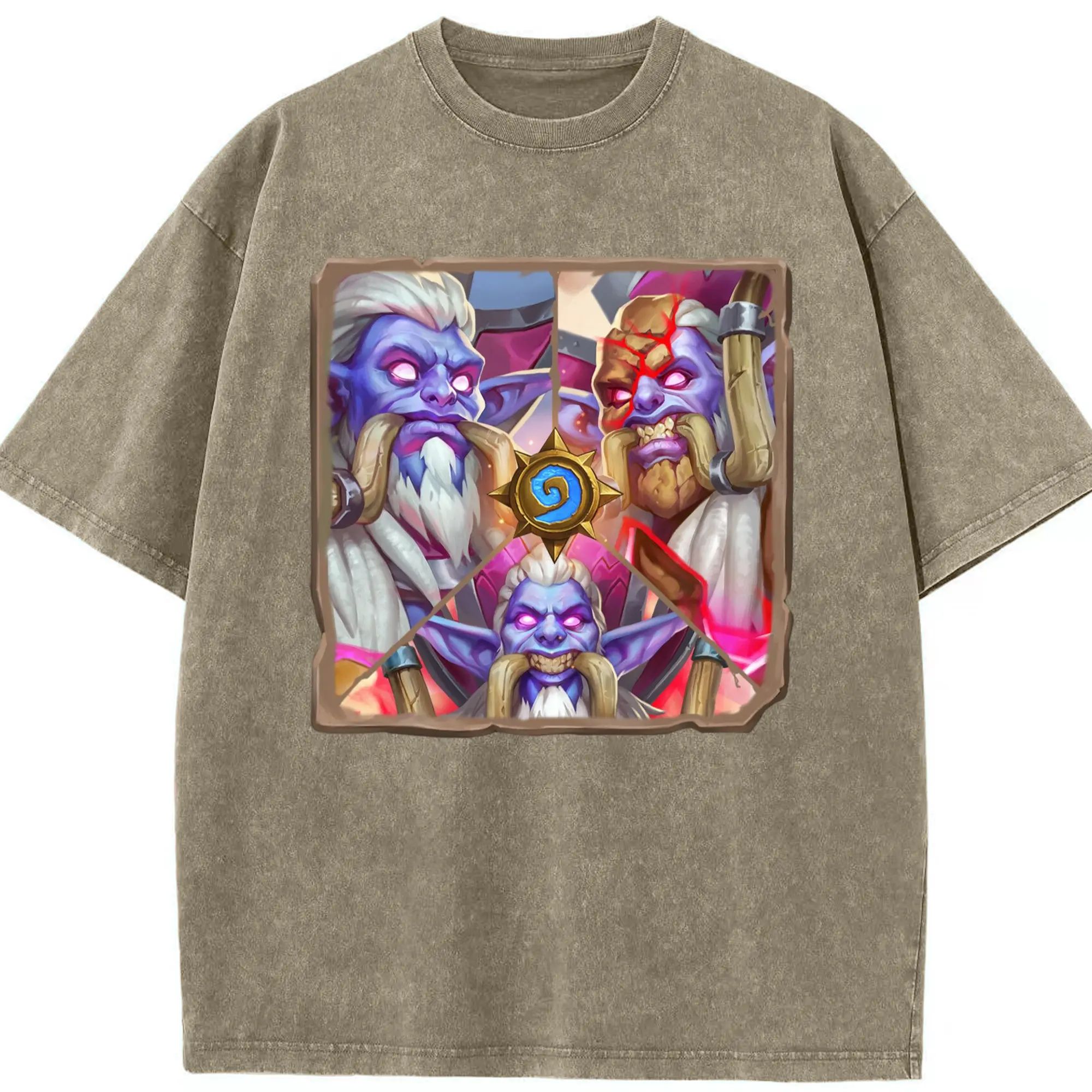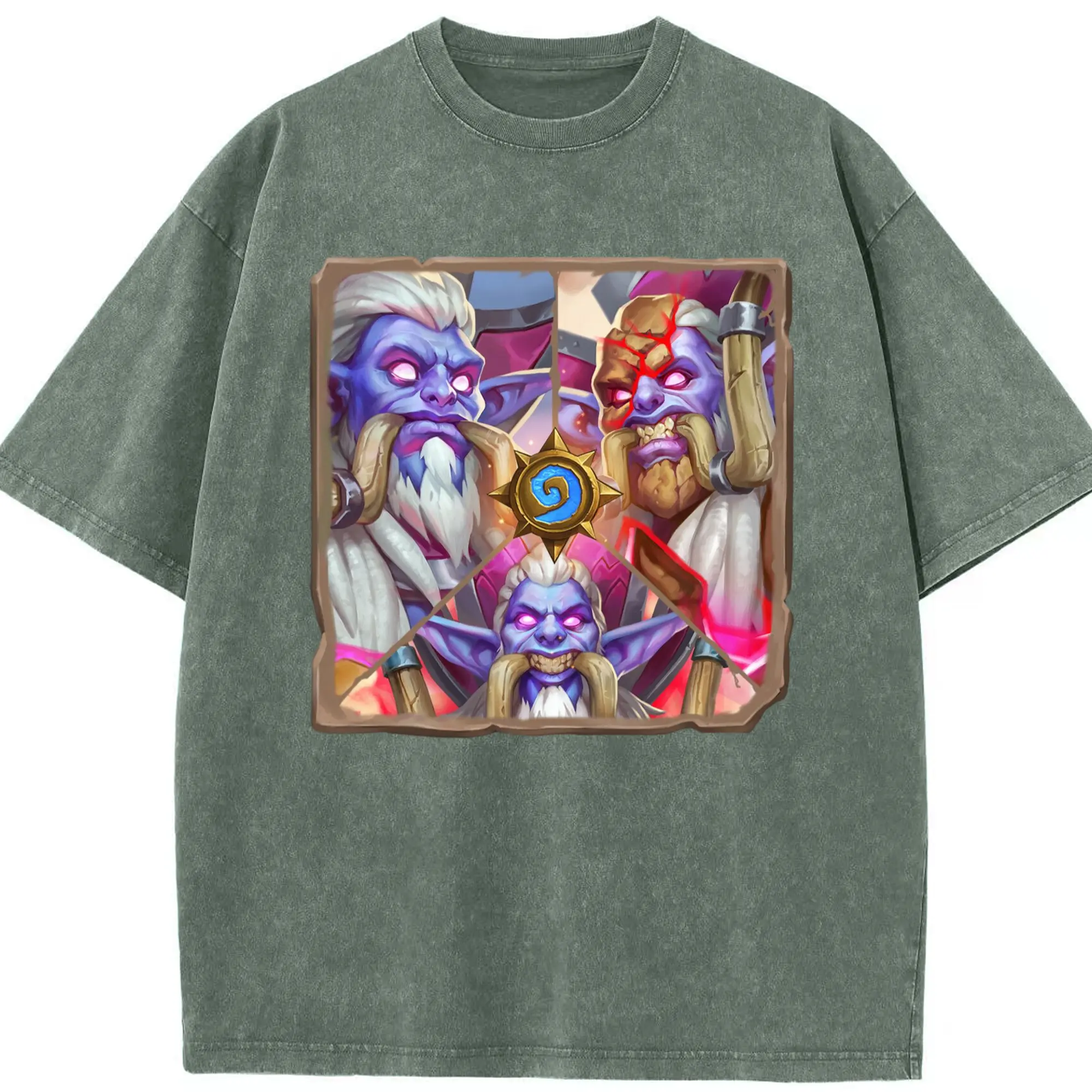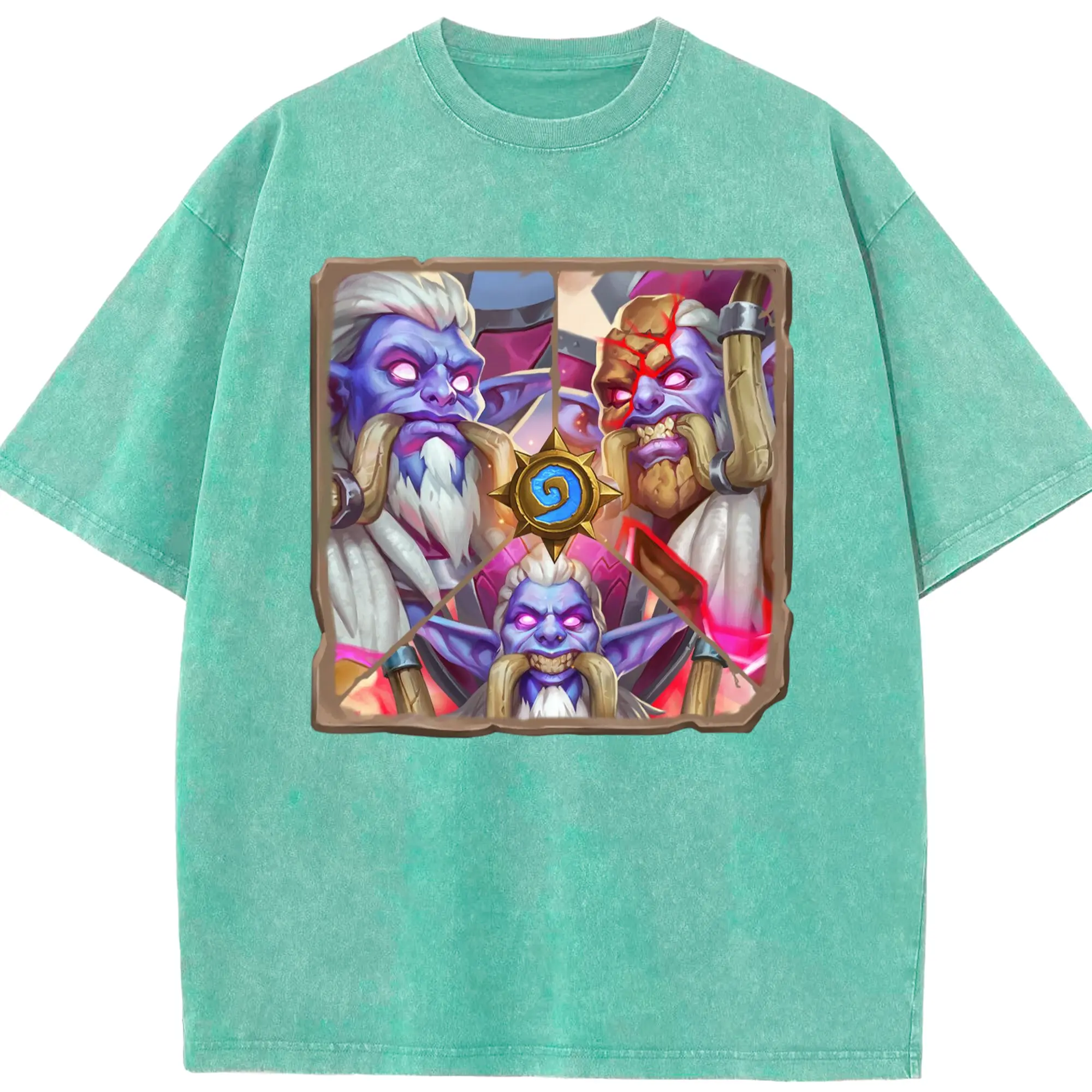 Hearthstone troll graphic t shirts​ - Washed Vintage Look 230g Cotton Oversized T-Shirt With Front Heat Transfer Print – Soft, Lightweight, Stylish Fit – Comfortable Casual Wear For Sports & Everyday Use