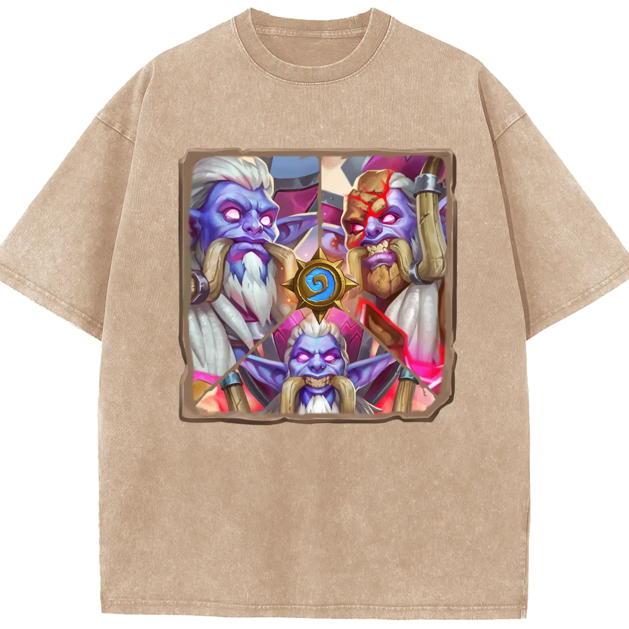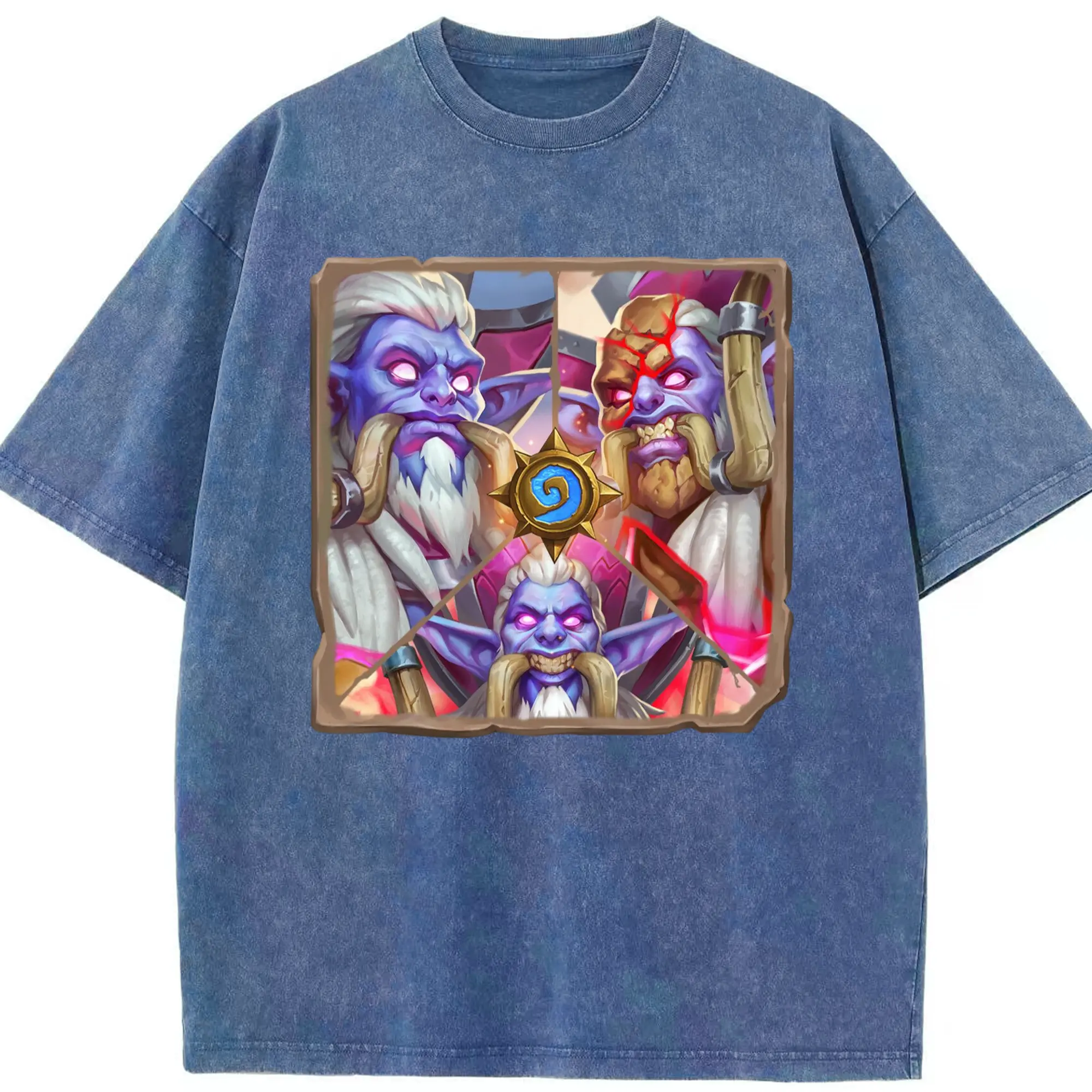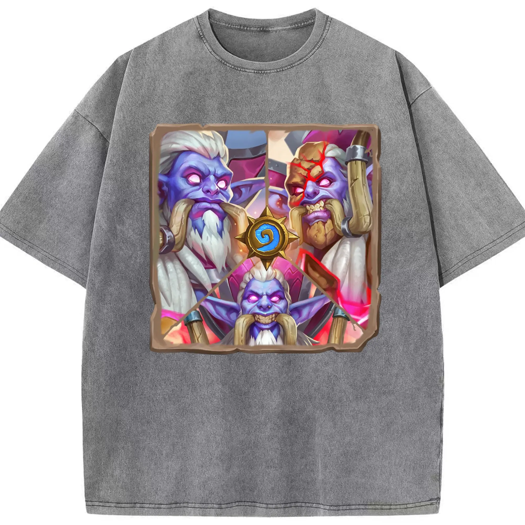 Hearthstone troll graphic t shirts​ - Washed Vintage Look 230g Cotton Oversized T-Shirt With Front Heat Transfer Print – Soft, Lightweight, Stylish Fit – Comfortable Casual Wear For Sports & Everyday Use