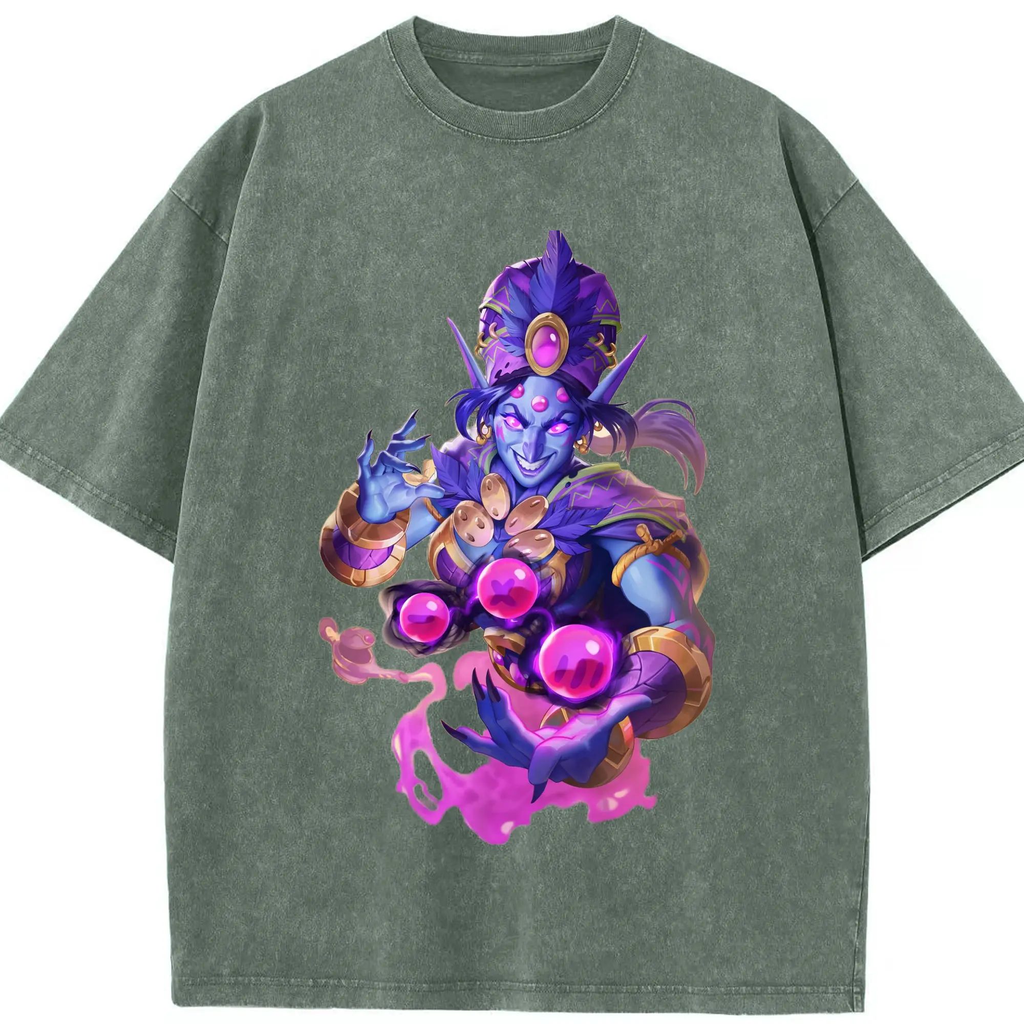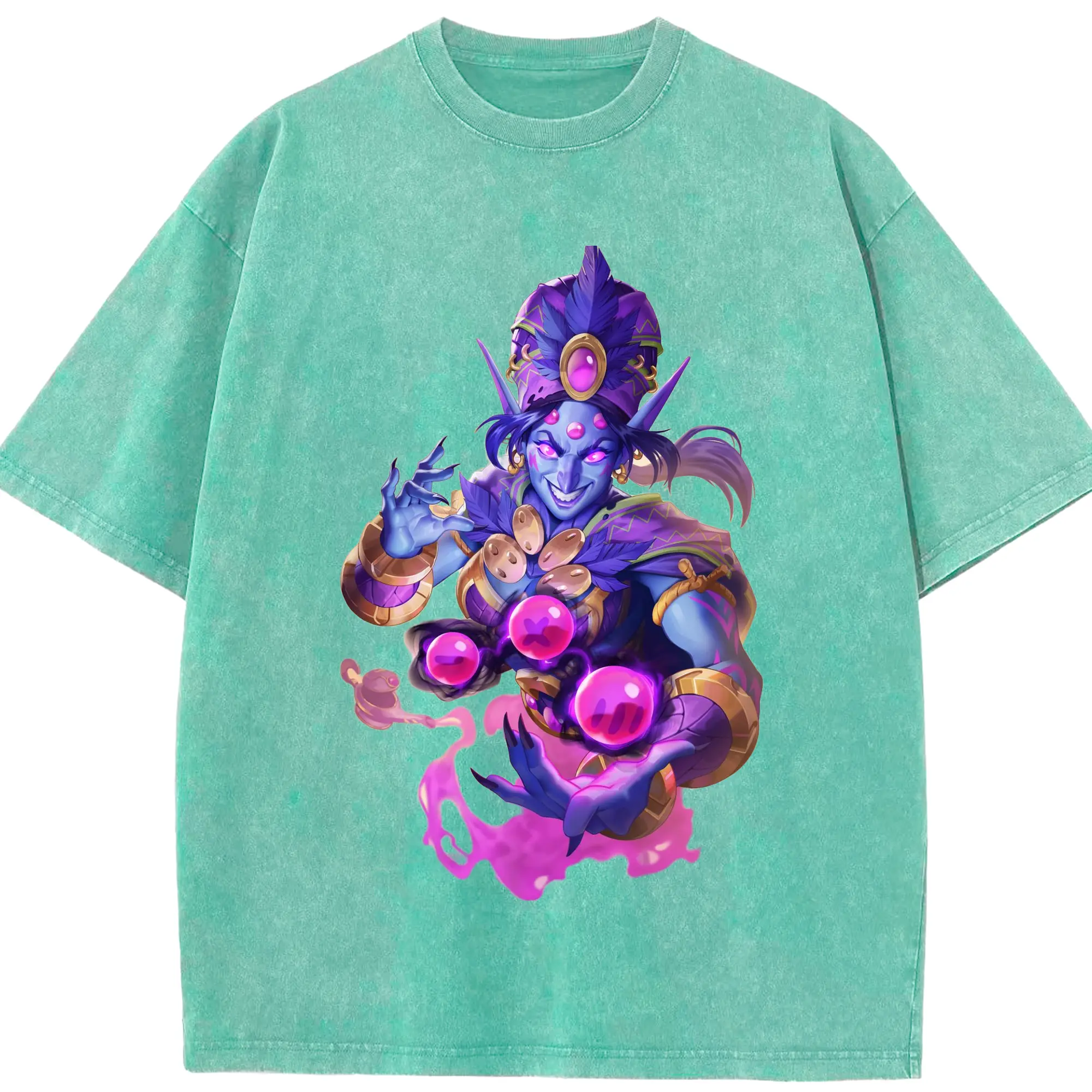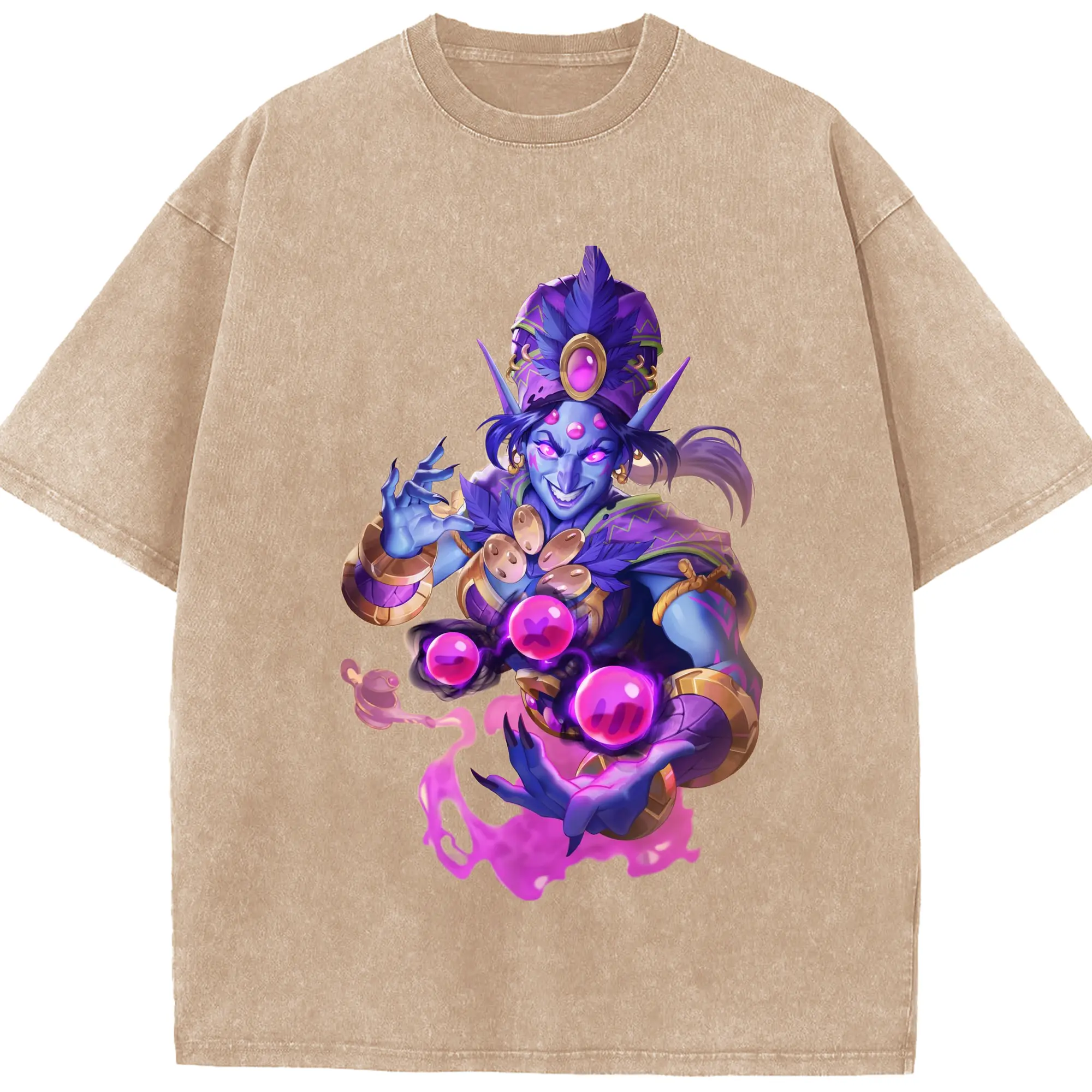 Hearthstone troll t shirts​ - Washed Vintage Look 230g Cotton Oversized T-Shirt With Front Heat Transfer Print – Soft, Lightweight, Stylish Fit – Comfortable Casual Wear For Sports & Everyday Use