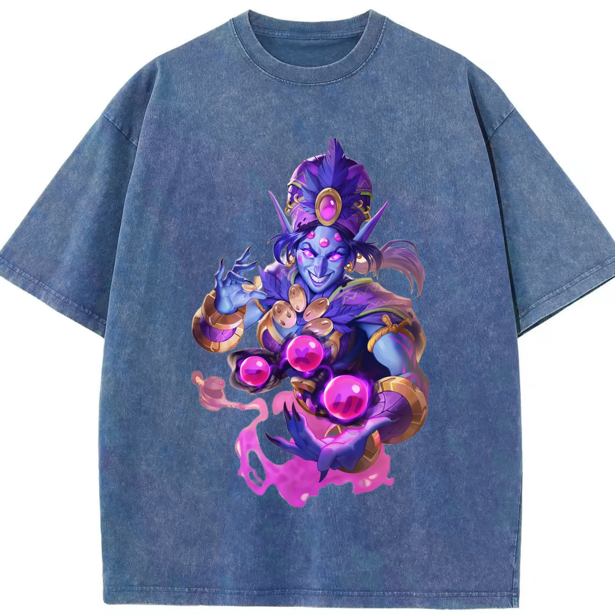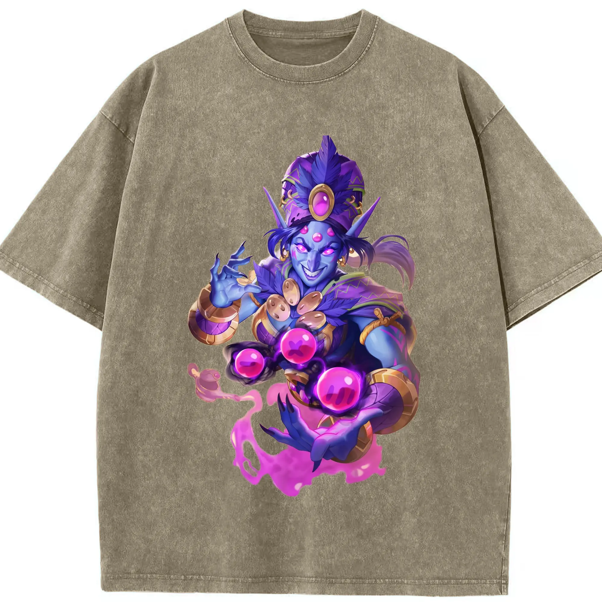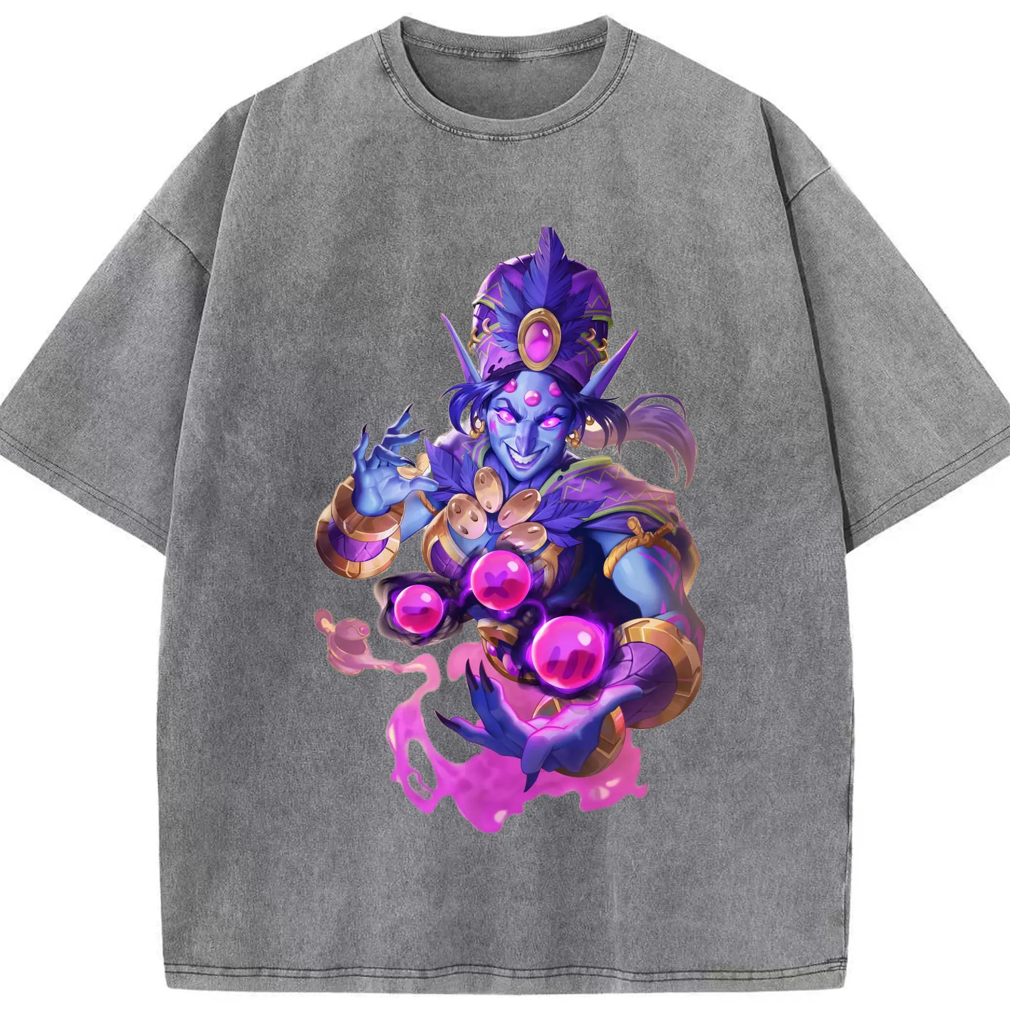 Hearthstone troll t shirts​ - Washed Vintage Look 230g Cotton Oversized T-Shirt With Front Heat Transfer Print – Soft, Lightweight, Stylish Fit – Comfortable Casual Wear For Sports & Everyday Use