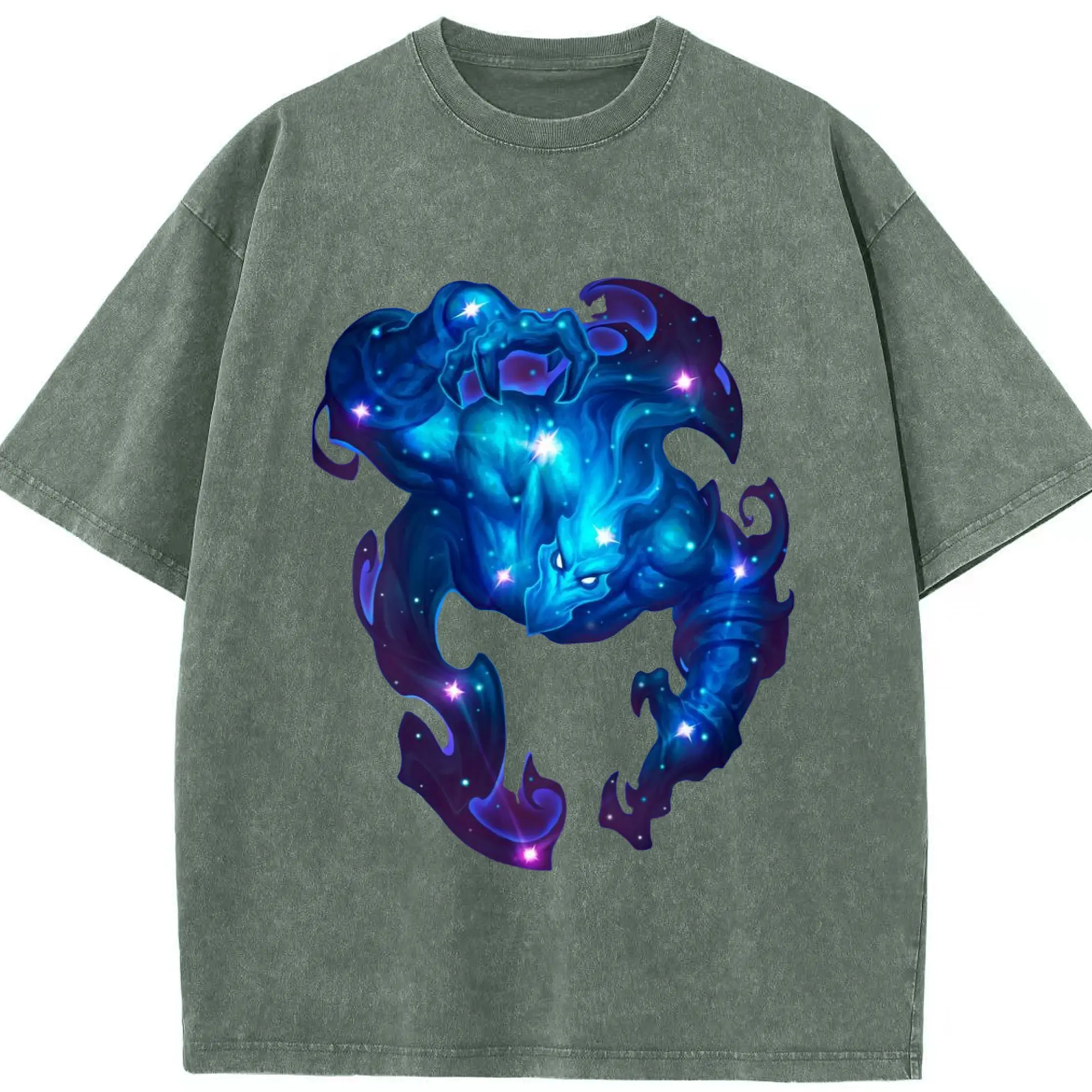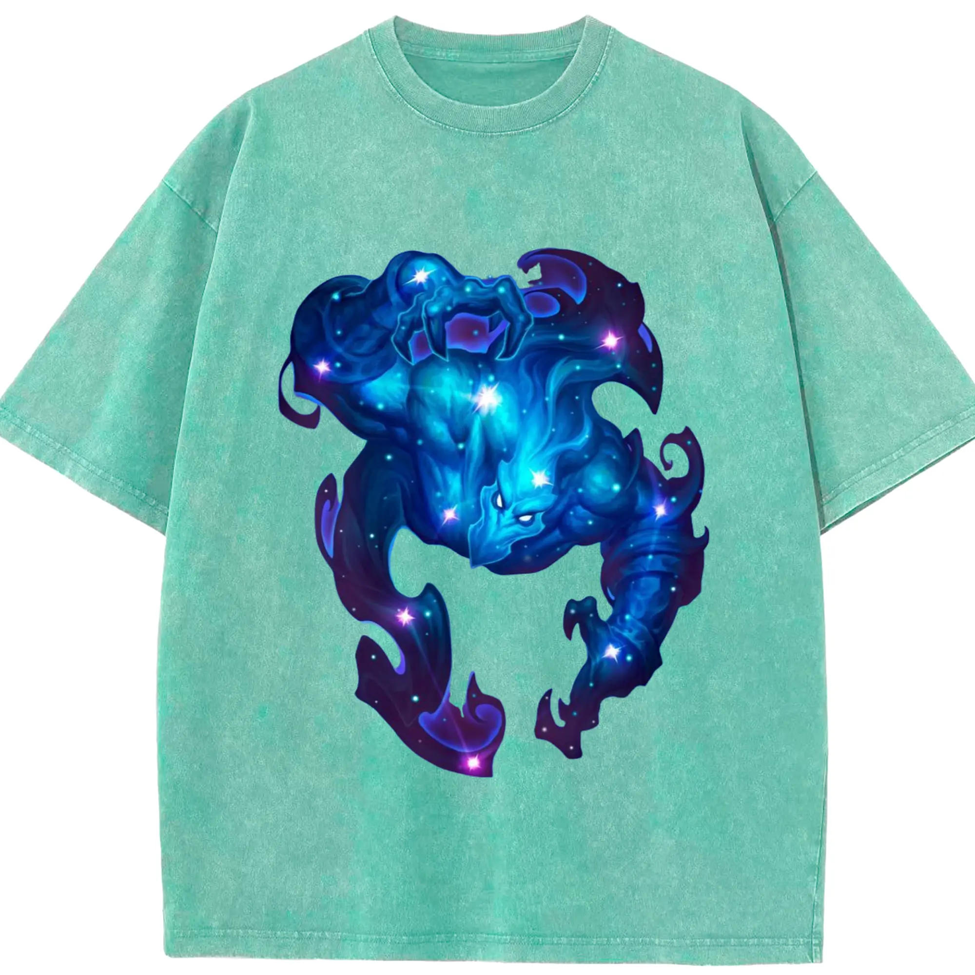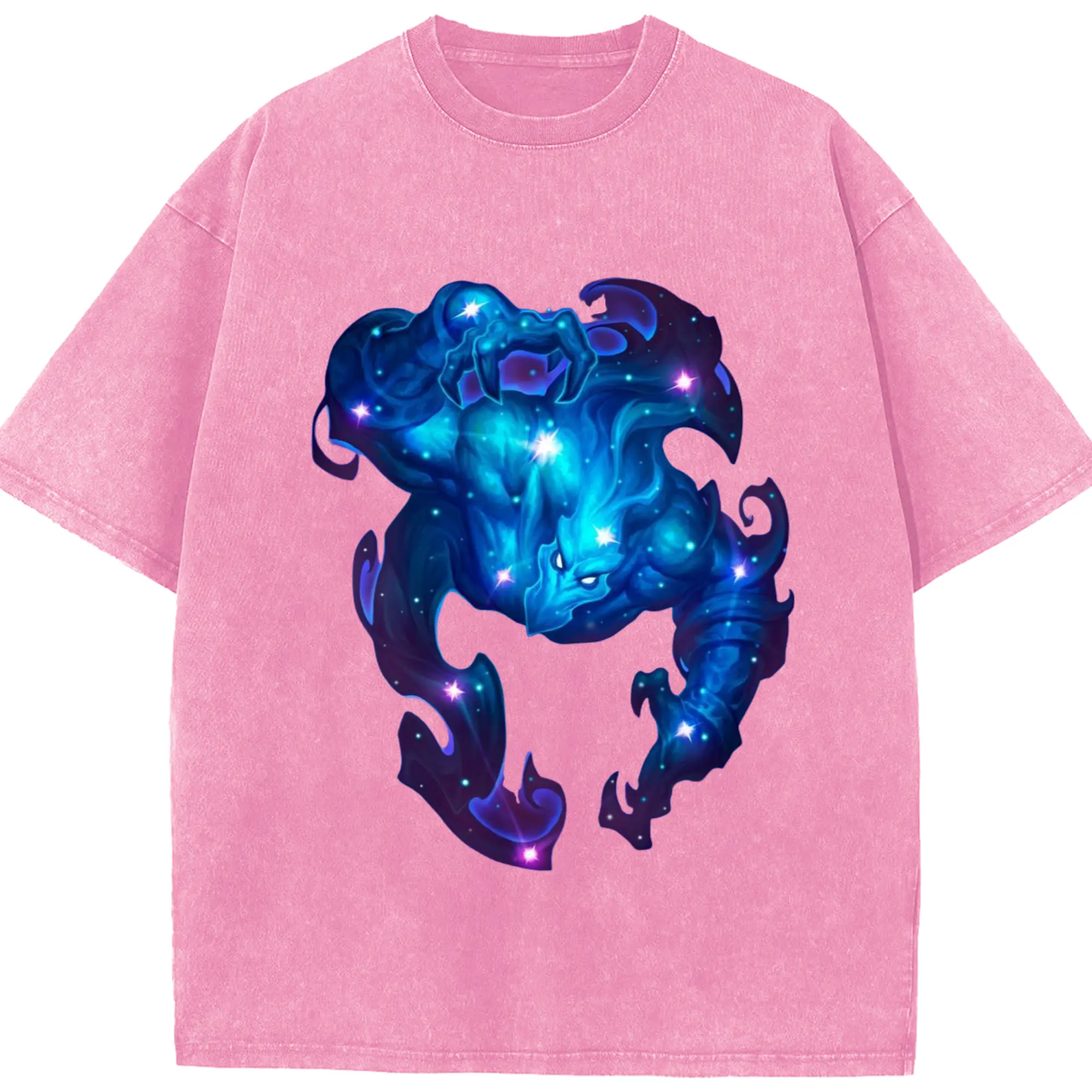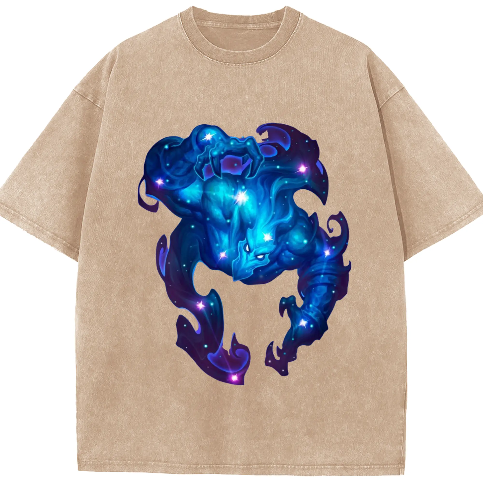 Hearthstone Void graphic t-shirt - Washed Vintage Look 230g Cotton Oversized T-Shirt With Front Heat Transfer Print – Soft, Lightweight, Stylish Fit – Comfortable Casual Wear For Sports & Everyday Use