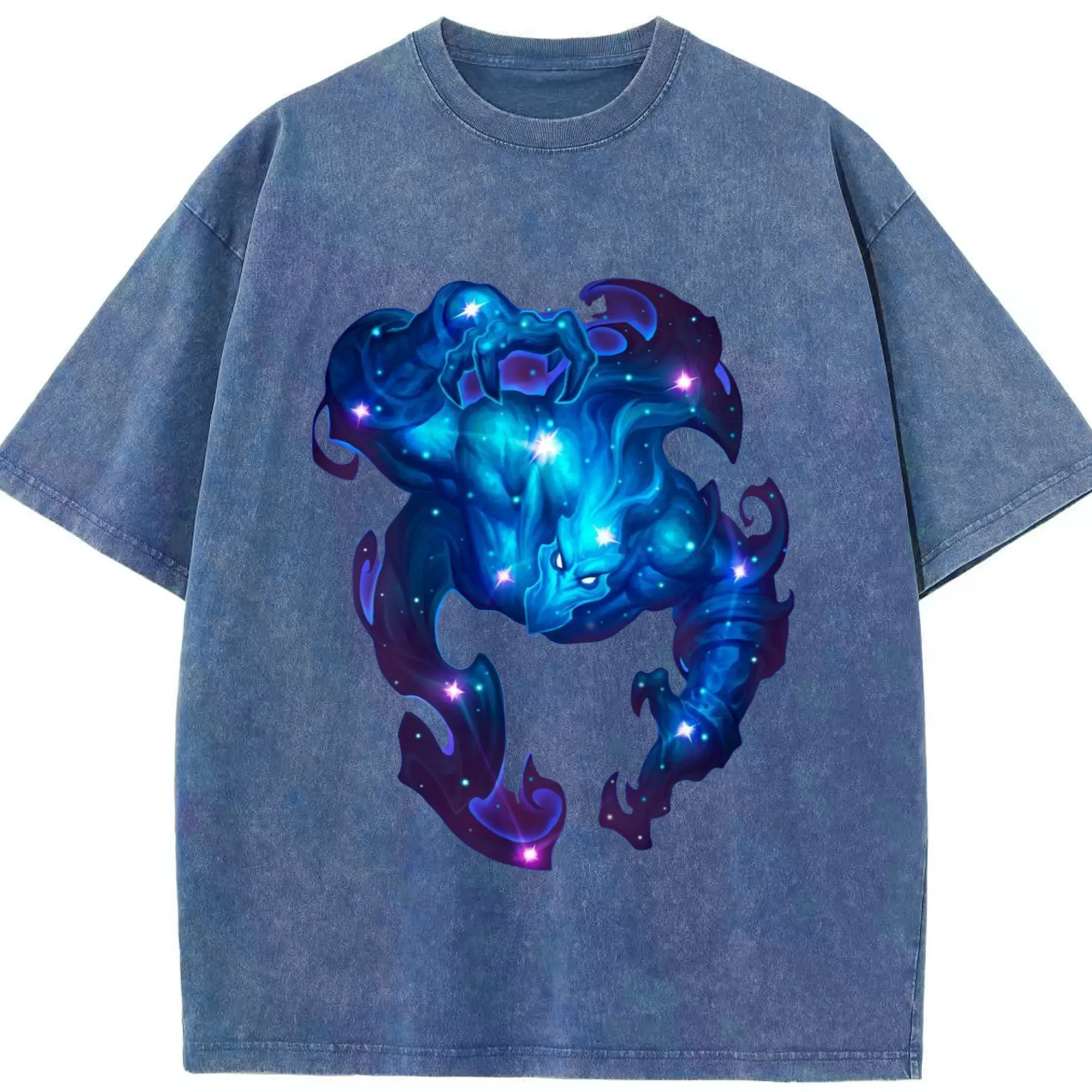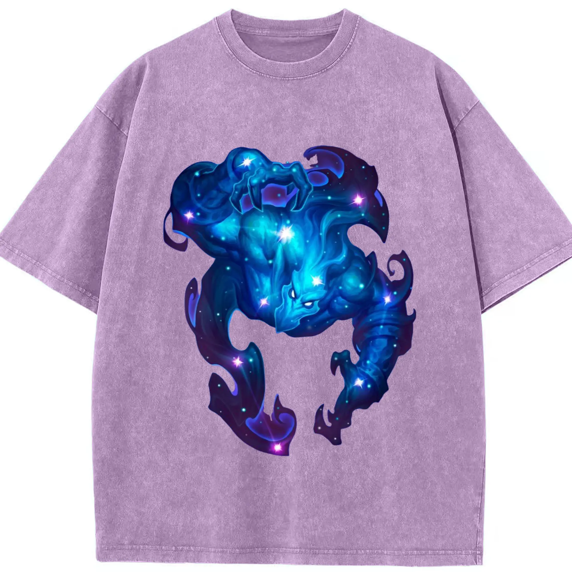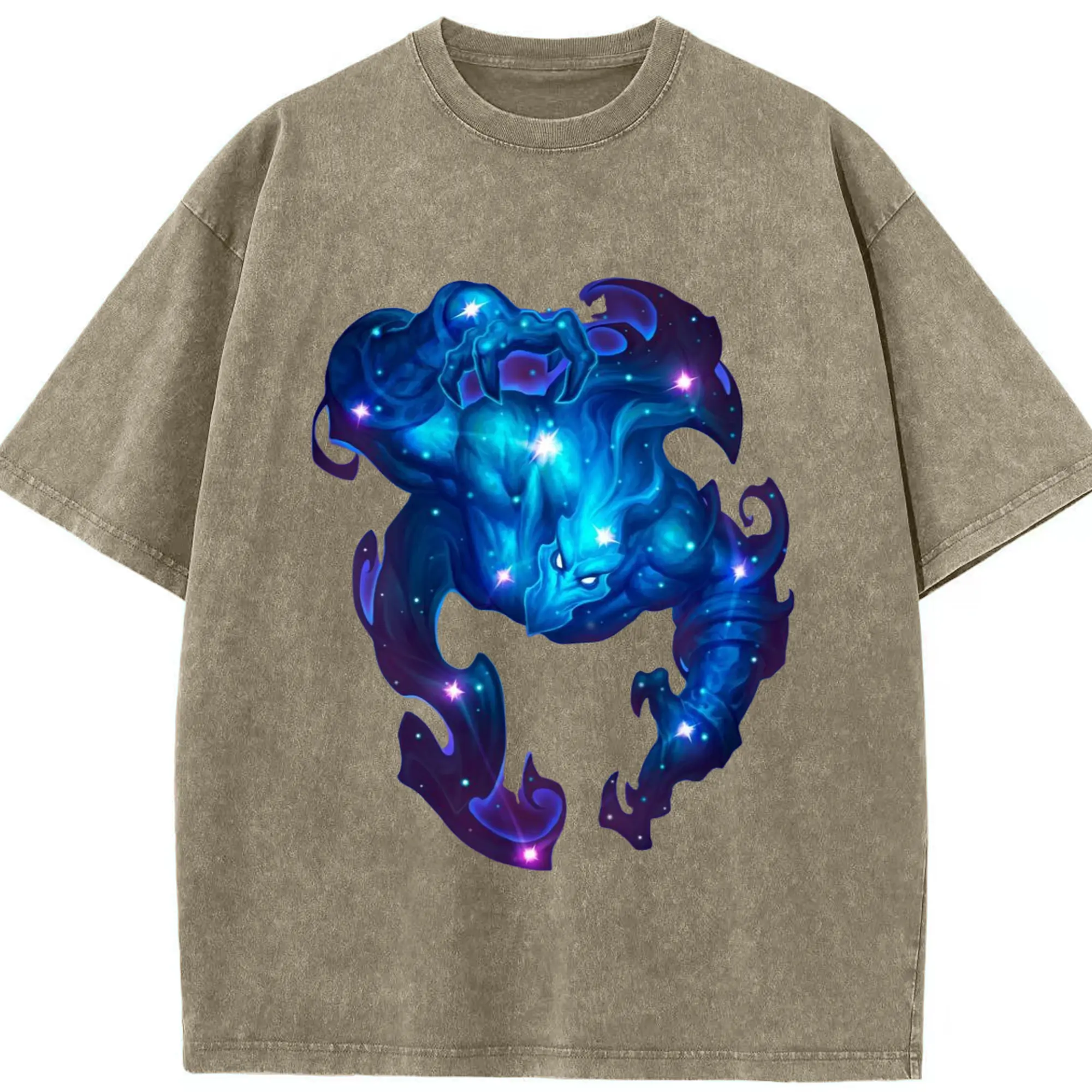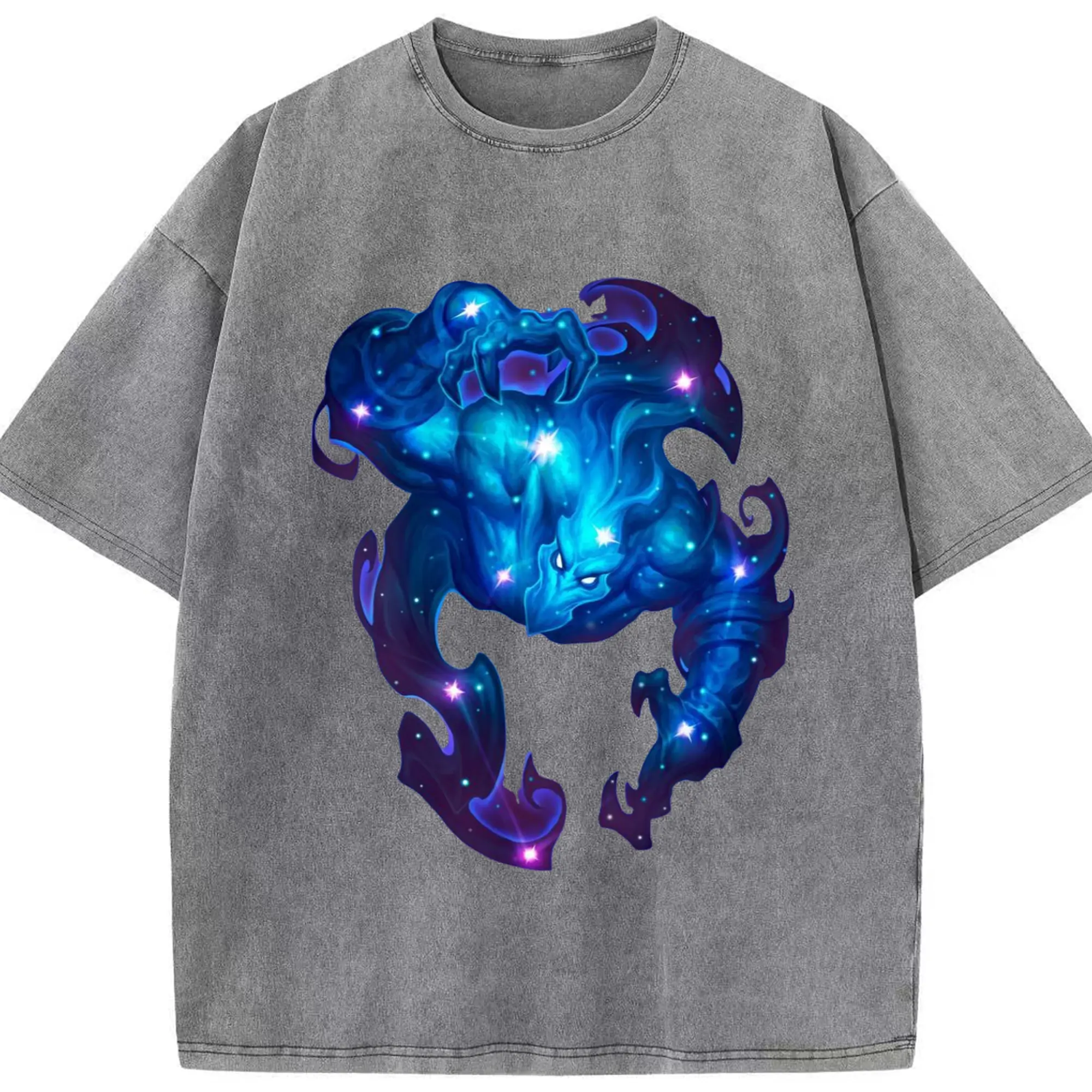 Hearthstone Void graphic t-shirt - Washed Vintage Look 230g Cotton Oversized T-Shirt With Front Heat Transfer Print – Soft, Lightweight, Stylish Fit – Comfortable Casual Wear For Sports & Everyday Use