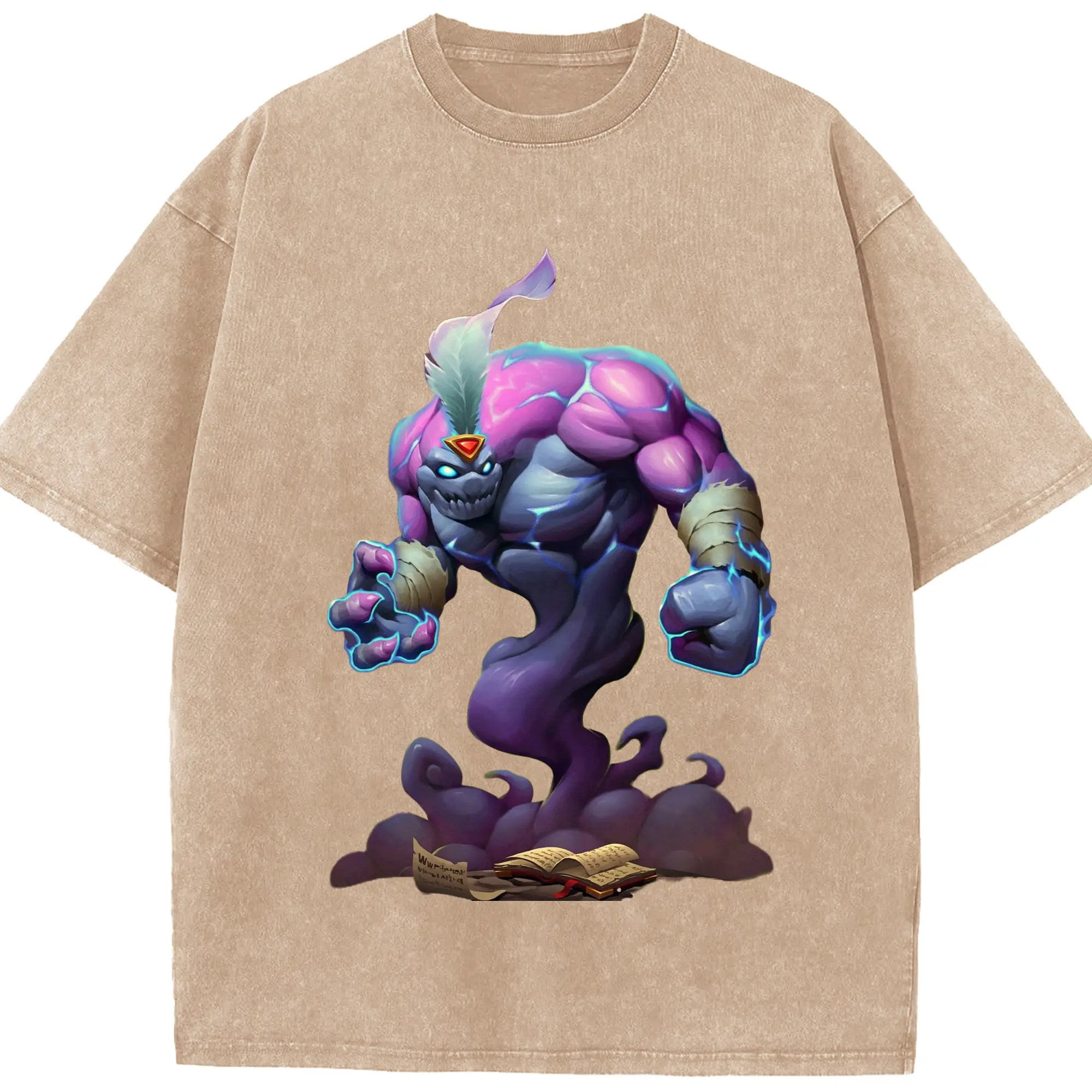 Hearthstone Void t-shirt - Washed Vintage Look 230g Cotton Oversized T-Shirt With Front Heat Transfer Print – Soft, Lightweight, Stylish Fit – Comfortable Casual Wear For Sports & Everyday Use