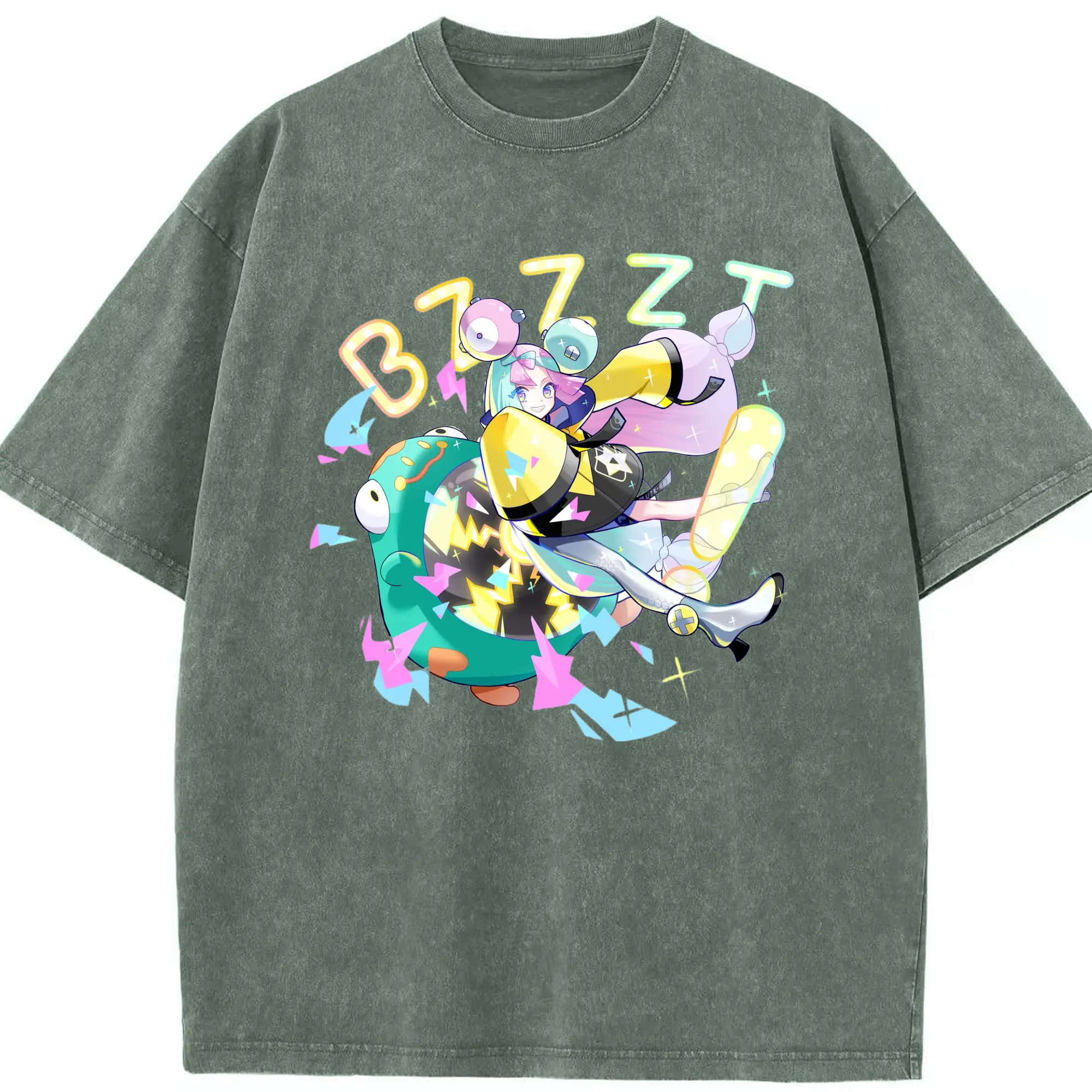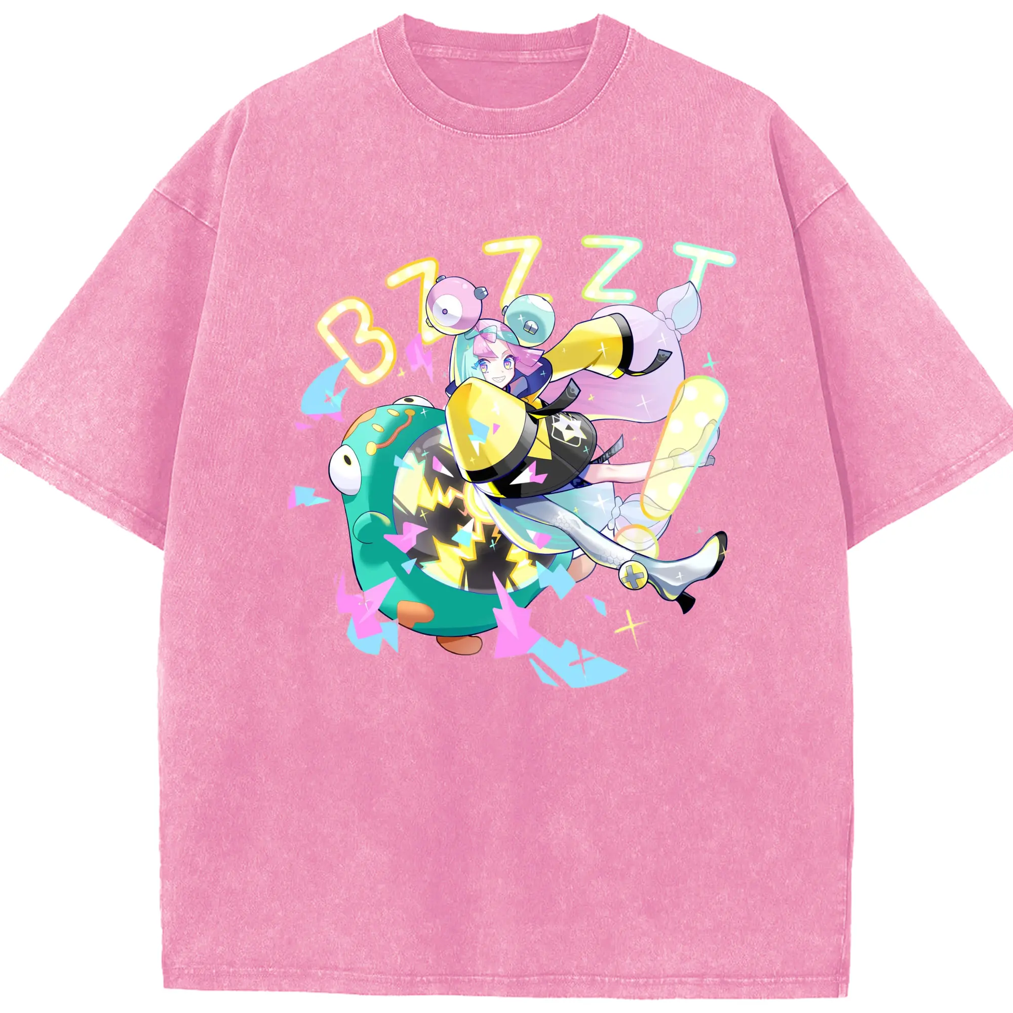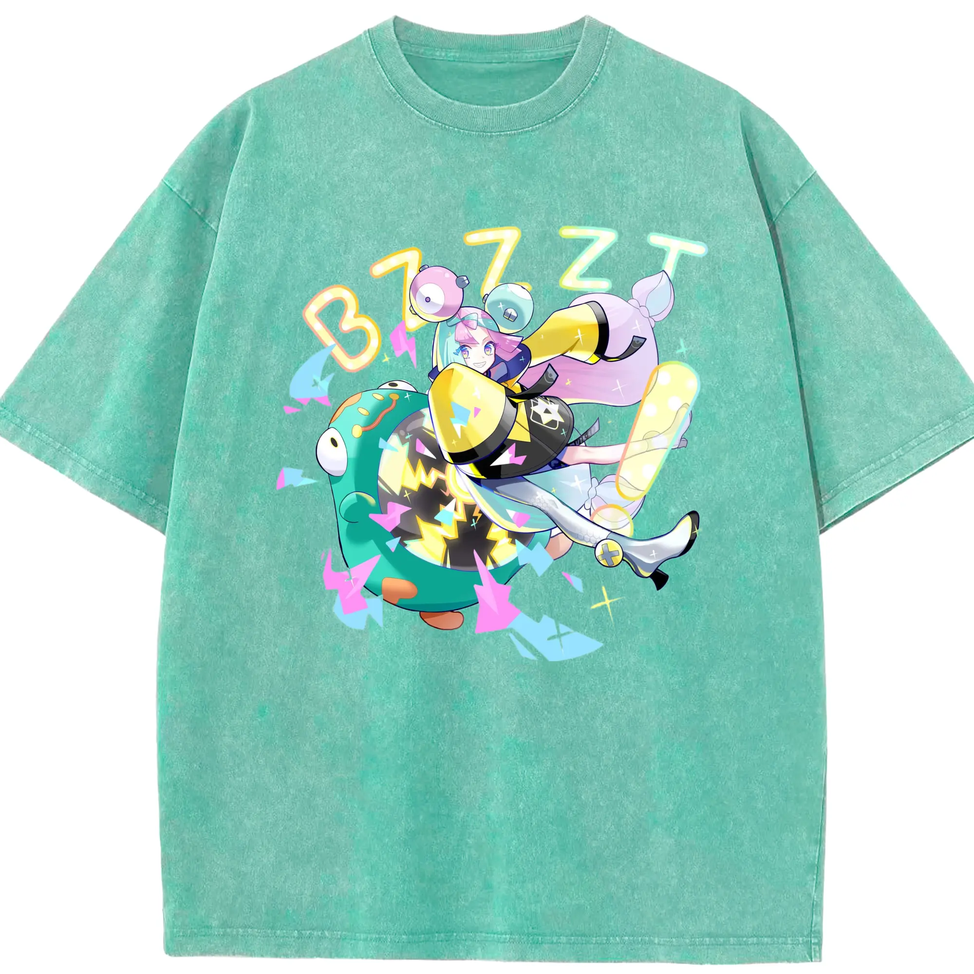 Iono Pokemon graphic Tee - Washed Vintage Look 230g Cotton Oversized T-Shirt With Front Heat Transfer Print – Soft, Lightweight, Stylish Fit – Comfortable Casual Wear For Sports & Everyday Use