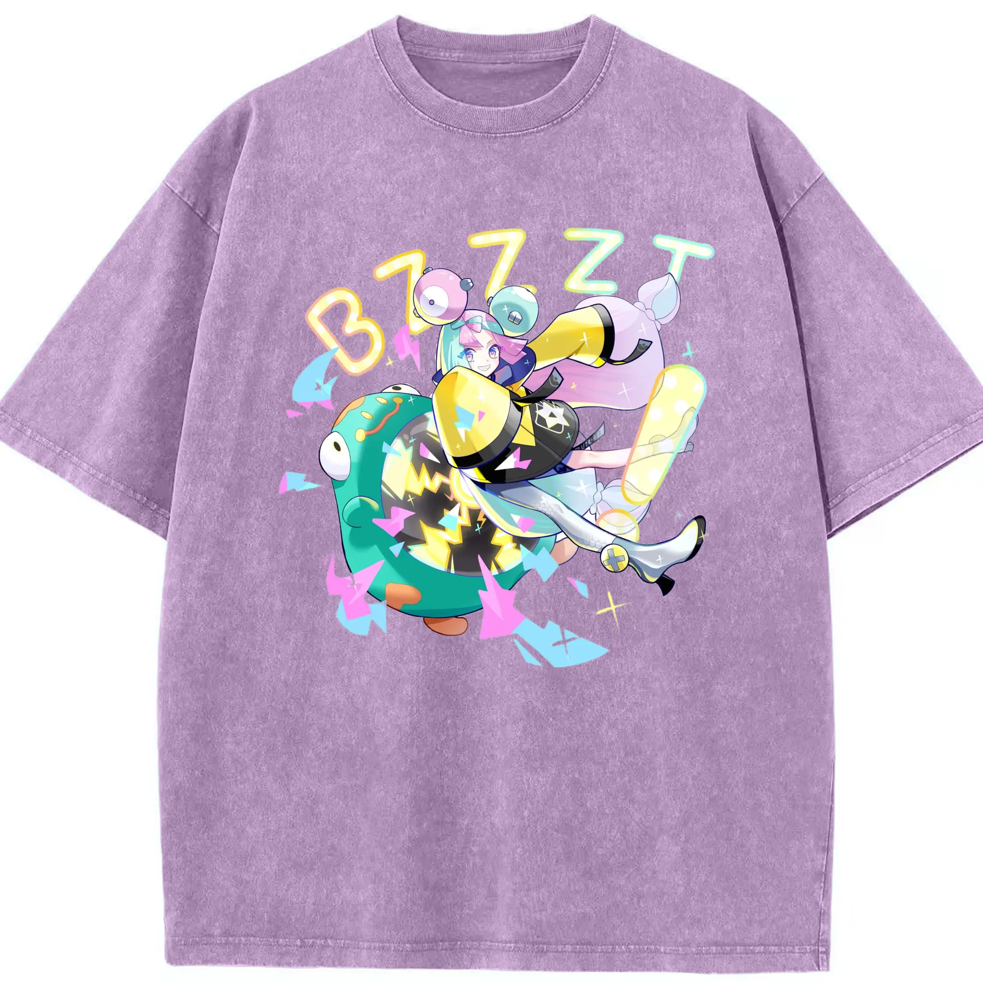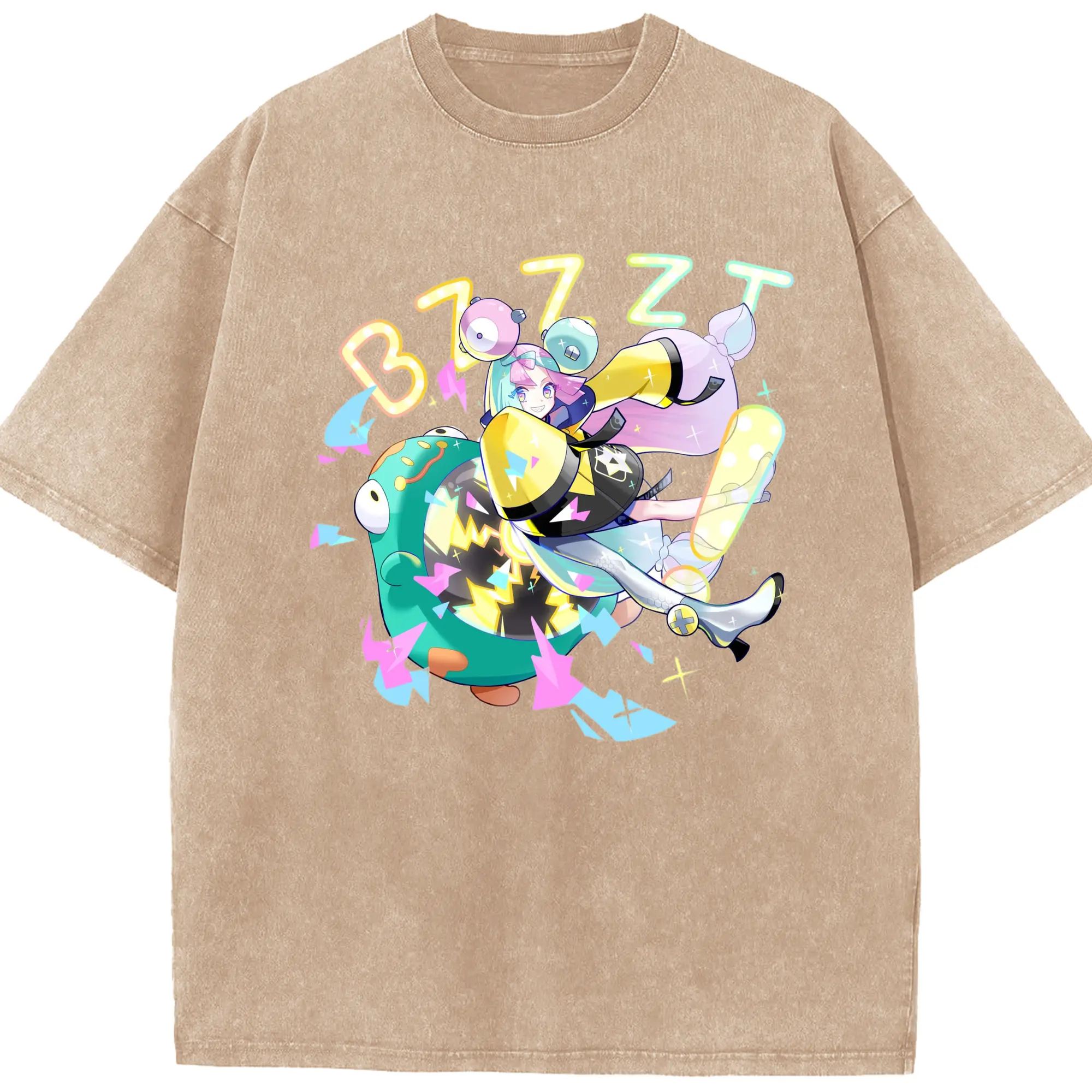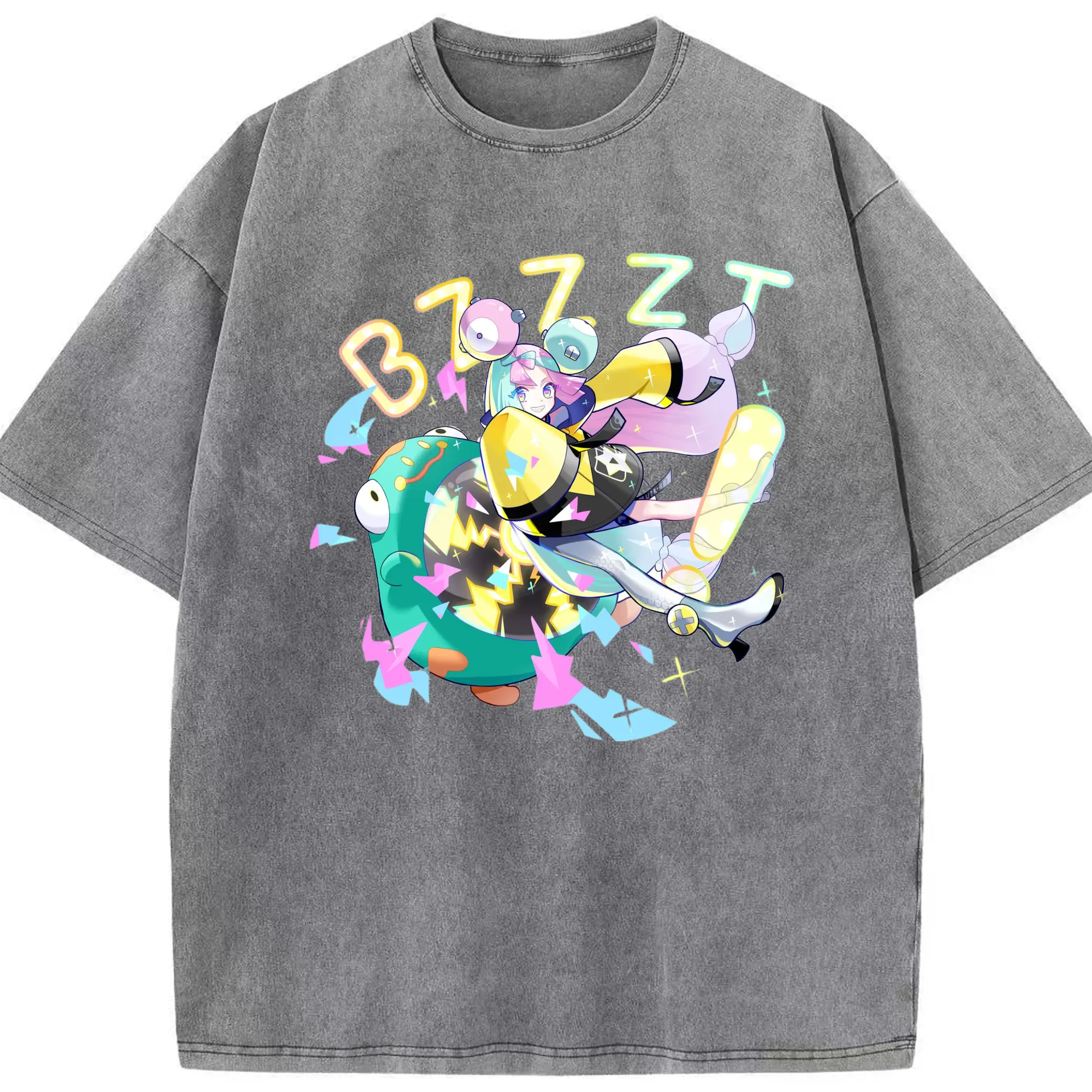 Iono Pokemon graphic Tee - Washed Vintage Look 230g Cotton Oversized T-Shirt With Front Heat Transfer Print – Soft, Lightweight, Stylish Fit – Comfortable Casual Wear For Sports & Everyday Use