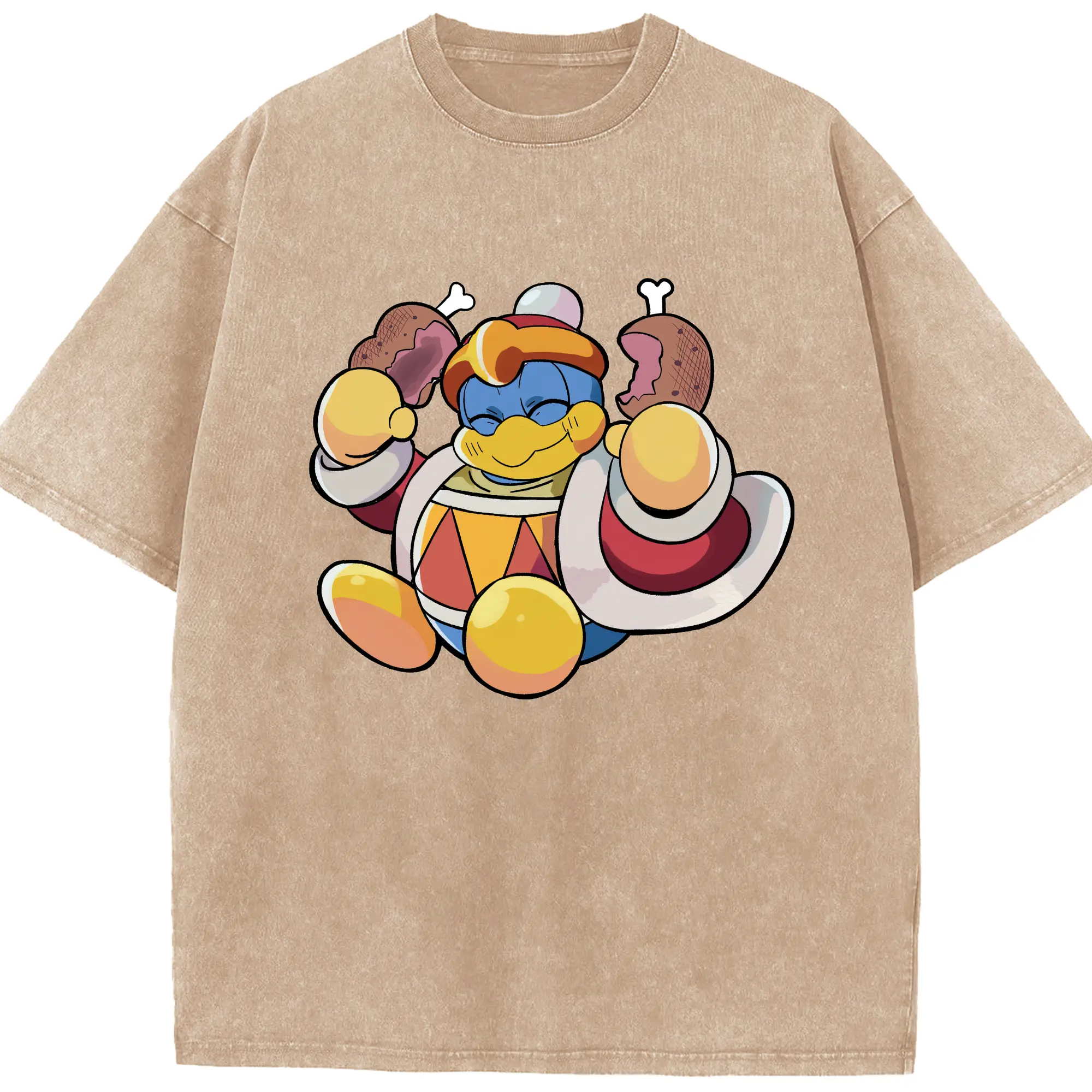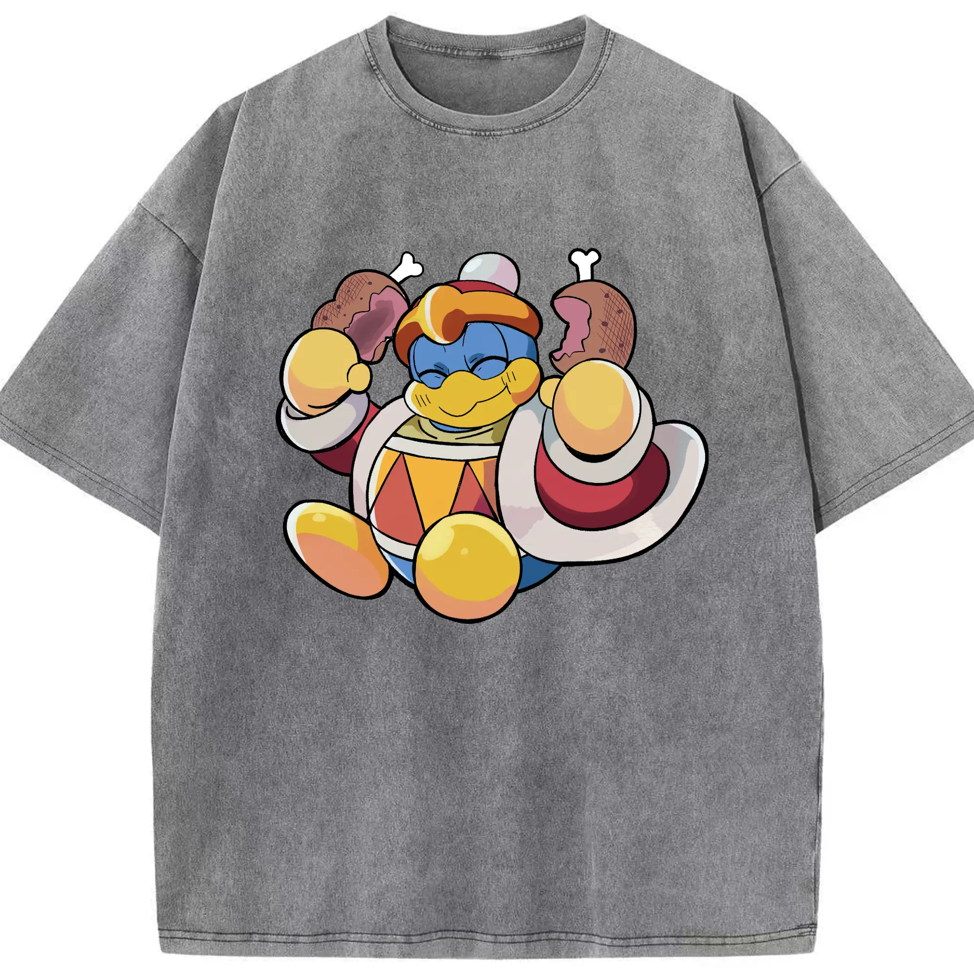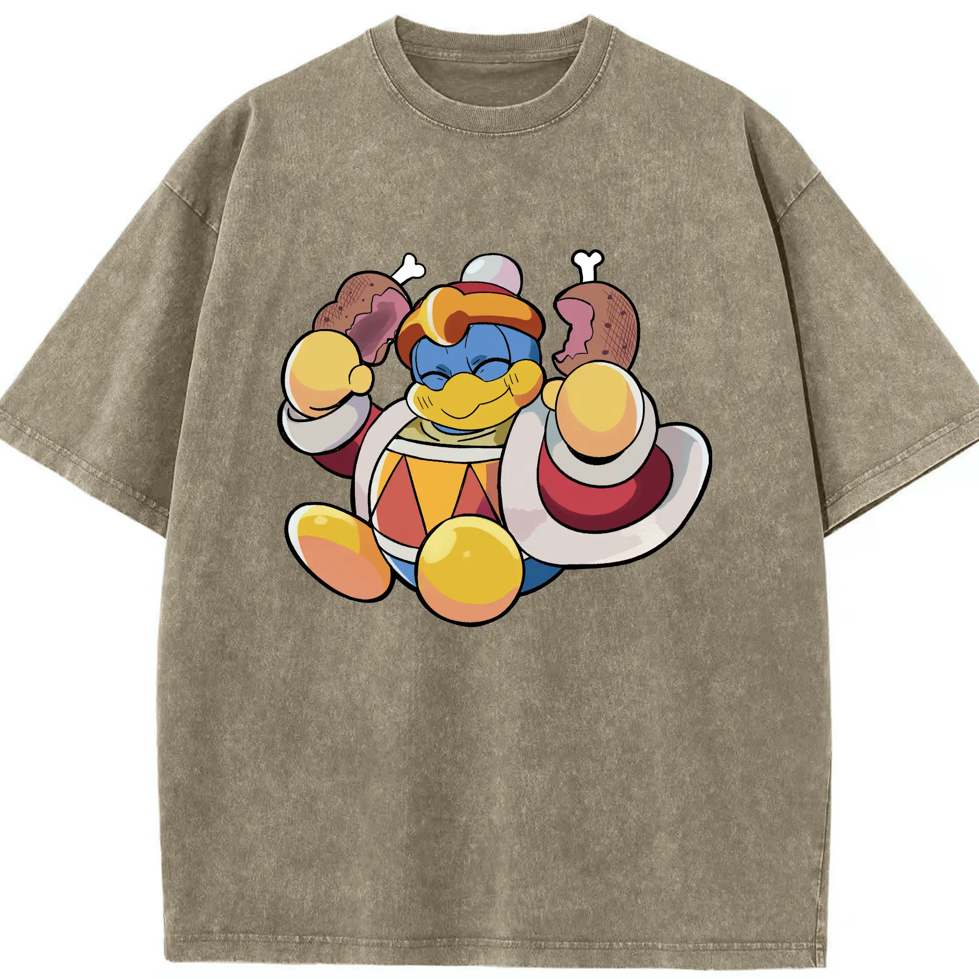 King Dedede eating graphic shirt - Washed Vintage Look 230g Cotton Oversized T-Shirt With Front Heat Transfer Print – Soft, Lightweight, Stylish Fit – Comfortable Casual Wear For Sports & Everyday Use