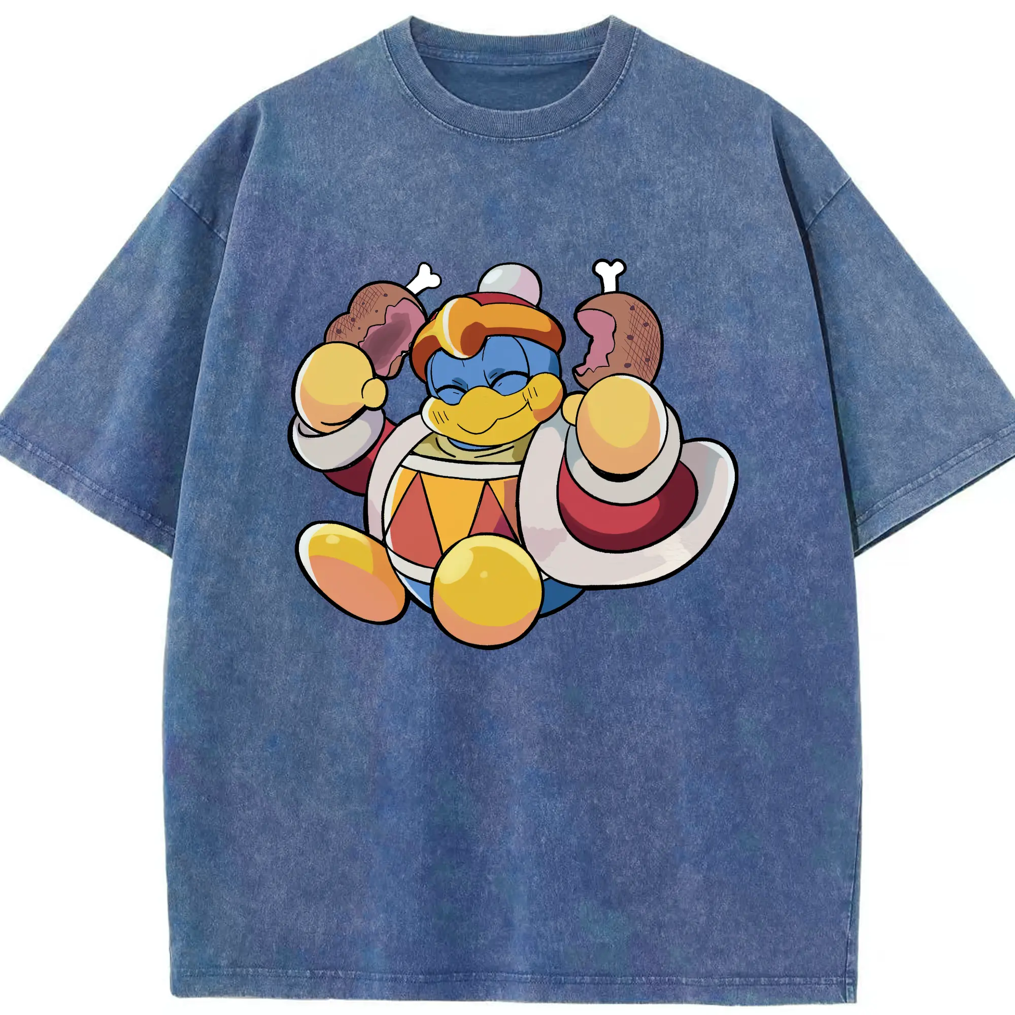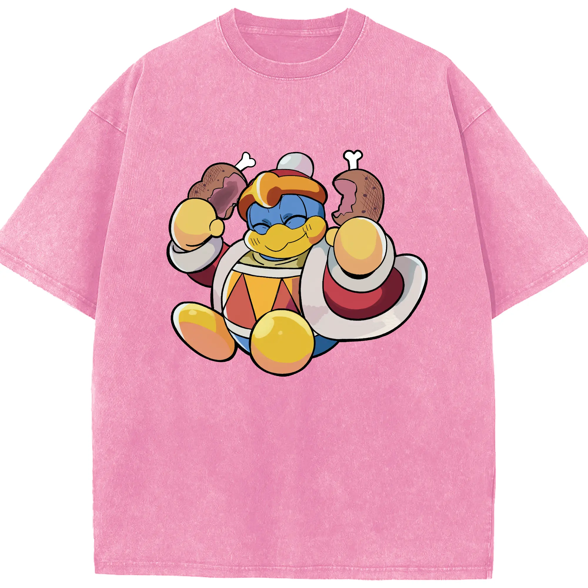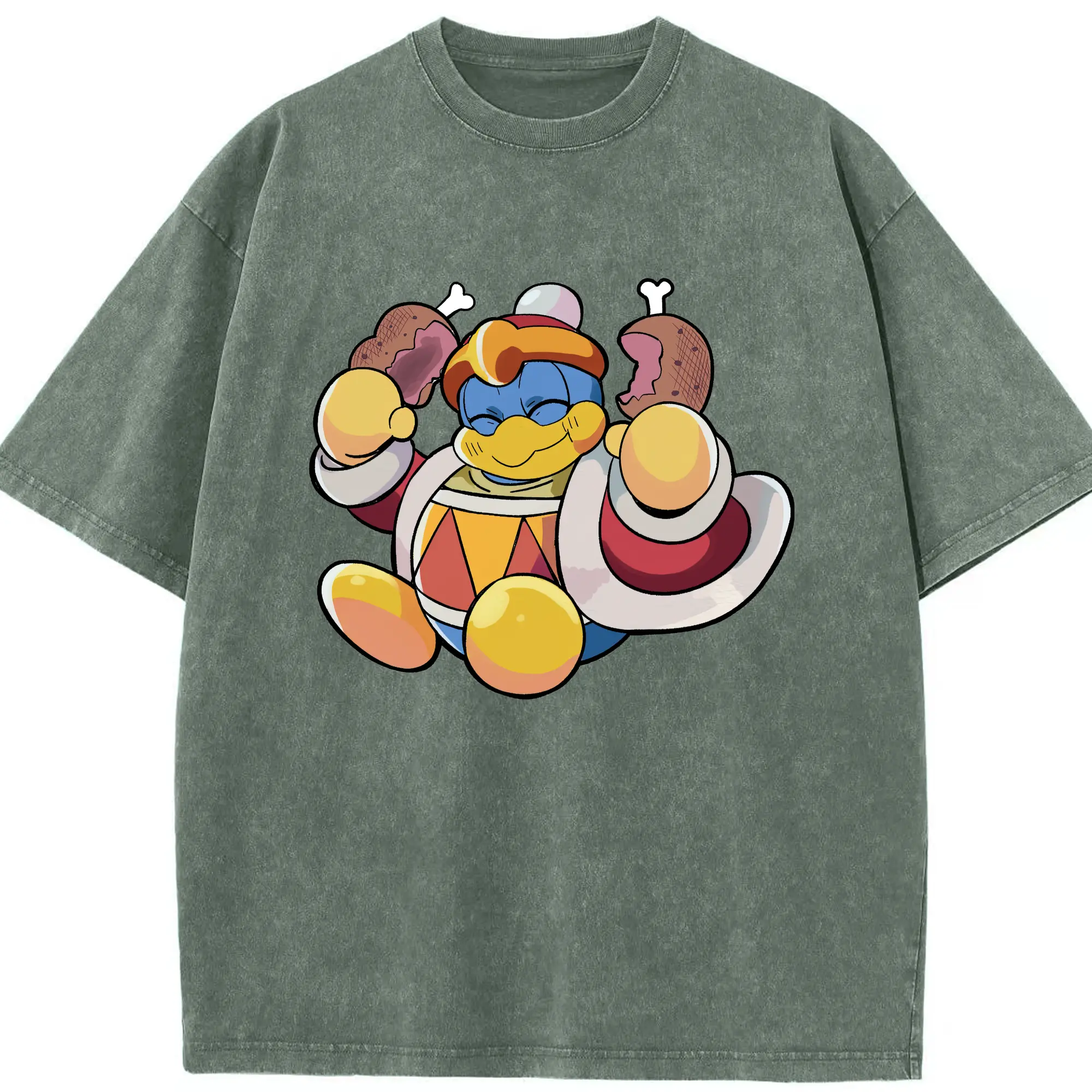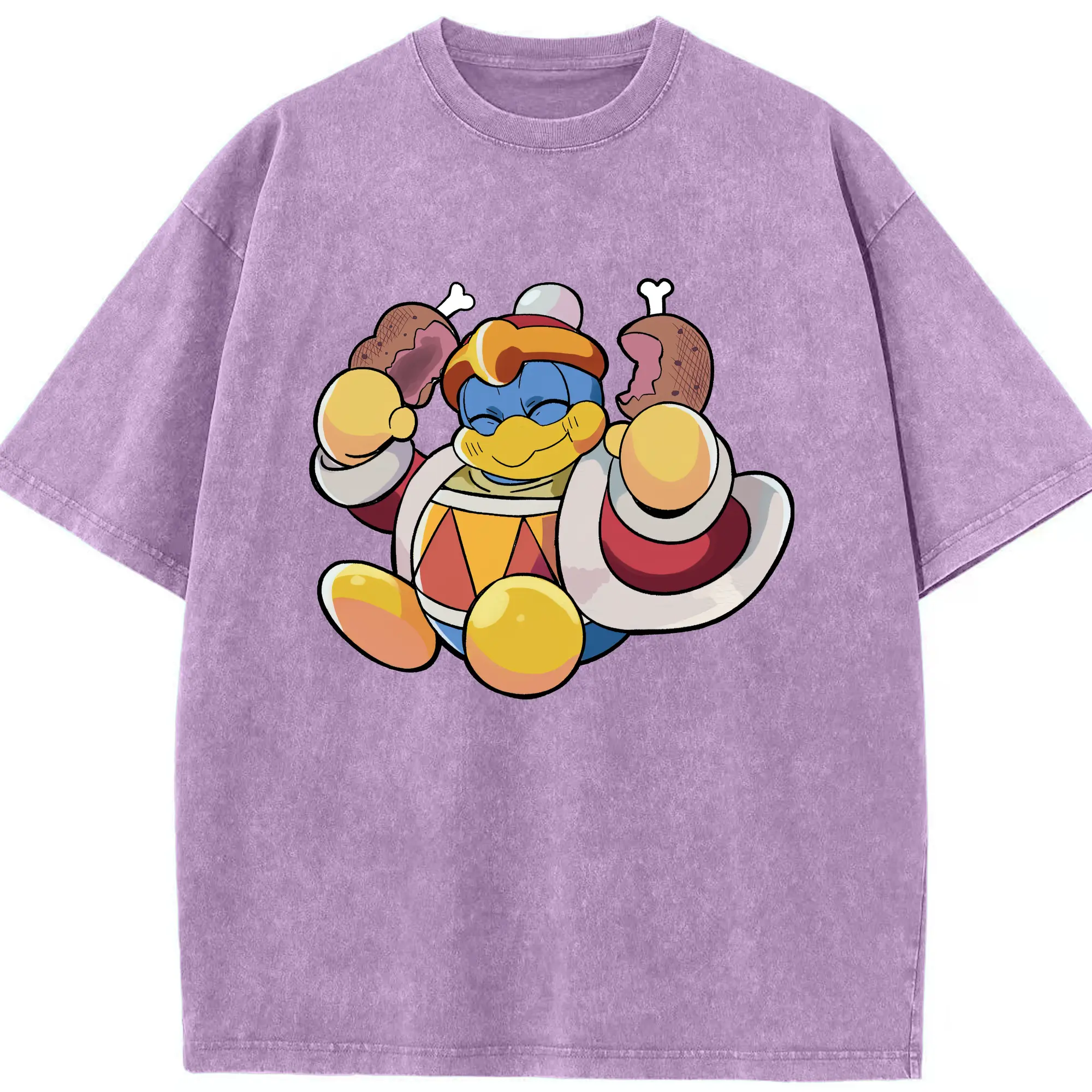 King Dedede eating graphic shirt - Washed Vintage Look 230g Cotton Oversized T-Shirt With Front Heat Transfer Print – Soft, Lightweight, Stylish Fit – Comfortable Casual Wear For Sports & Everyday Use
