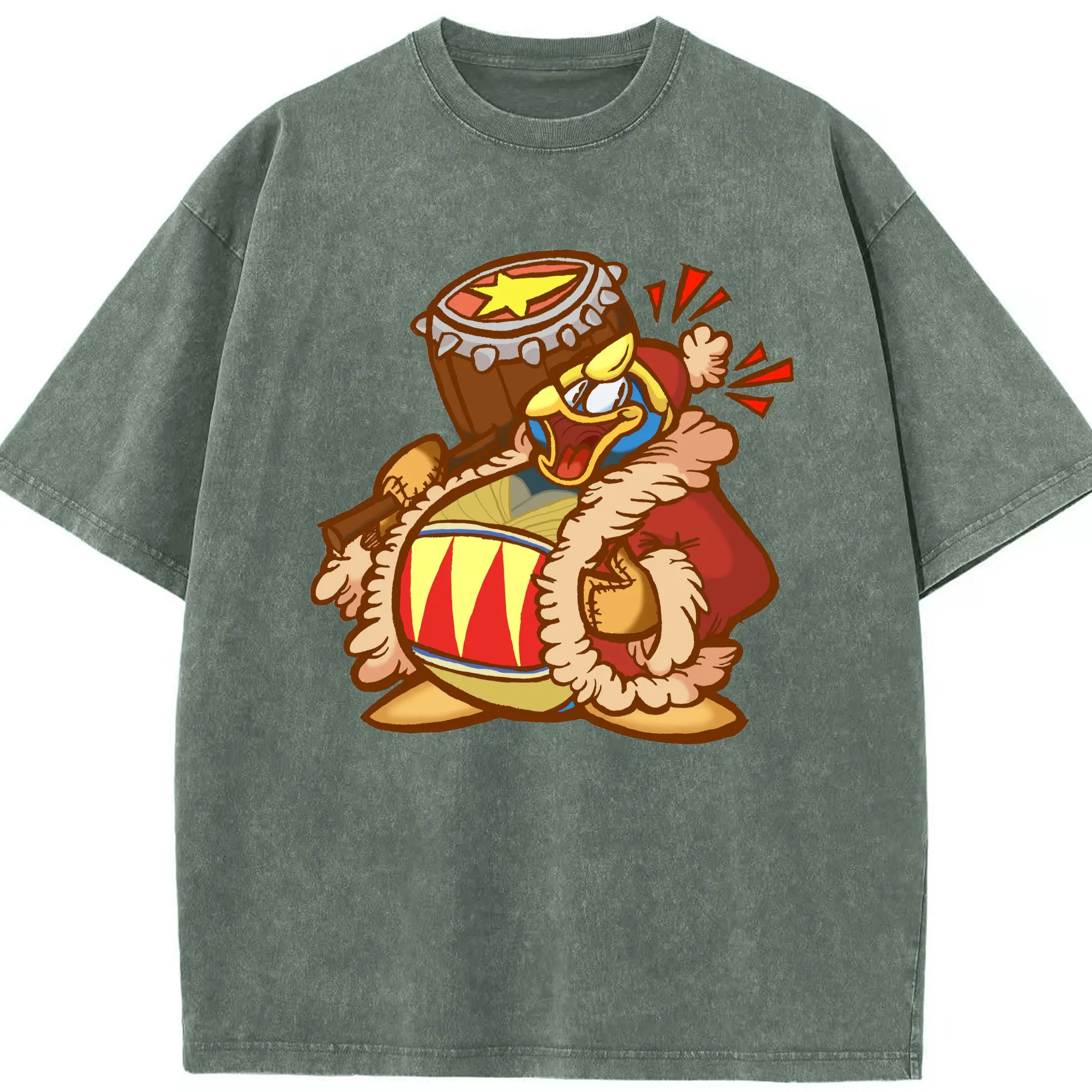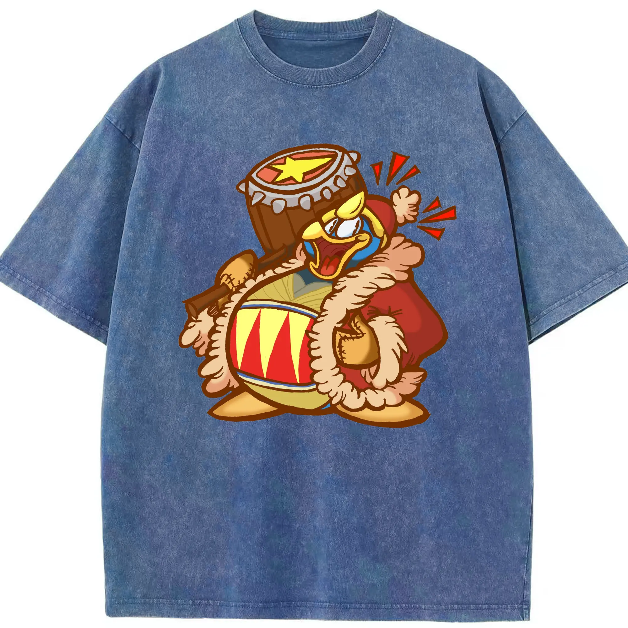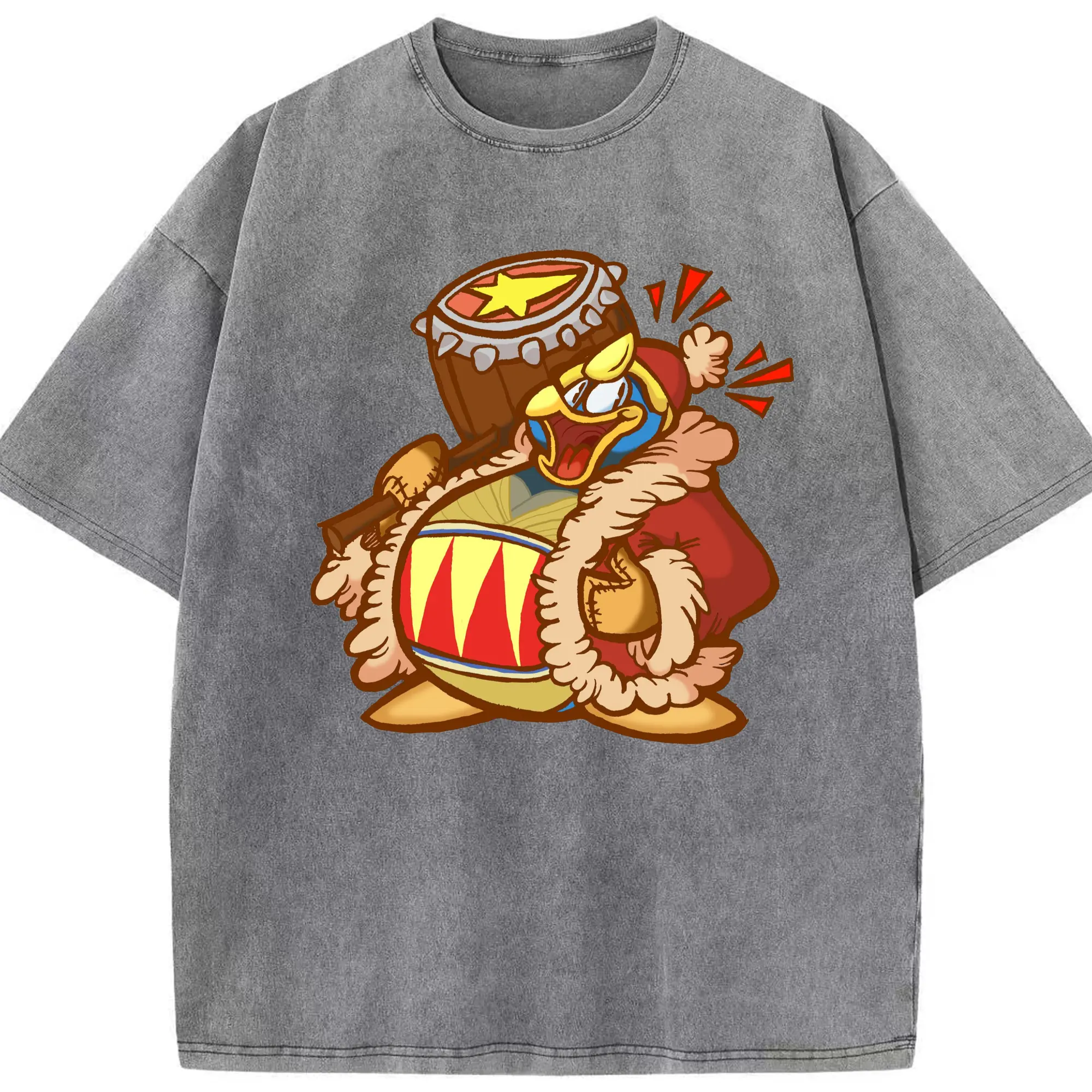 King Dedede graphic t-shirt - Washed Vintage Look 230g Cotton Oversized T-Shirt With Front Heat Transfer Print – Soft, Lightweight, Stylish Fit – Comfortable Casual Wear For Sports & Everyday Use