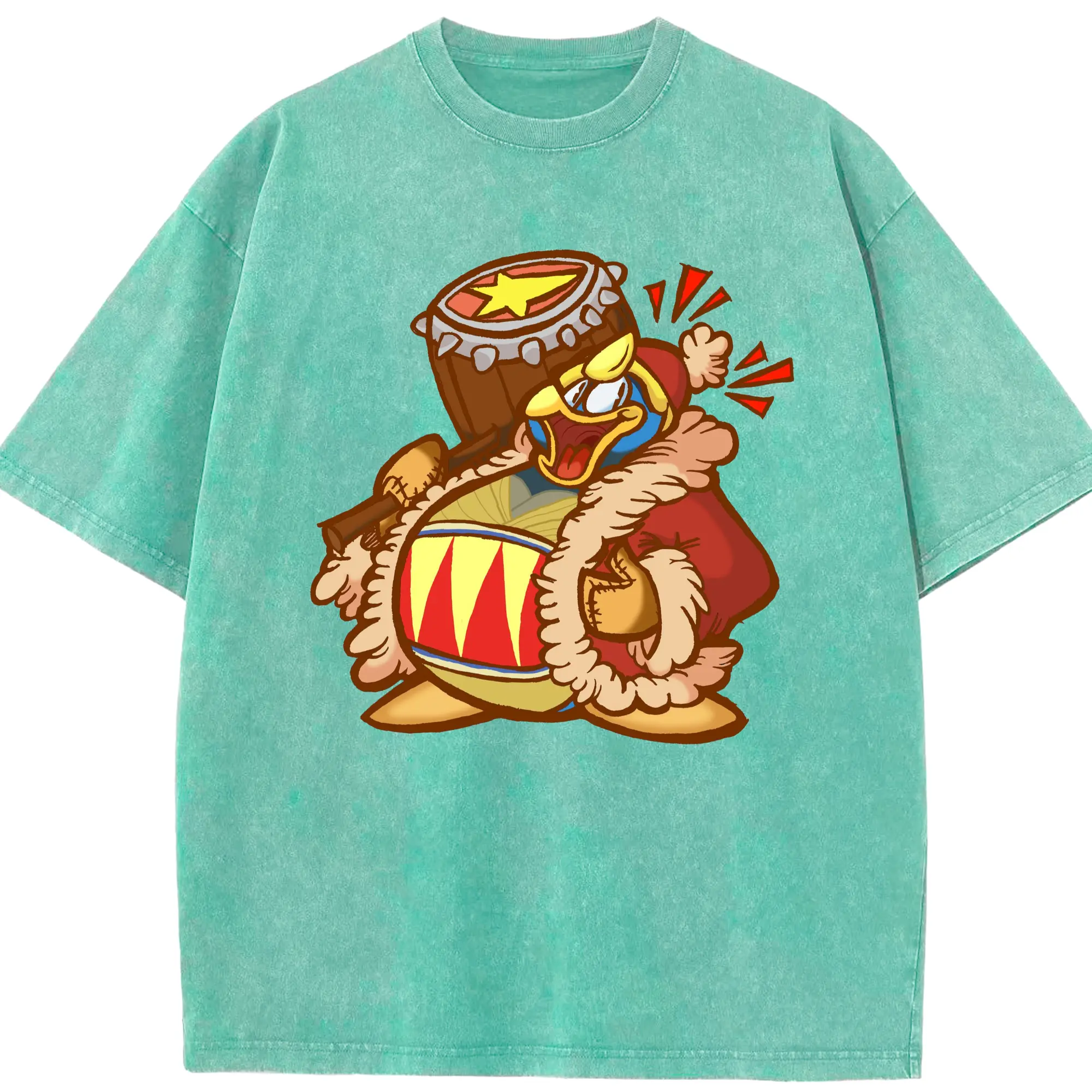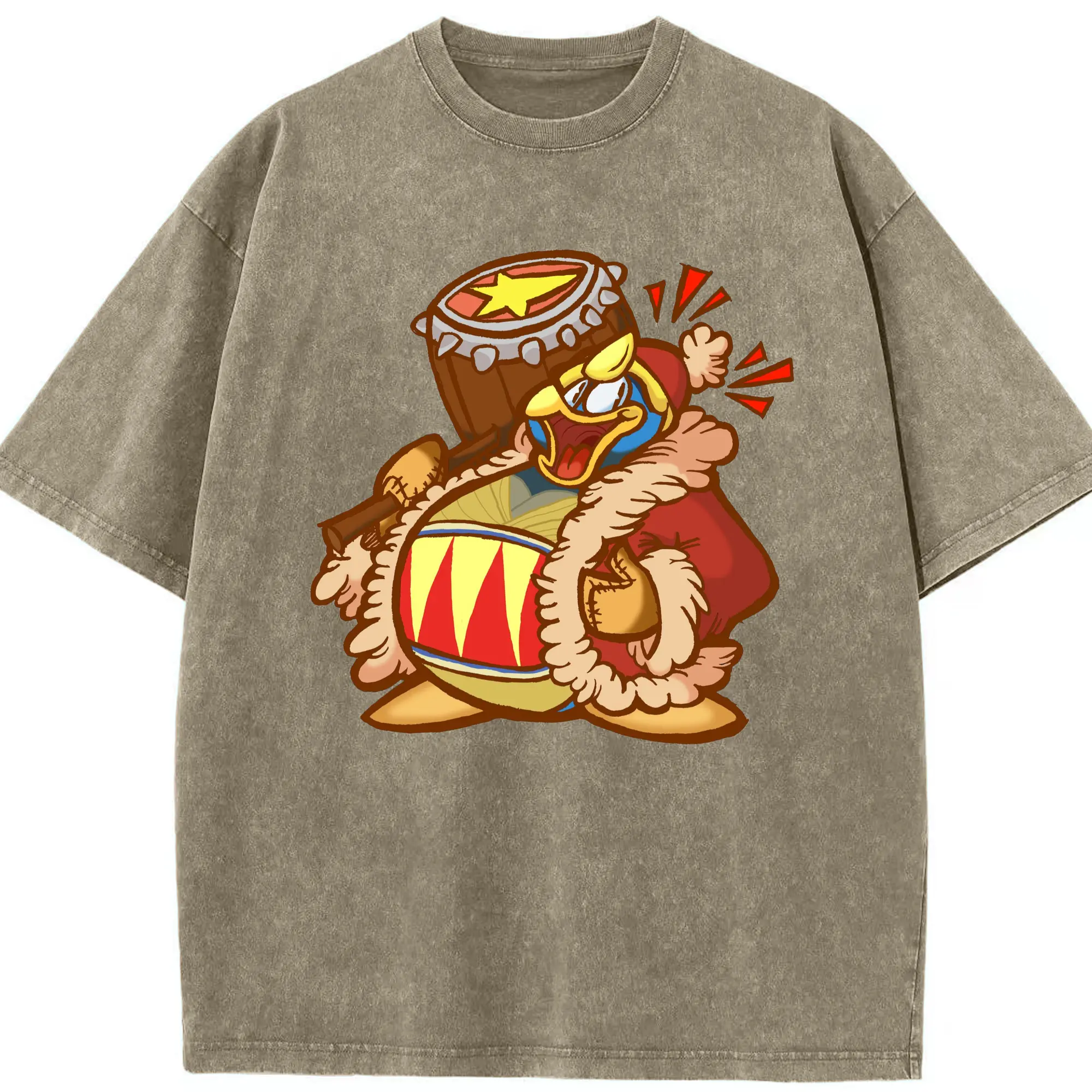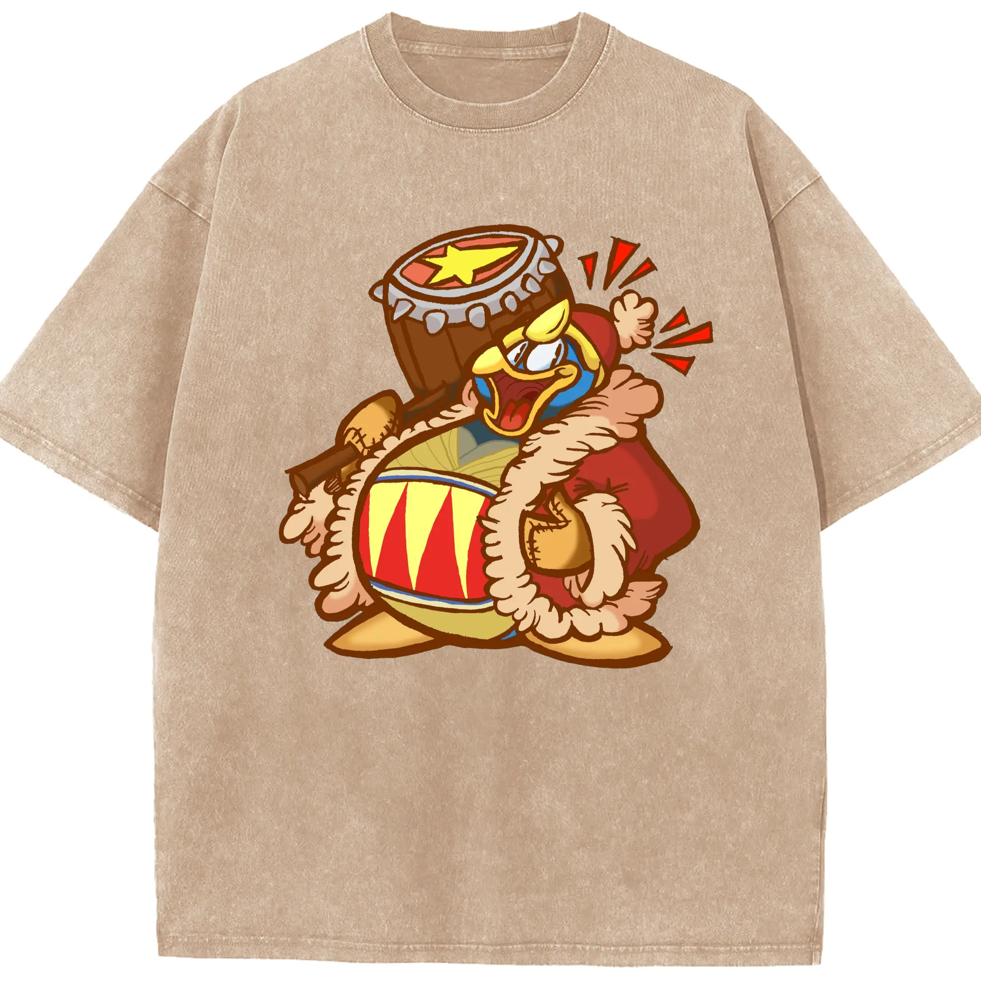 King Dedede graphic t-shirt - Washed Vintage Look 230g Cotton Oversized T-Shirt With Front Heat Transfer Print – Soft, Lightweight, Stylish Fit – Comfortable Casual Wear For Sports & Everyday Use