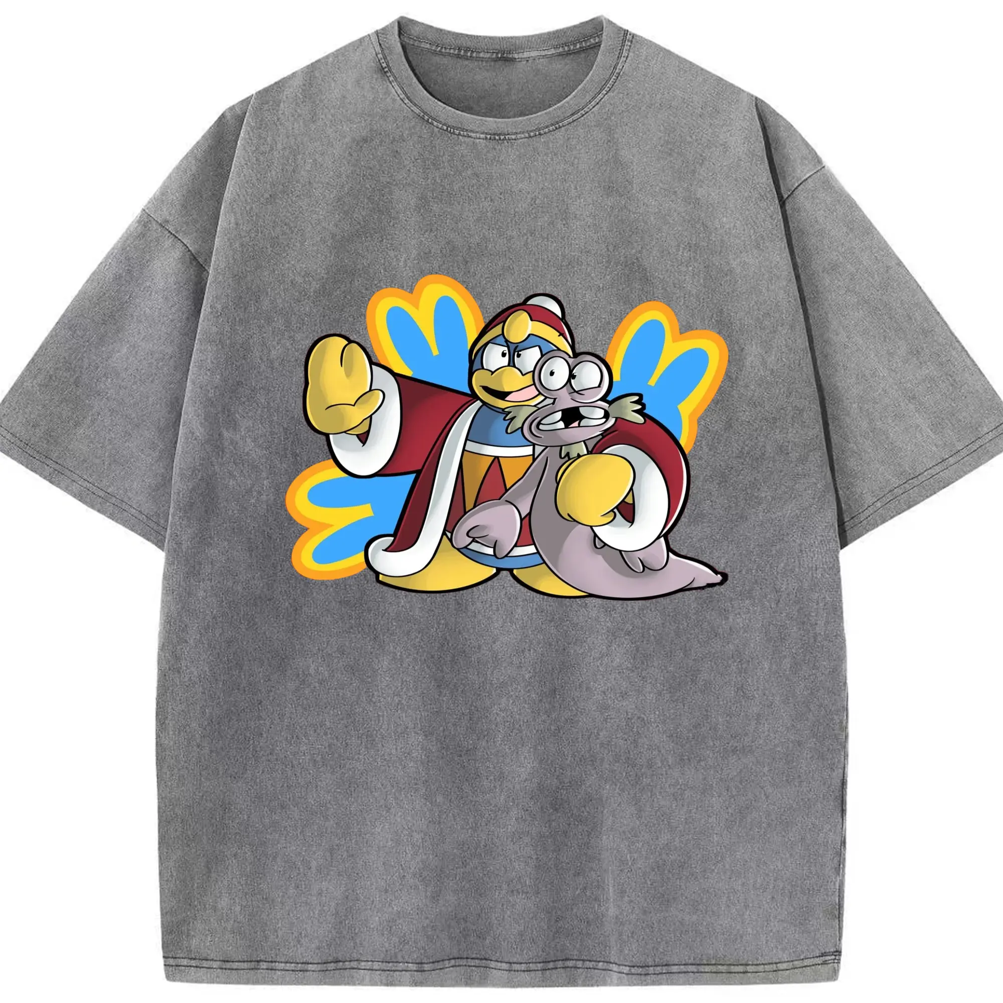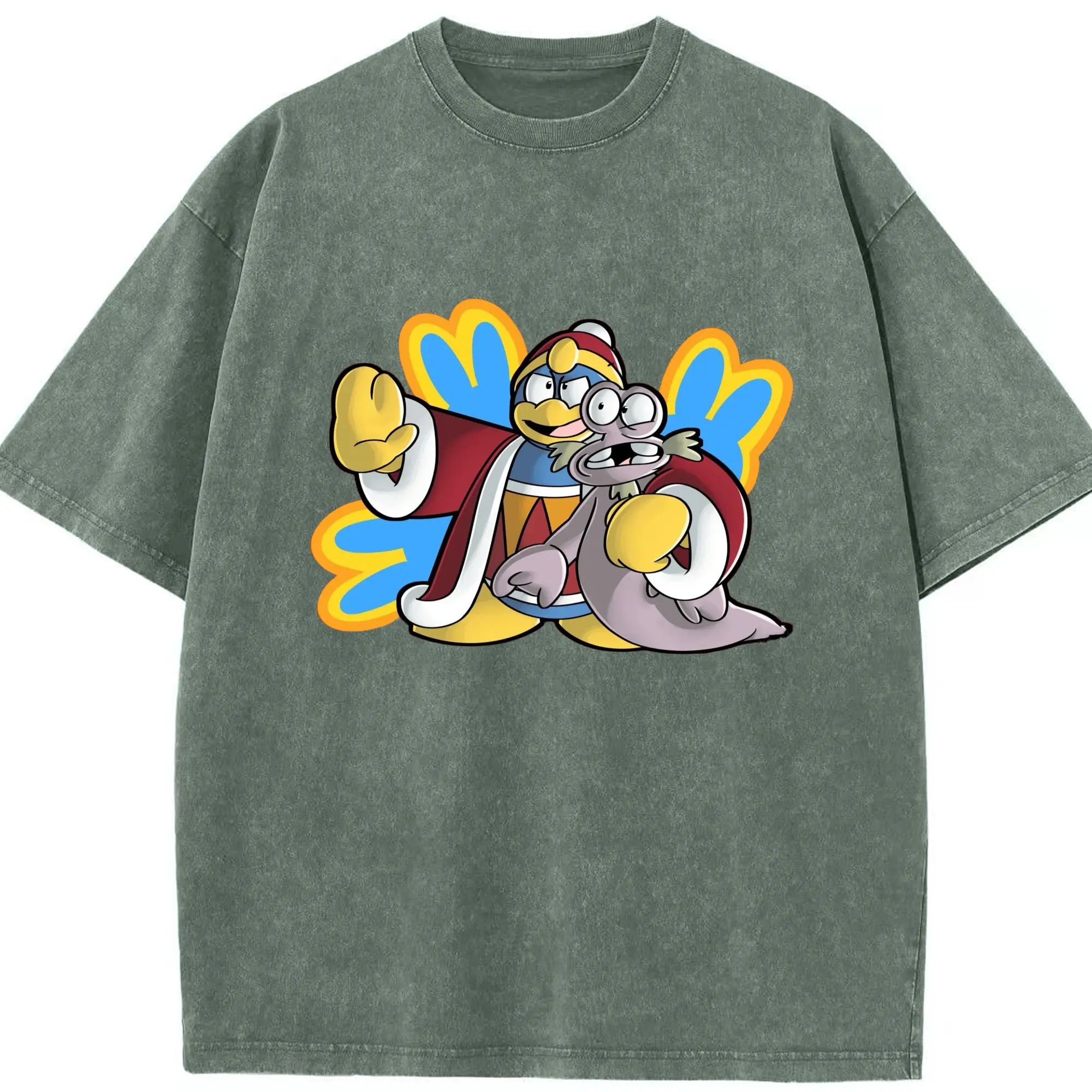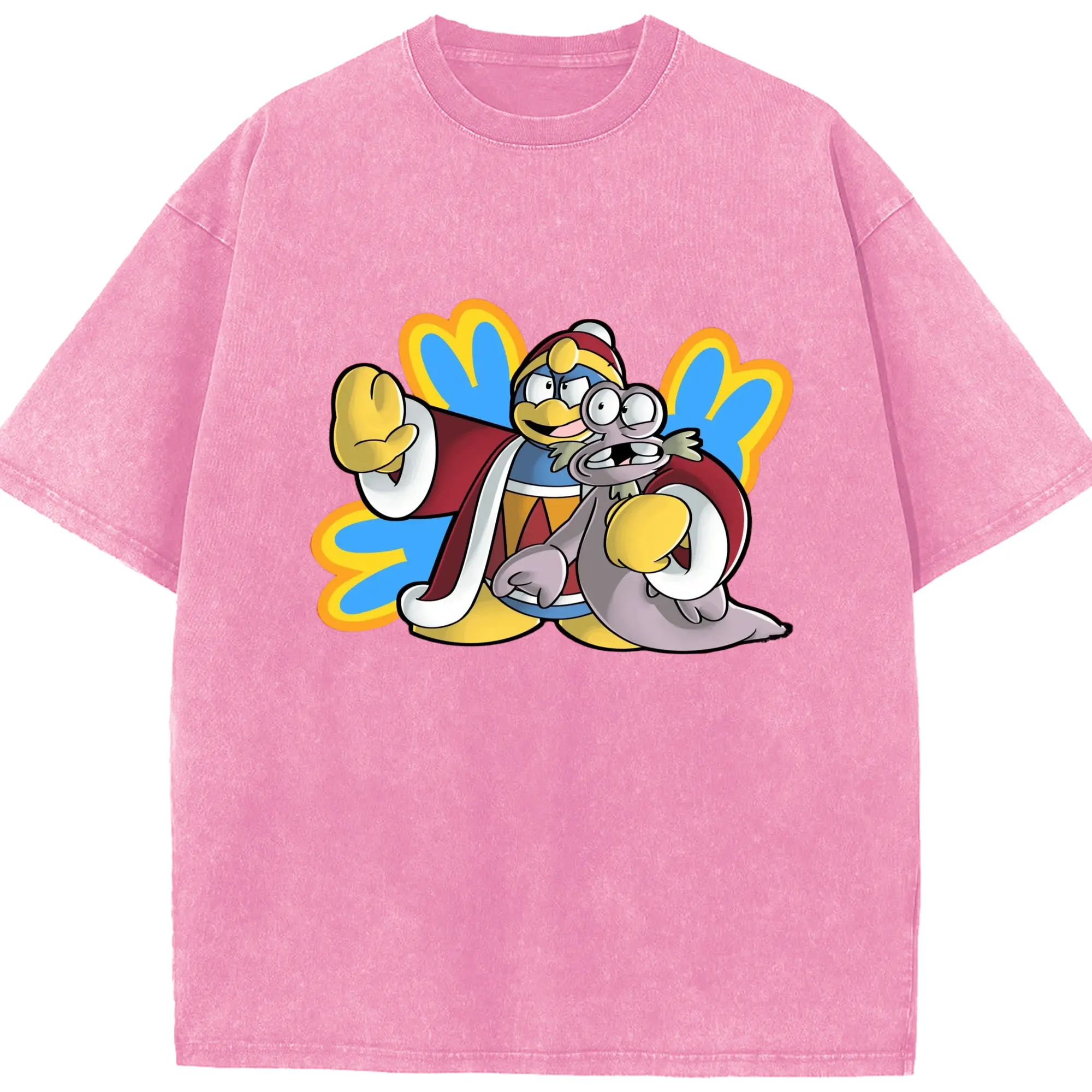 King Dedede graphic t-shirts - Washed Vintage Look 230g Cotton Oversized T-Shirt With Front Heat Transfer Print – Soft, Lightweight, Stylish Fit – Comfortable Casual Wear For Sports & Everyday Use