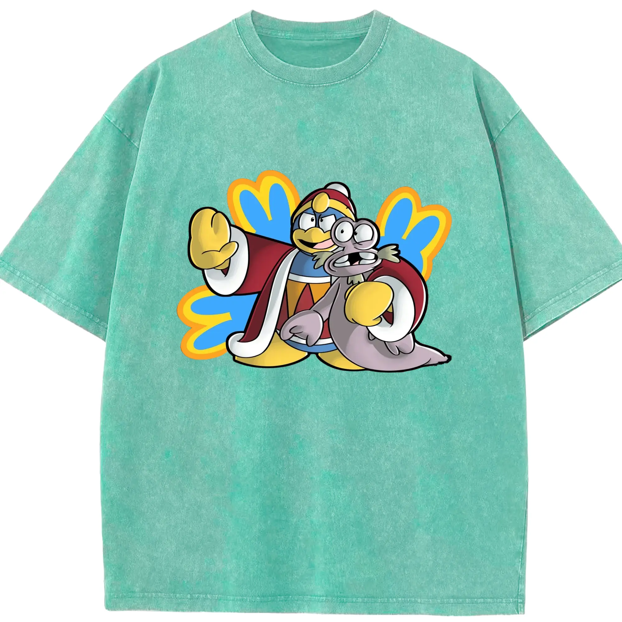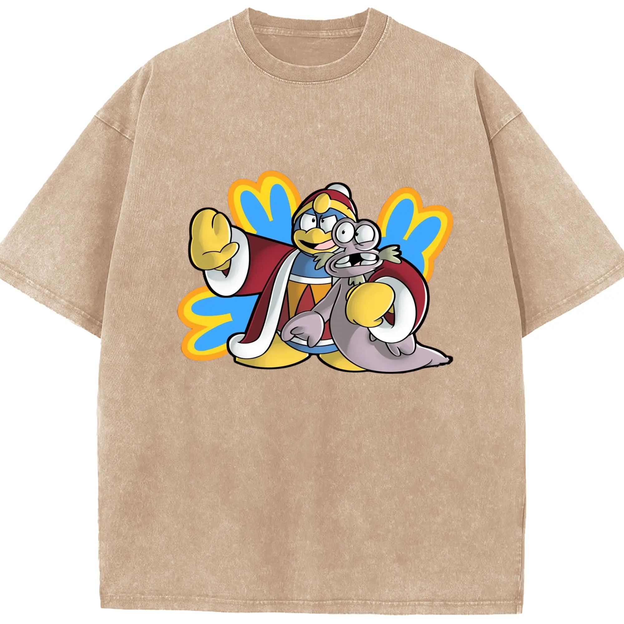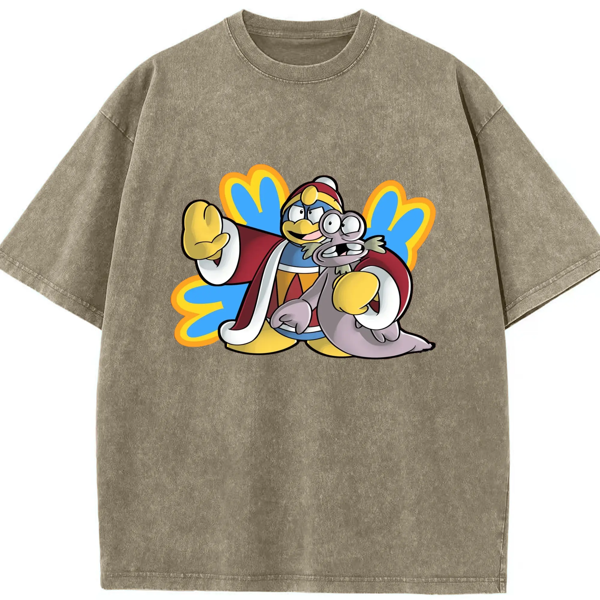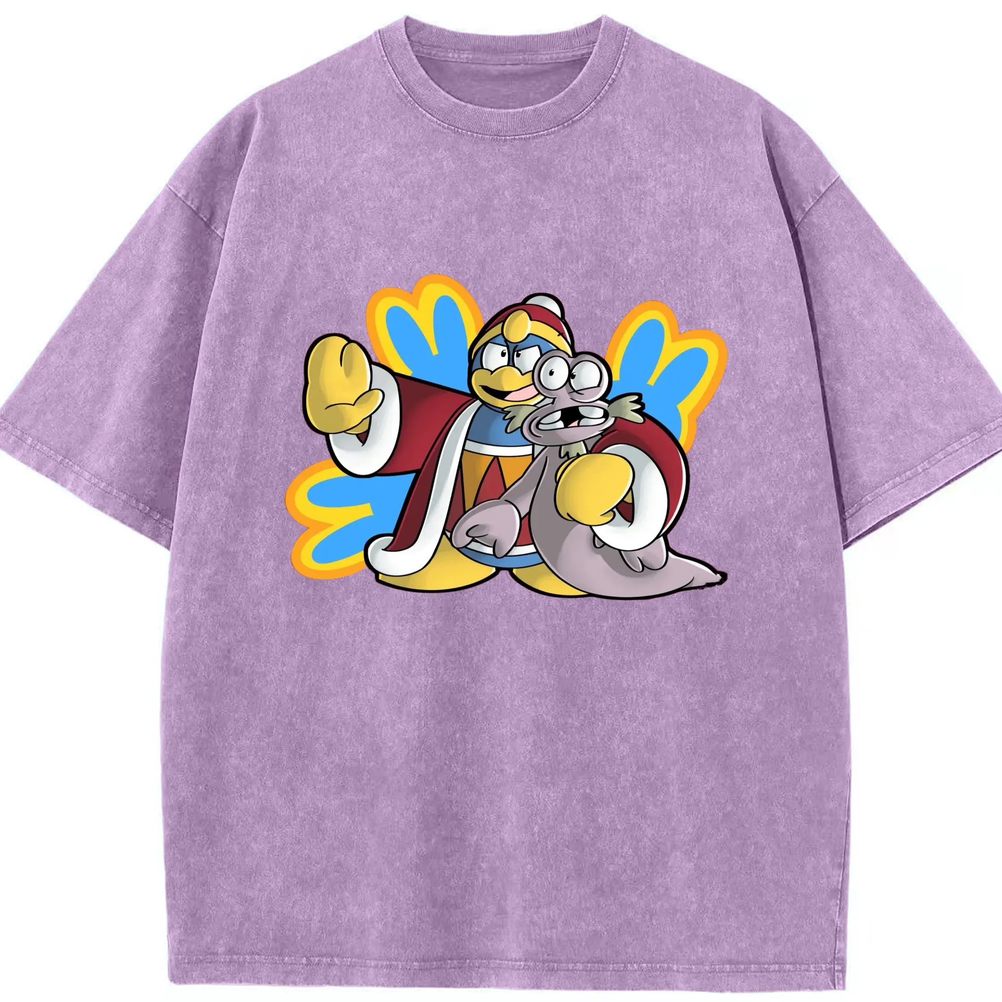 King Dedede graphic t-shirts - Washed Vintage Look 230g Cotton Oversized T-Shirt With Front Heat Transfer Print – Soft, Lightweight, Stylish Fit – Comfortable Casual Wear For Sports & Everyday Use