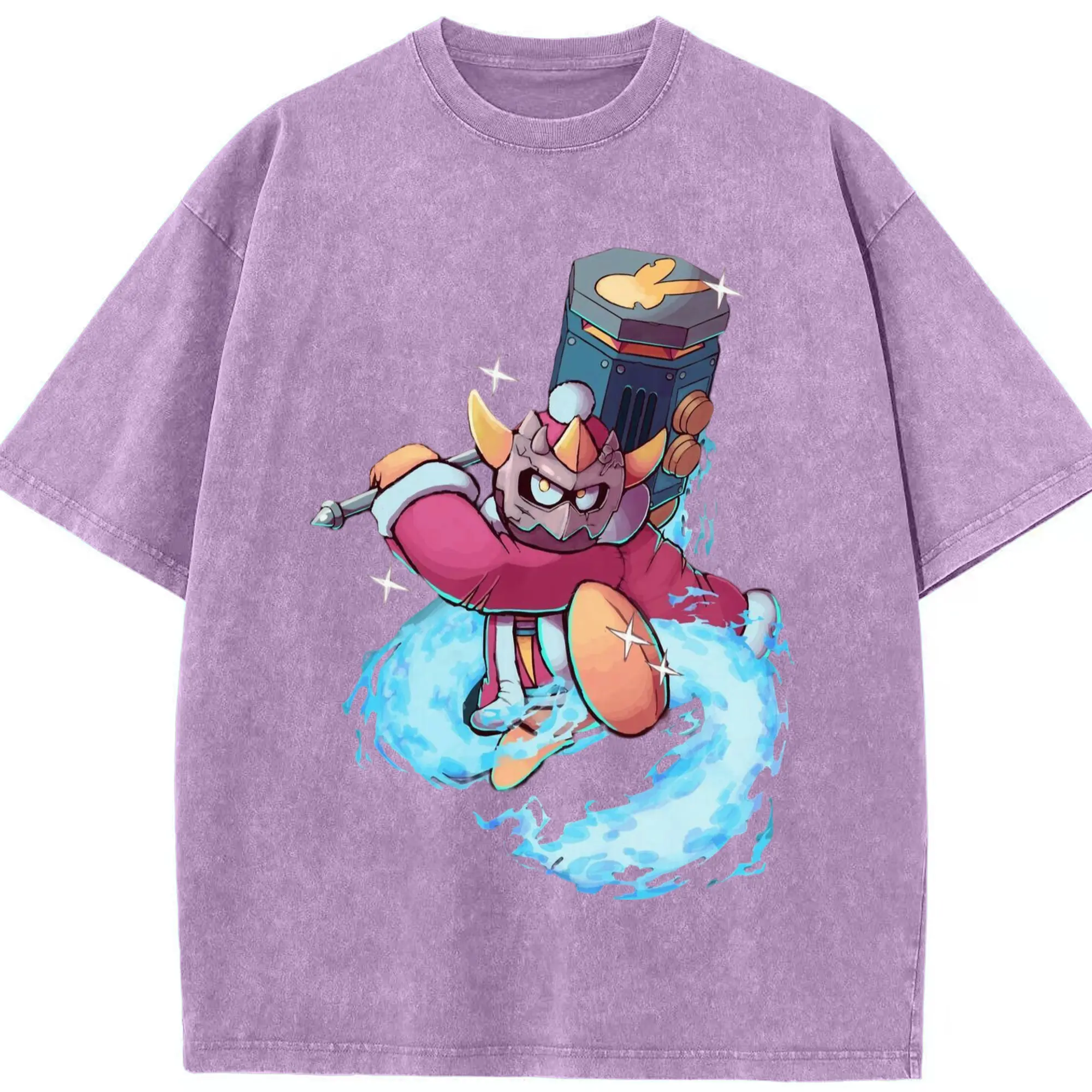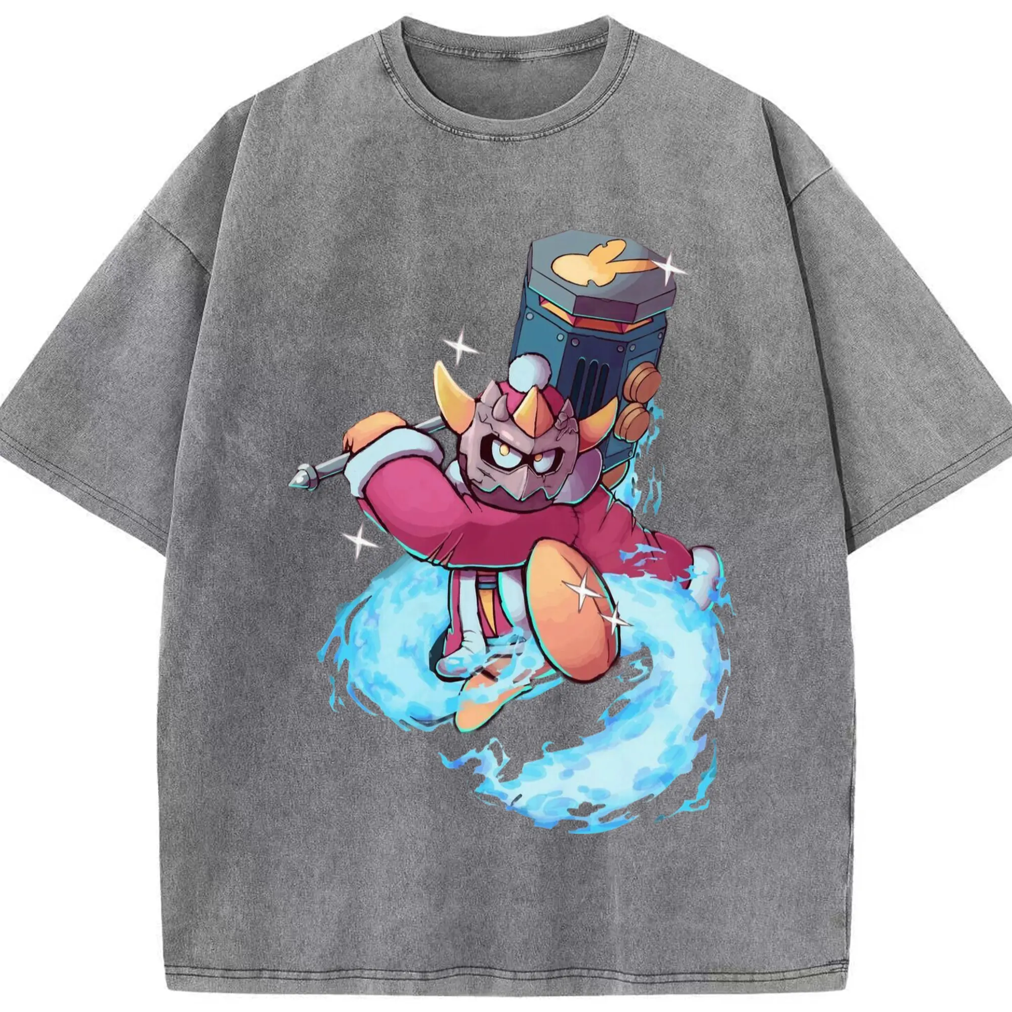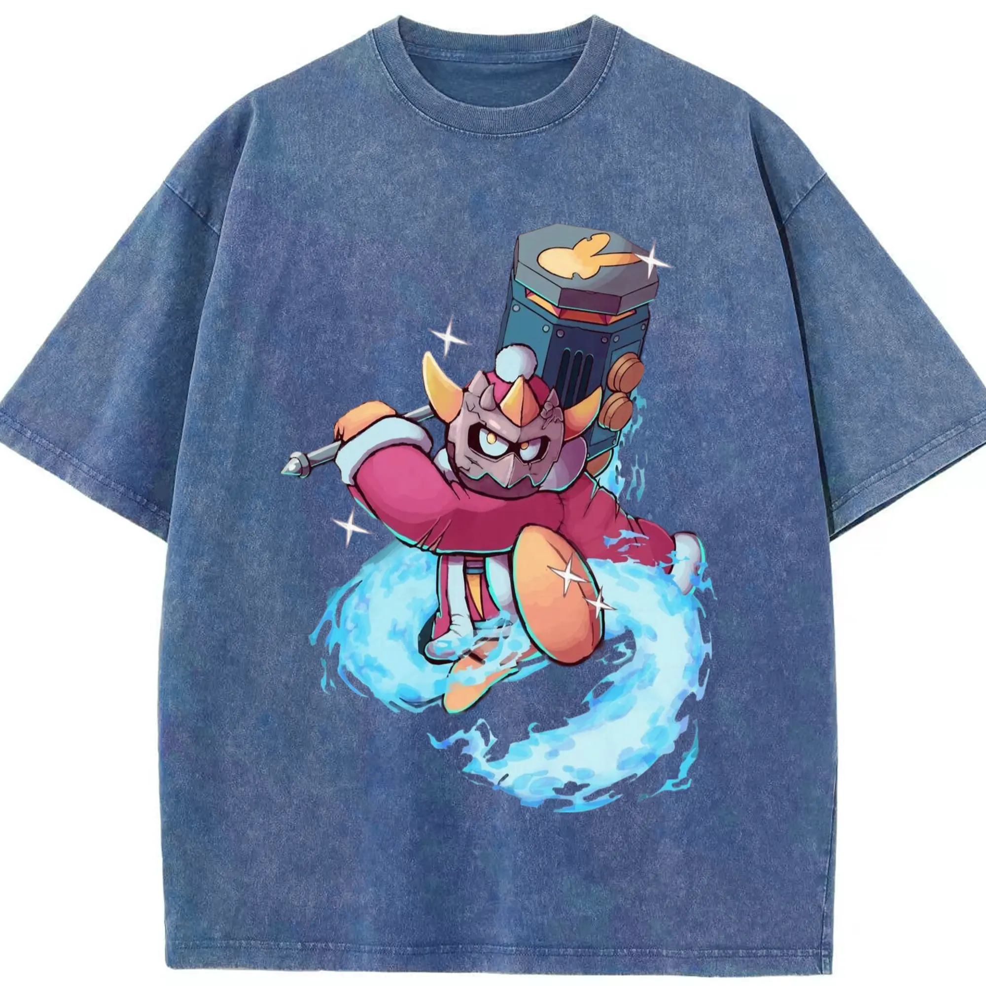King Dedede Kirby Classic Tee - Washed Vintage Look 230g Cotton Oversized T-Shirt With Front Heat Transfer Print – Soft, Lightweight, Stylish Fit – Comfortable Casual Wear For Sports & Everyday Use