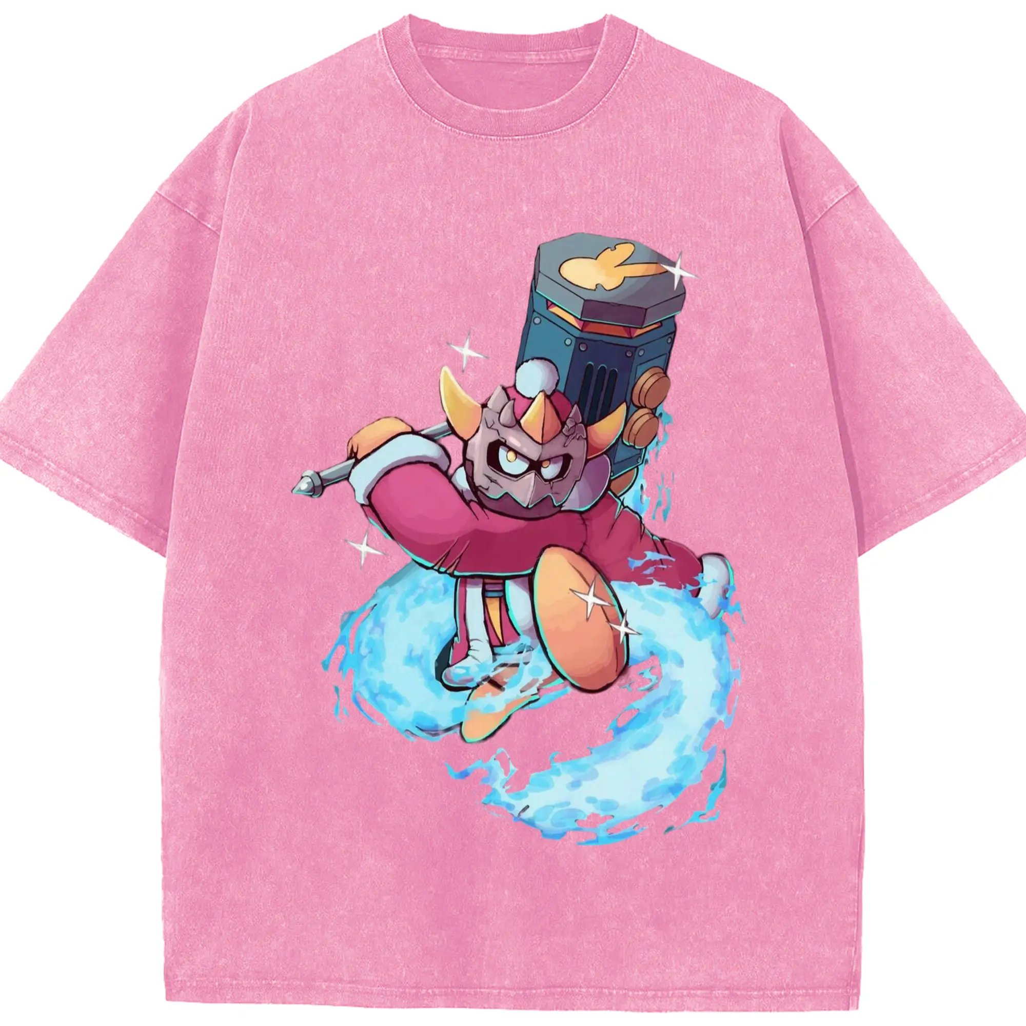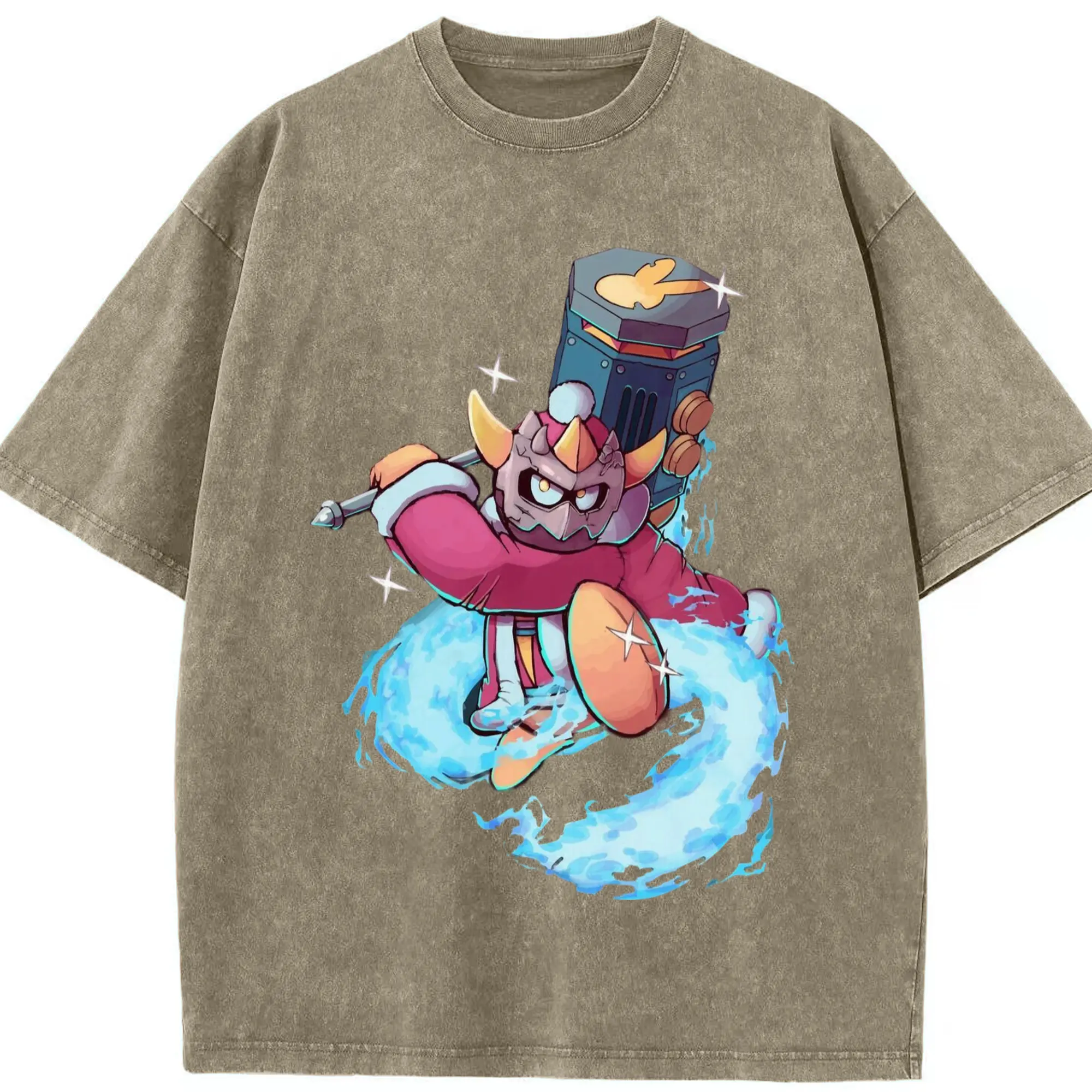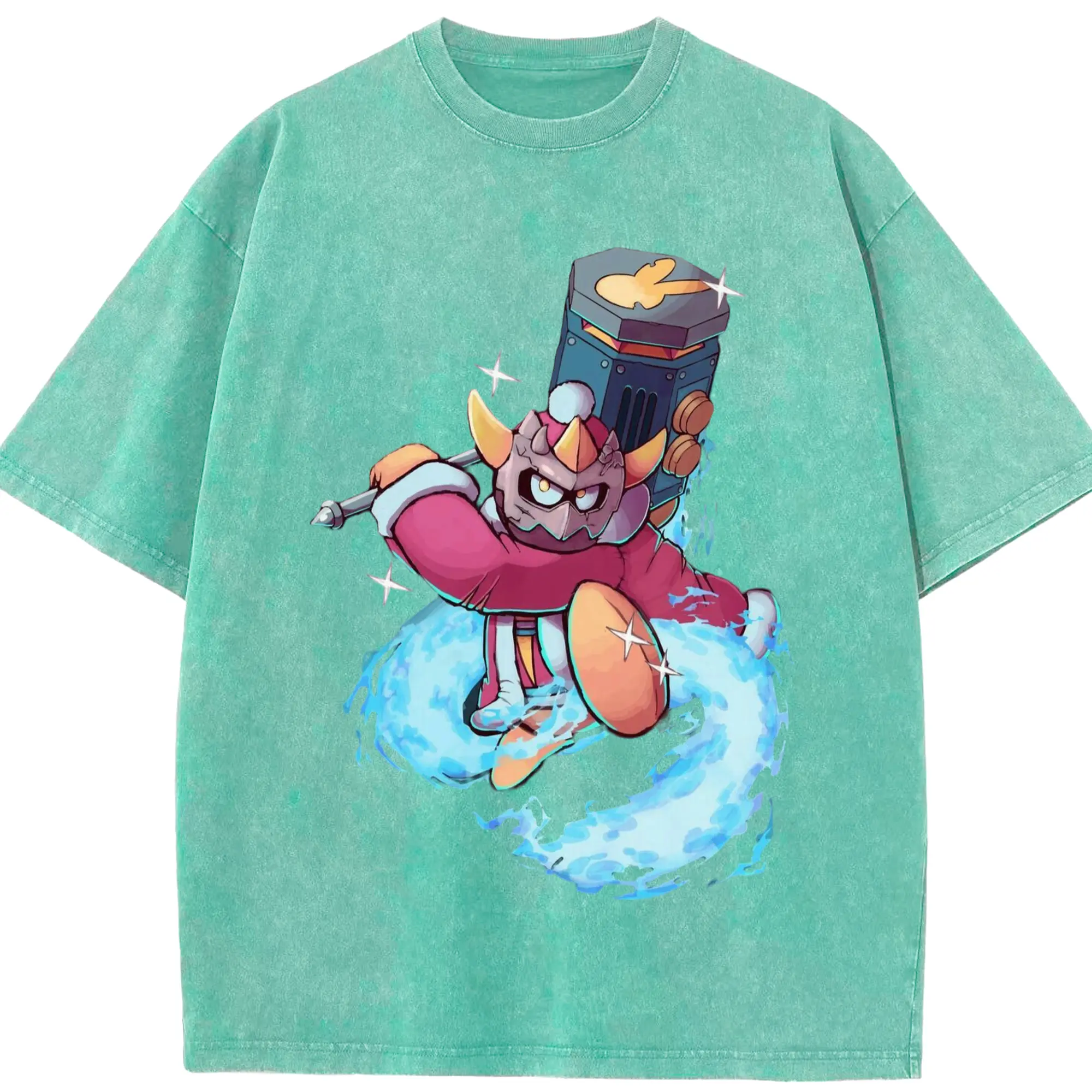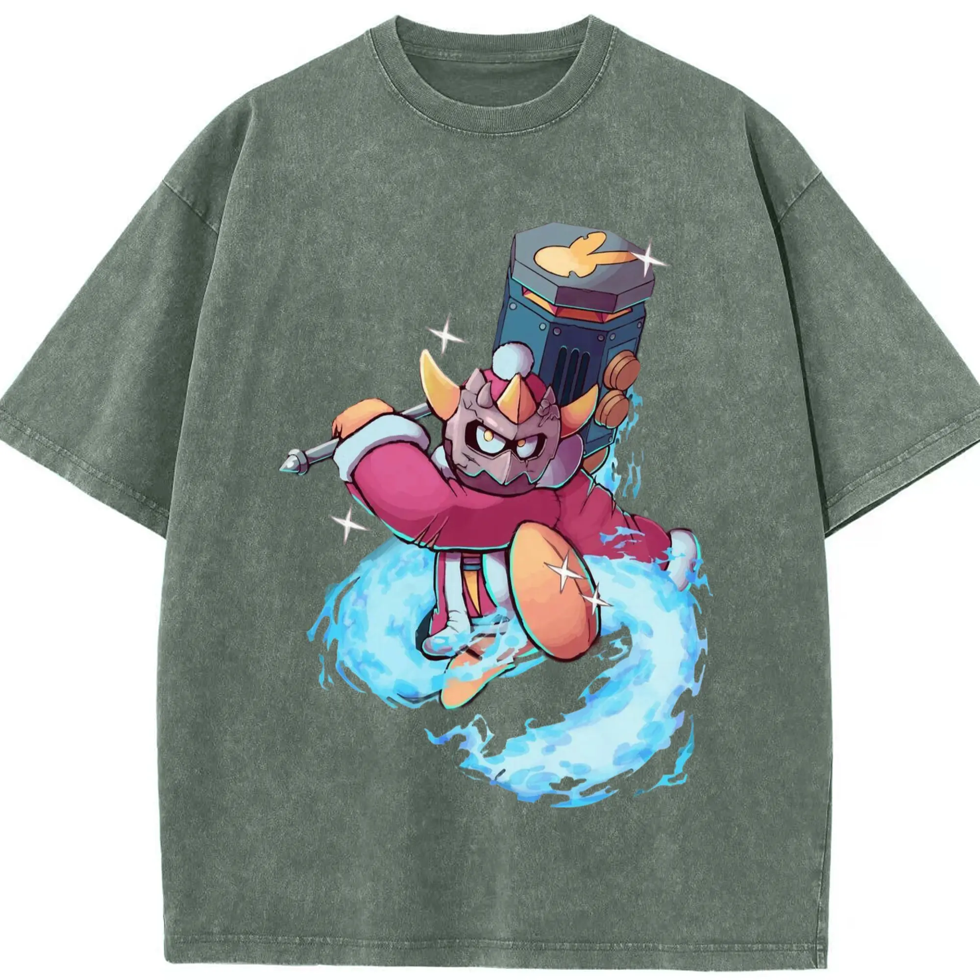King Dedede Kirby Classic Tee - Washed Vintage Look 230g Cotton Oversized T-Shirt With Front Heat Transfer Print – Soft, Lightweight, Stylish Fit – Comfortable Casual Wear For Sports & Everyday Use
