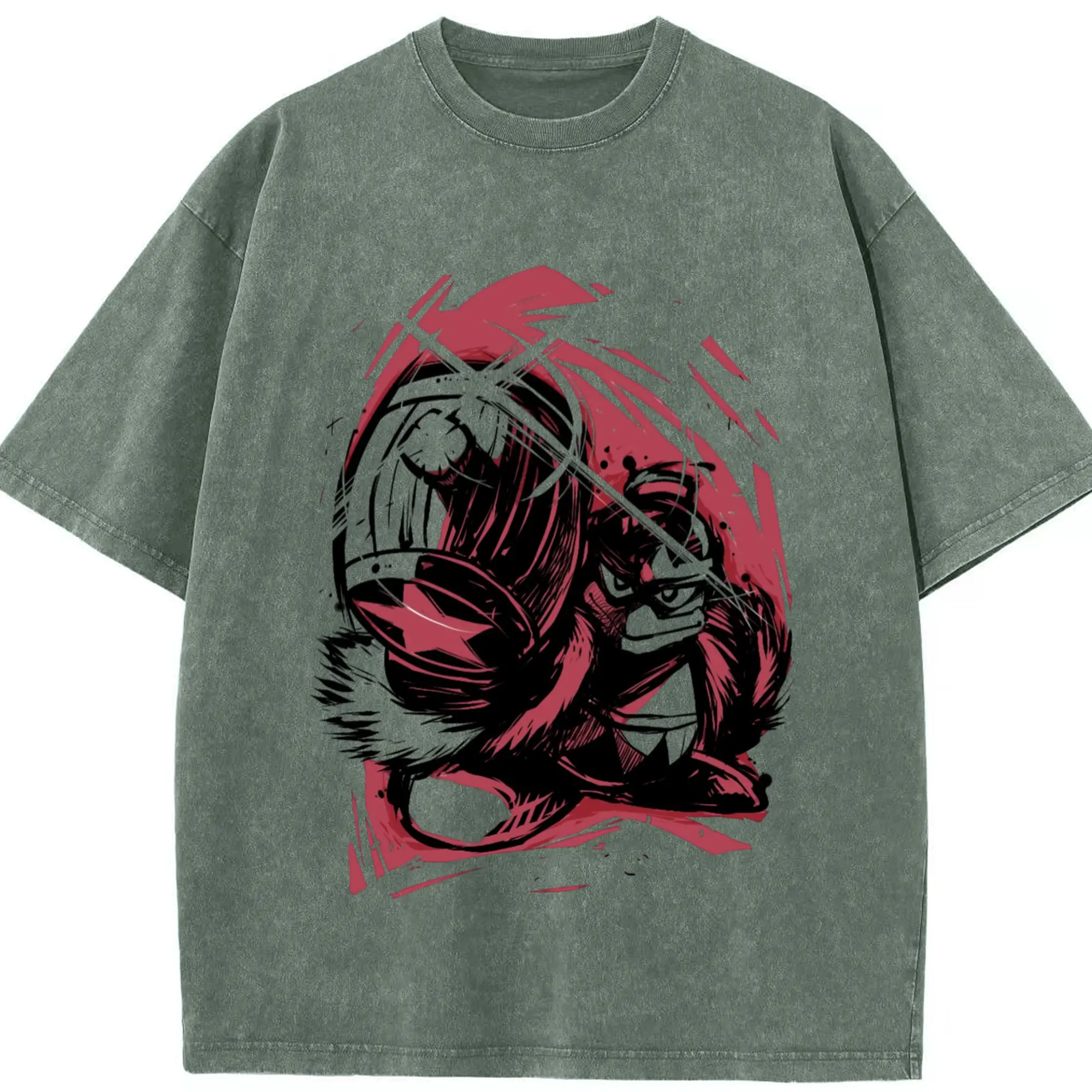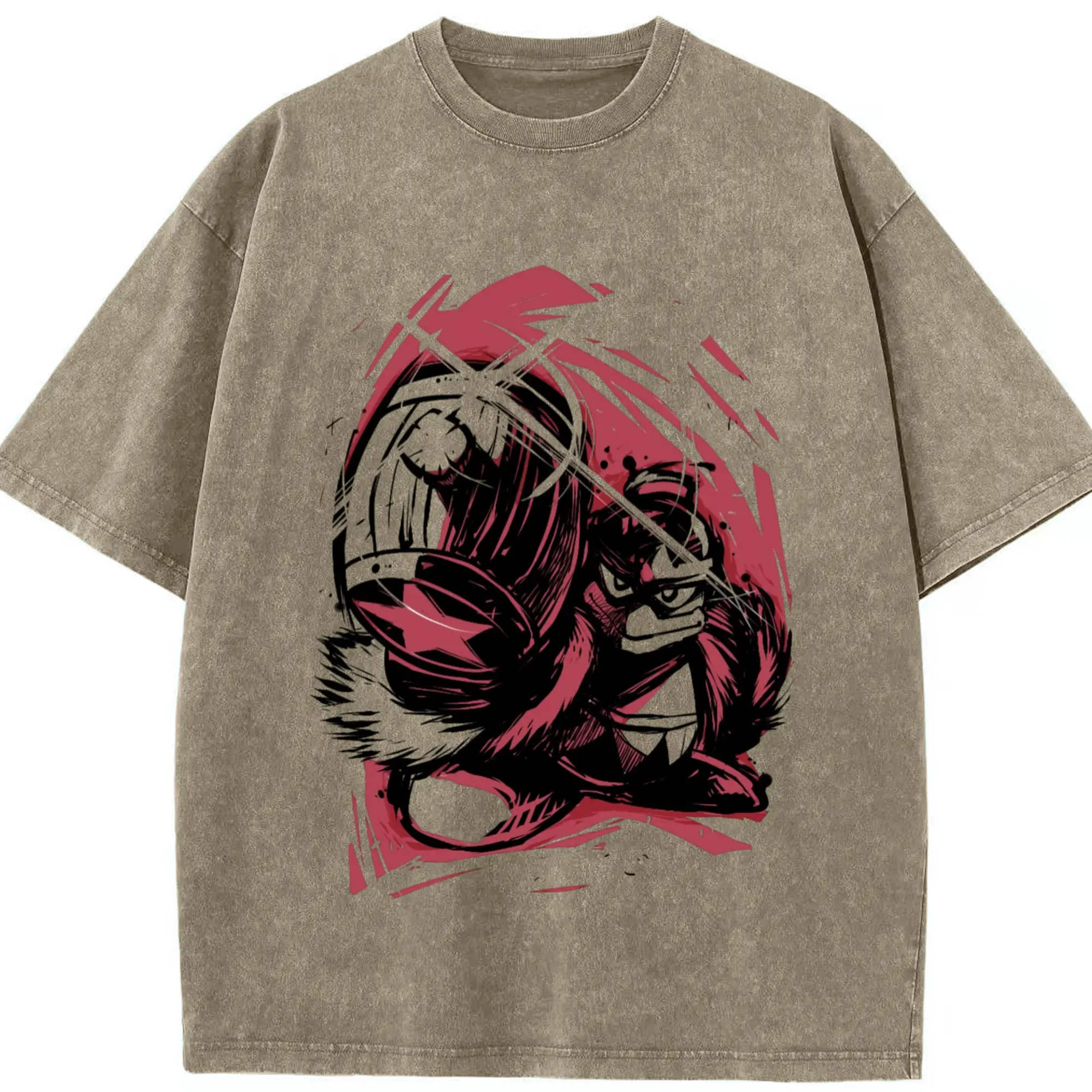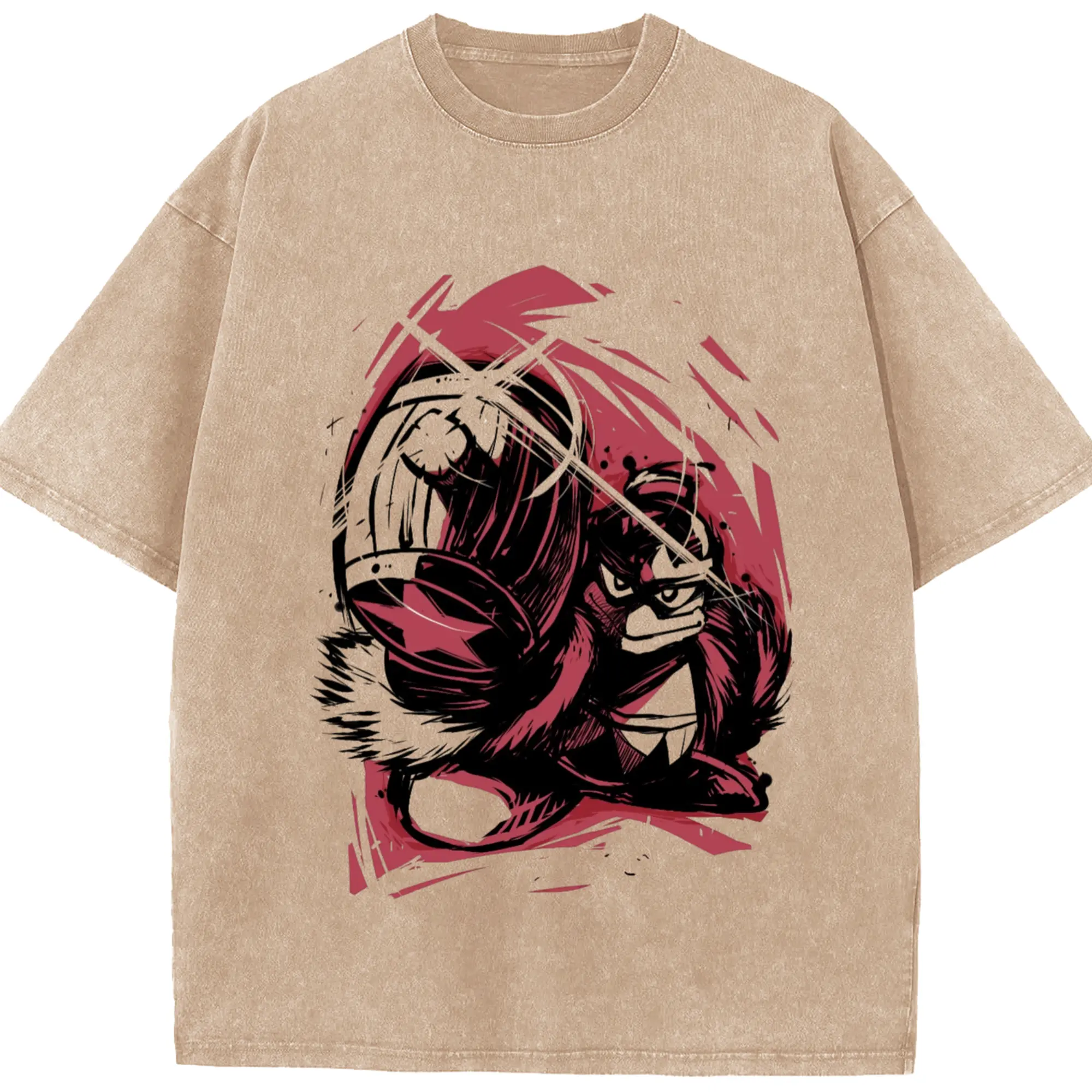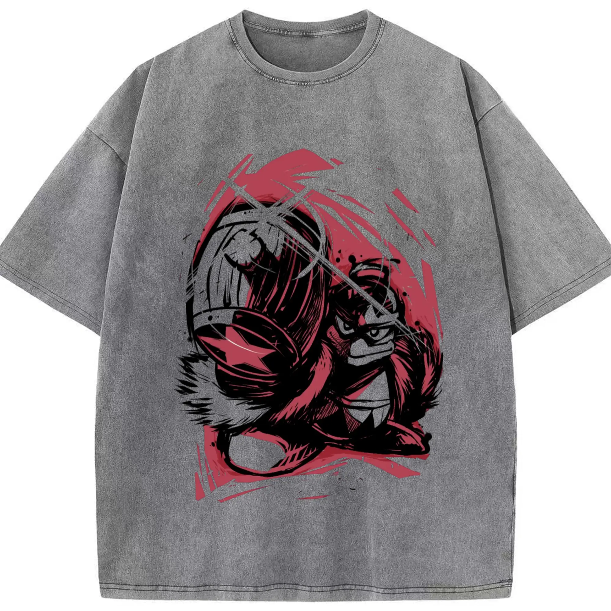 Washed Vintage Look 230g Cotton Oversized T-Shirt with Front Heat Transfer Print – Soft, Lightweight, Stylish Fit – Comfortable Casual Wear for Sports & Everyday Use