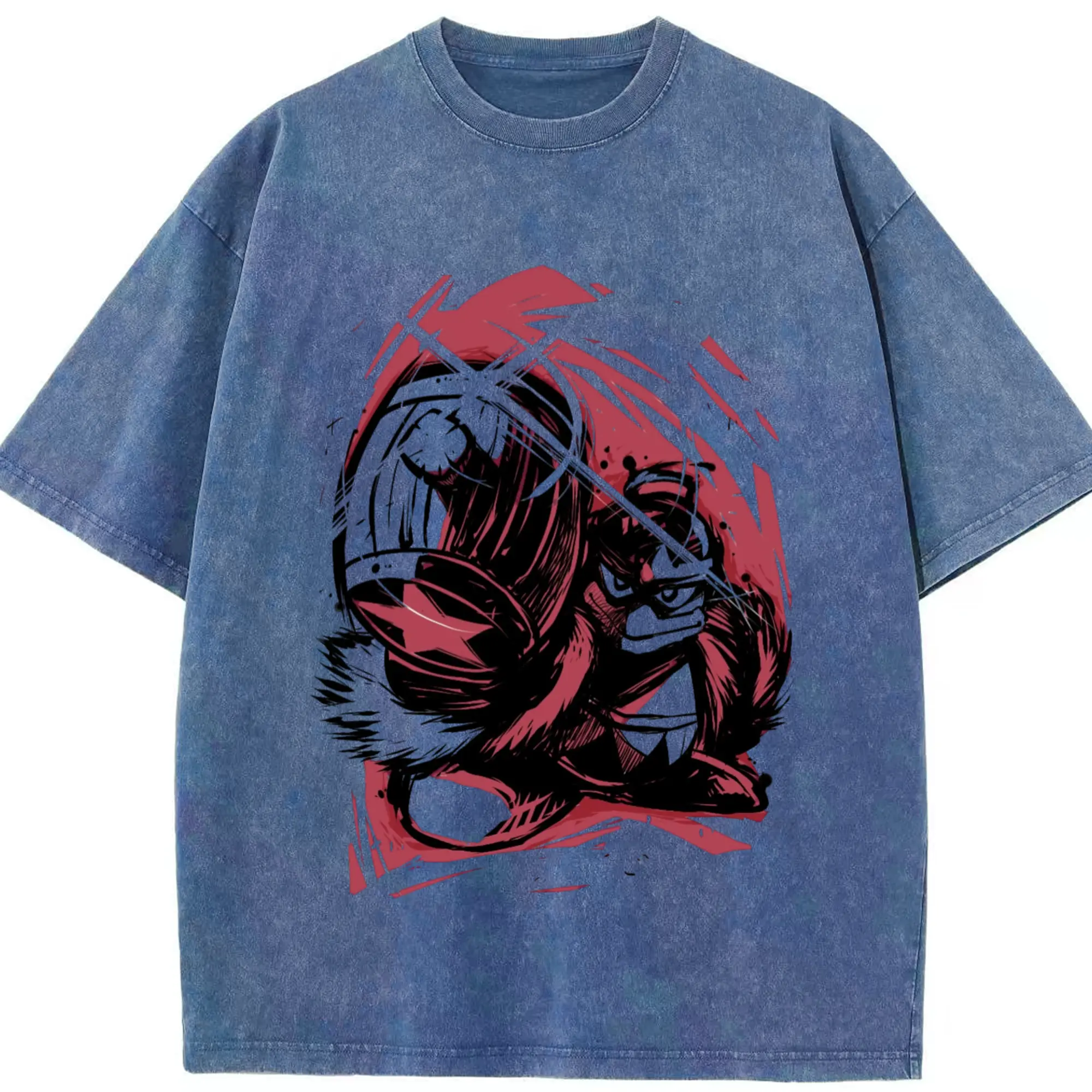 King Dedede Kirby icon T-Shirt - Washed Vintage Look 230g Cotton Oversized T-Shirt With Front Heat Transfer Print – Soft, Lightweight, Stylish Fit – Comfortable Casual Wear For Sports & Everyday Use