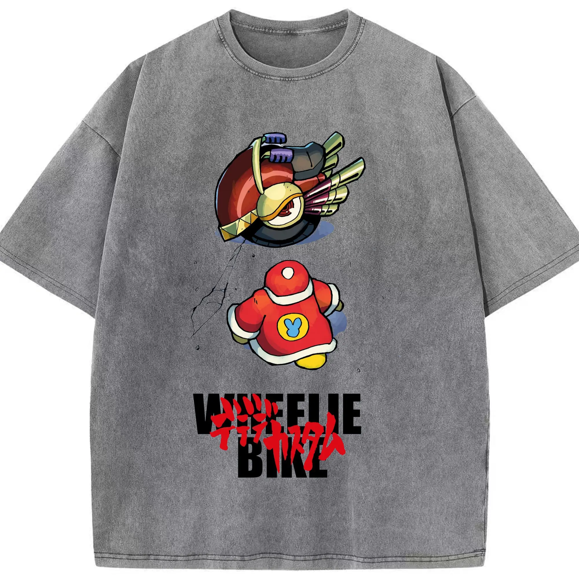 King Dedede retro t-shirt - Washed Vintage Look 230g Cotton Oversized T-Shirt With Front Heat Transfer Print – Soft, Lightweight, Stylish Fit – Comfortable Casual Wear For Sports & Everyday Use