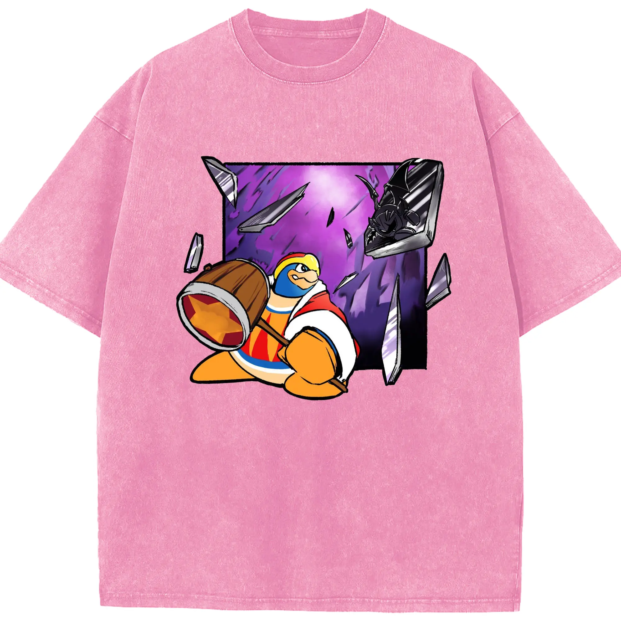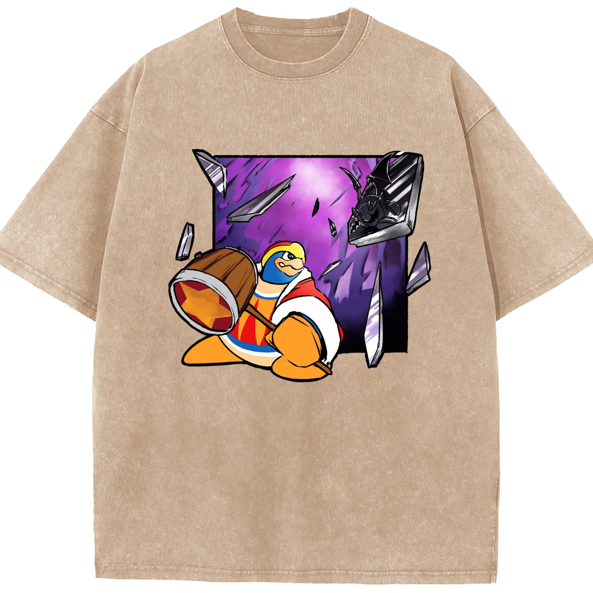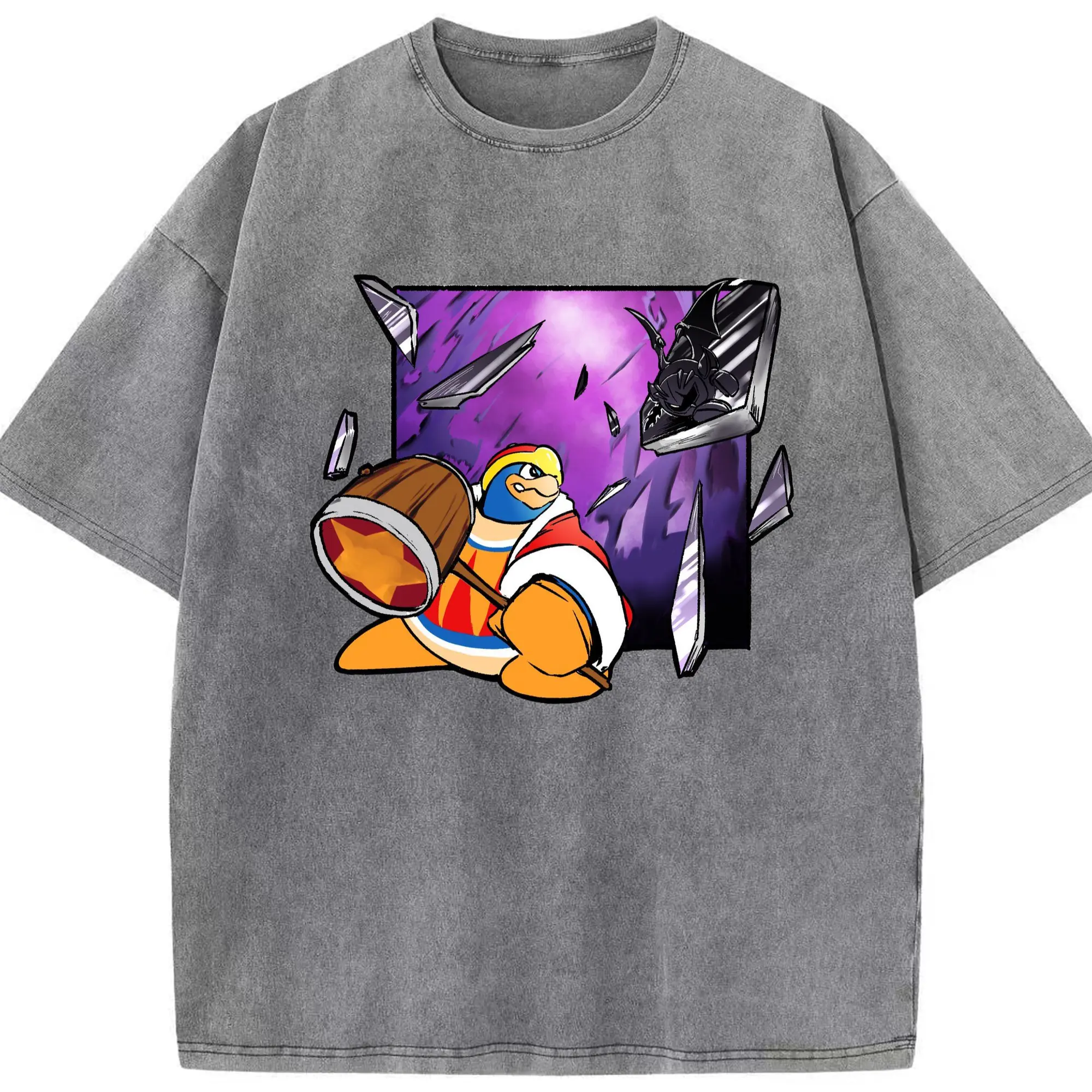 King Dedede tee - Washed Vintage Look 230g Cotton Oversized T-Shirt With Front Heat Transfer Print – Soft, Lightweight, Stylish Fit – Comfortable Casual Wear For Sports & Everyday Use