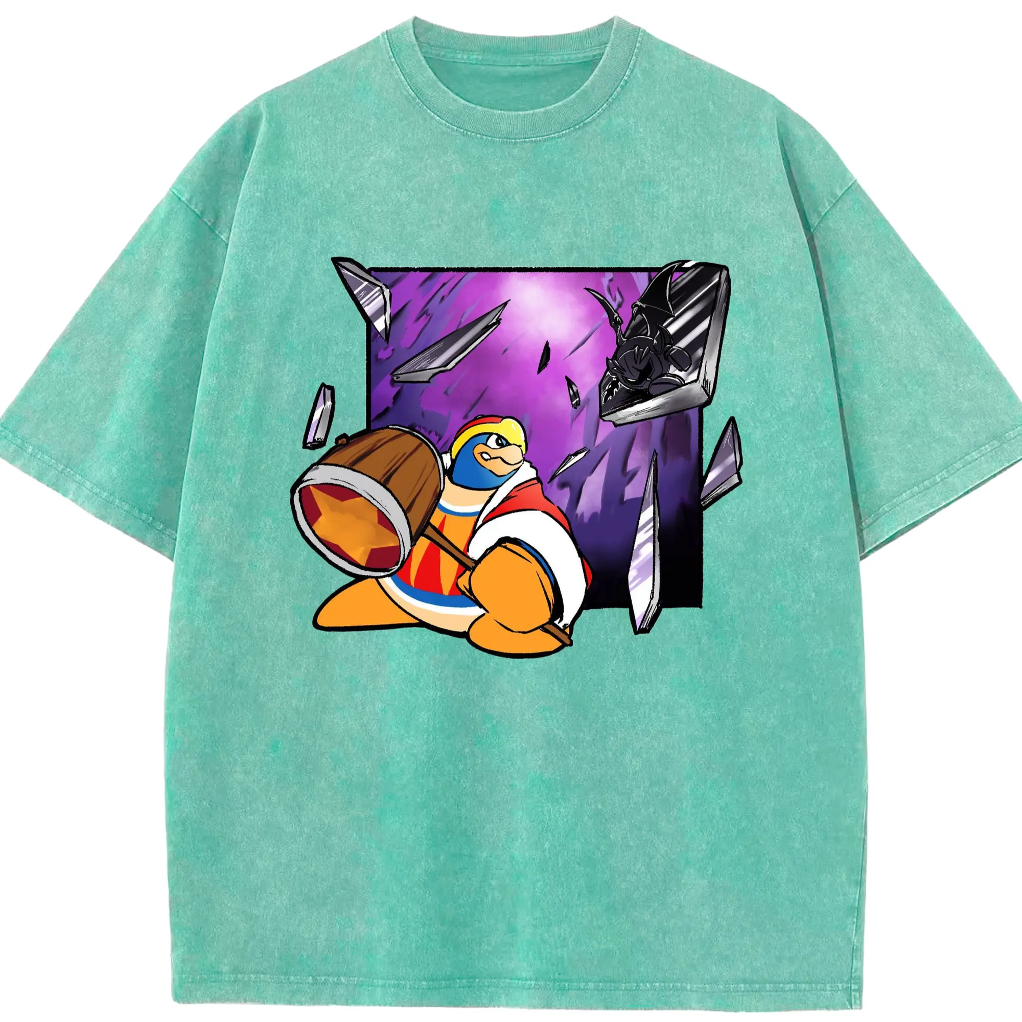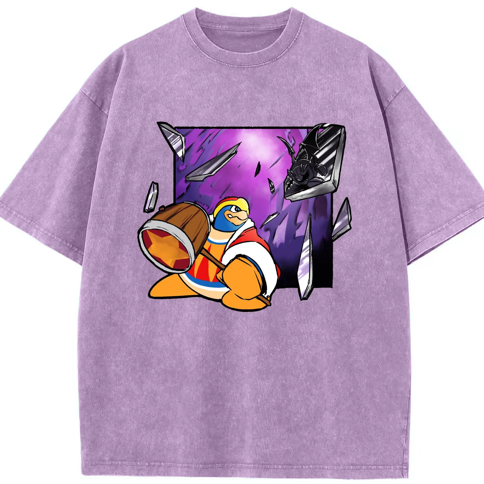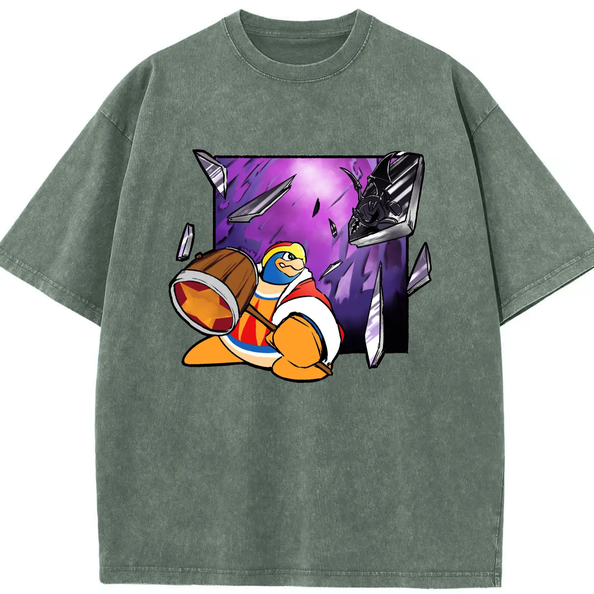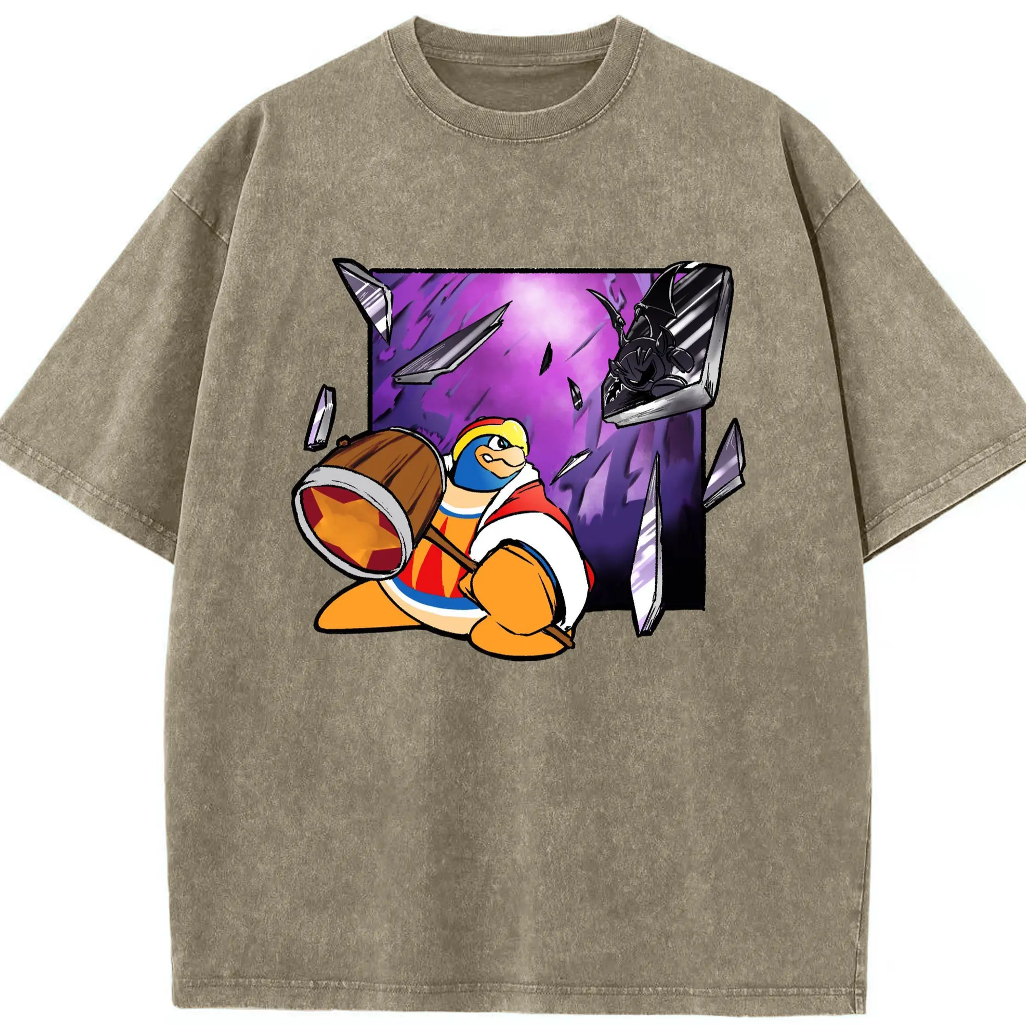 King Dedede tee - Washed Vintage Look 230g Cotton Oversized T-Shirt With Front Heat Transfer Print – Soft, Lightweight, Stylish Fit – Comfortable Casual Wear For Sports & Everyday Use