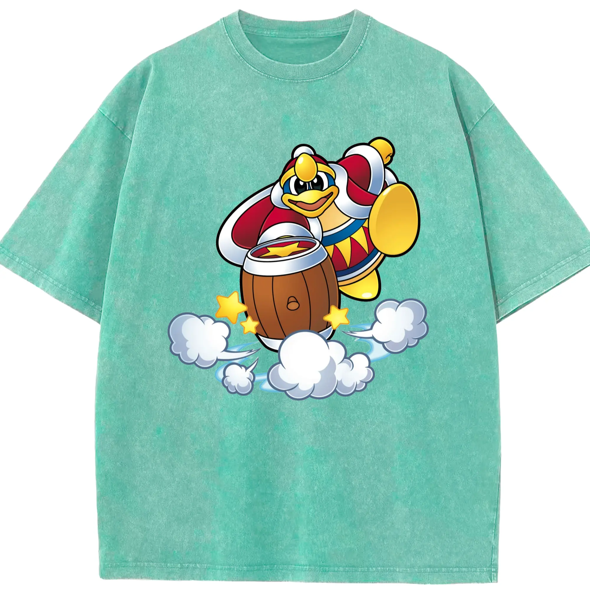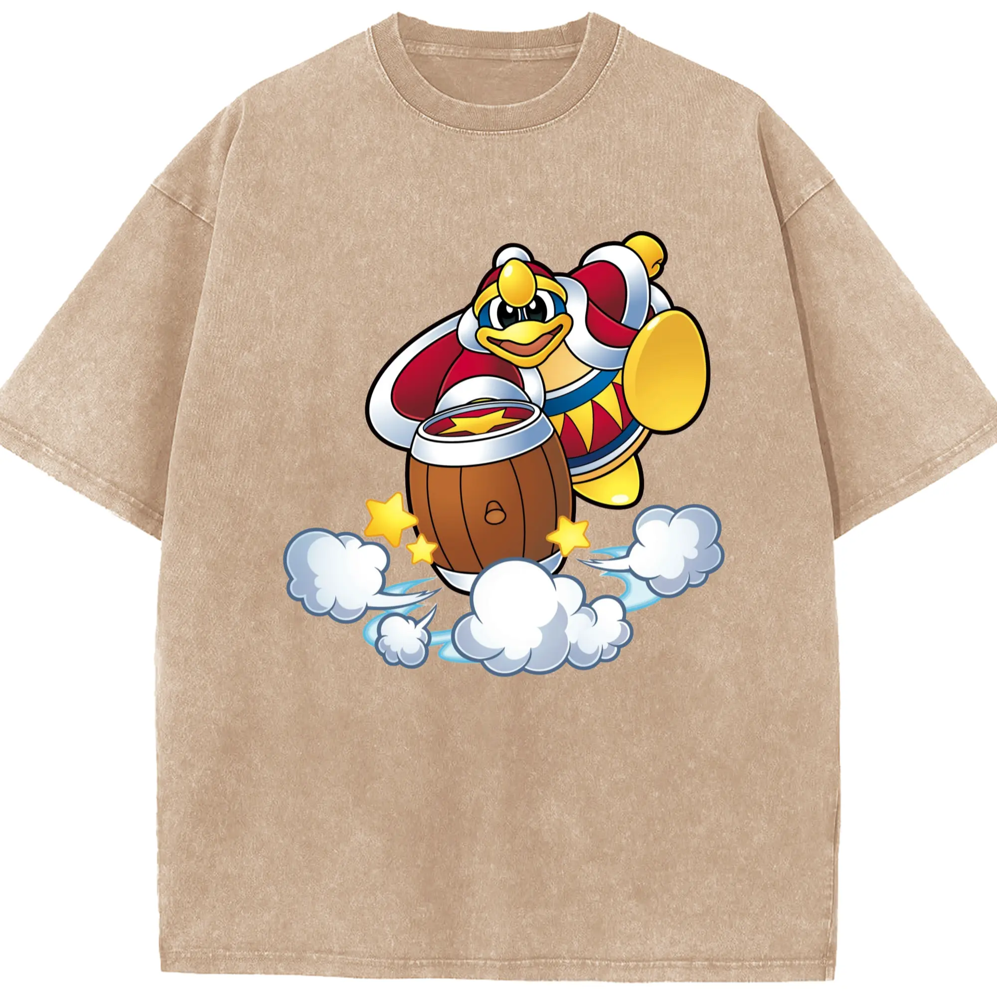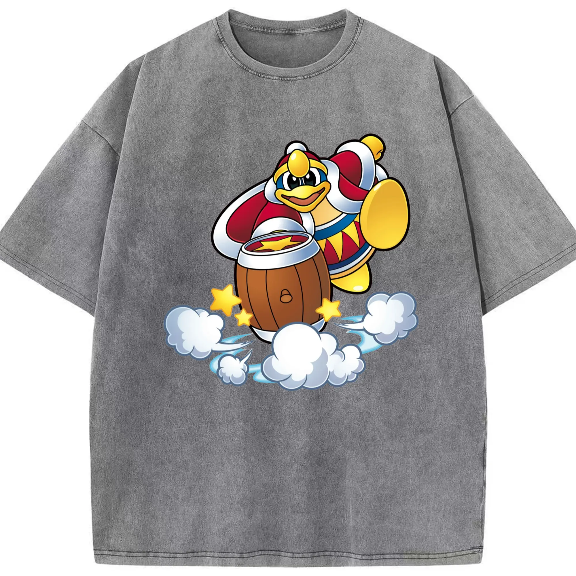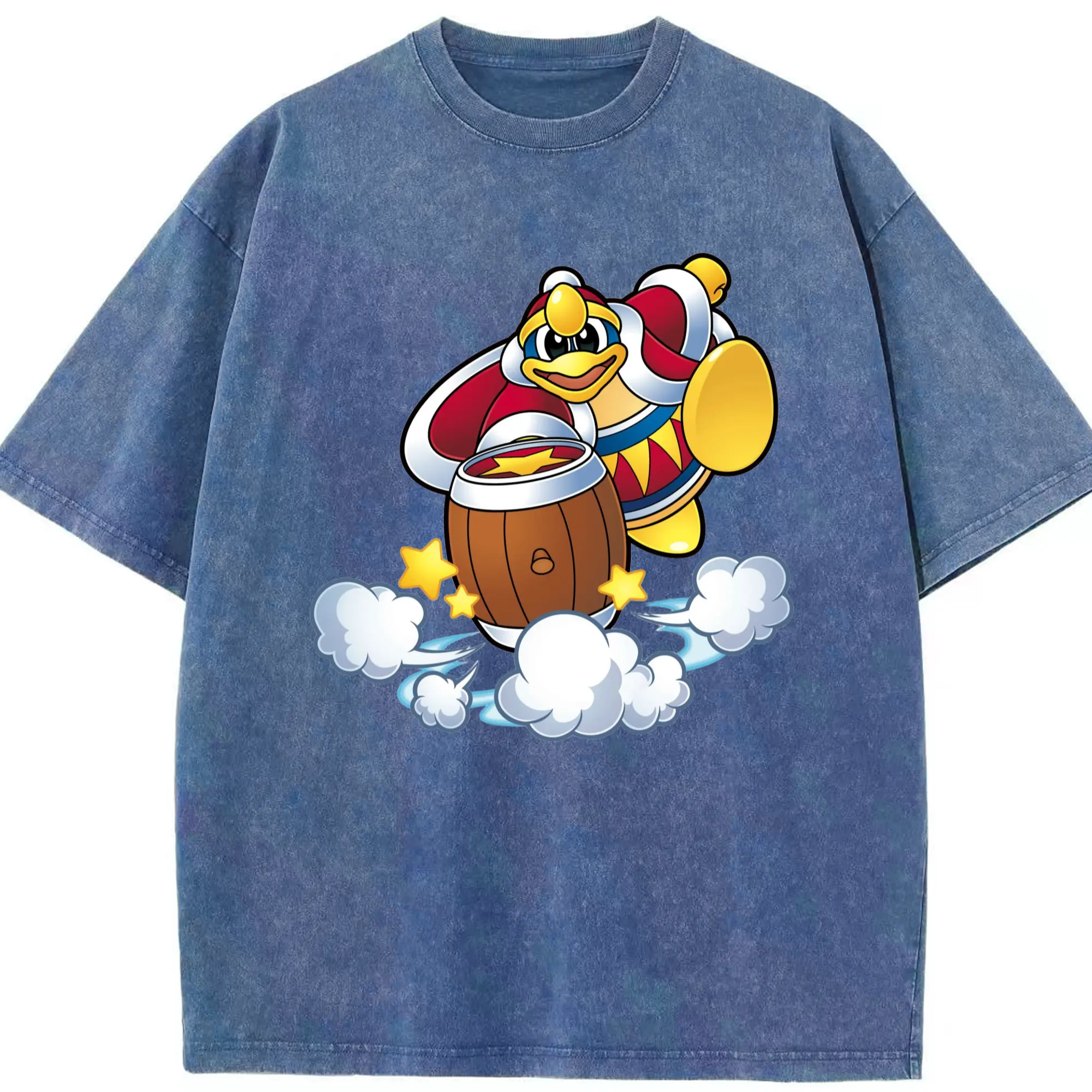 King Dedede t-shirt - Washed Vintage Look 230g Cotton Oversized T-Shirt With Front Heat Transfer Print – Soft, Lightweight, Stylish Fit – Comfortable Casual Wear For Sports & Everyday Use