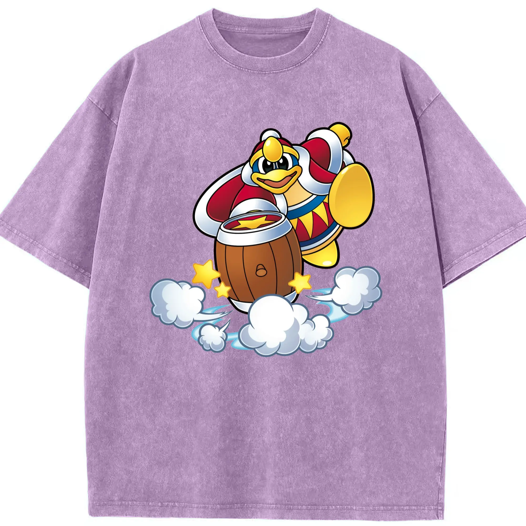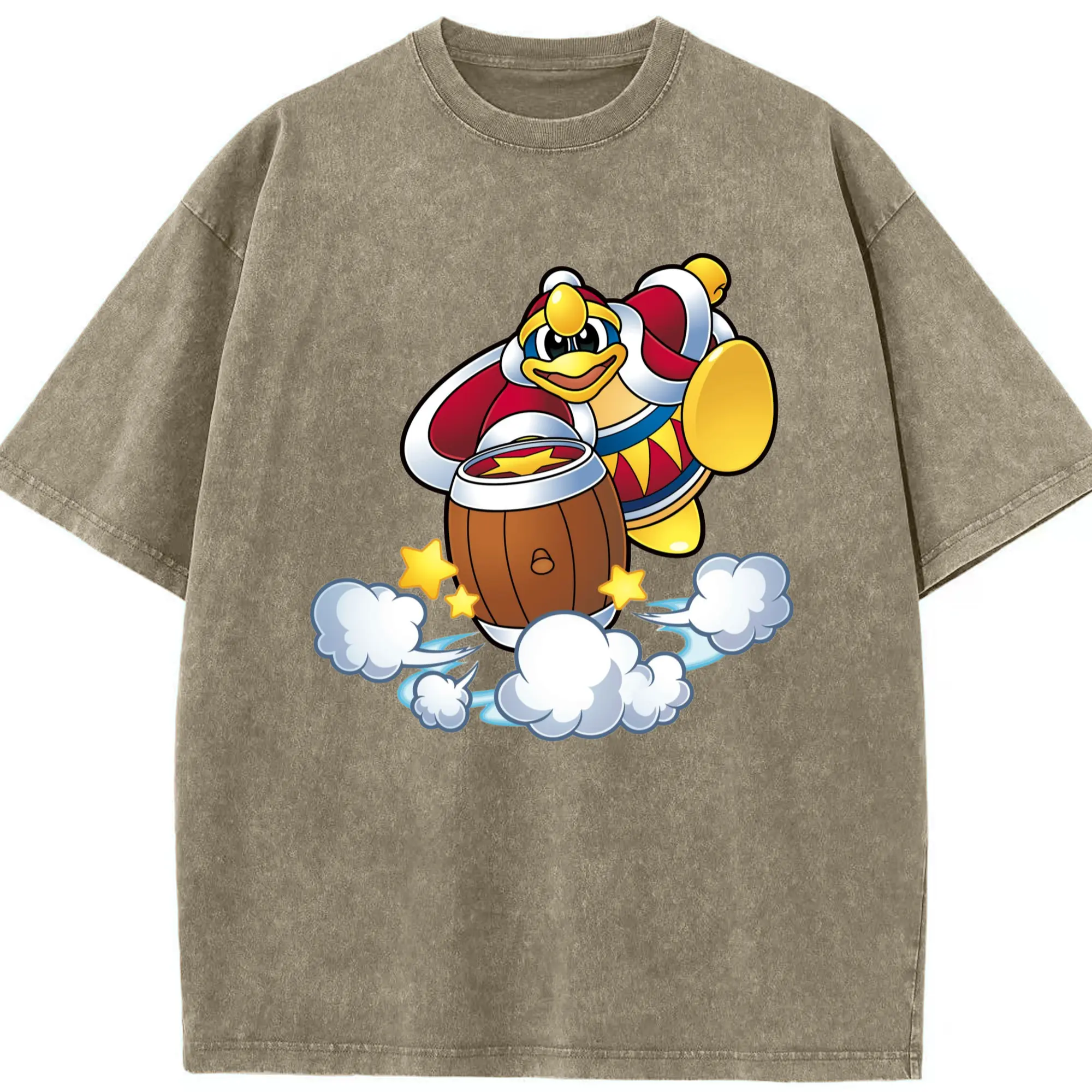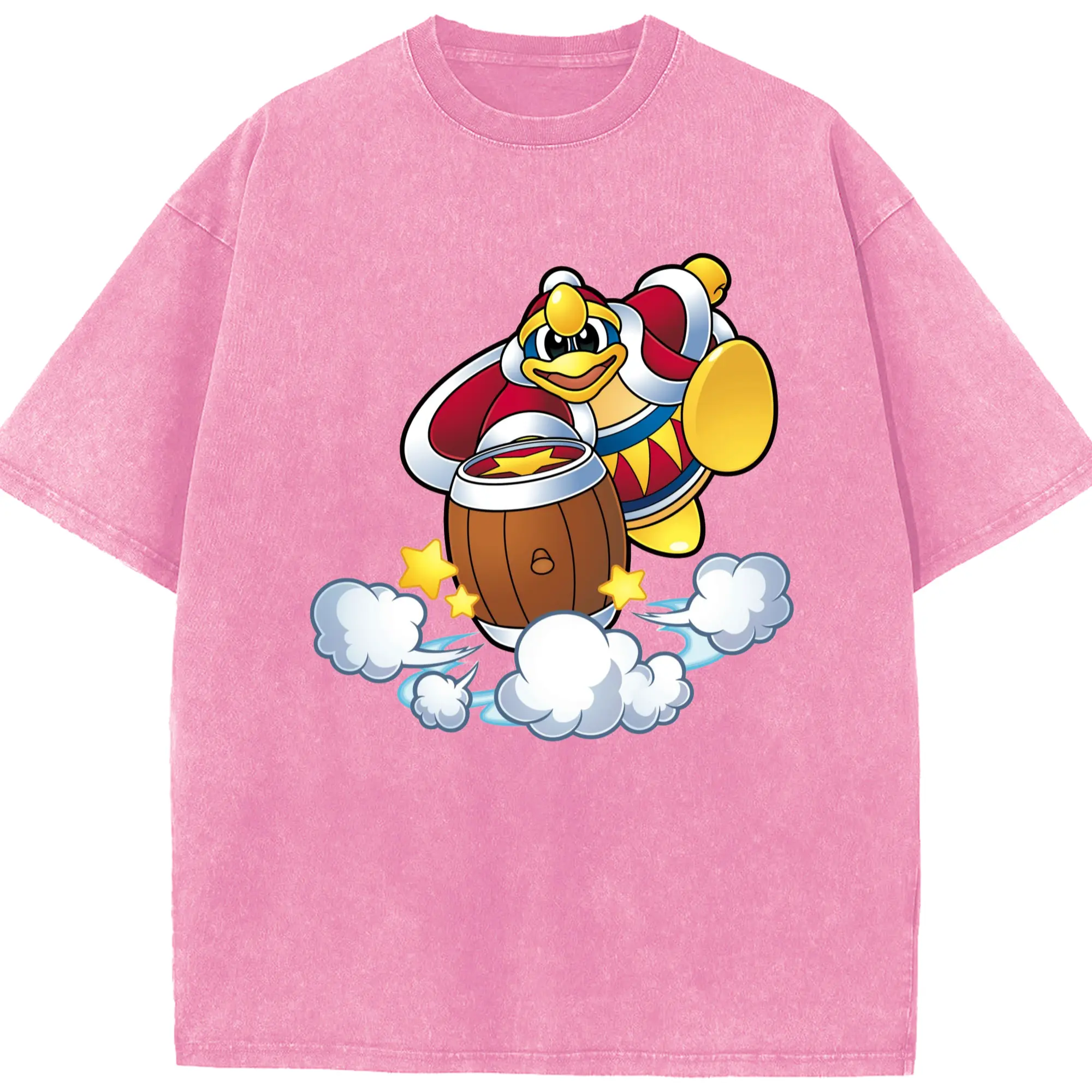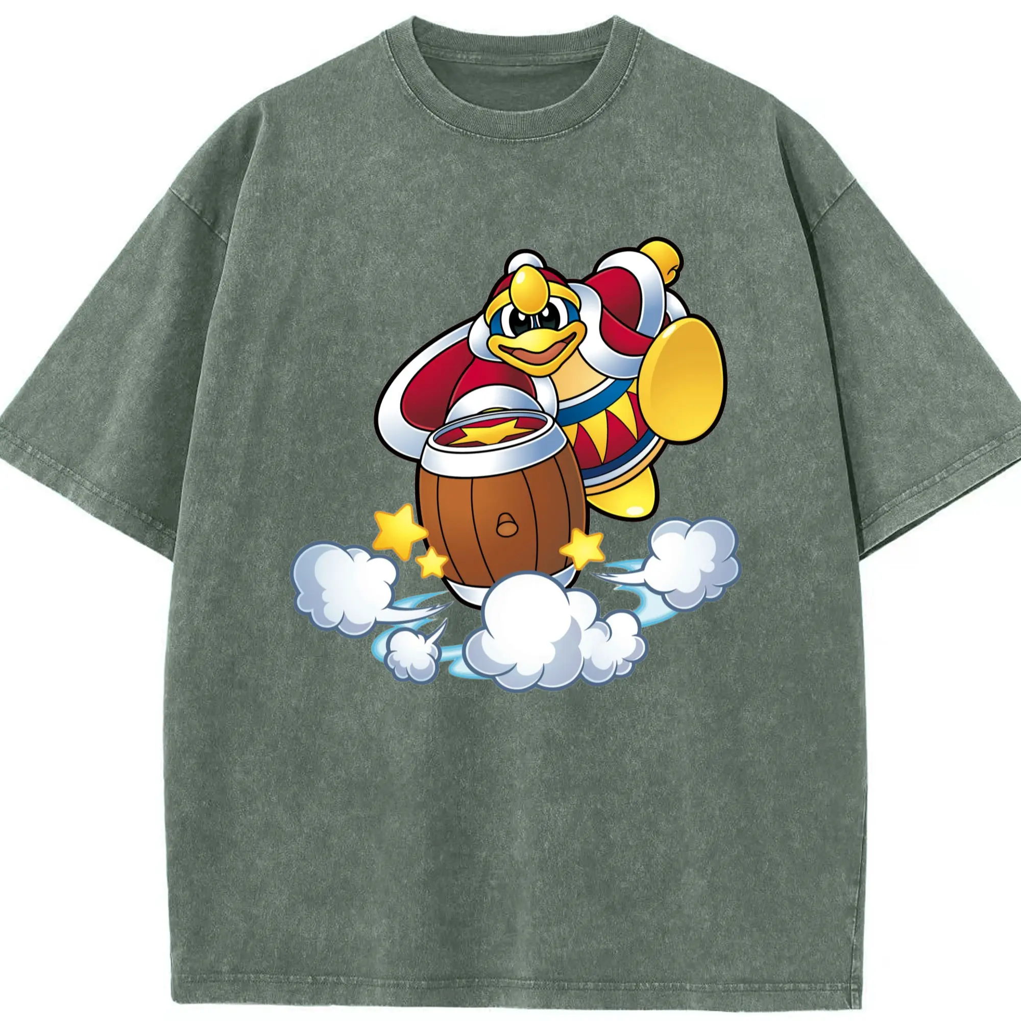 King Dedede t-shirt - Washed Vintage Look 230g Cotton Oversized T-Shirt With Front Heat Transfer Print – Soft, Lightweight, Stylish Fit – Comfortable Casual Wear For Sports & Everyday Use