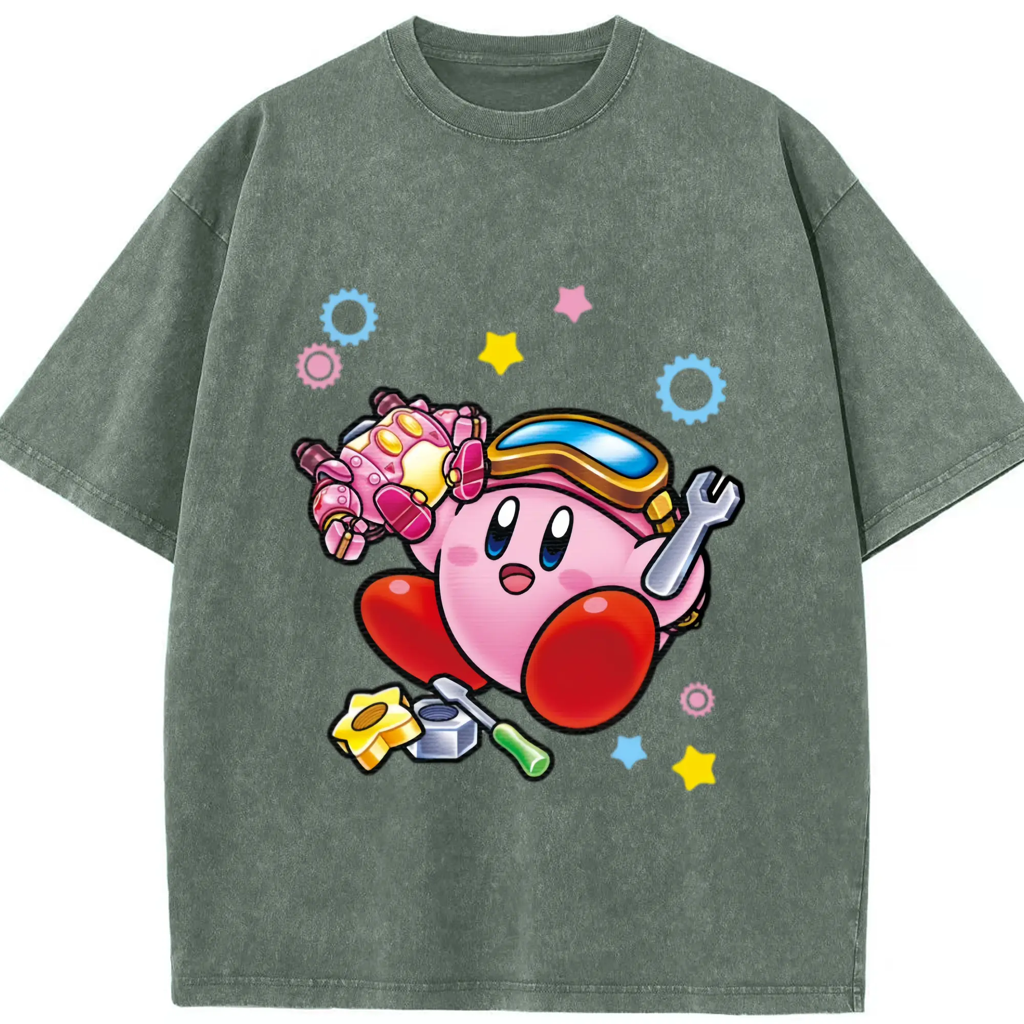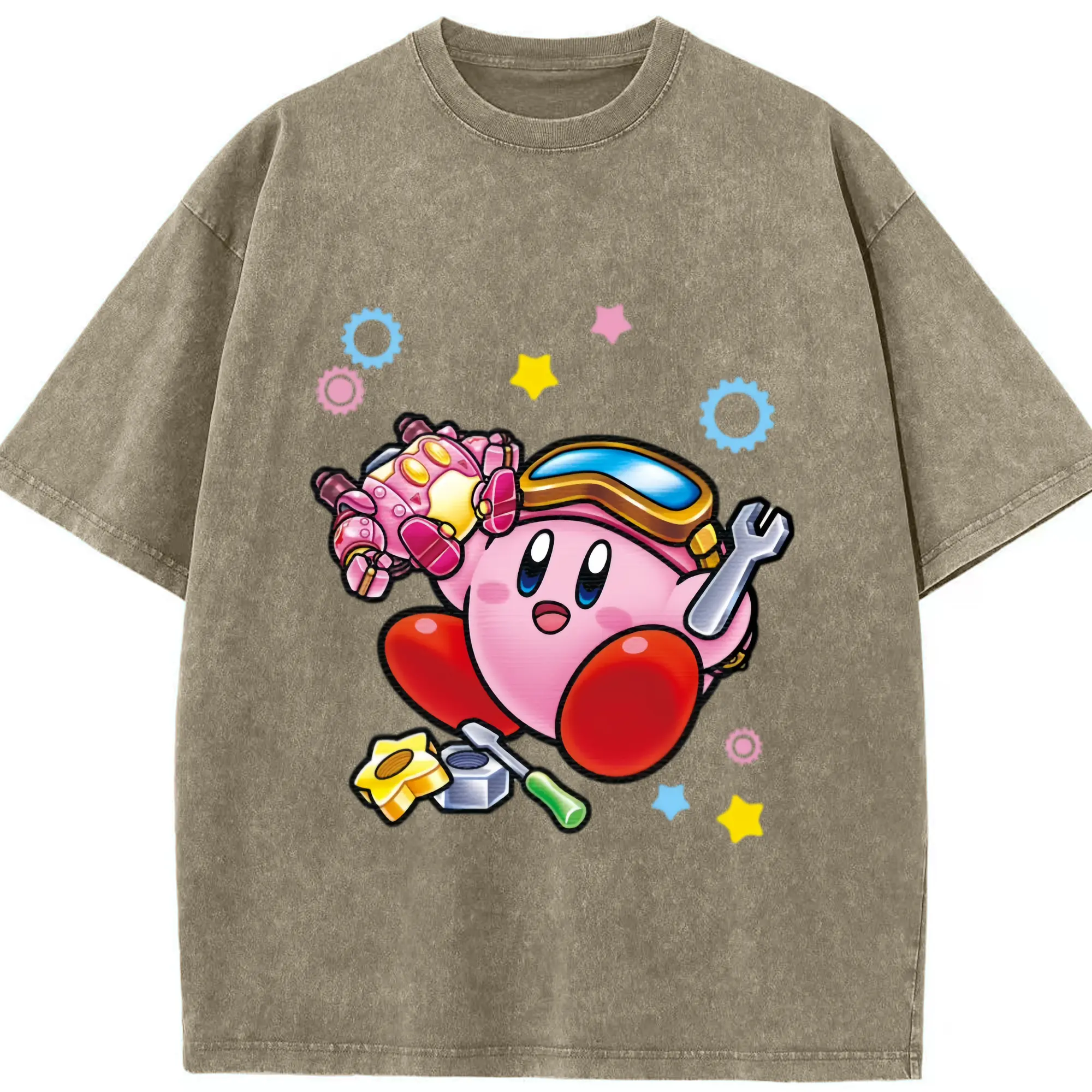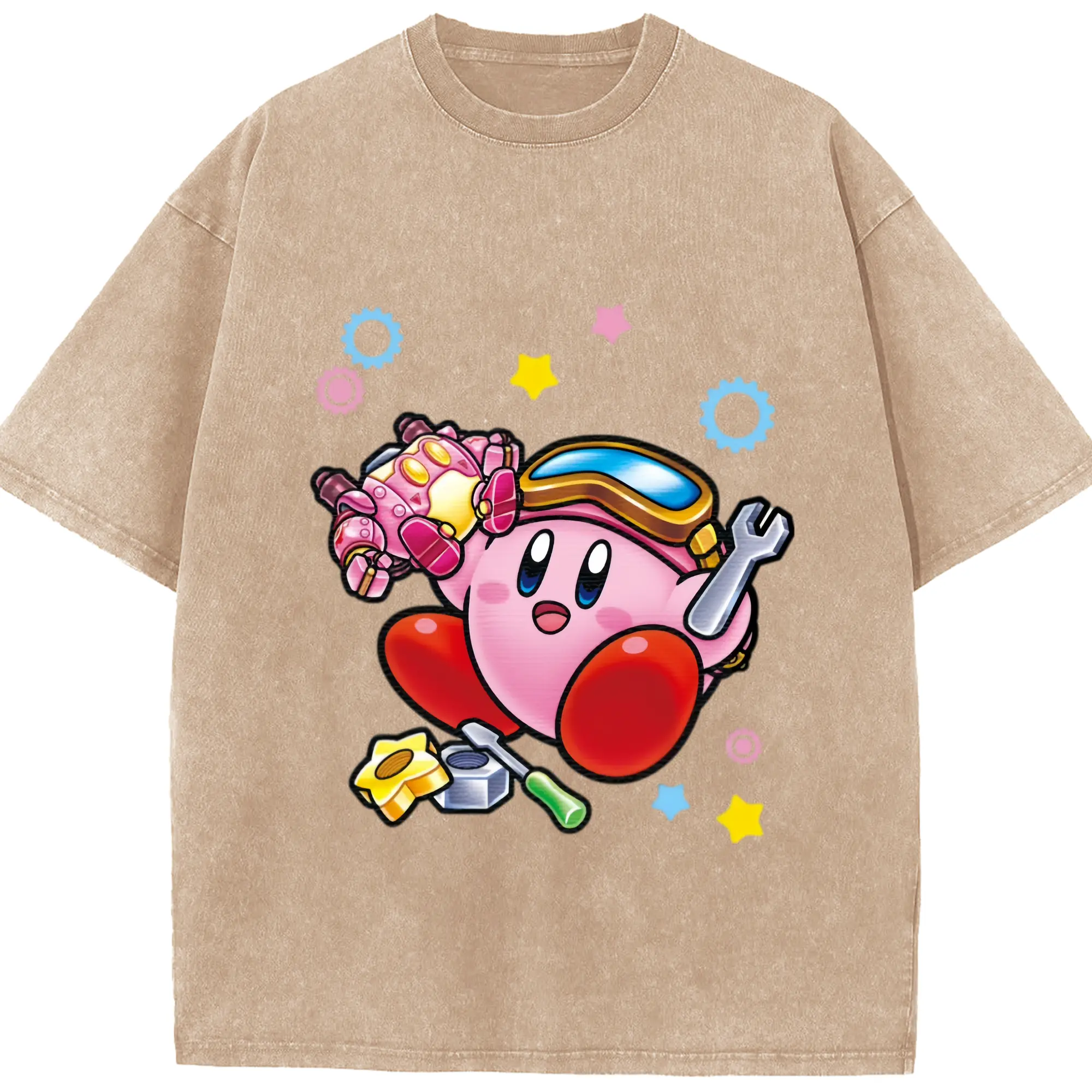 Kirby collage graphic t-shirt - Washed Vintage Look 230g Cotton Oversized T-Shirt With Front Heat Transfer Print – Soft, Lightweight, Stylish Fit – Comfortable Casual Wear For Sports & Everyday Use