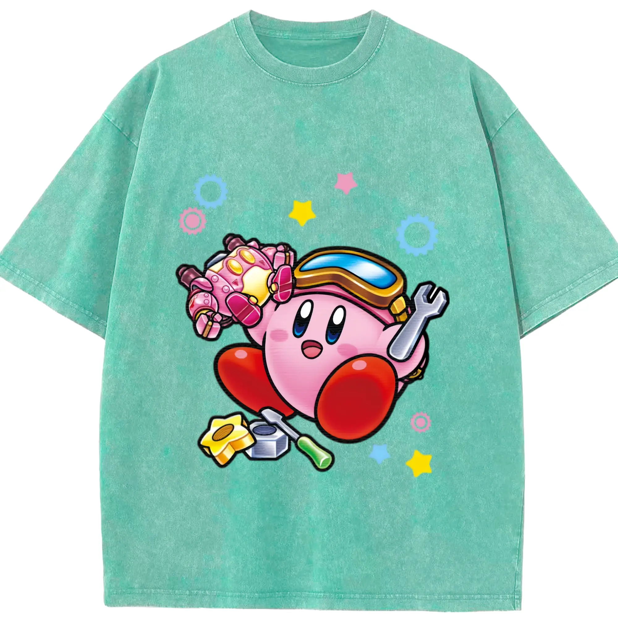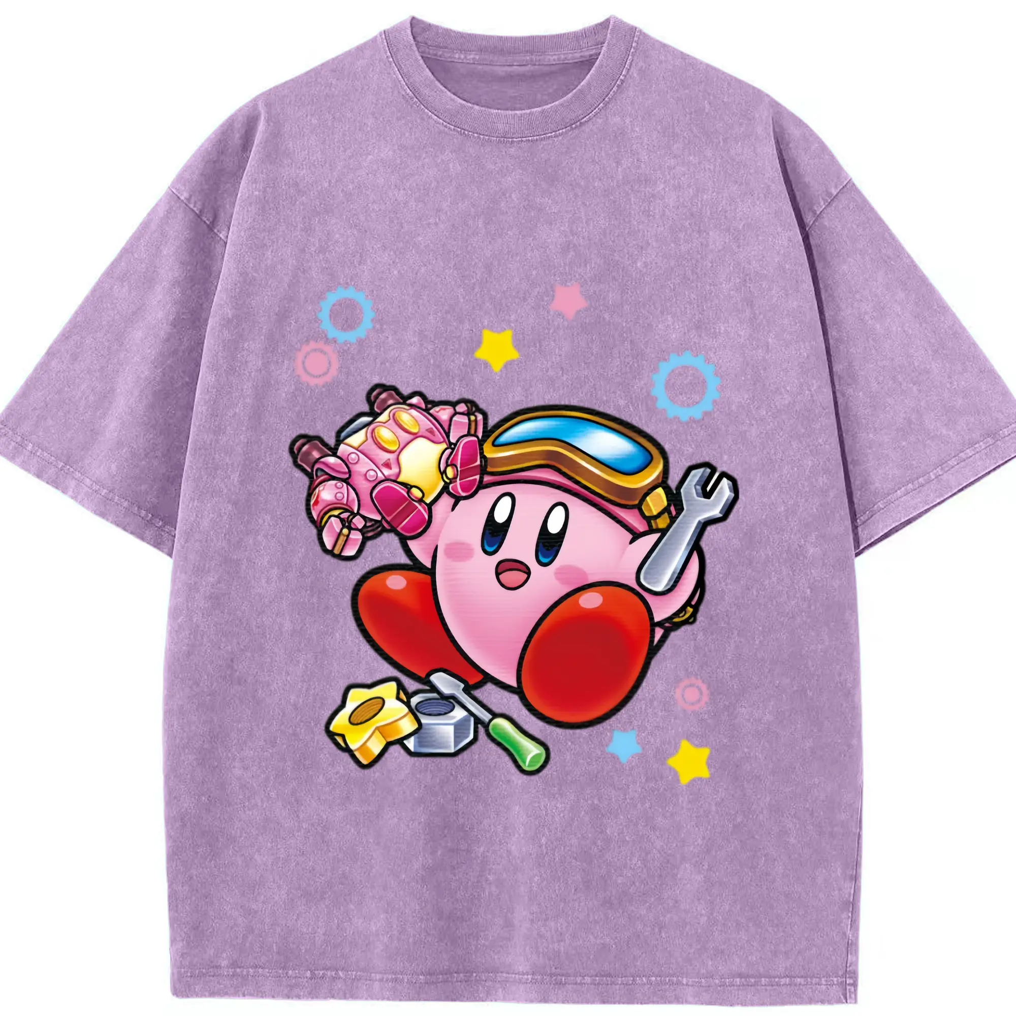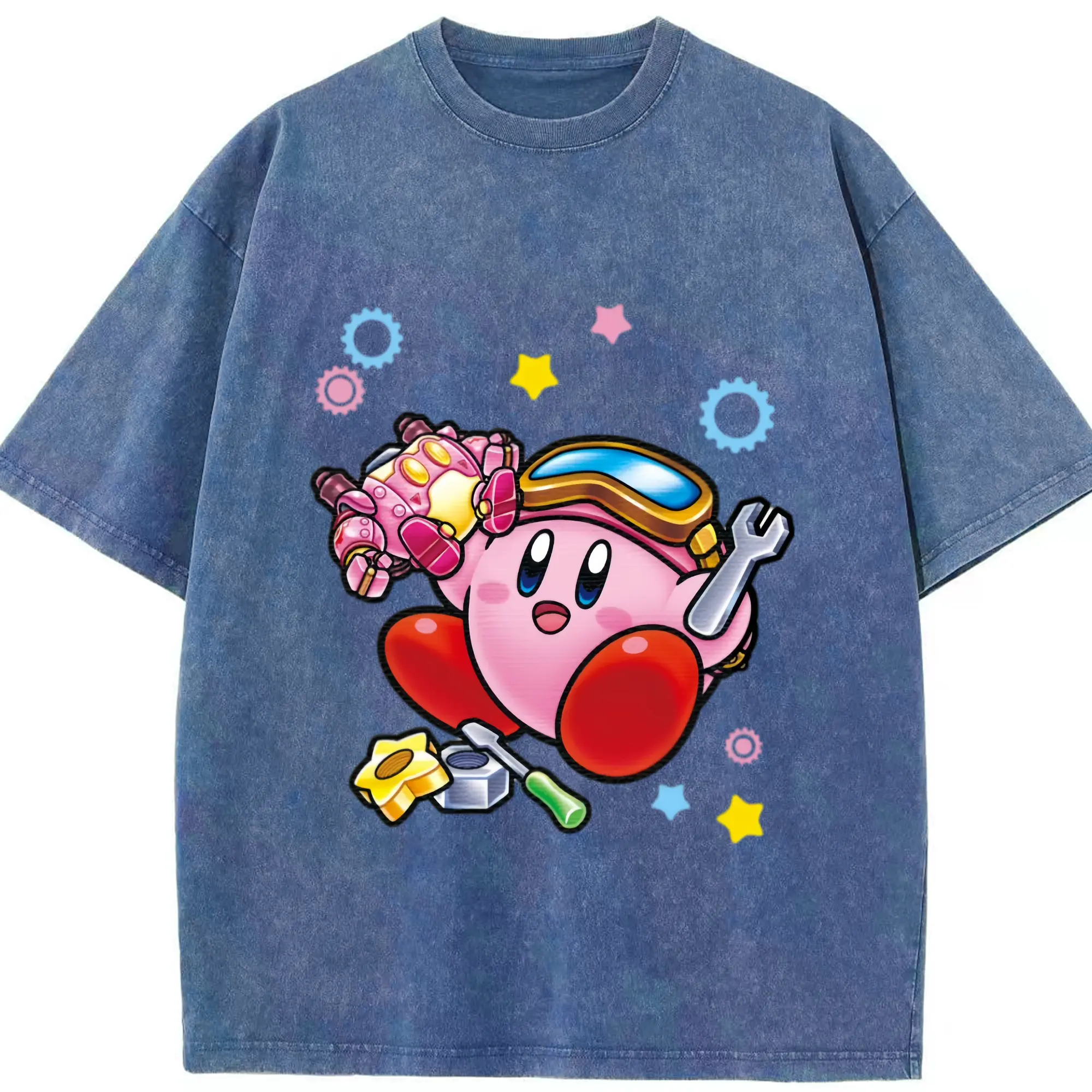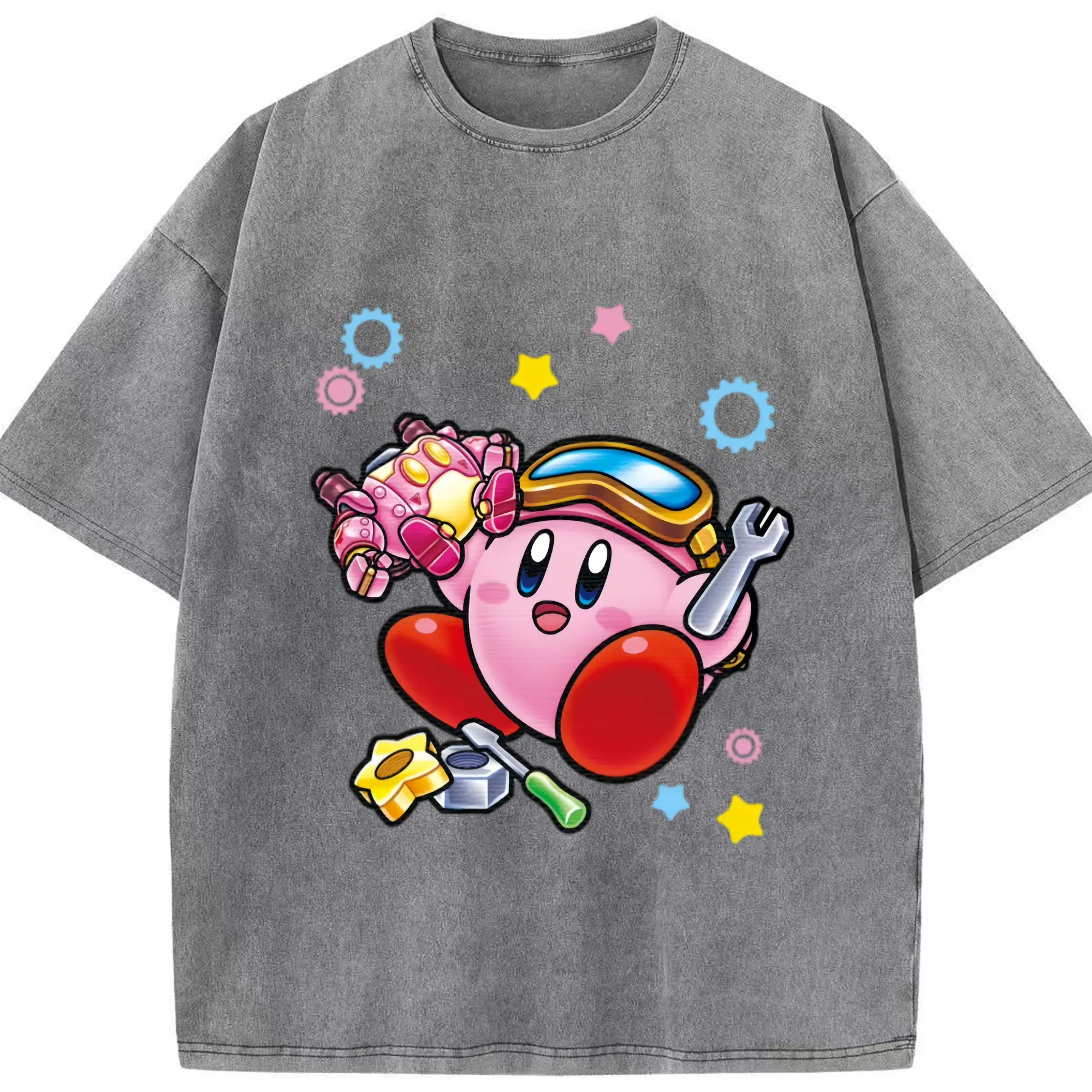 Kirby collage graphic t-shirt - Washed Vintage Look 230g Cotton Oversized T-Shirt With Front Heat Transfer Print – Soft, Lightweight, Stylish Fit – Comfortable Casual Wear For Sports & Everyday Use